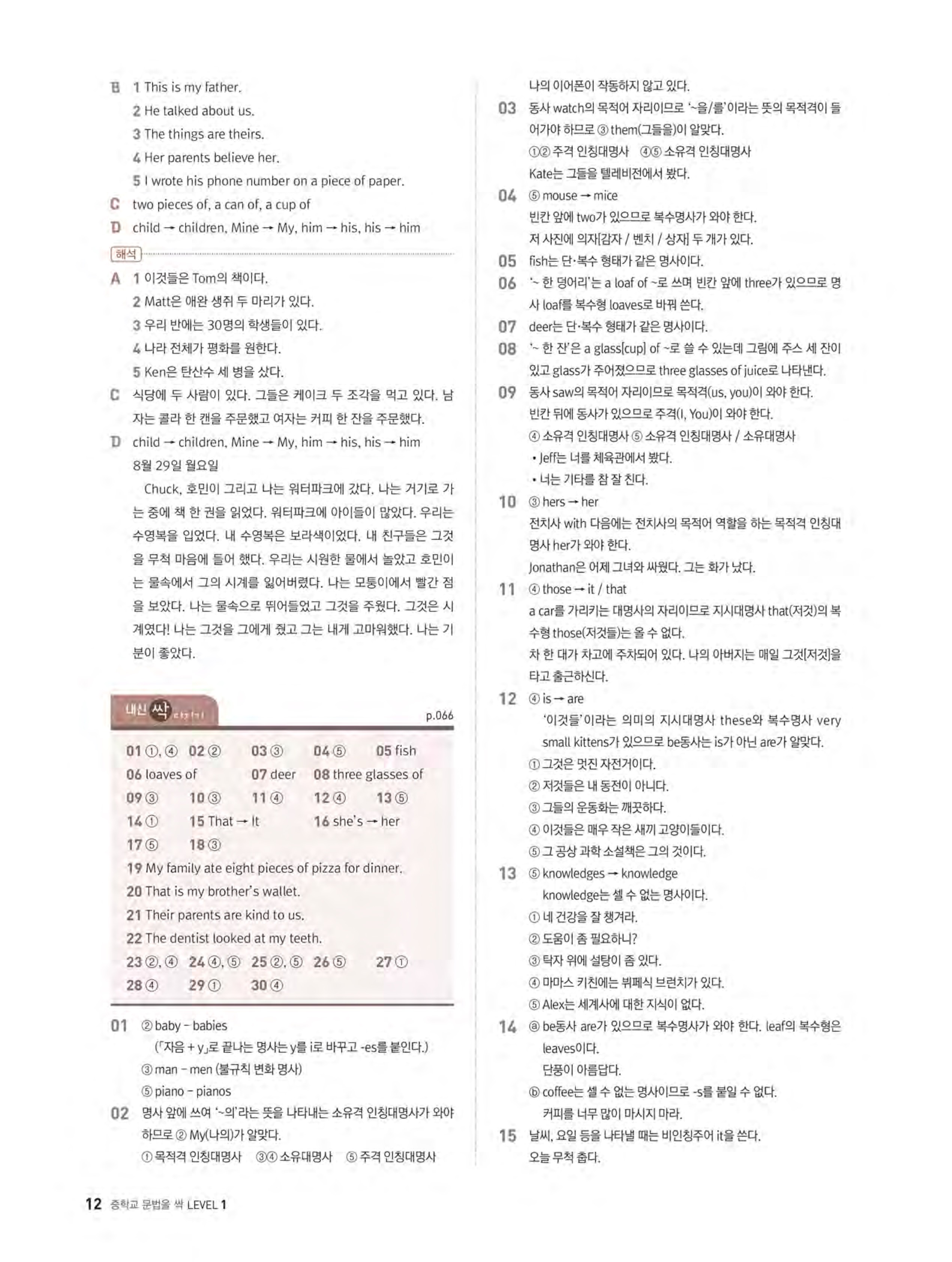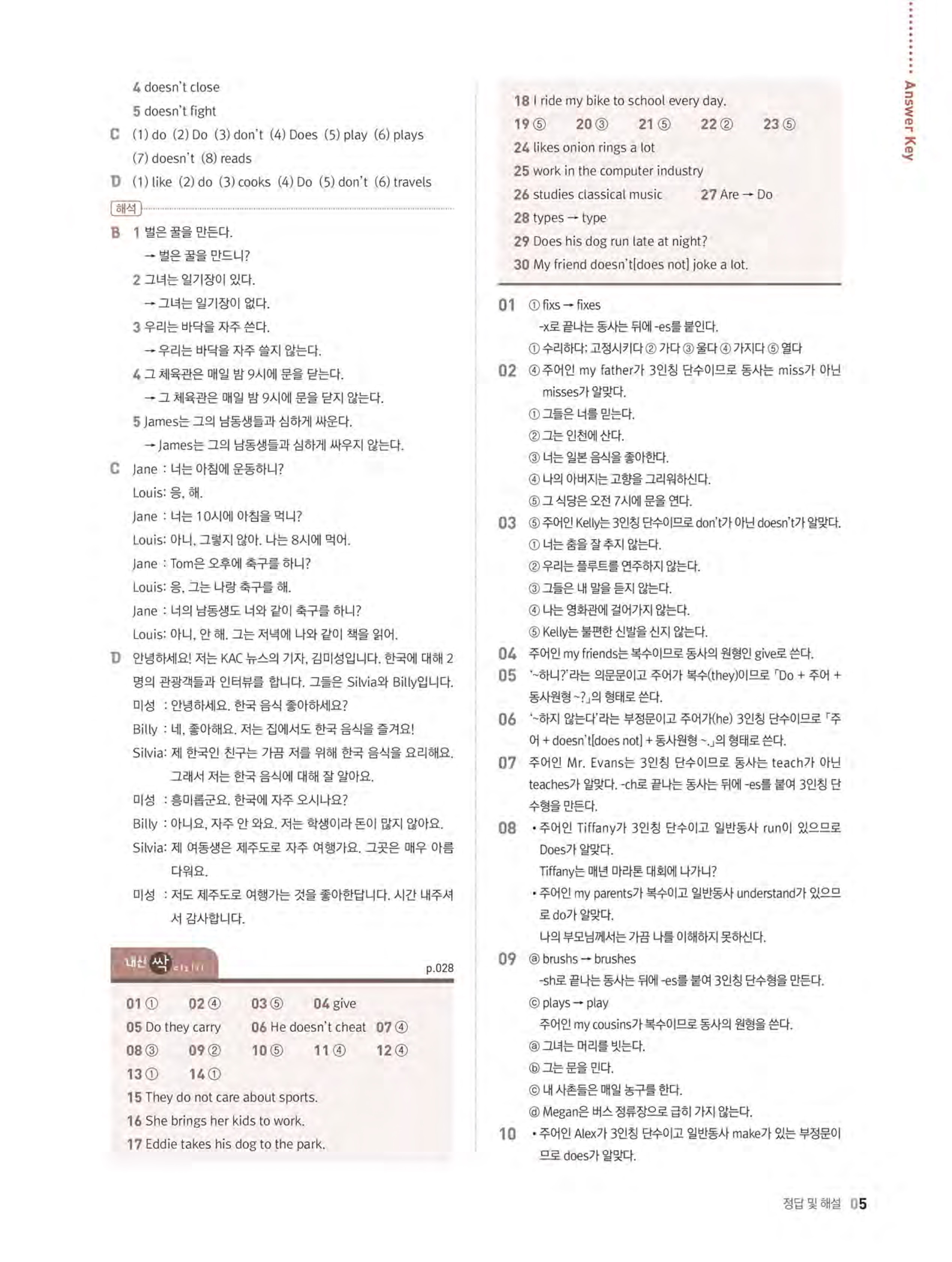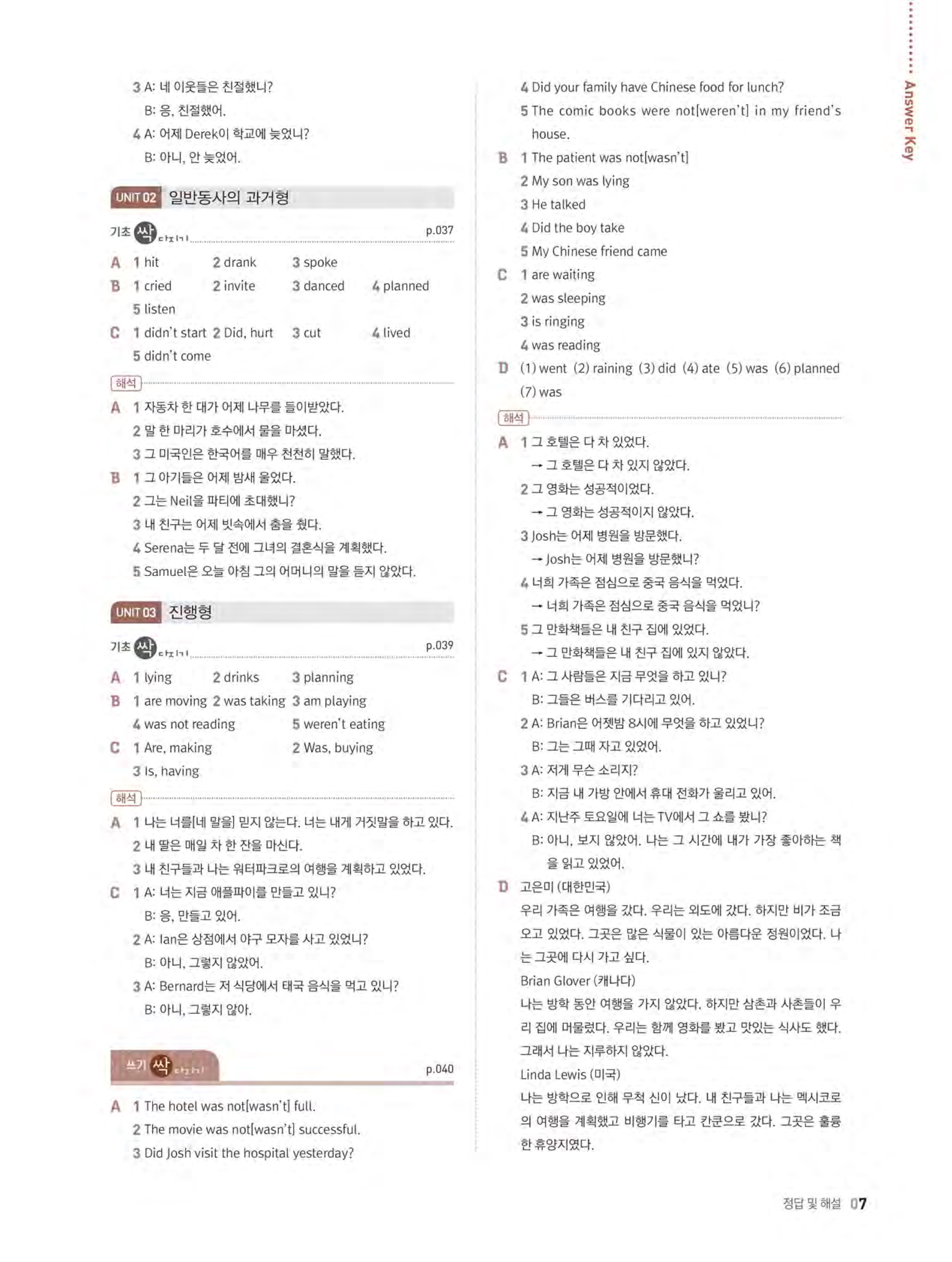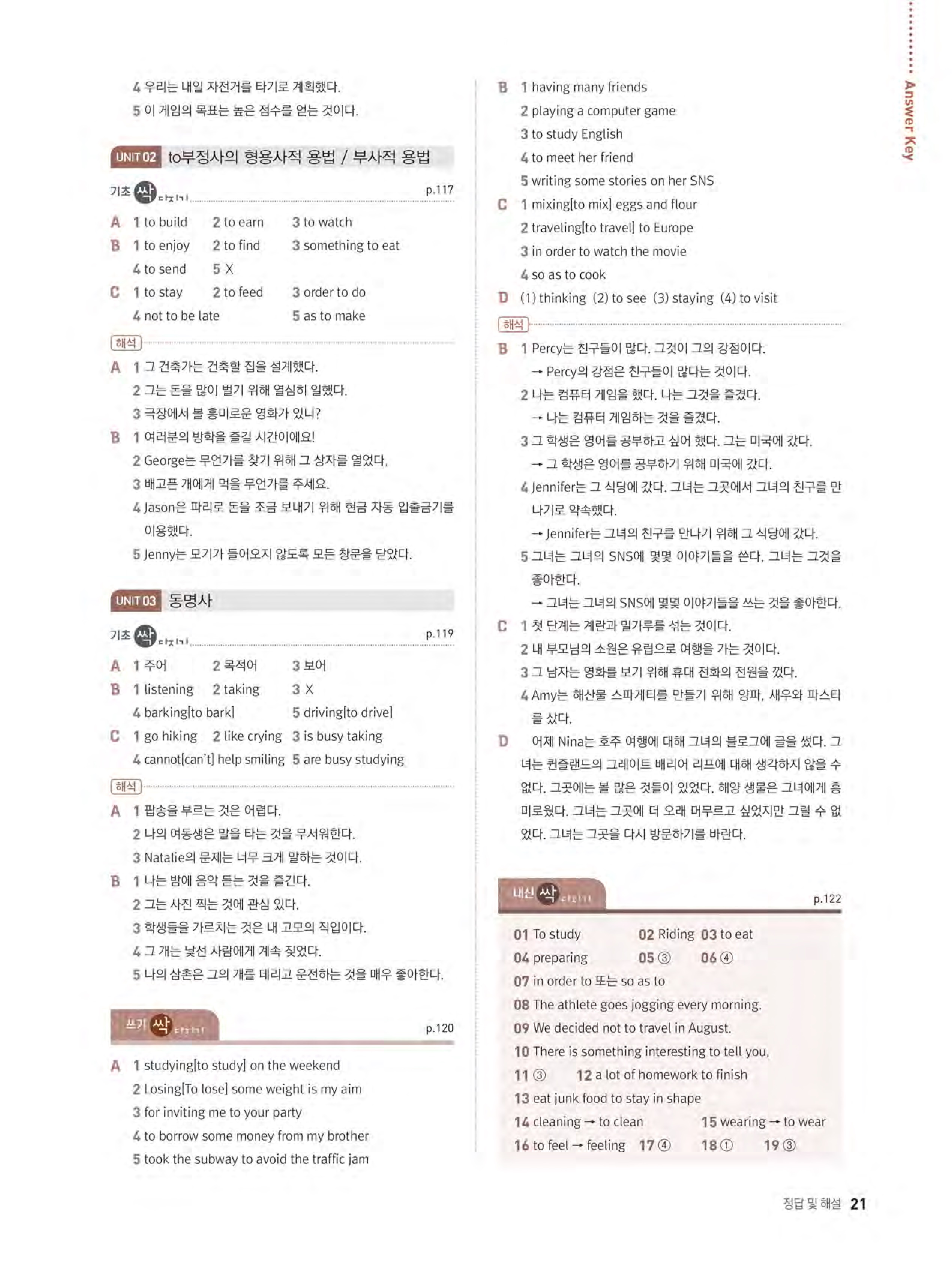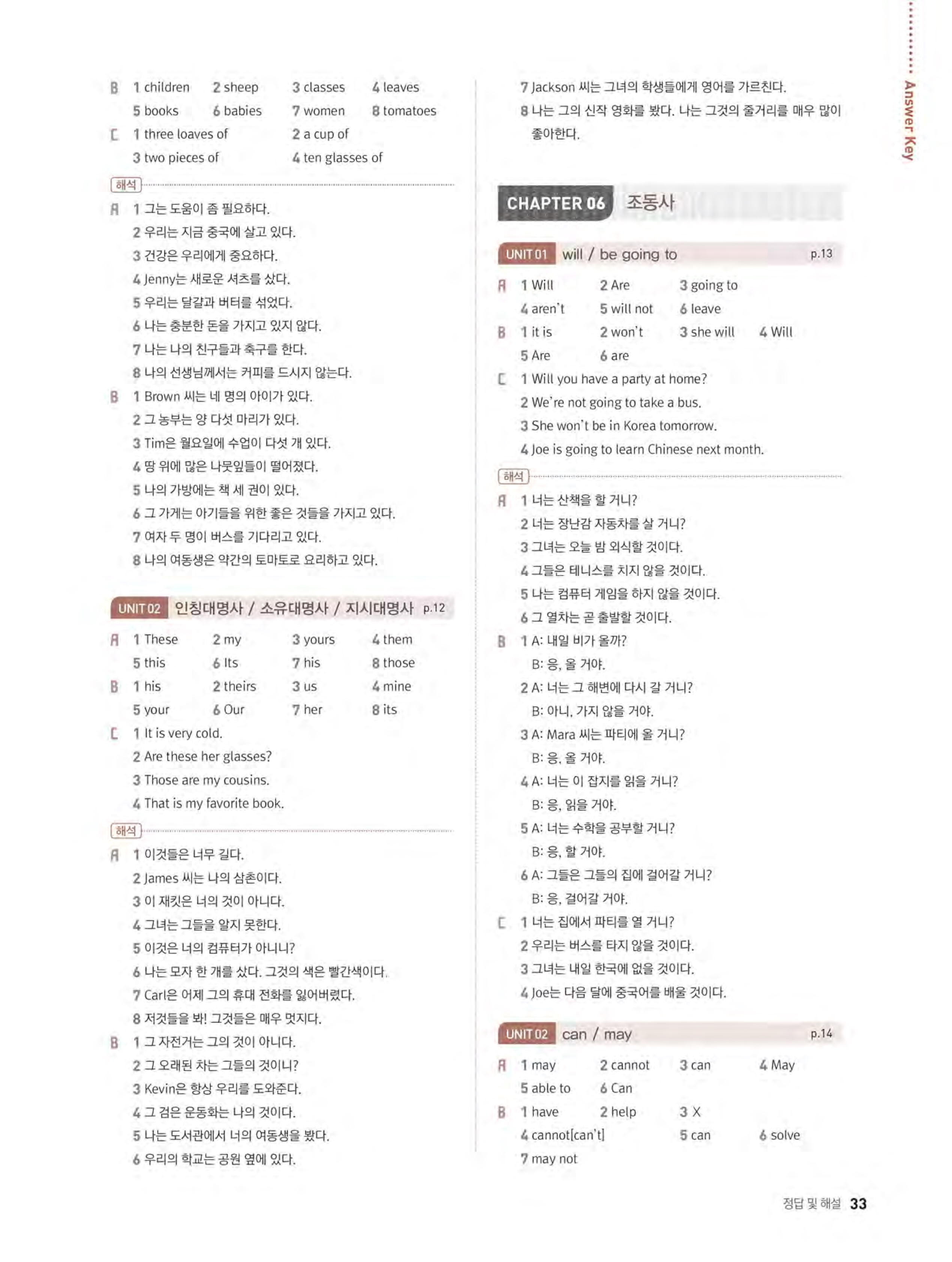 중학교 문법을 싹 레벨1 답지 해설 바로보는 사진답지 빠른답지 모바일최적화