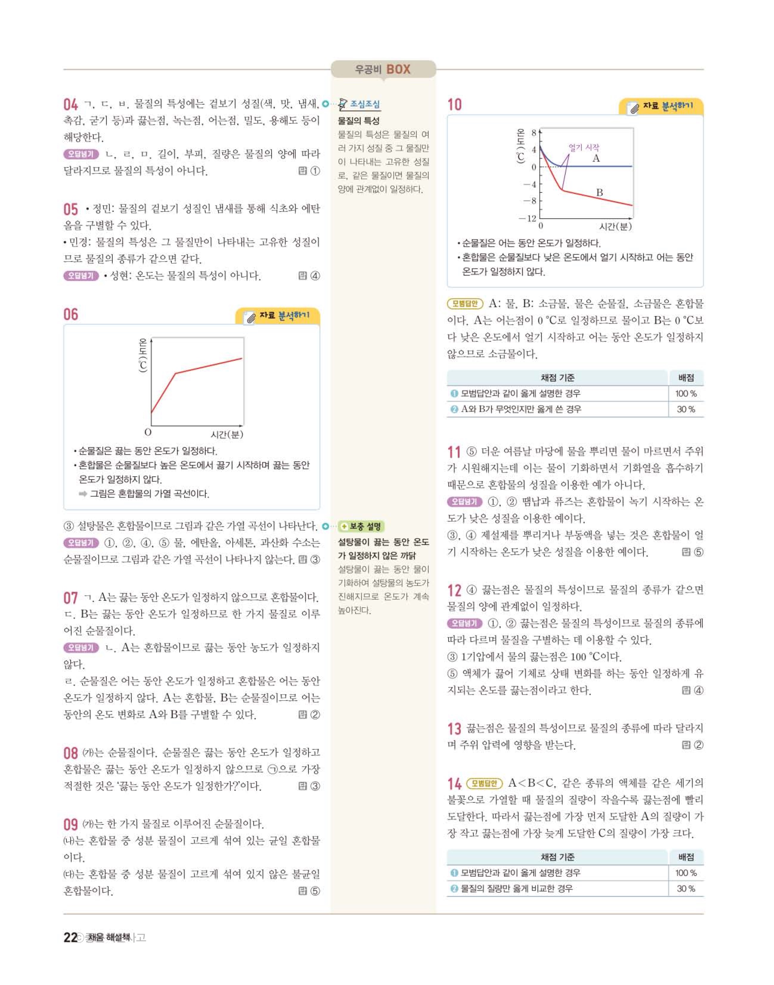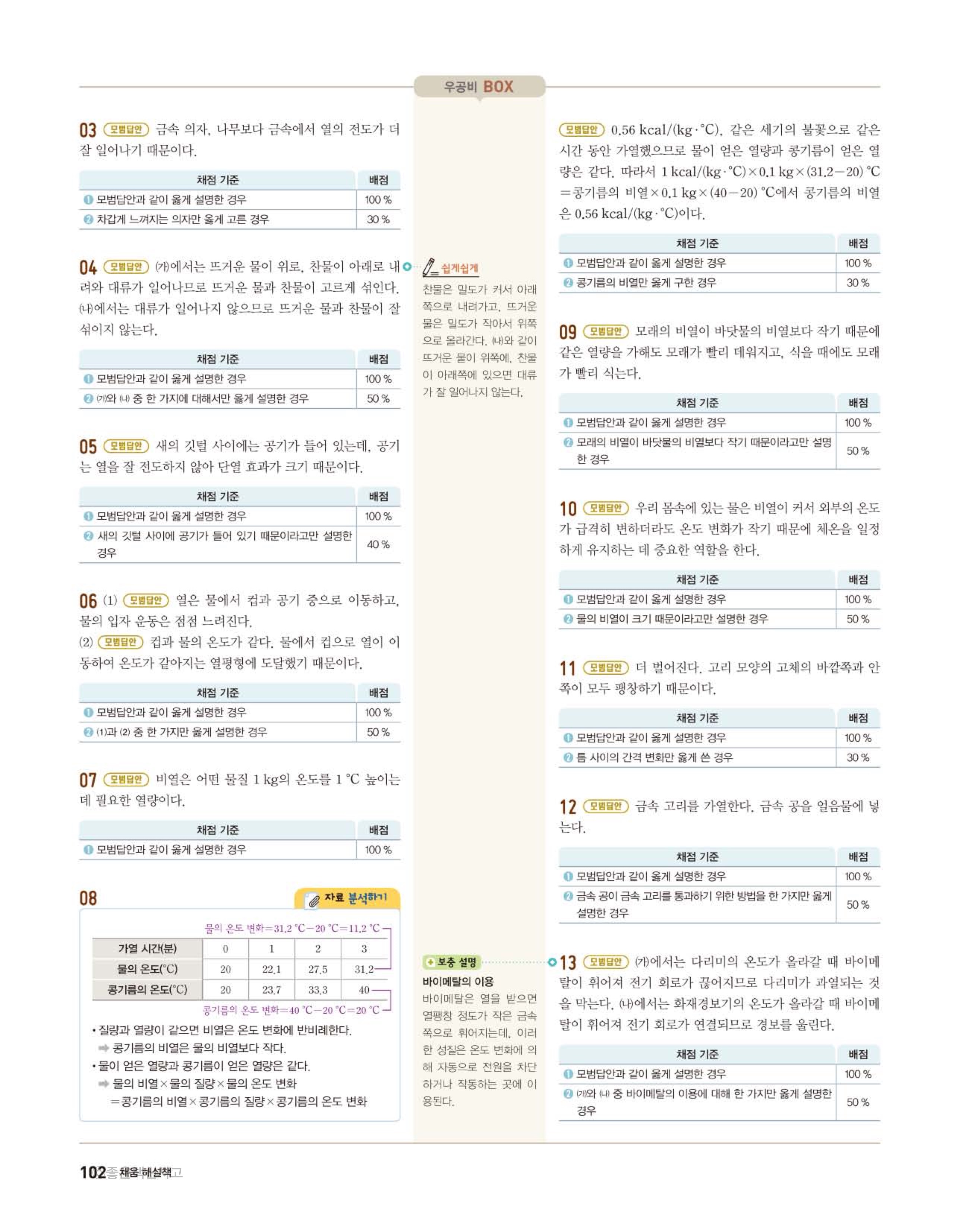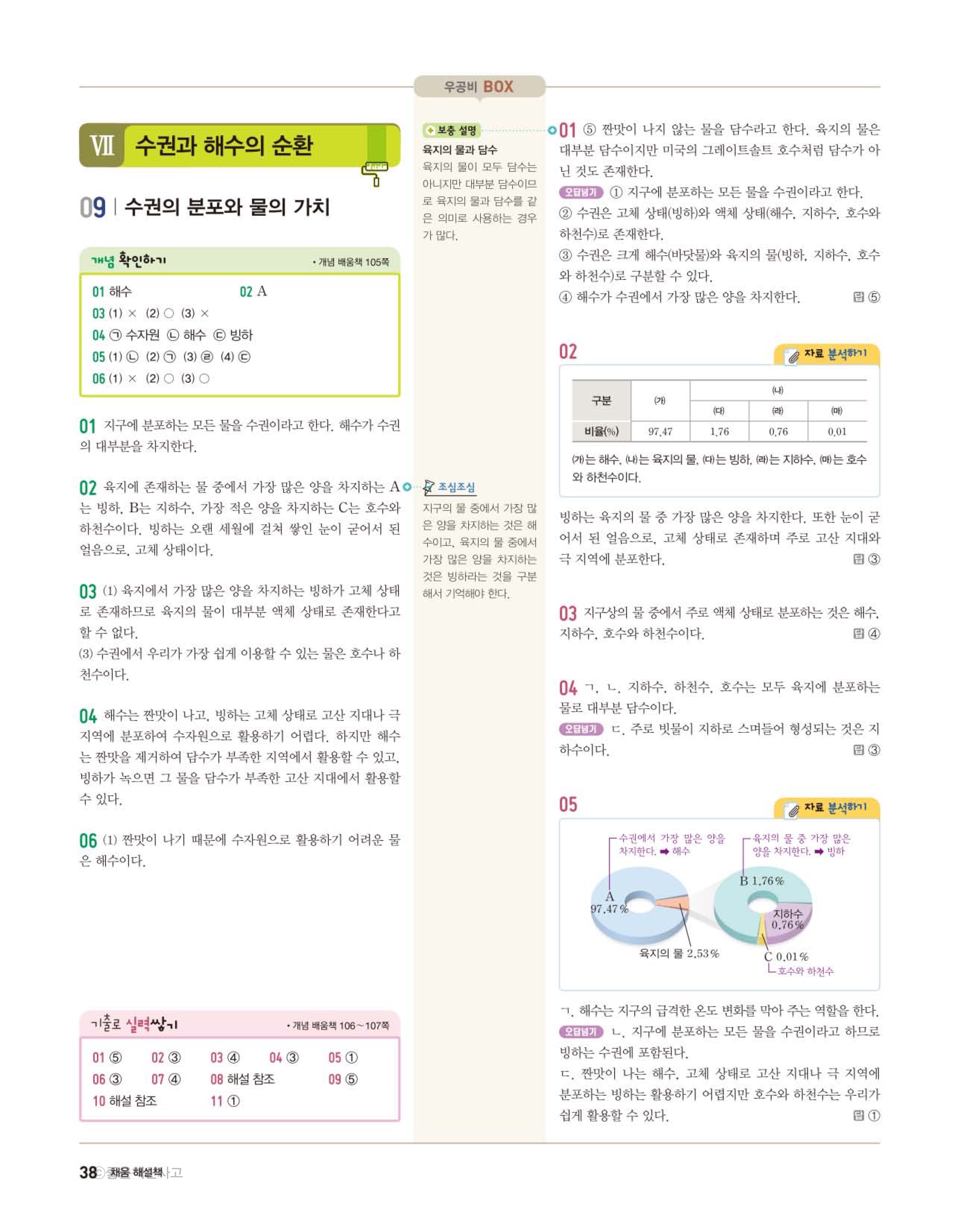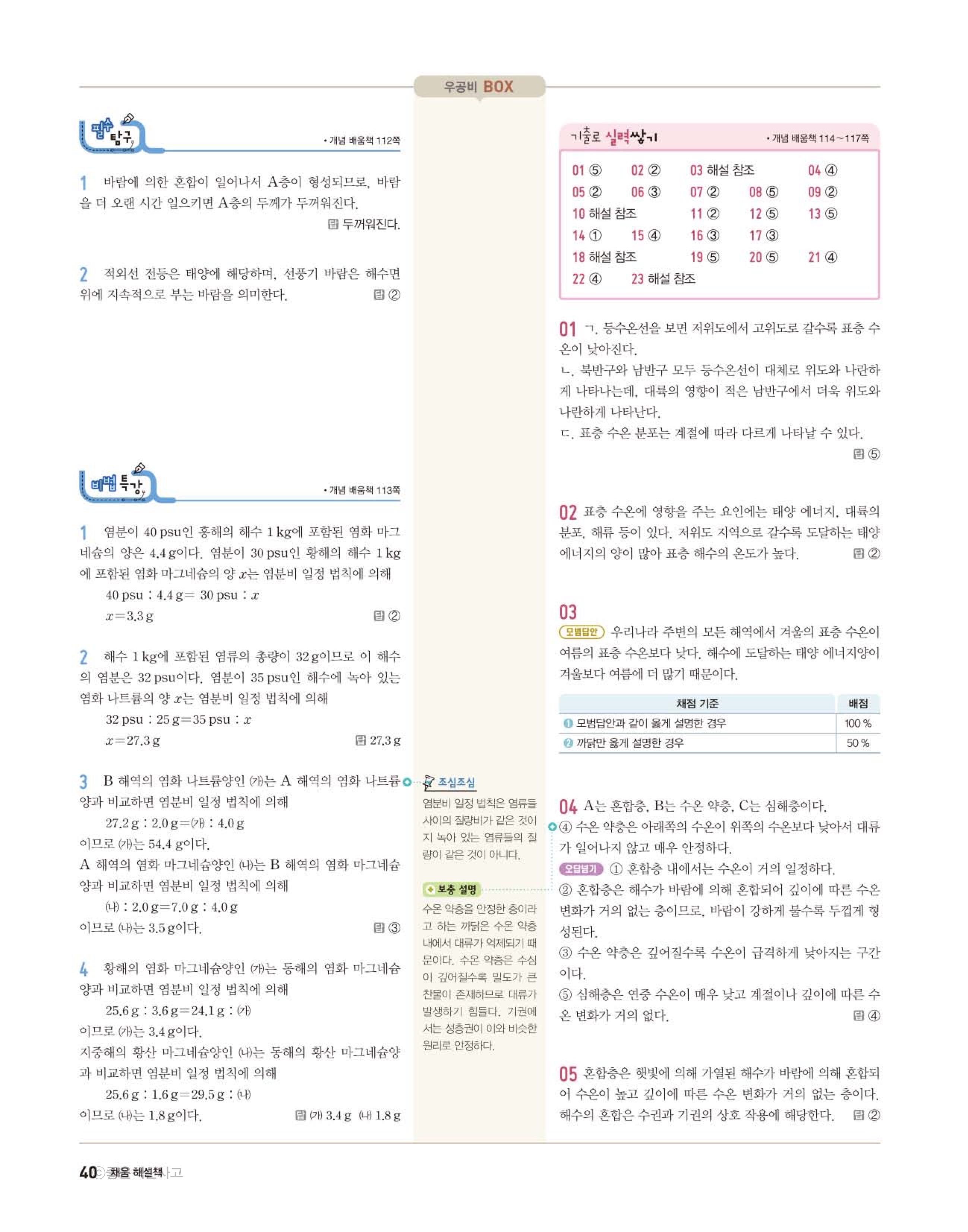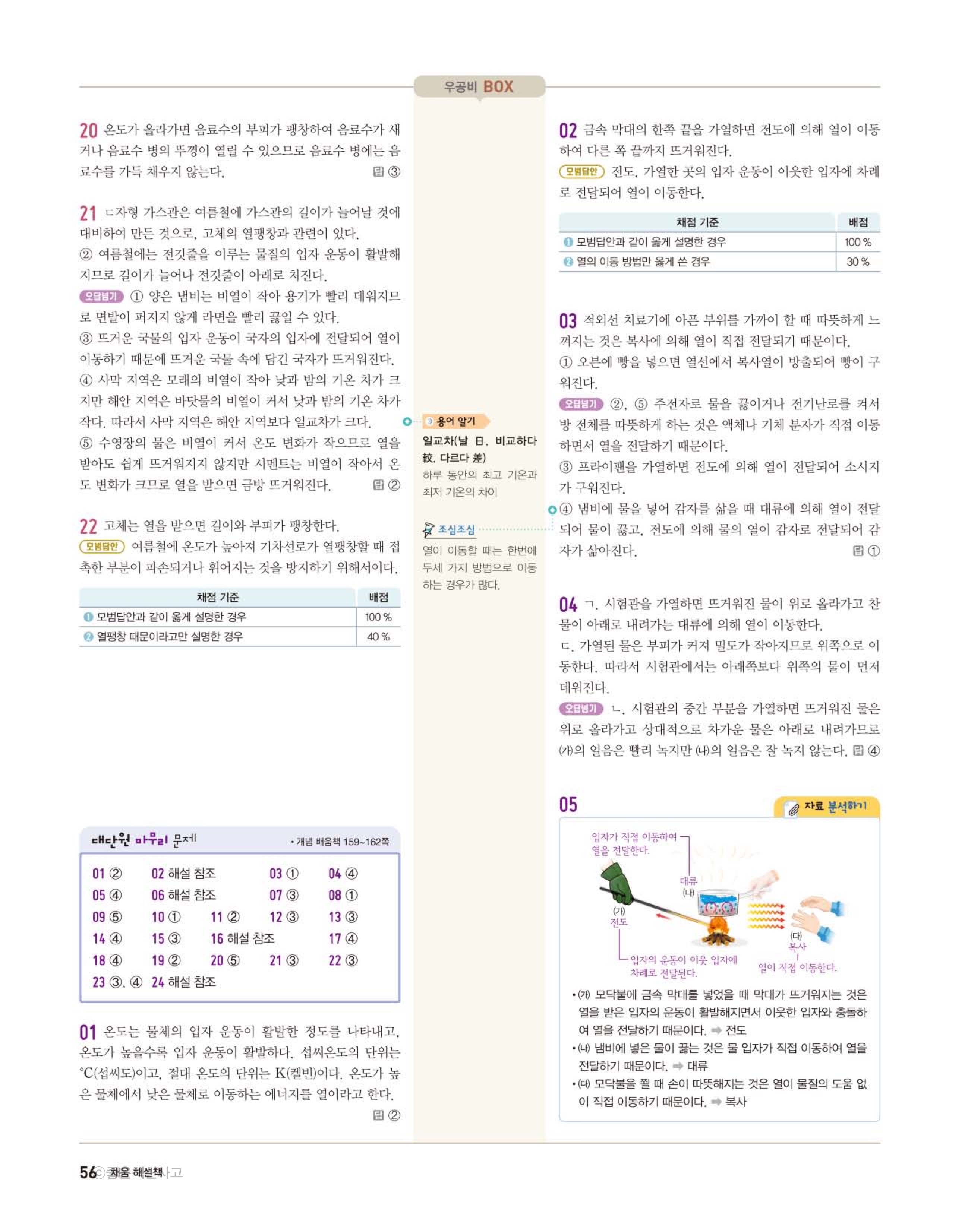 우공비 중등과학 2-2 답지 해설 바로보는 사진답지 빠른답지 모바일최적화