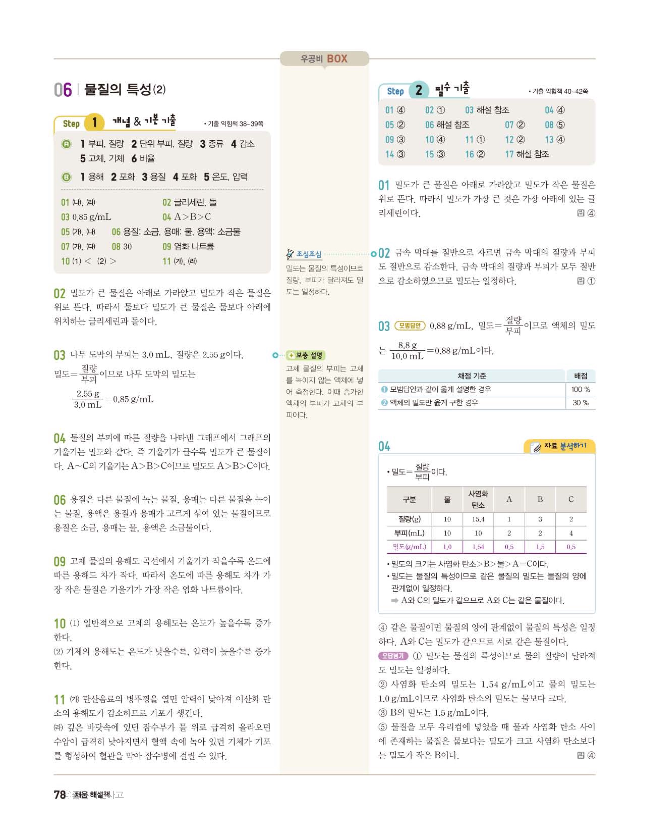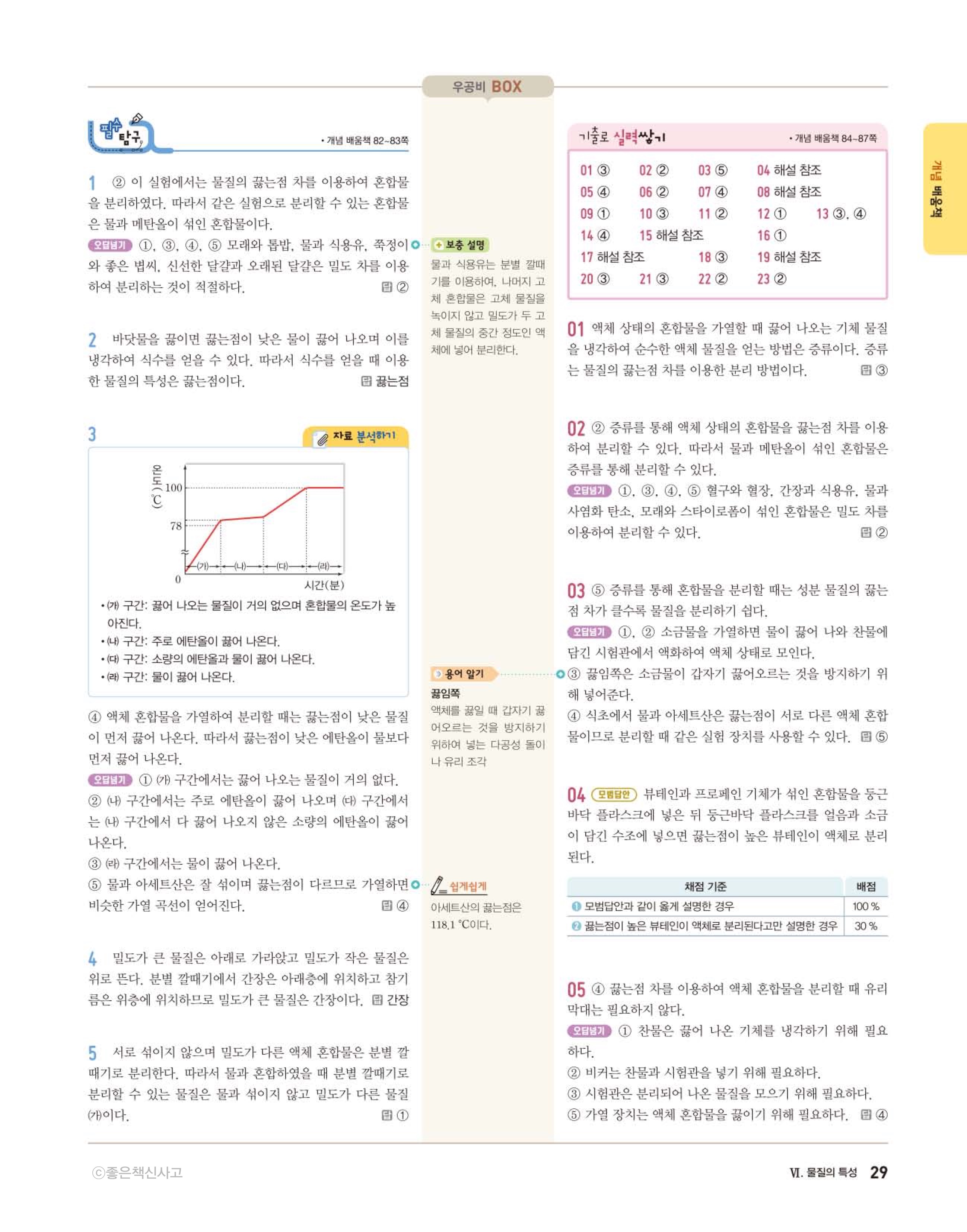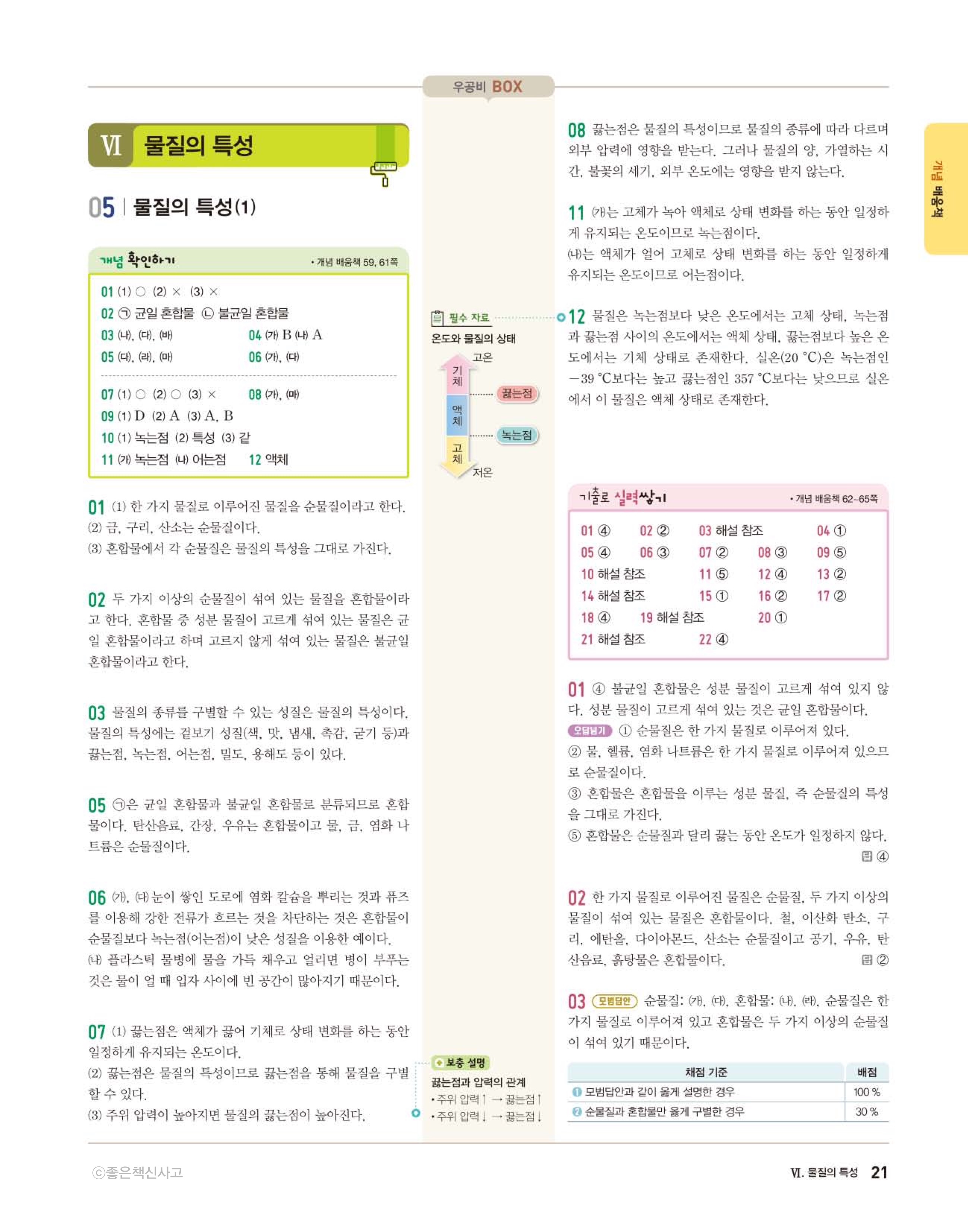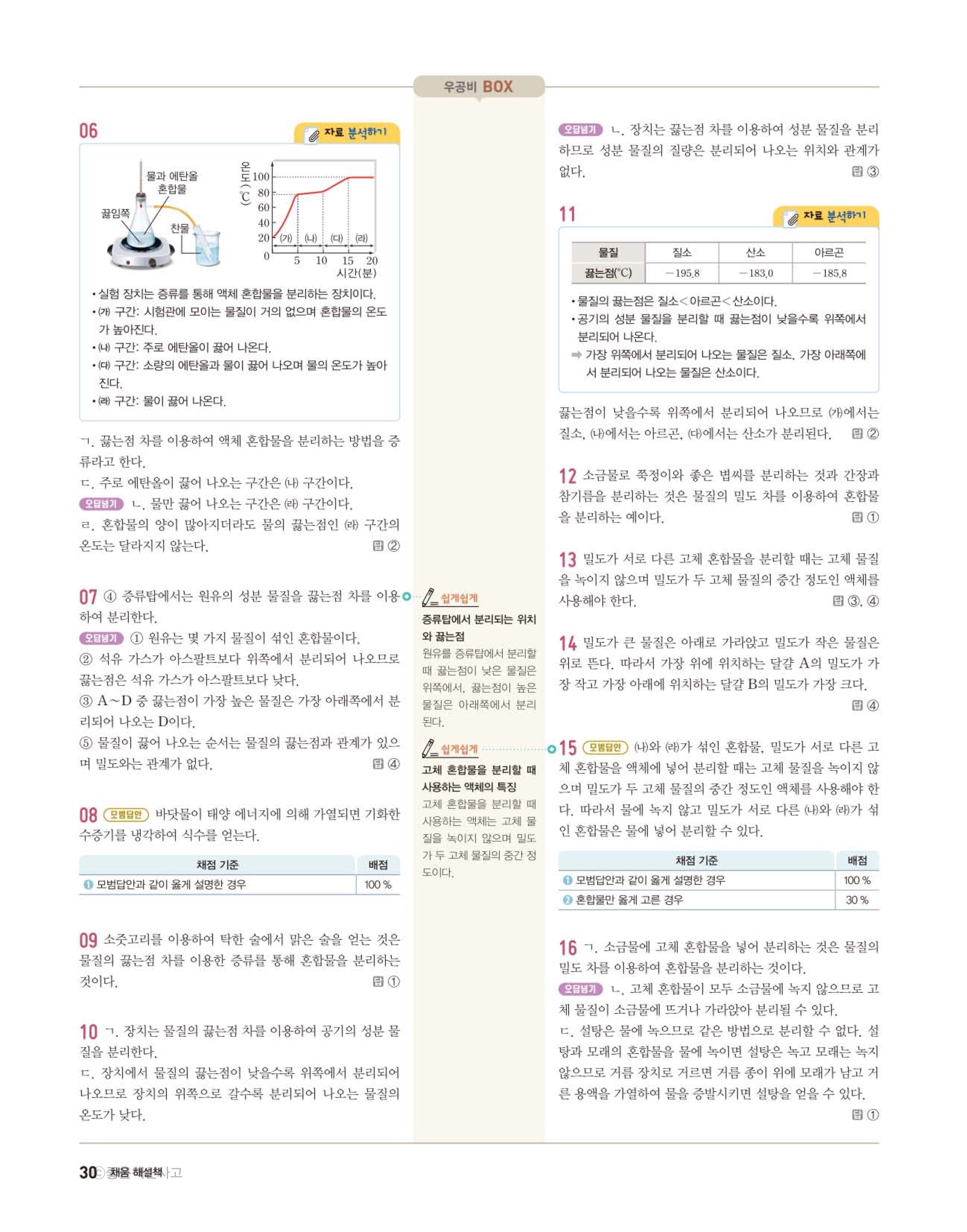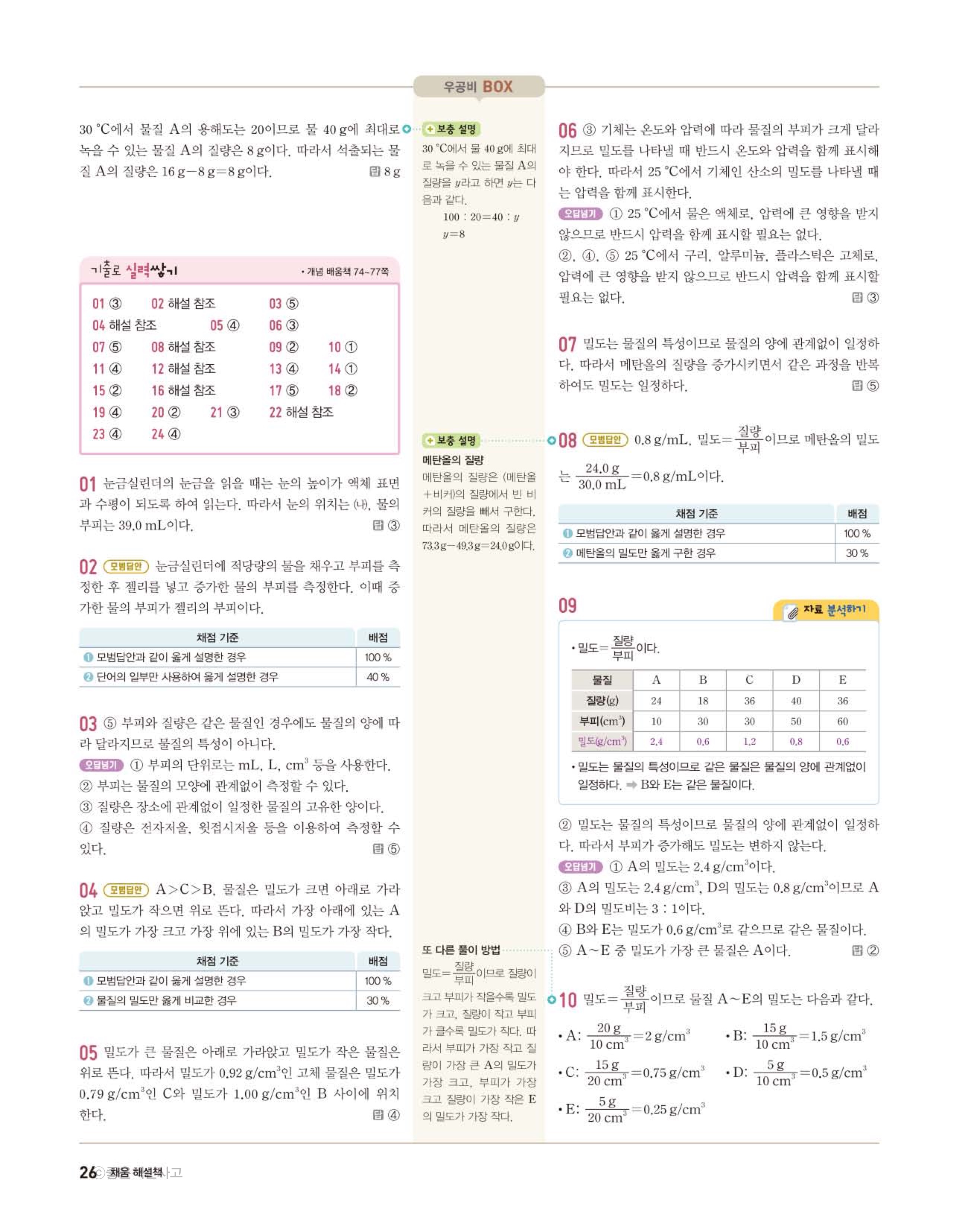 우공비 중등과학 2-2 답지 해설 바로보는 사진답지 빠른답지 모바일최적화