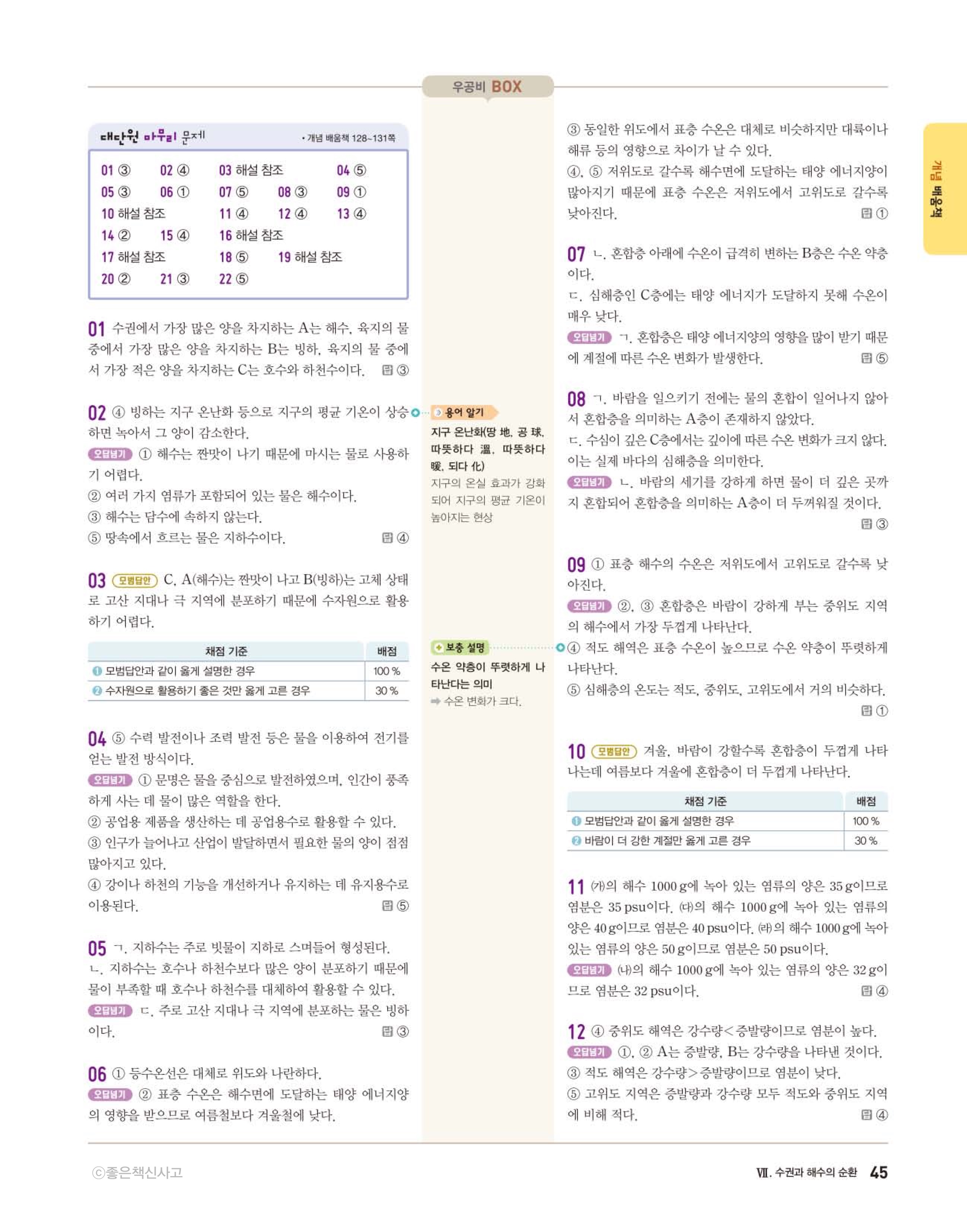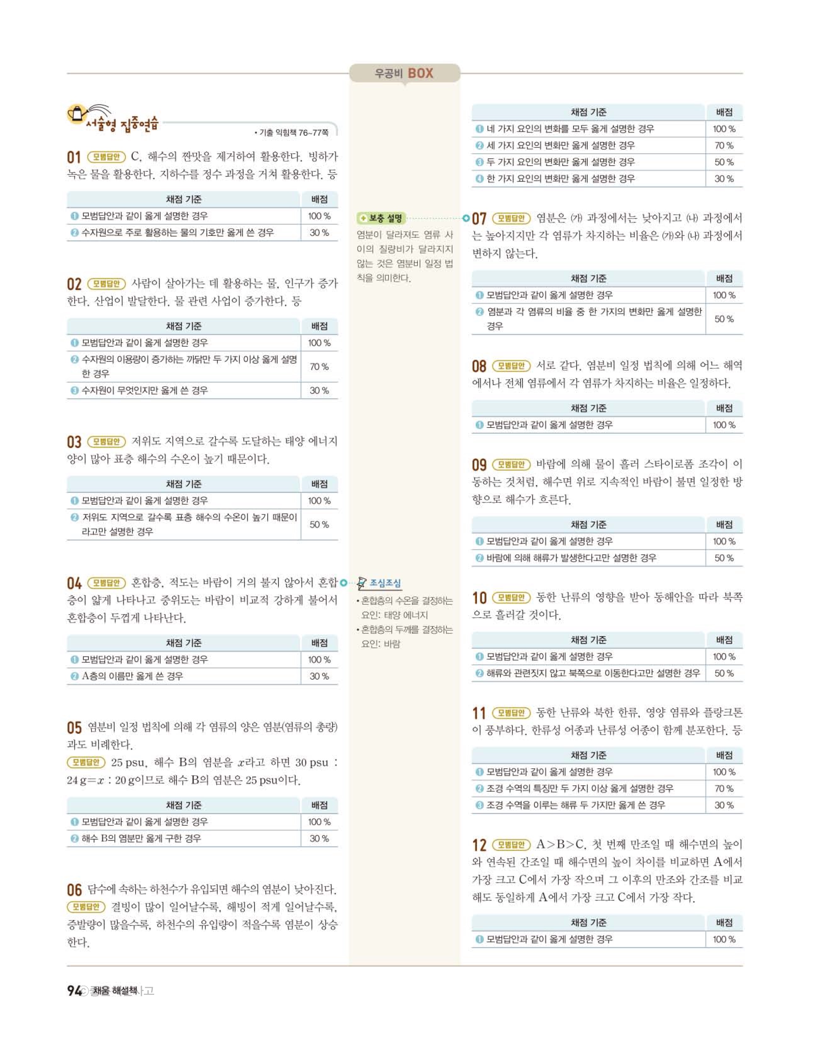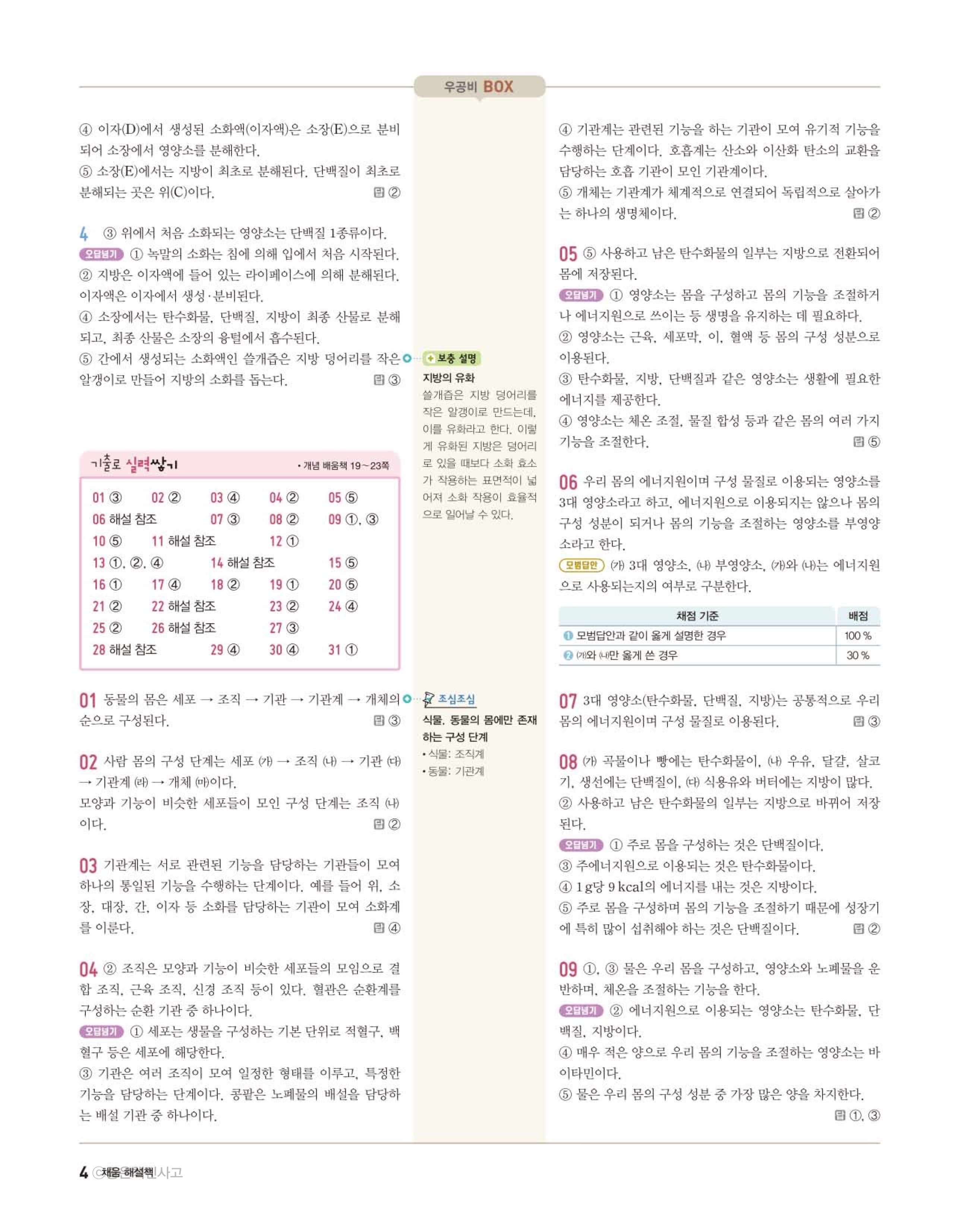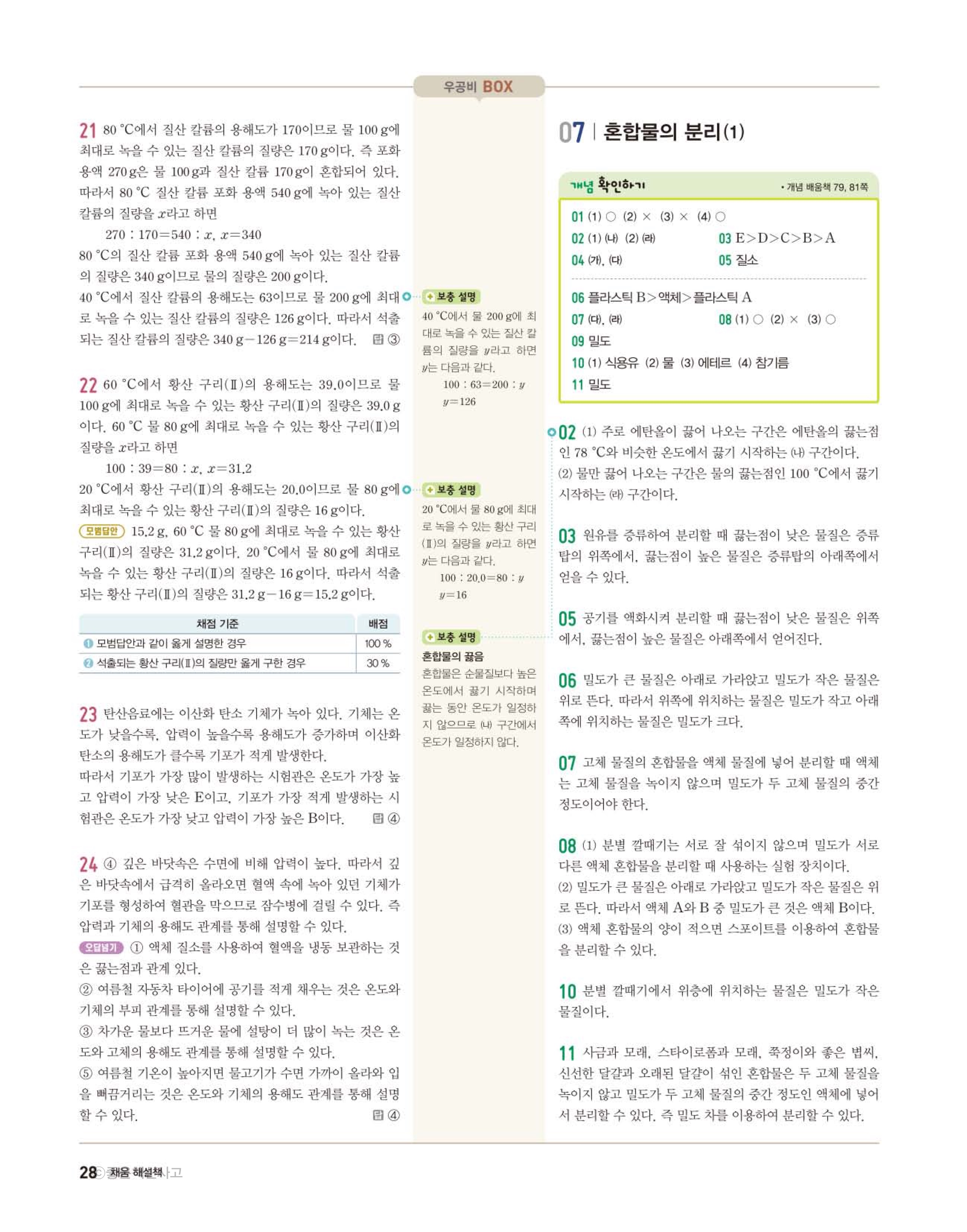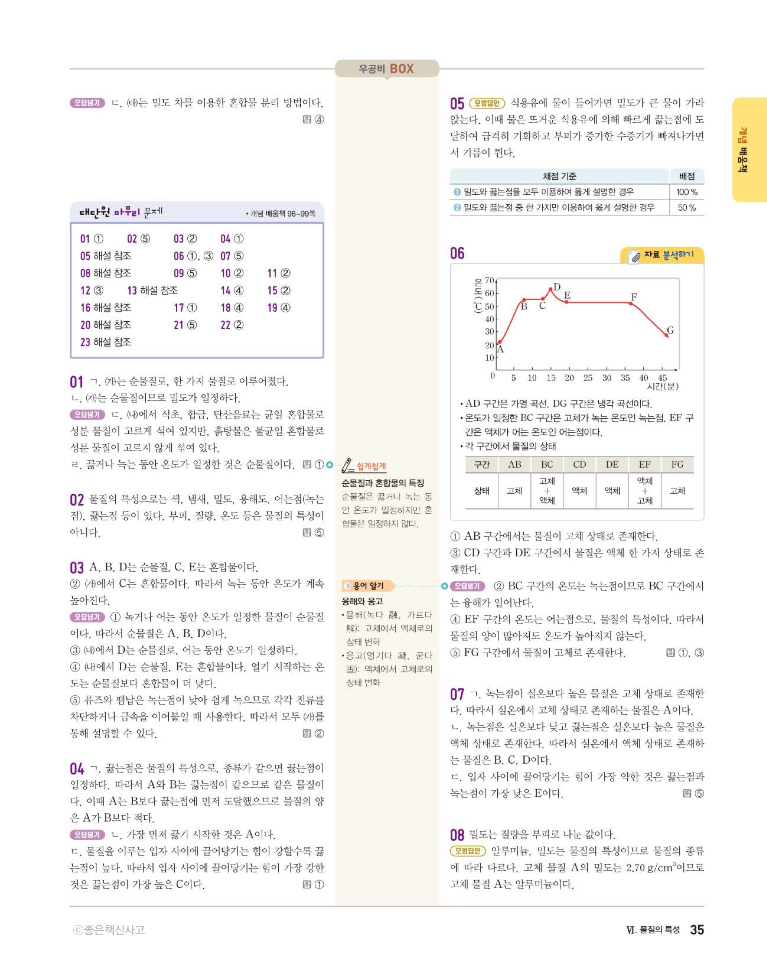 우공비 중등과학 2-2 답지 해설 바로보는 사진답지 빠른답지 모바일최적화