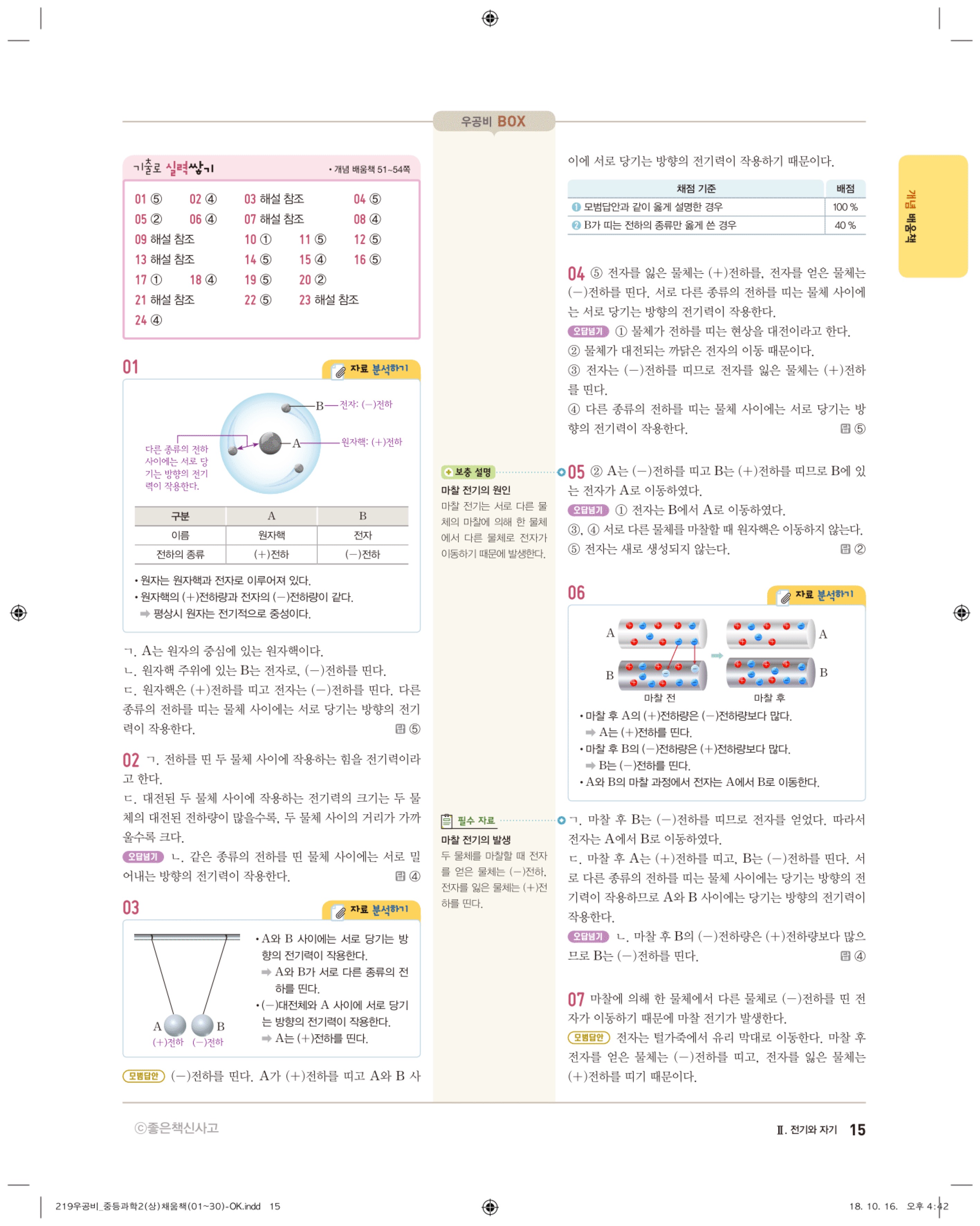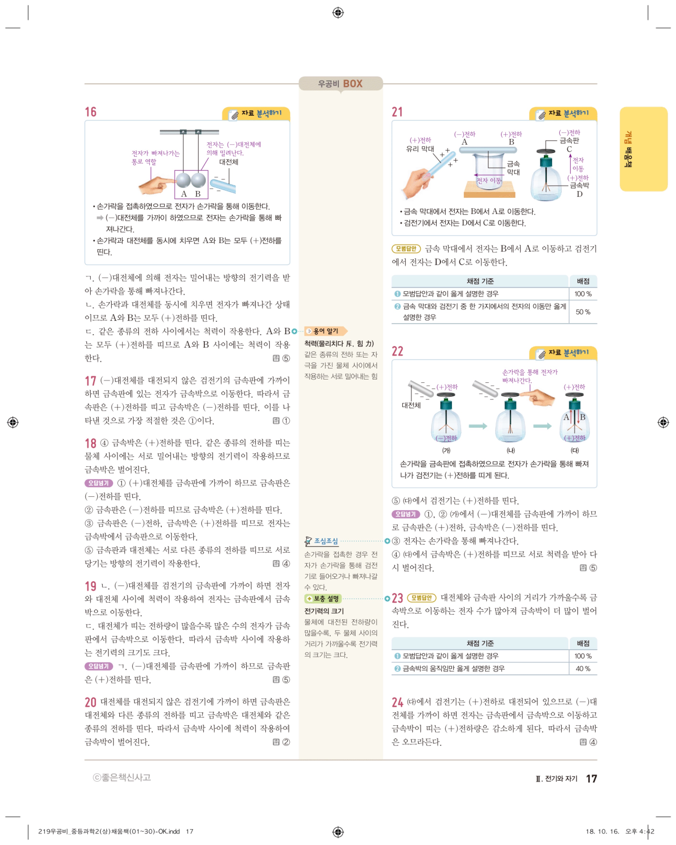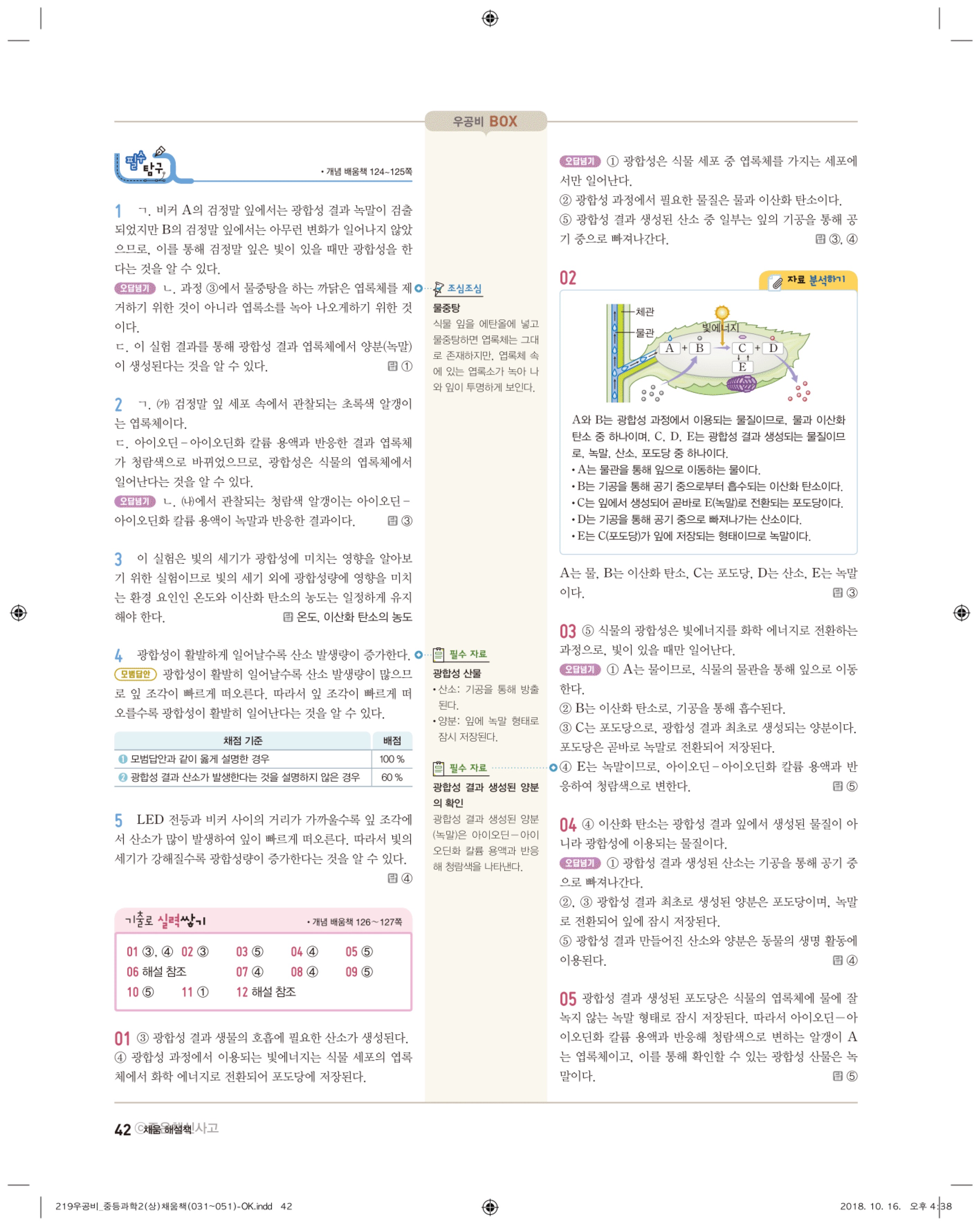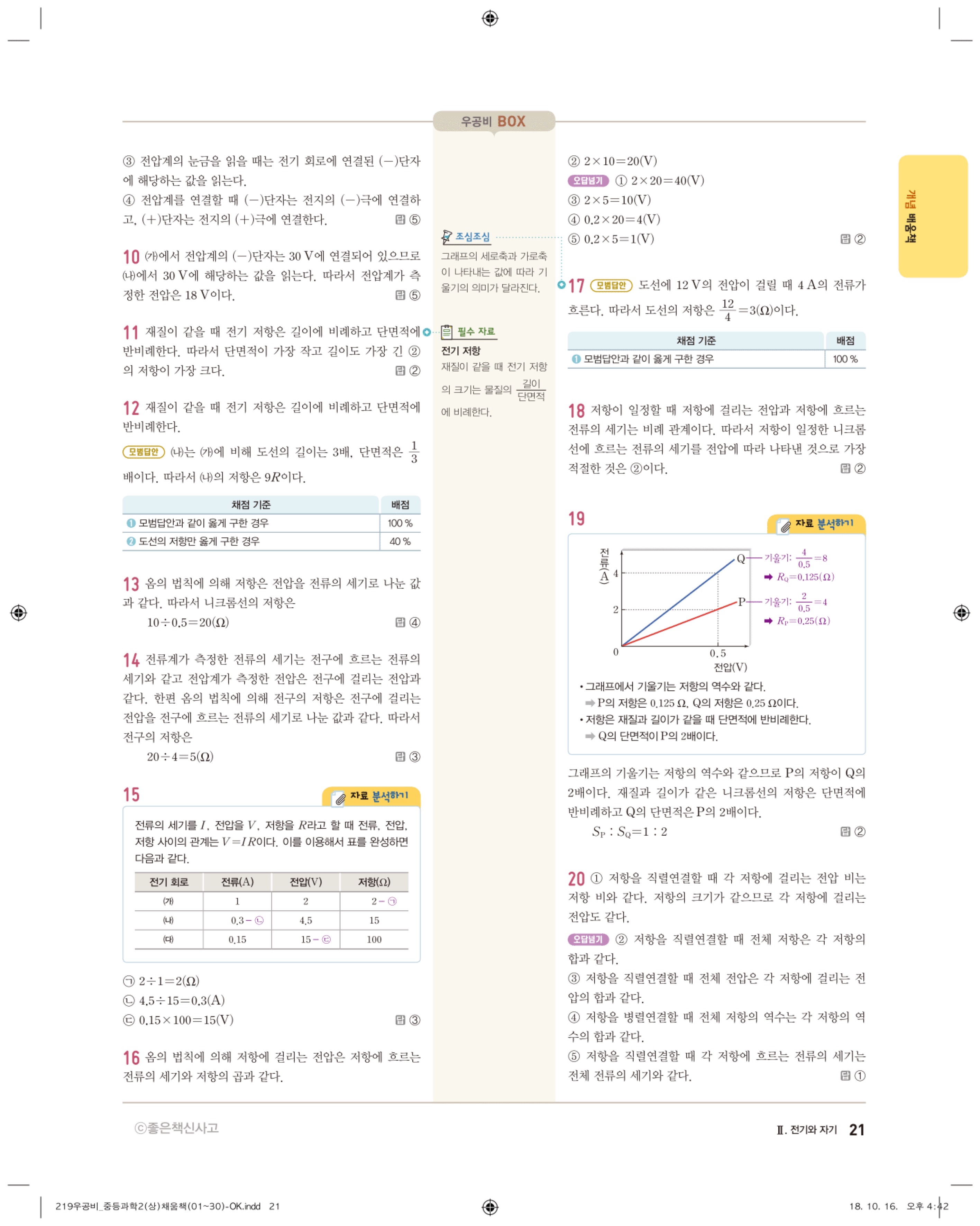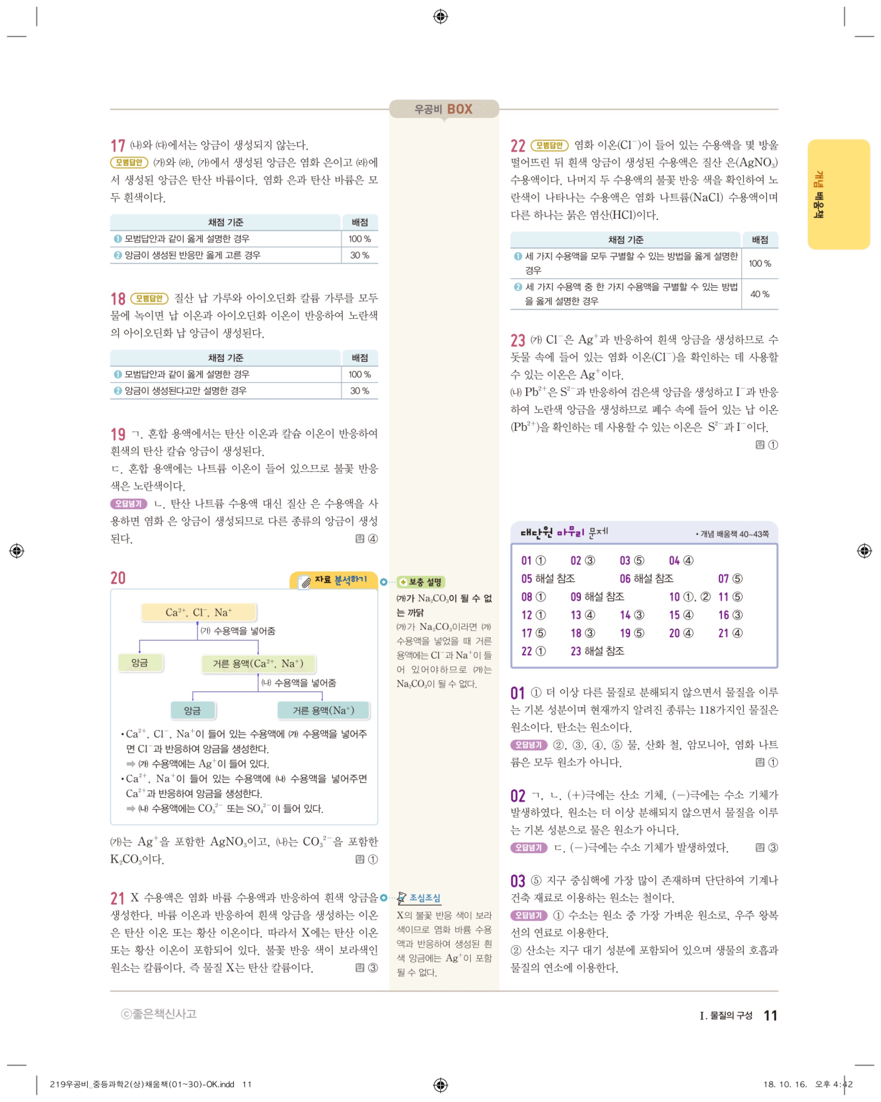 우공비 중등과학 2-1 답지 해설 바로보는 사진답지 빠른답지 모바일최적화