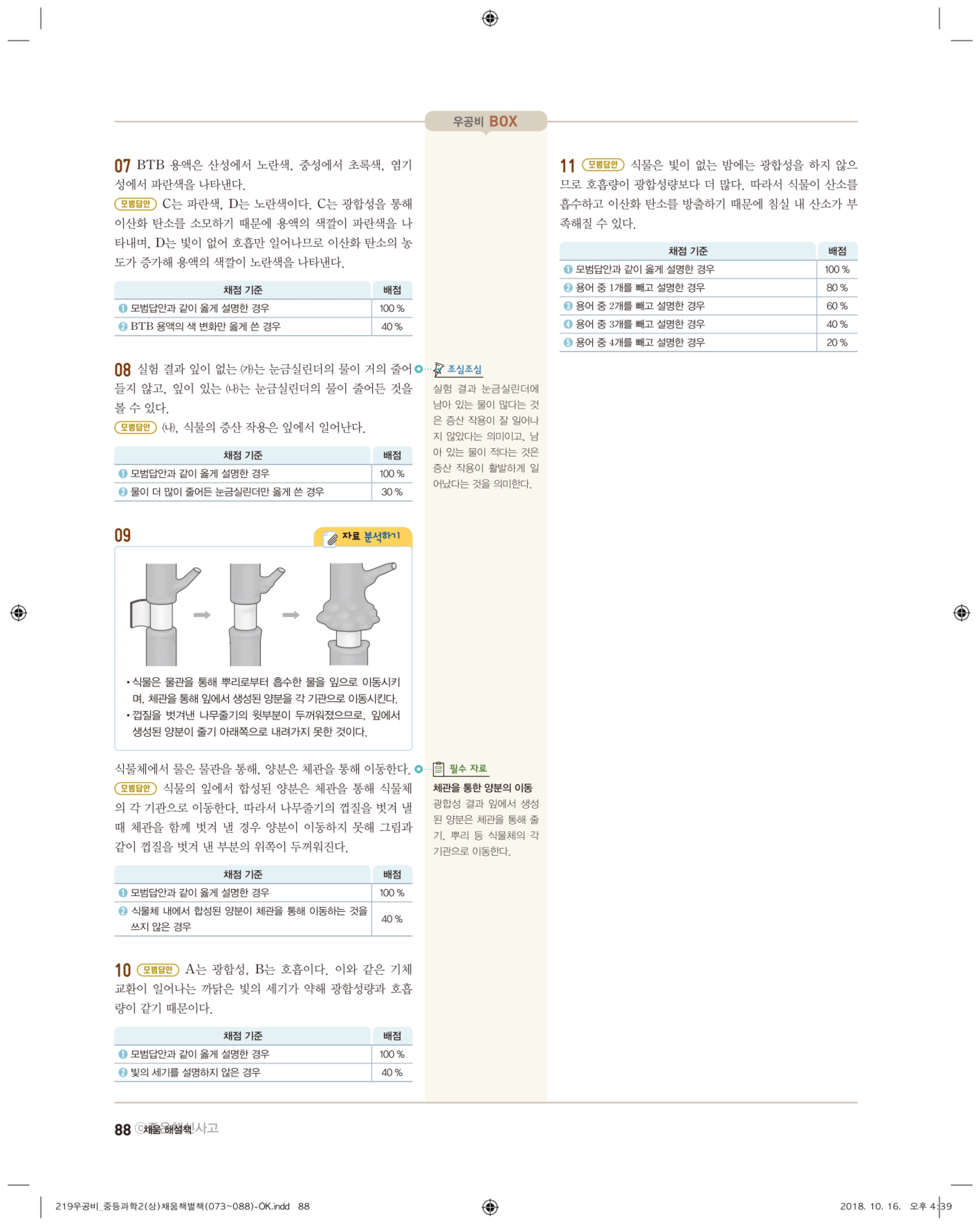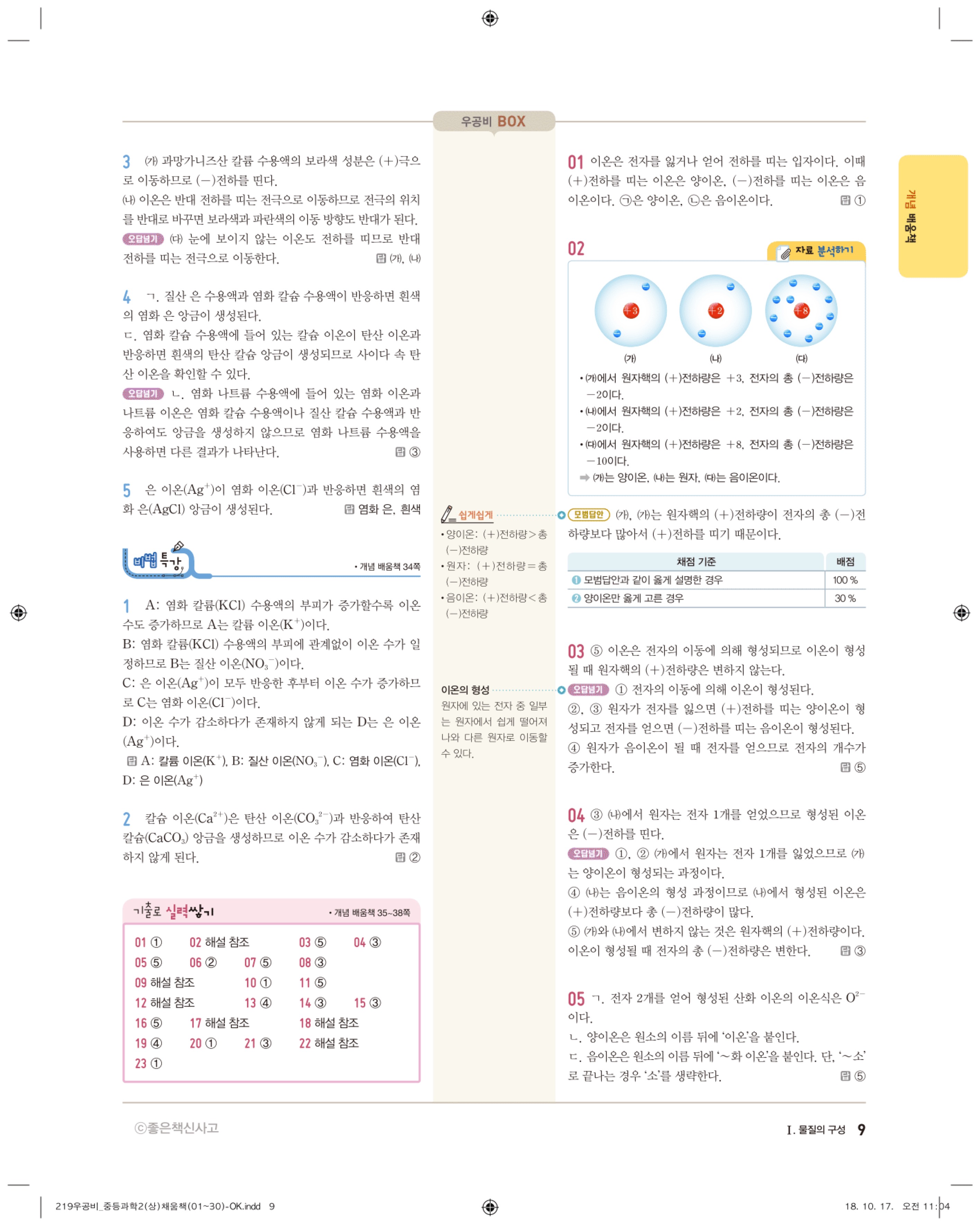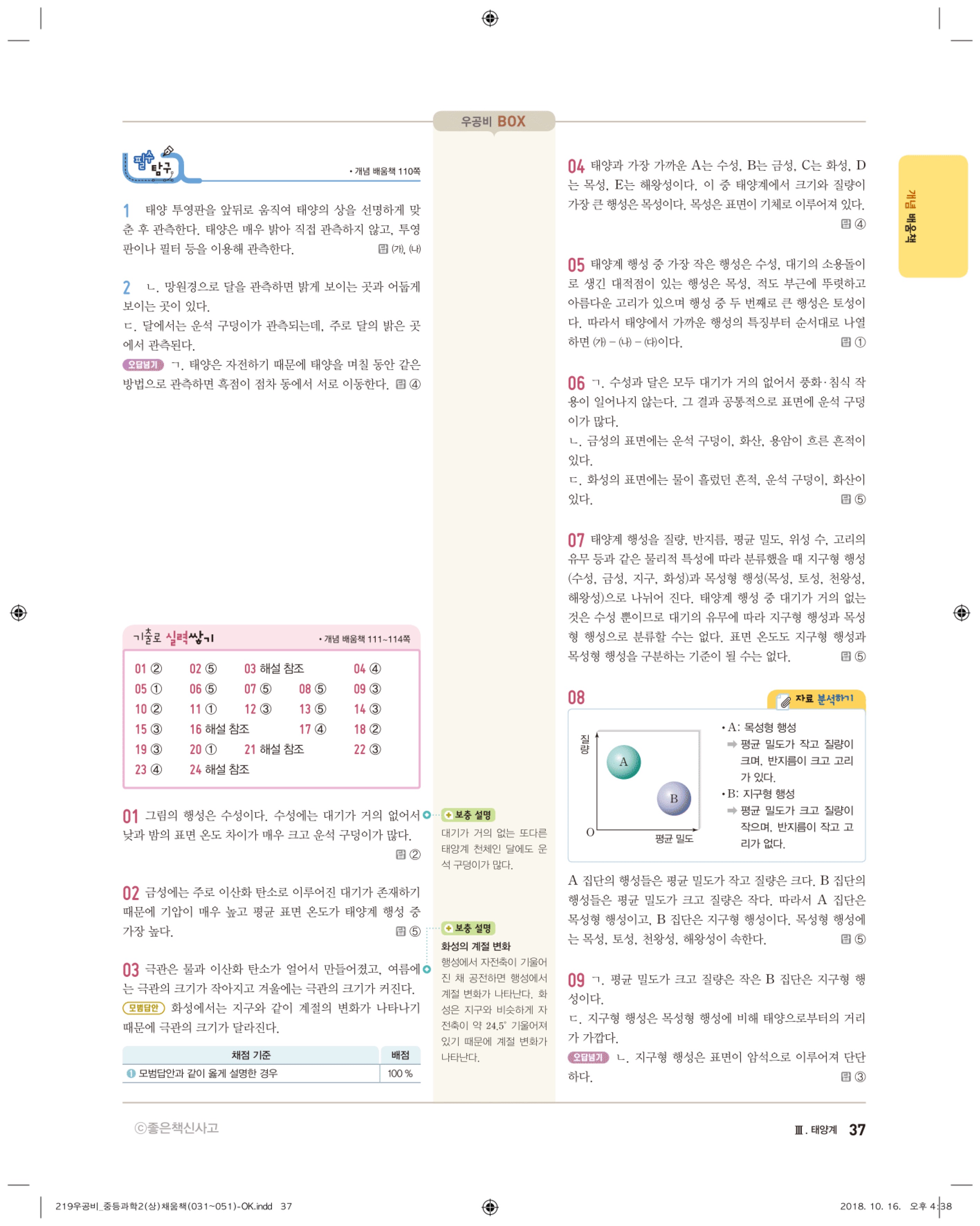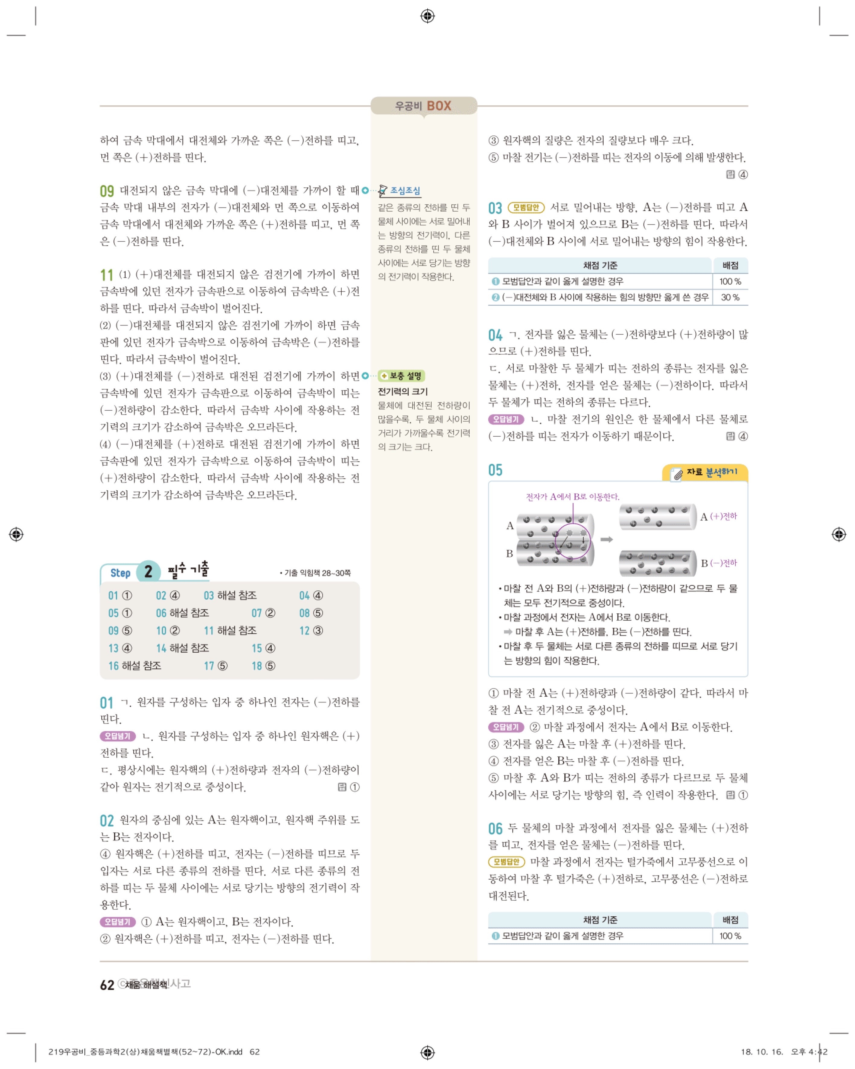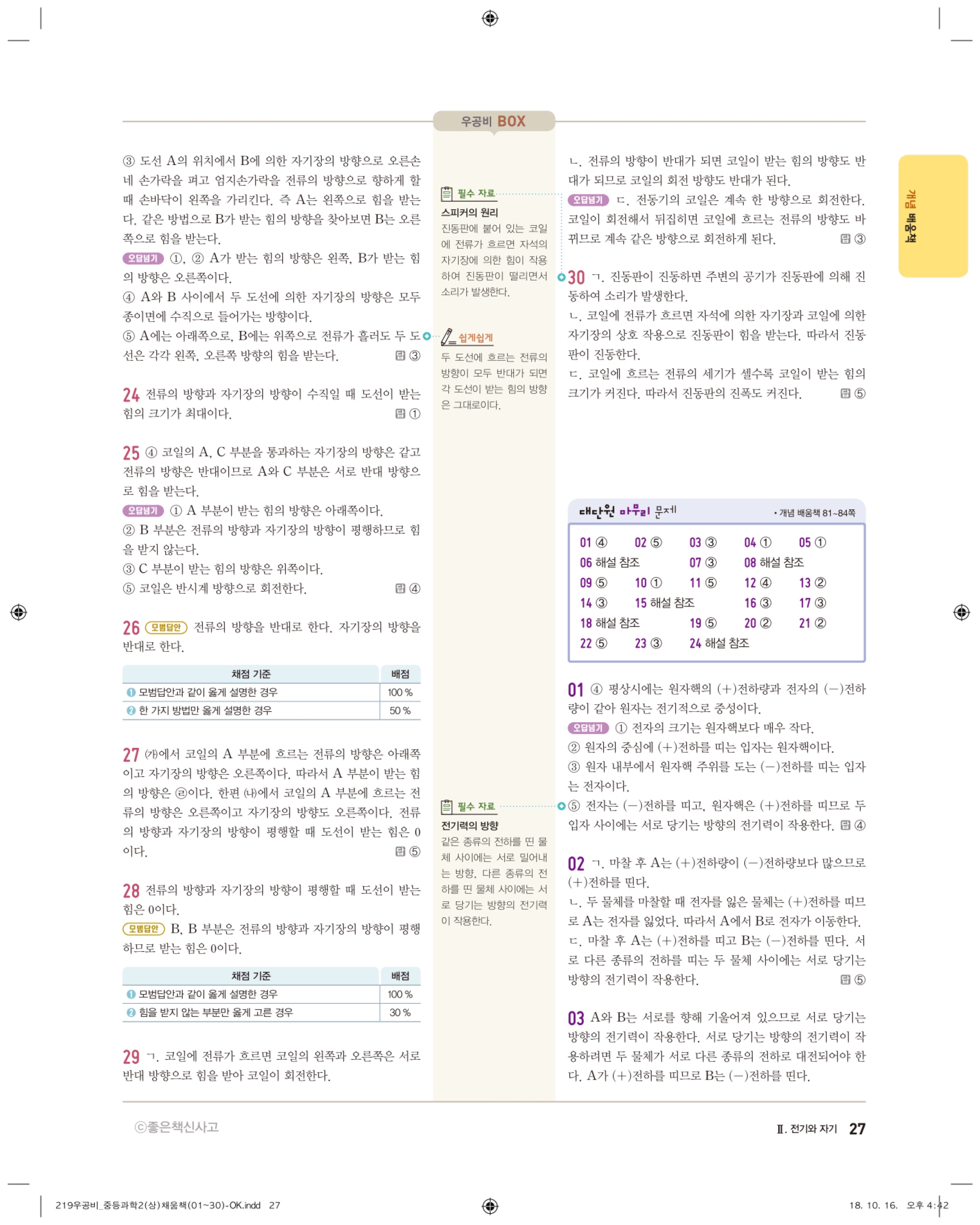 우공비 중등과학 2-1 답지 해설 바로보는 사진답지 빠른답지 모바일최적화