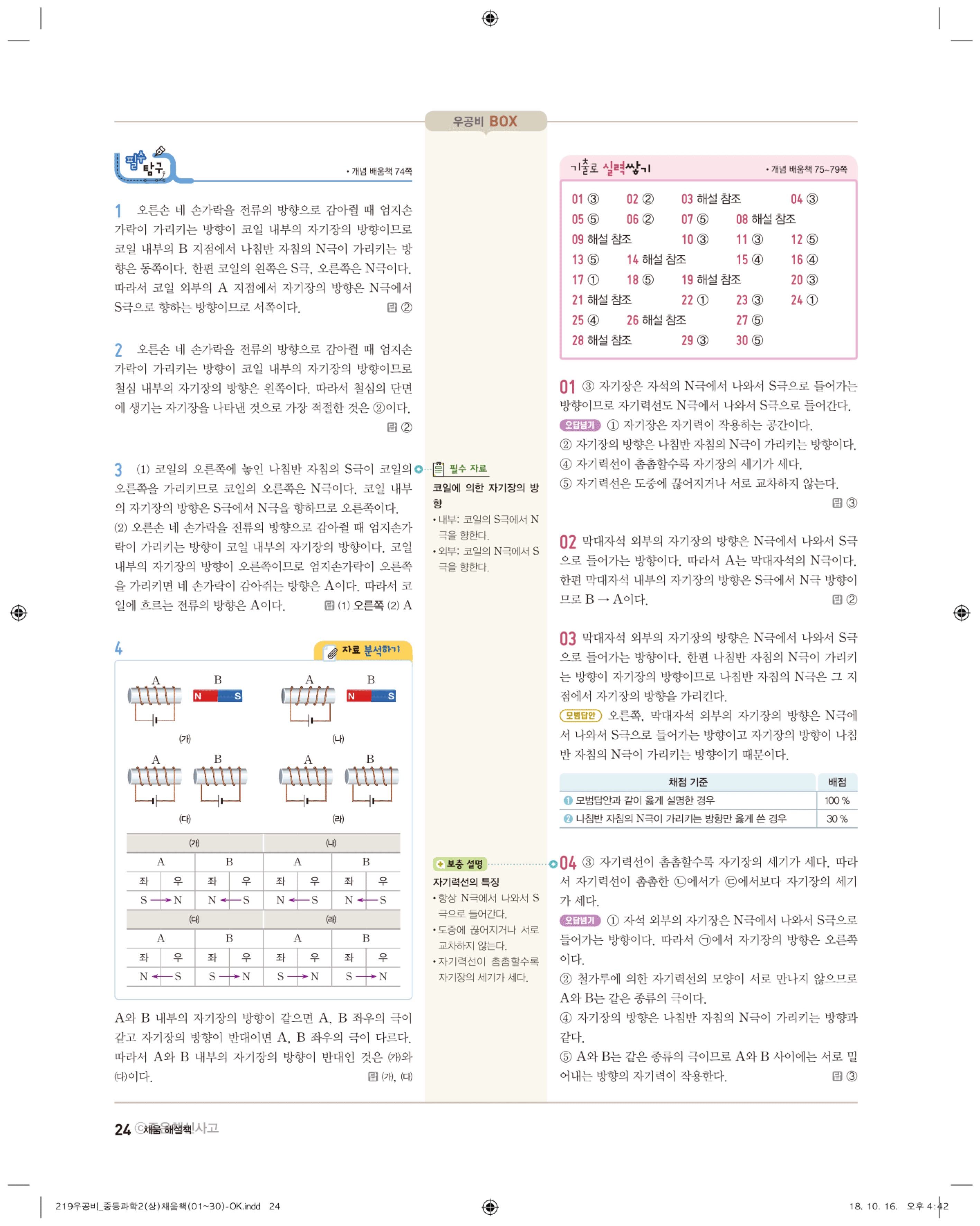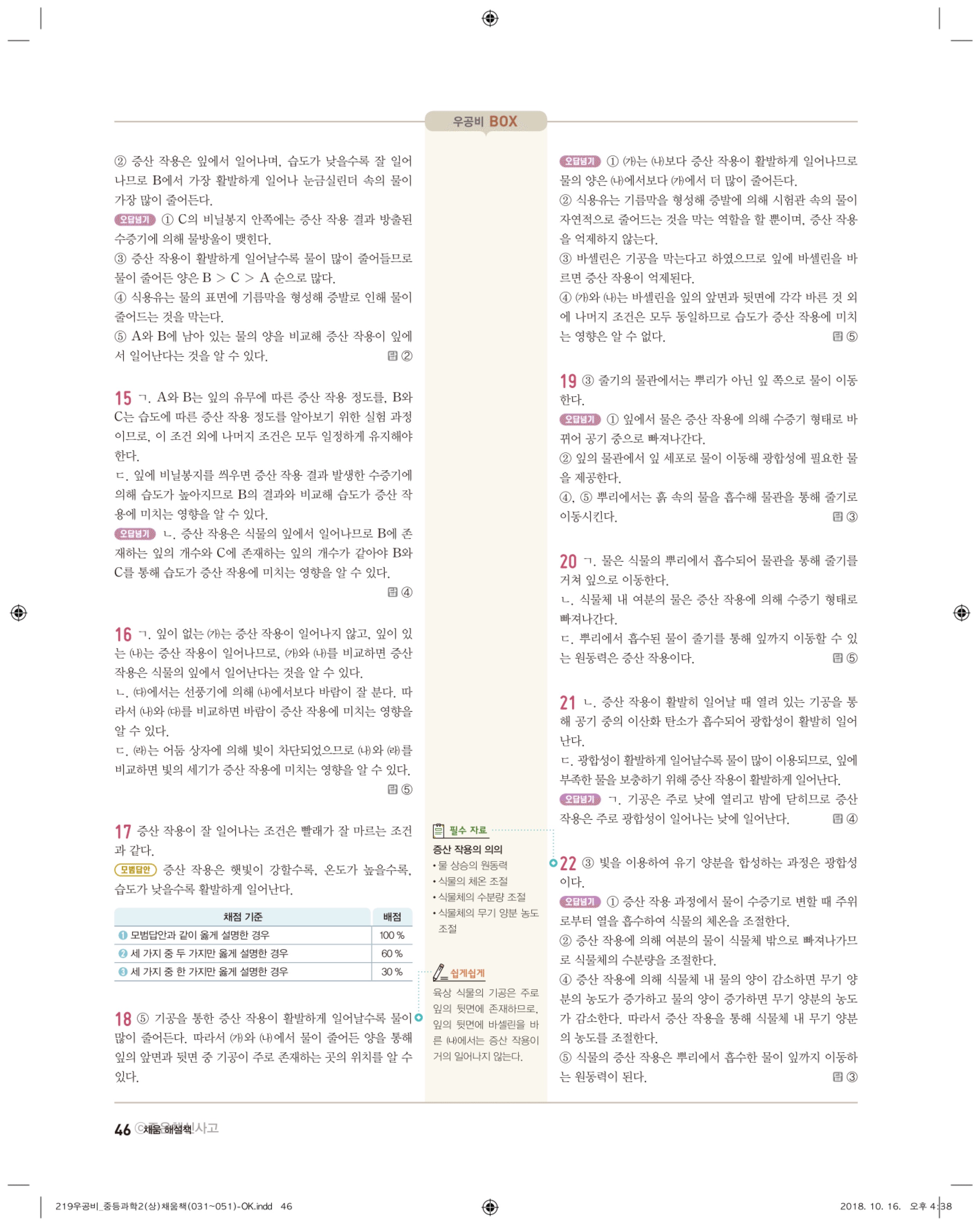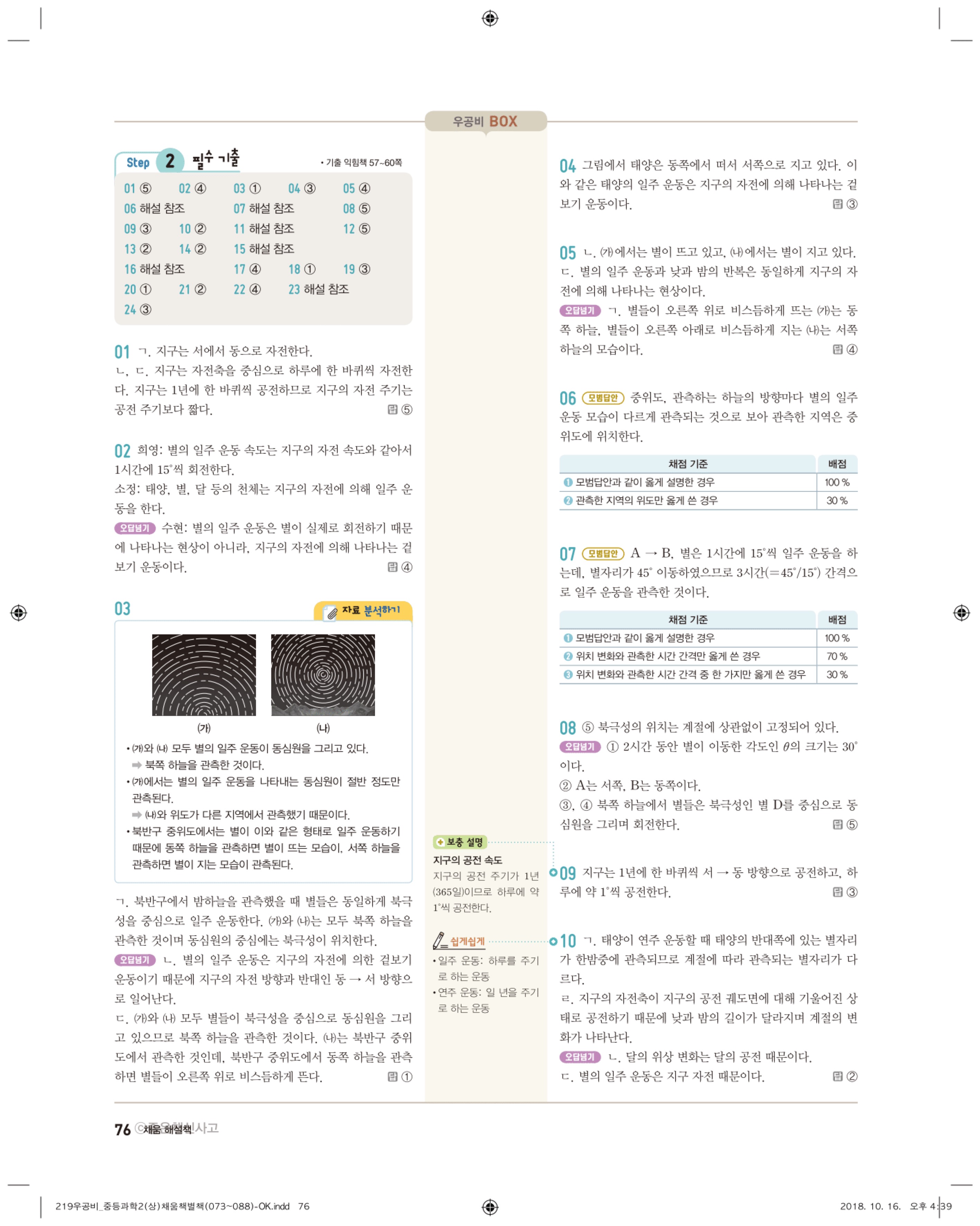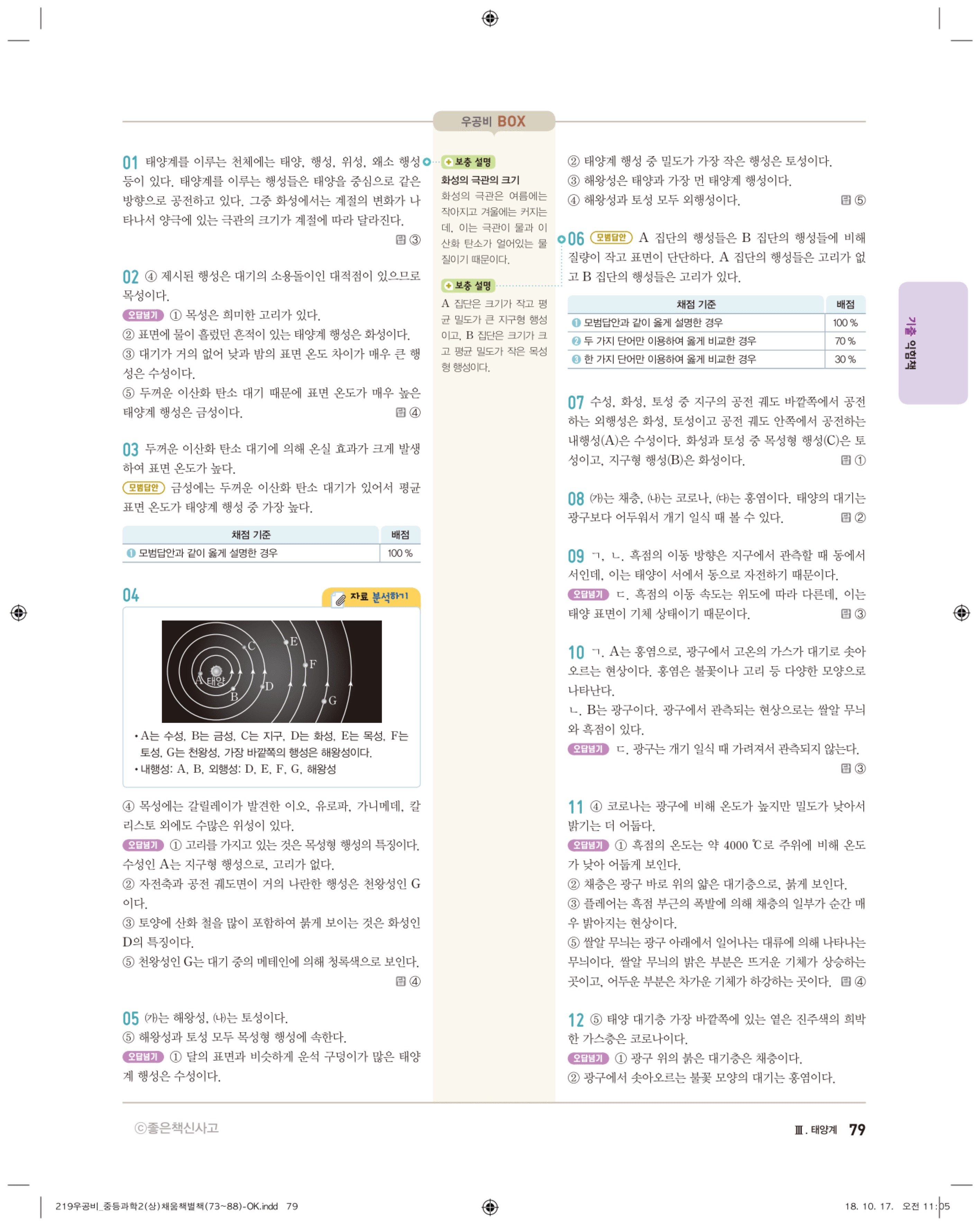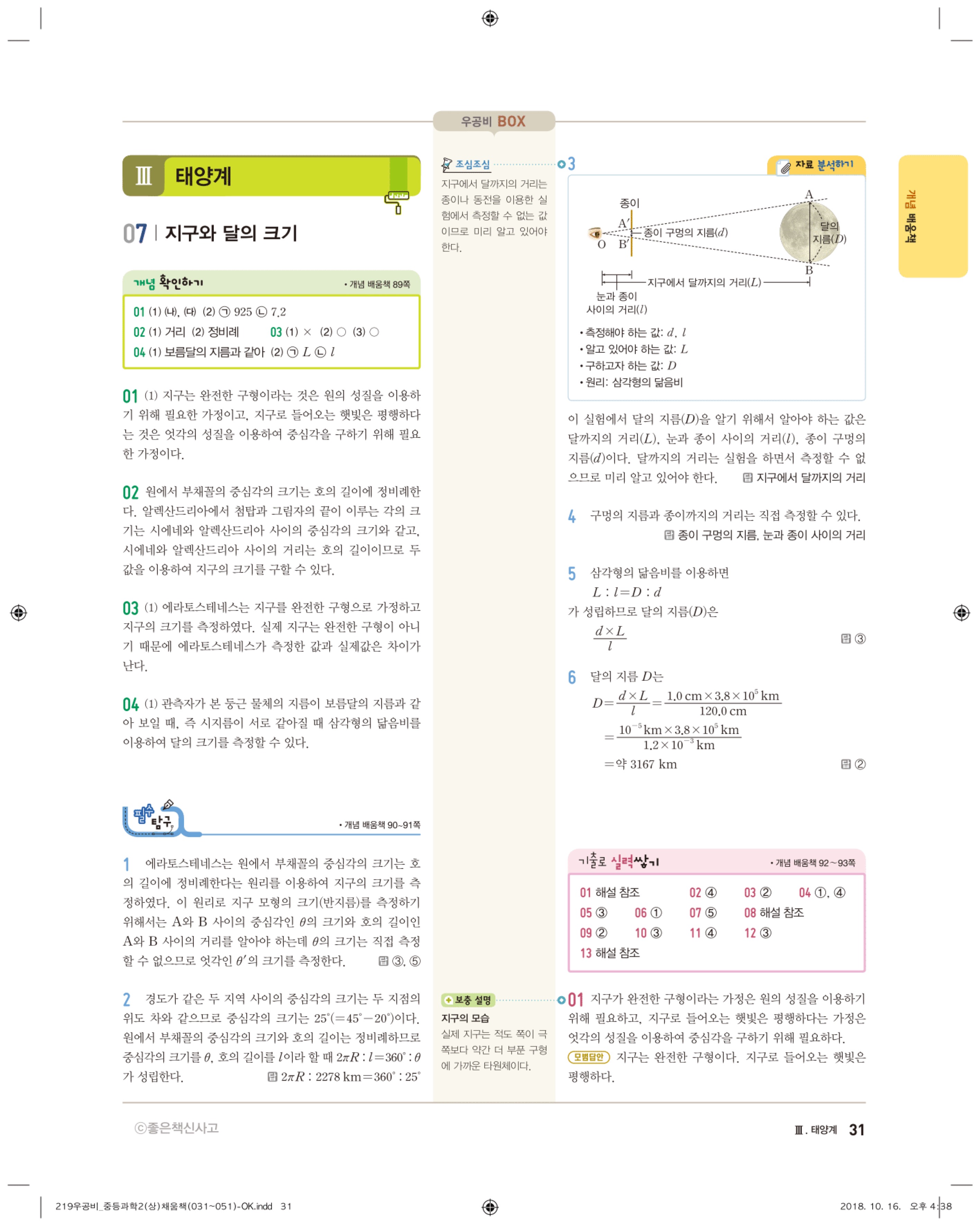 우공비 중등과학 2-1 답지 해설 바로보는 사진답지 빠른답지 모바일최적화