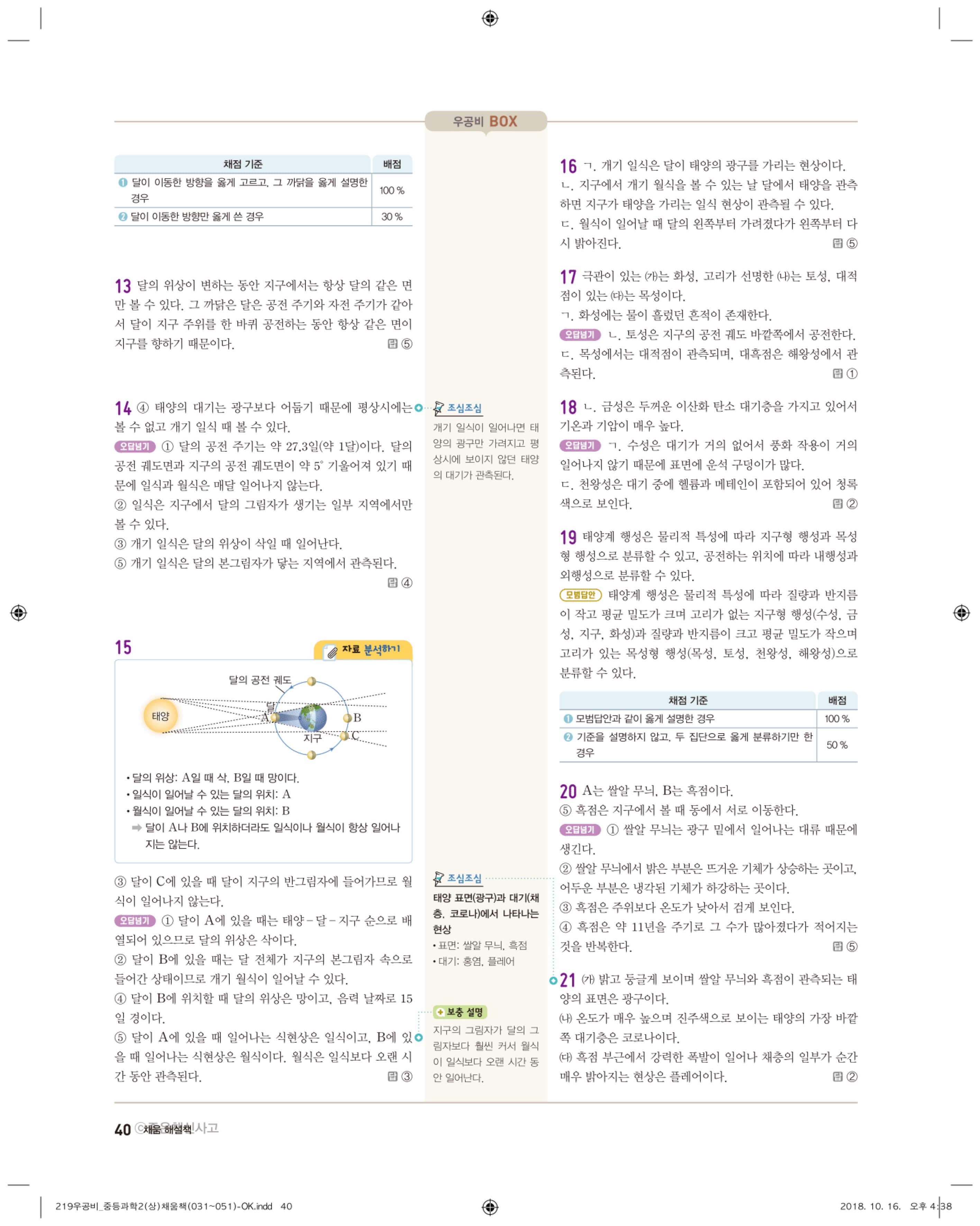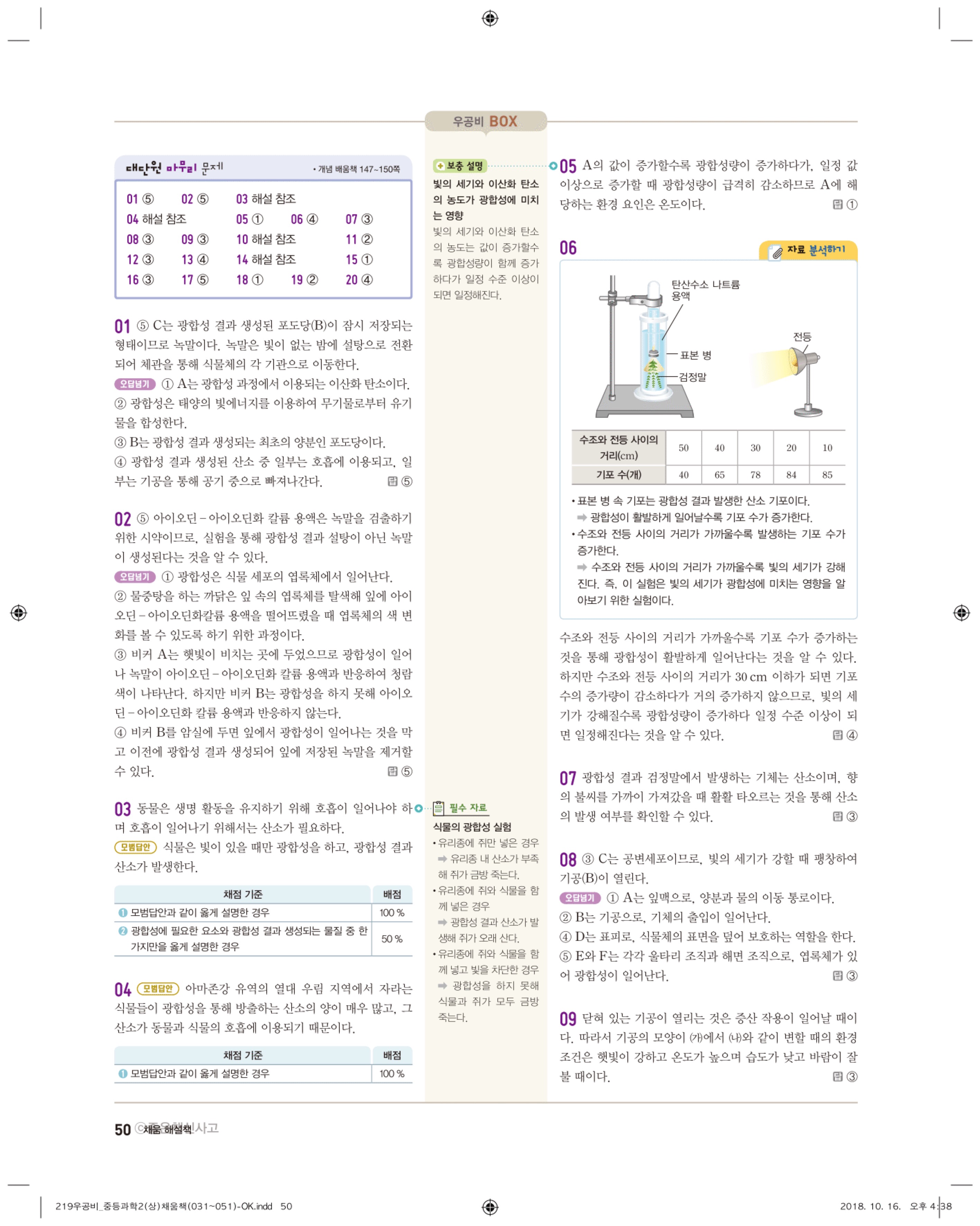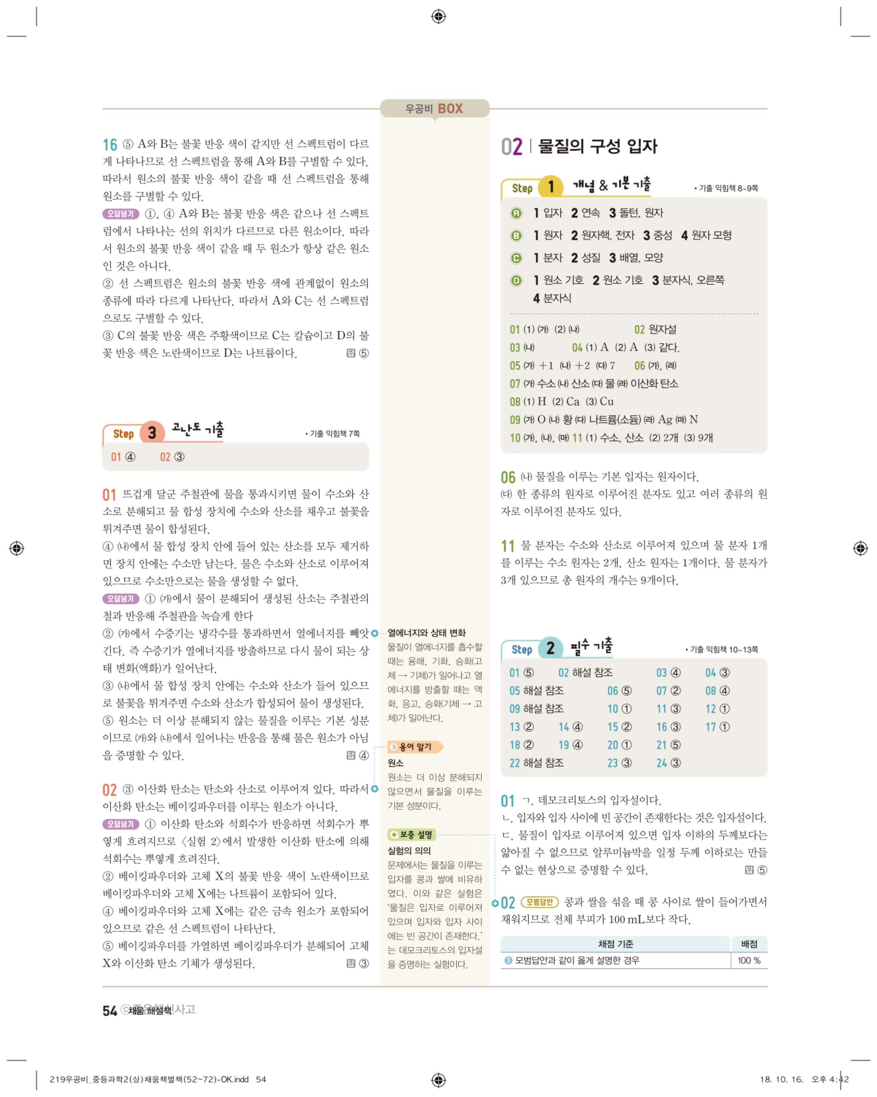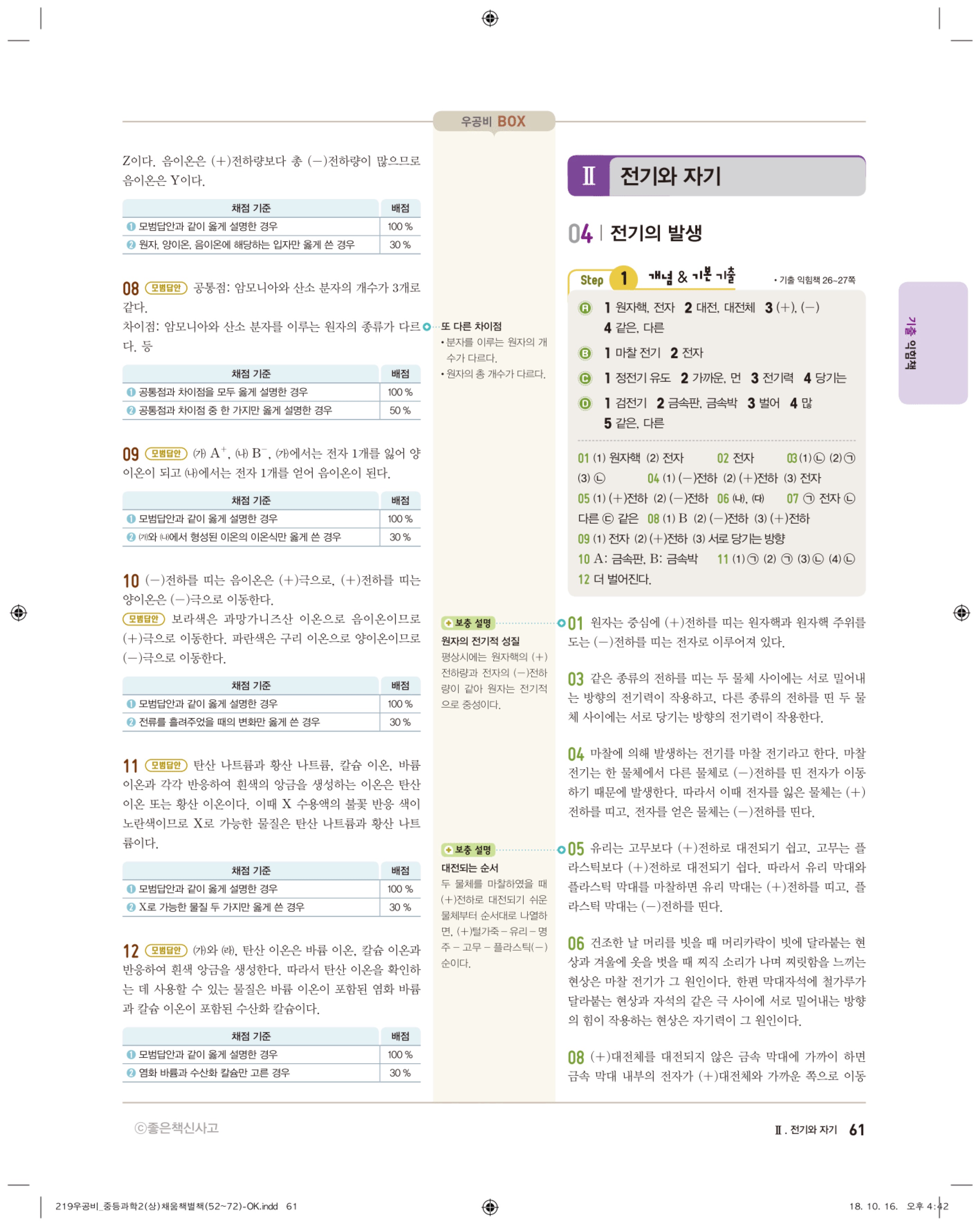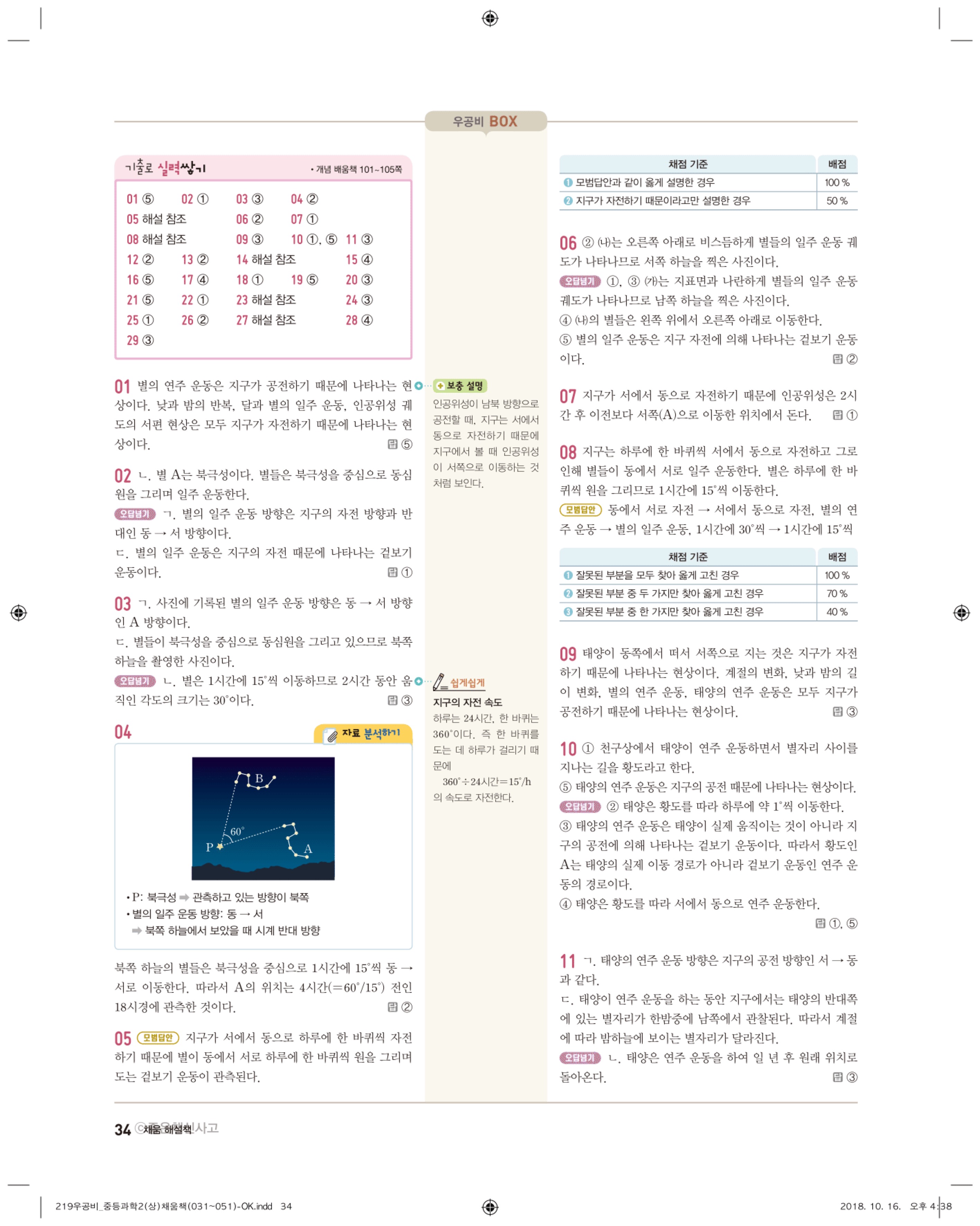 우공비 중등과학 2-1 답지 해설 바로보는 사진답지 빠른답지 모바일최적화