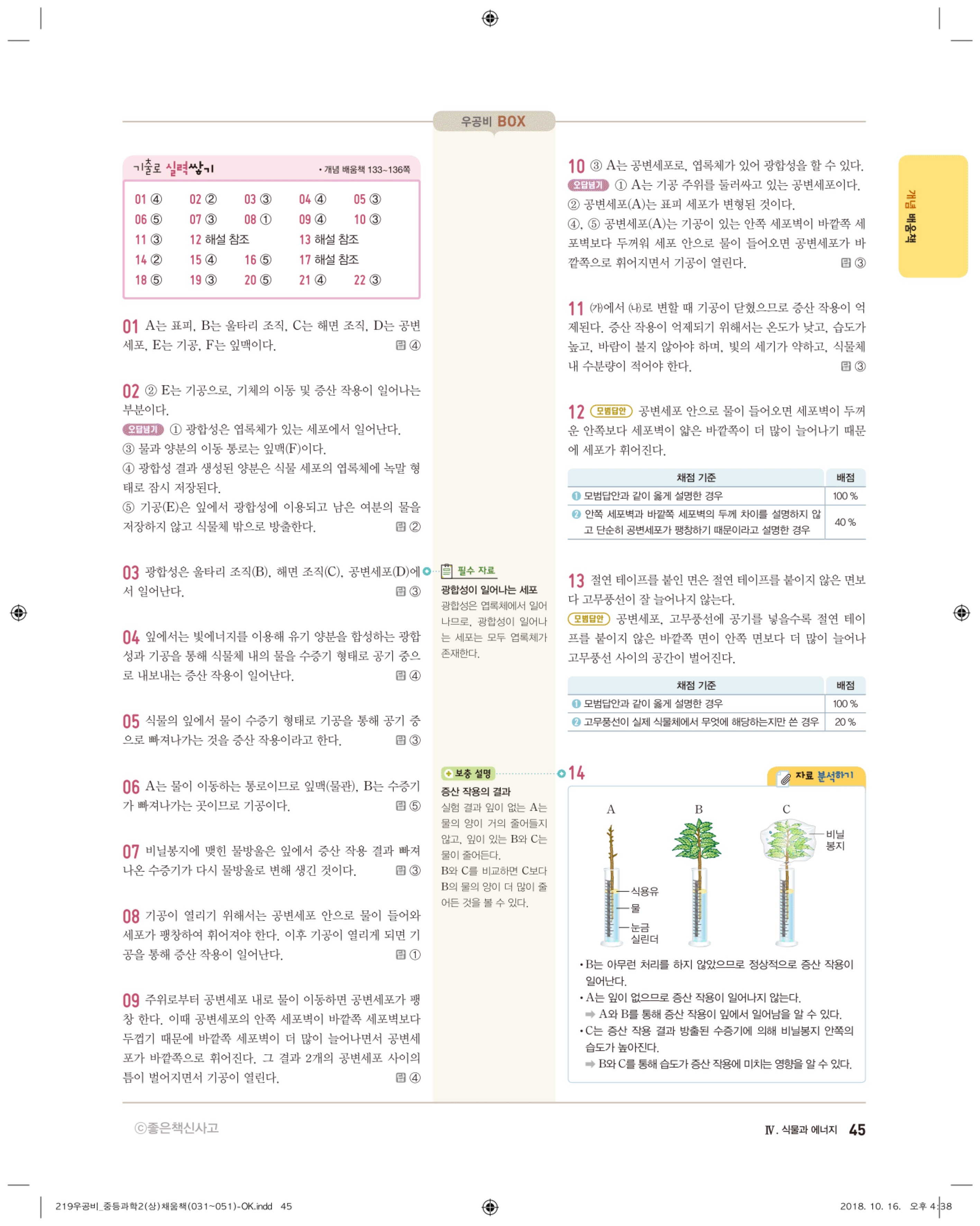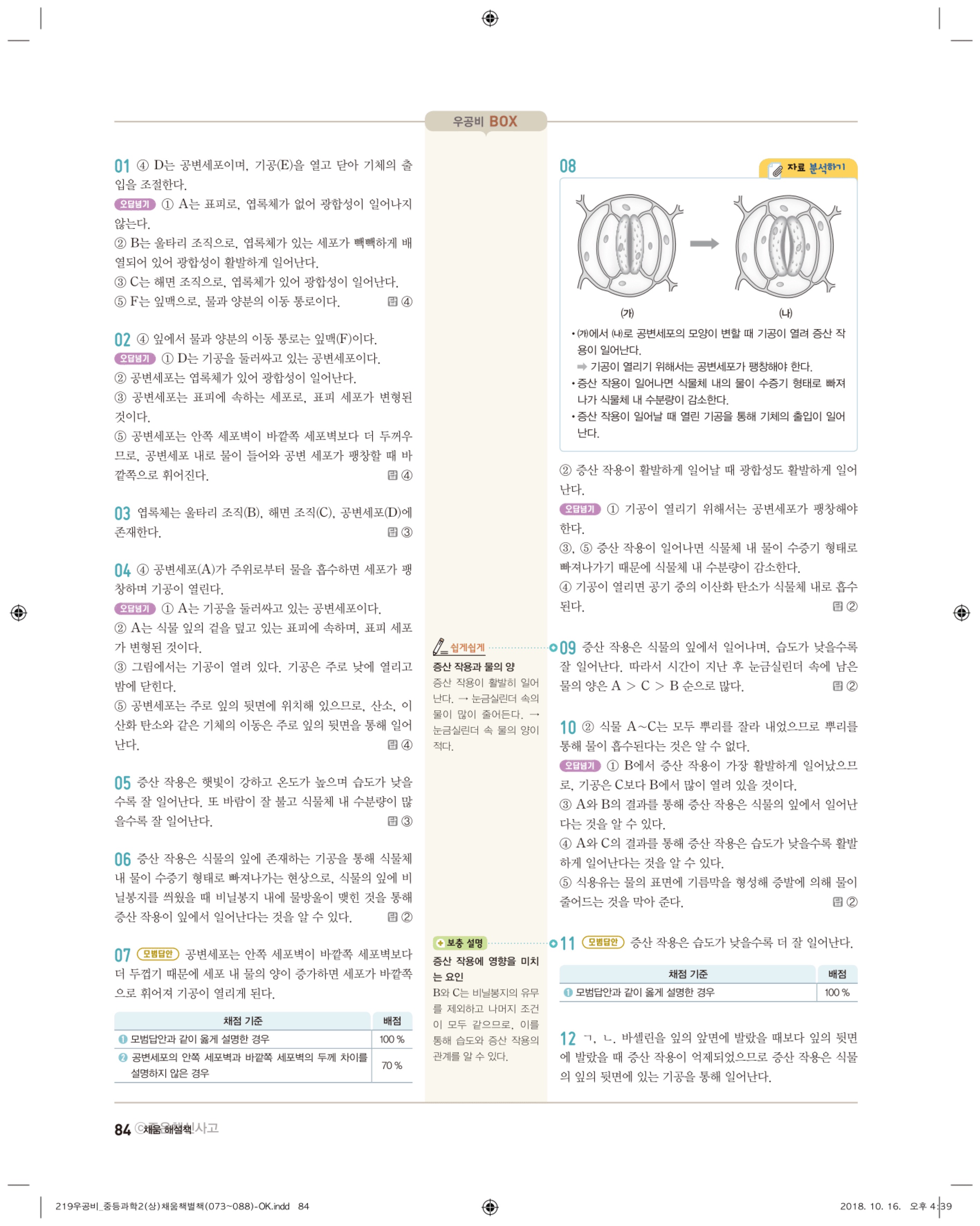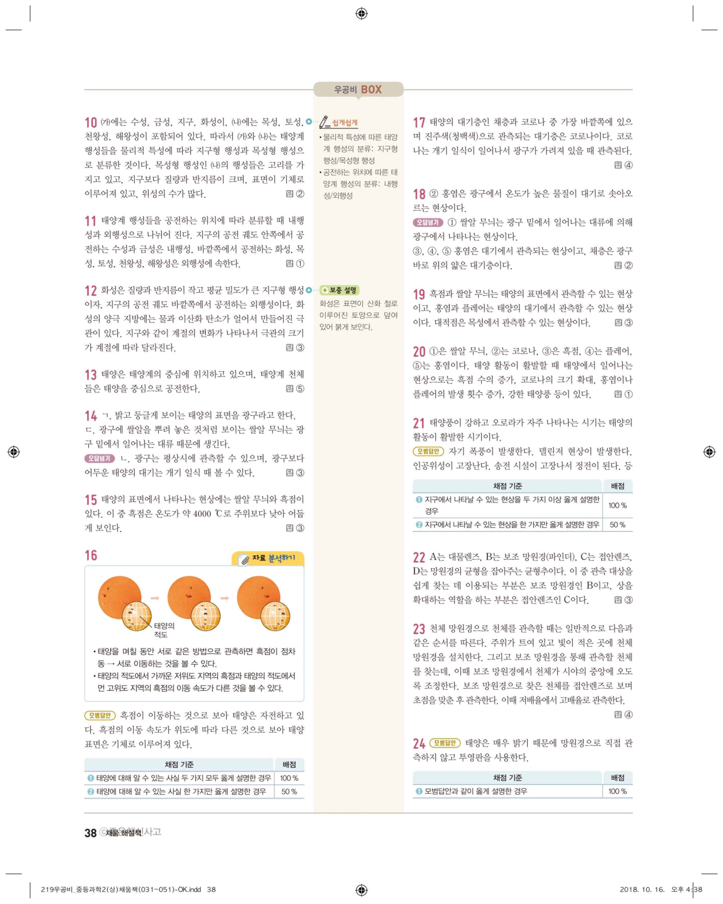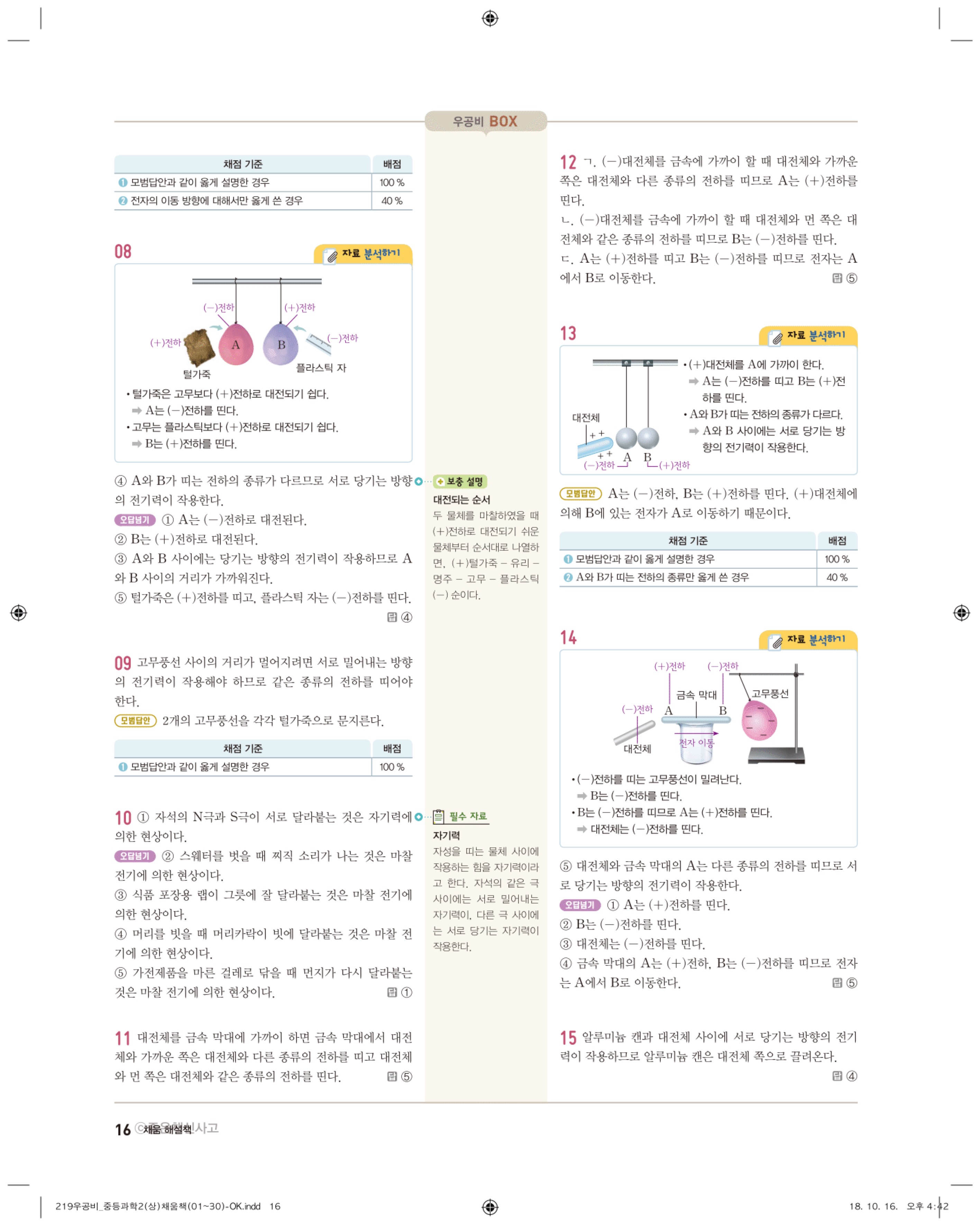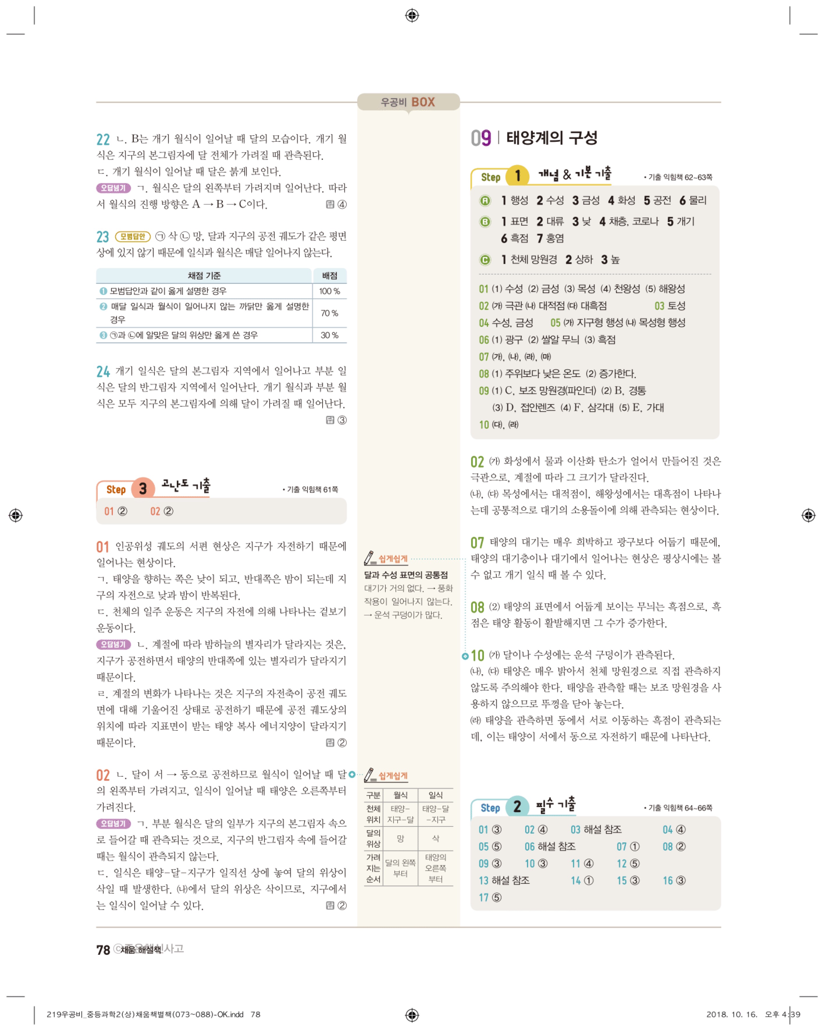 우공비 중등과학 2-1 답지 해설 바로보는 사진답지 빠른답지 모바일최적화