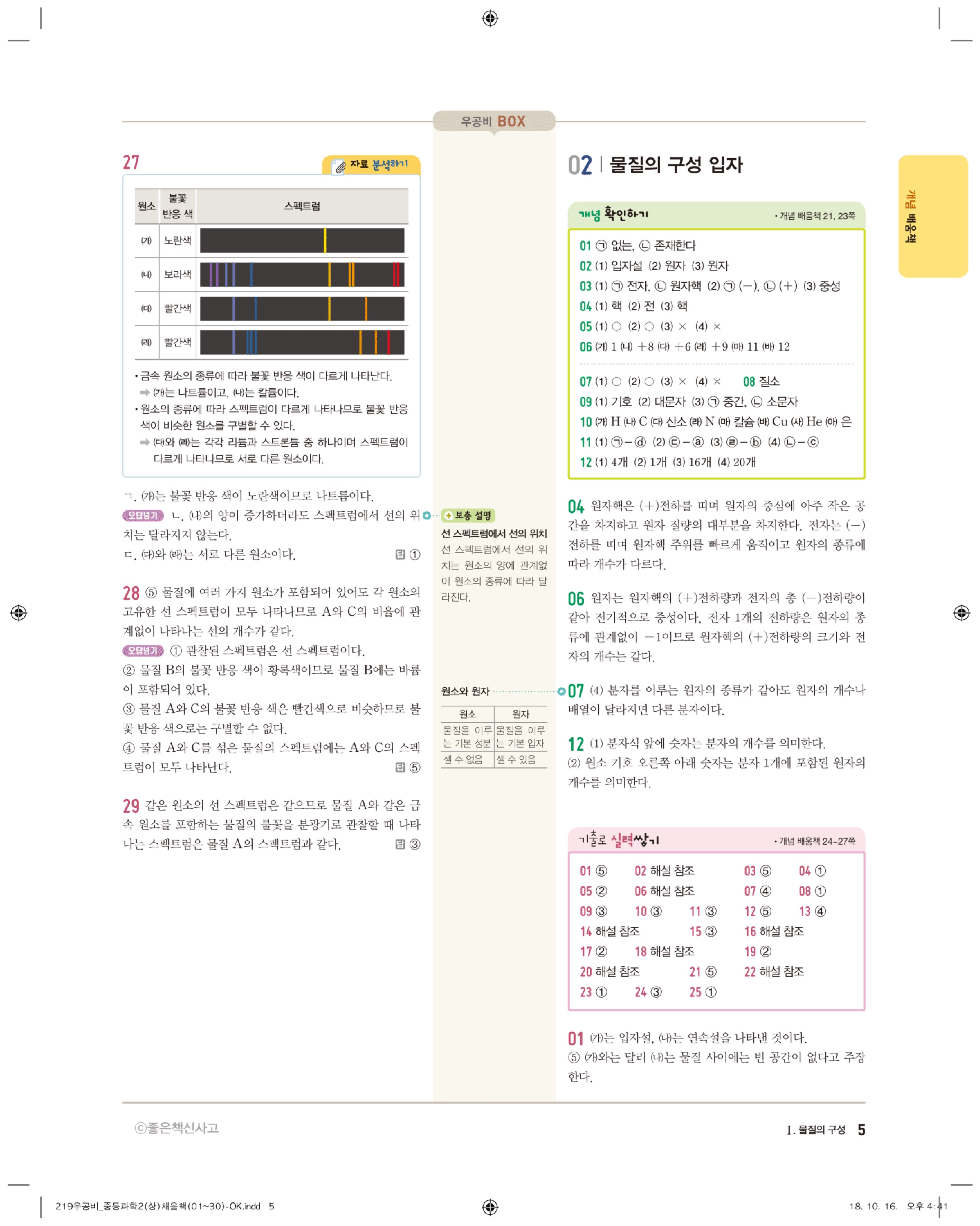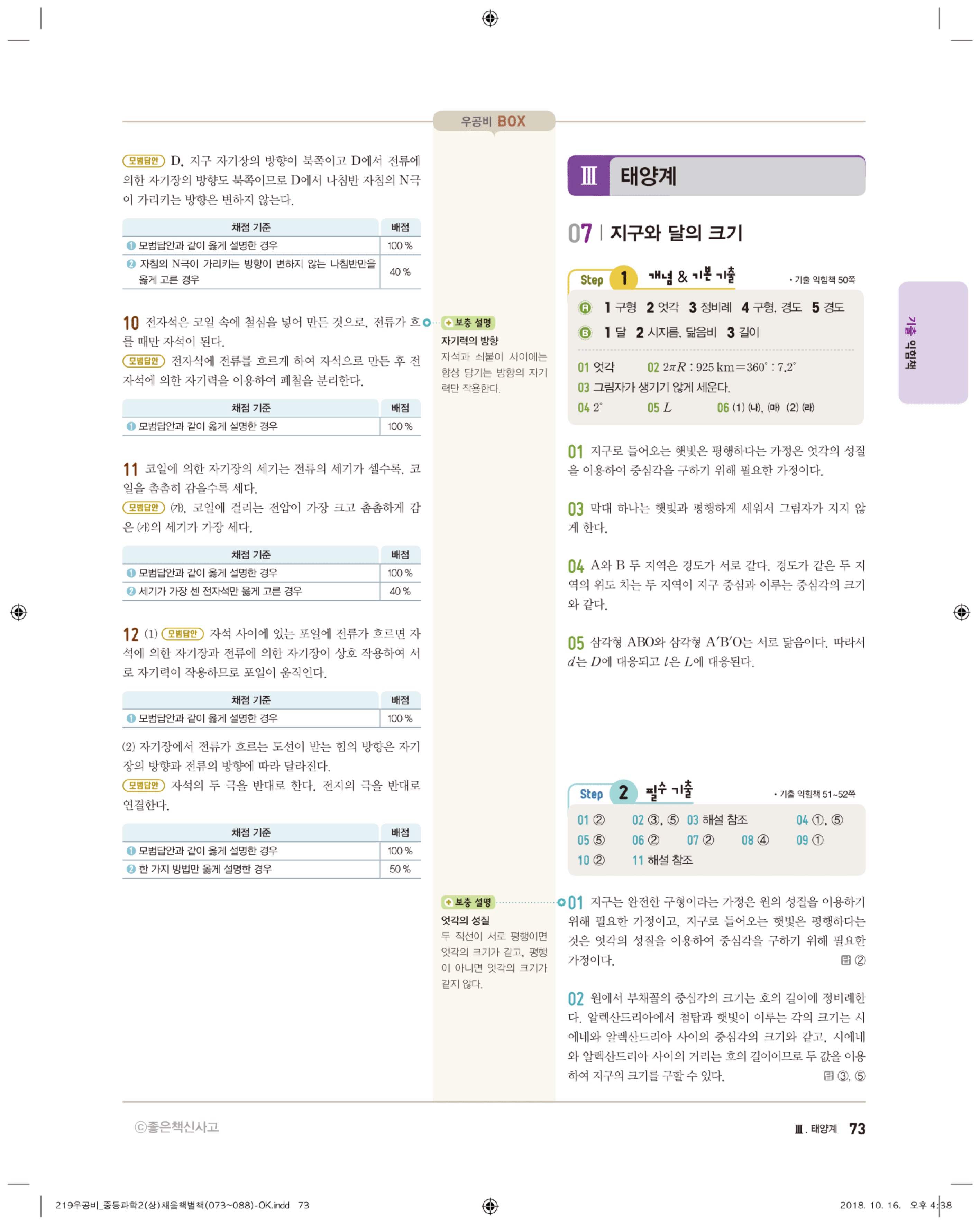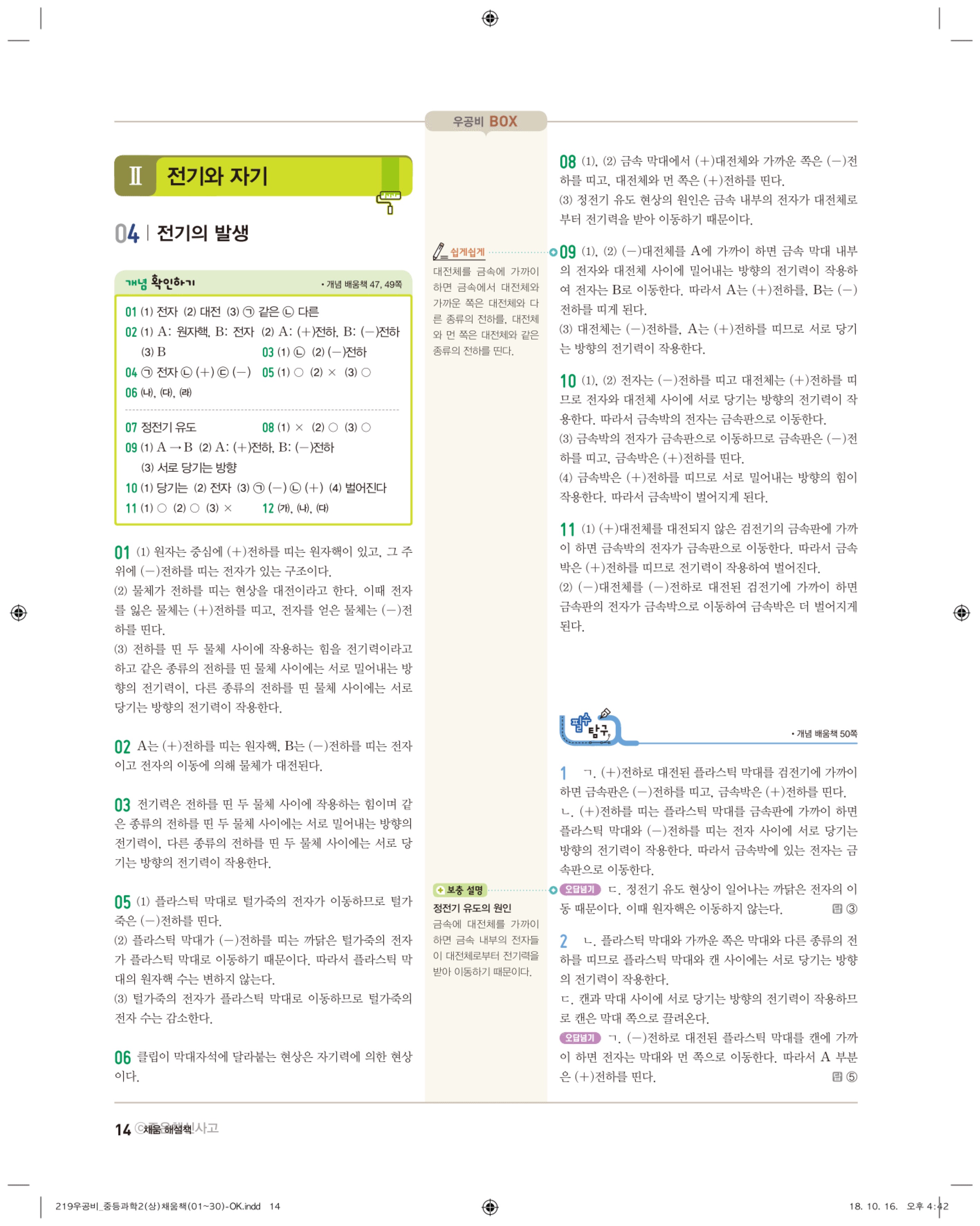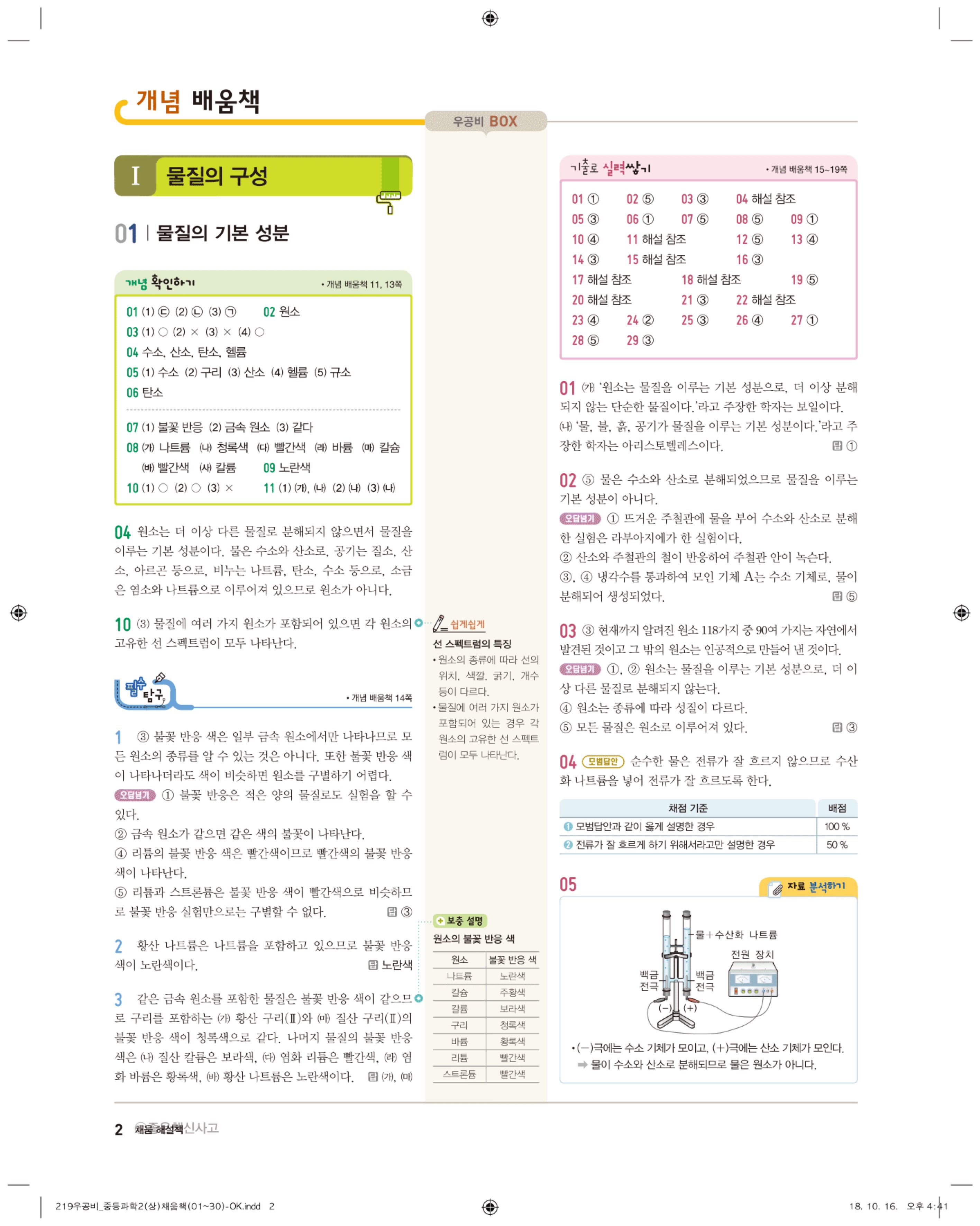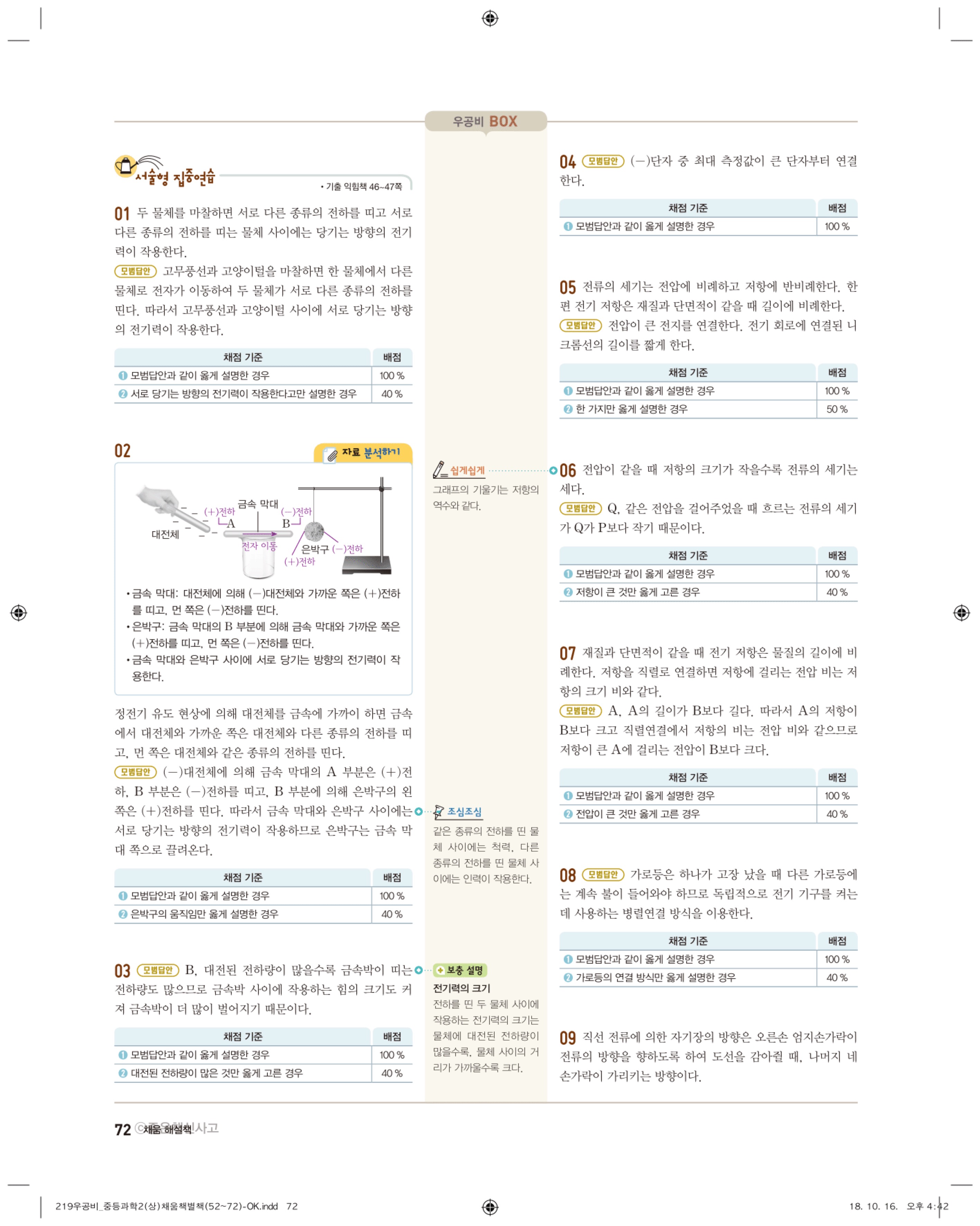 우공비 중등과학 2-1 답지 해설 바로보는 사진답지 빠른답지 모바일최적화