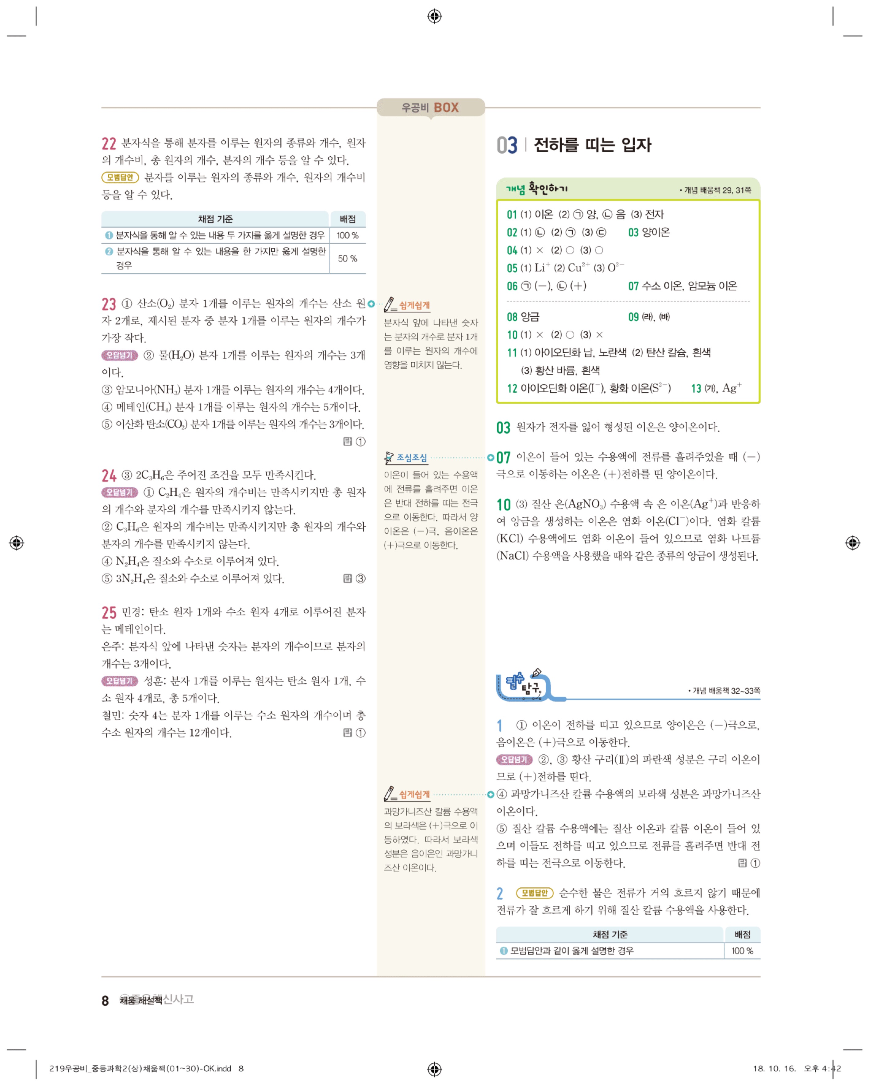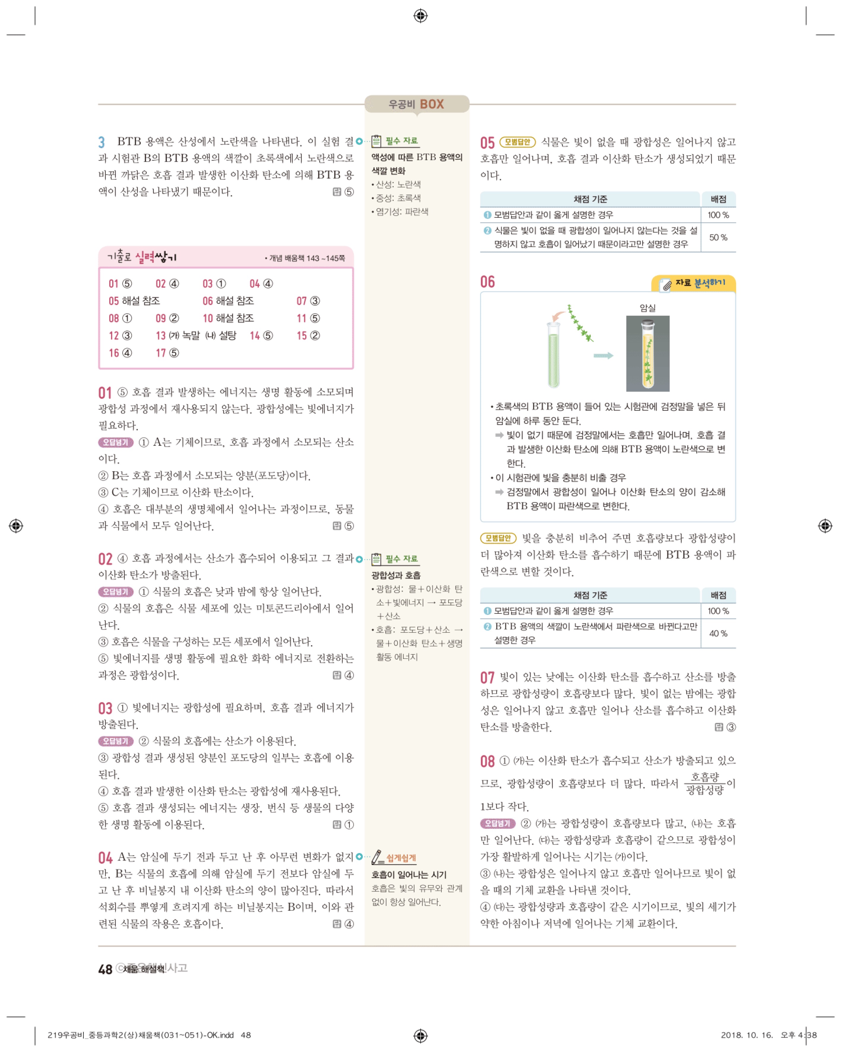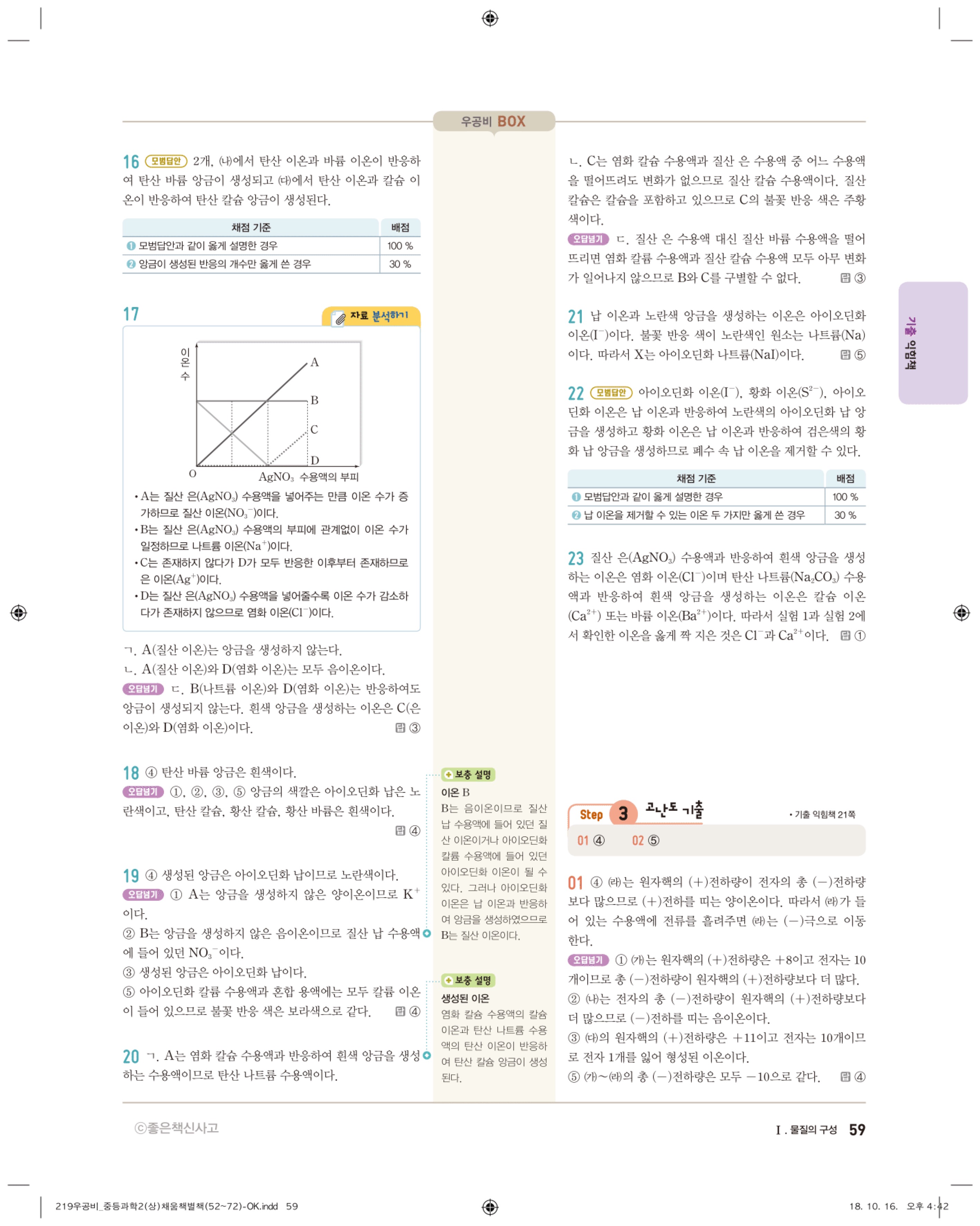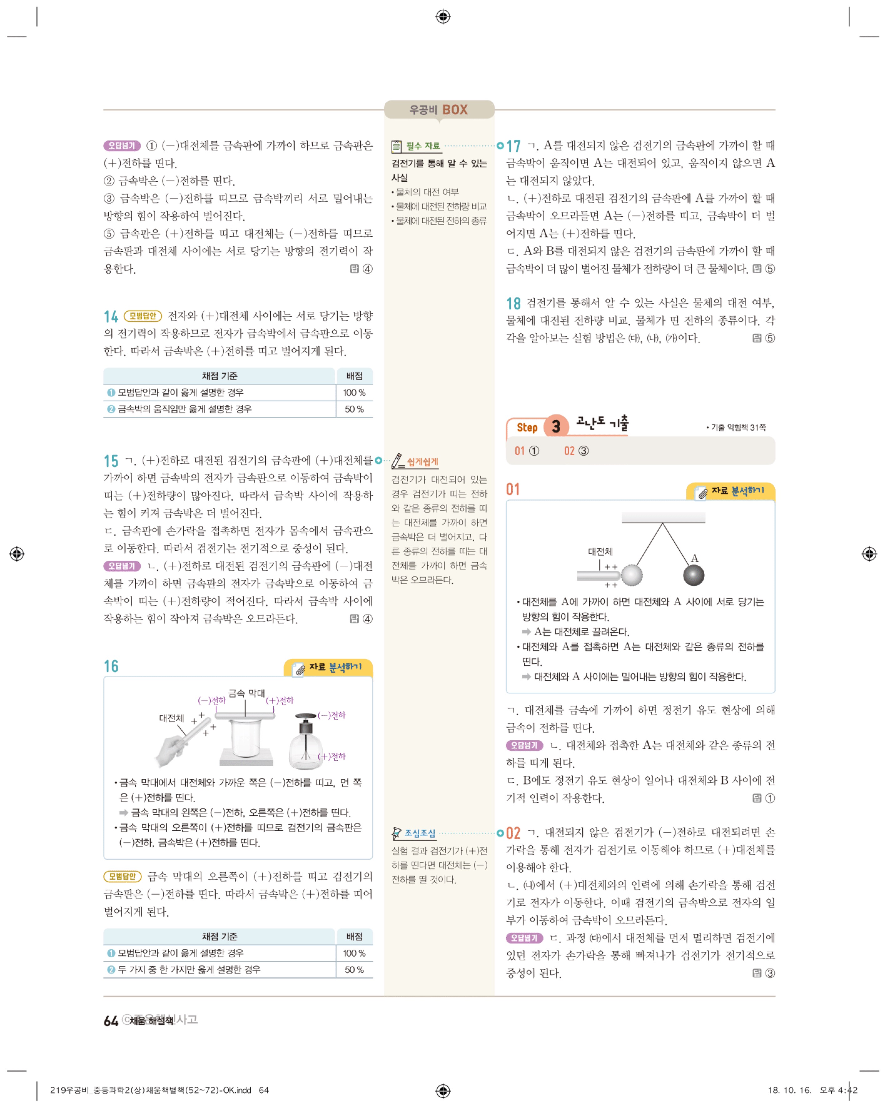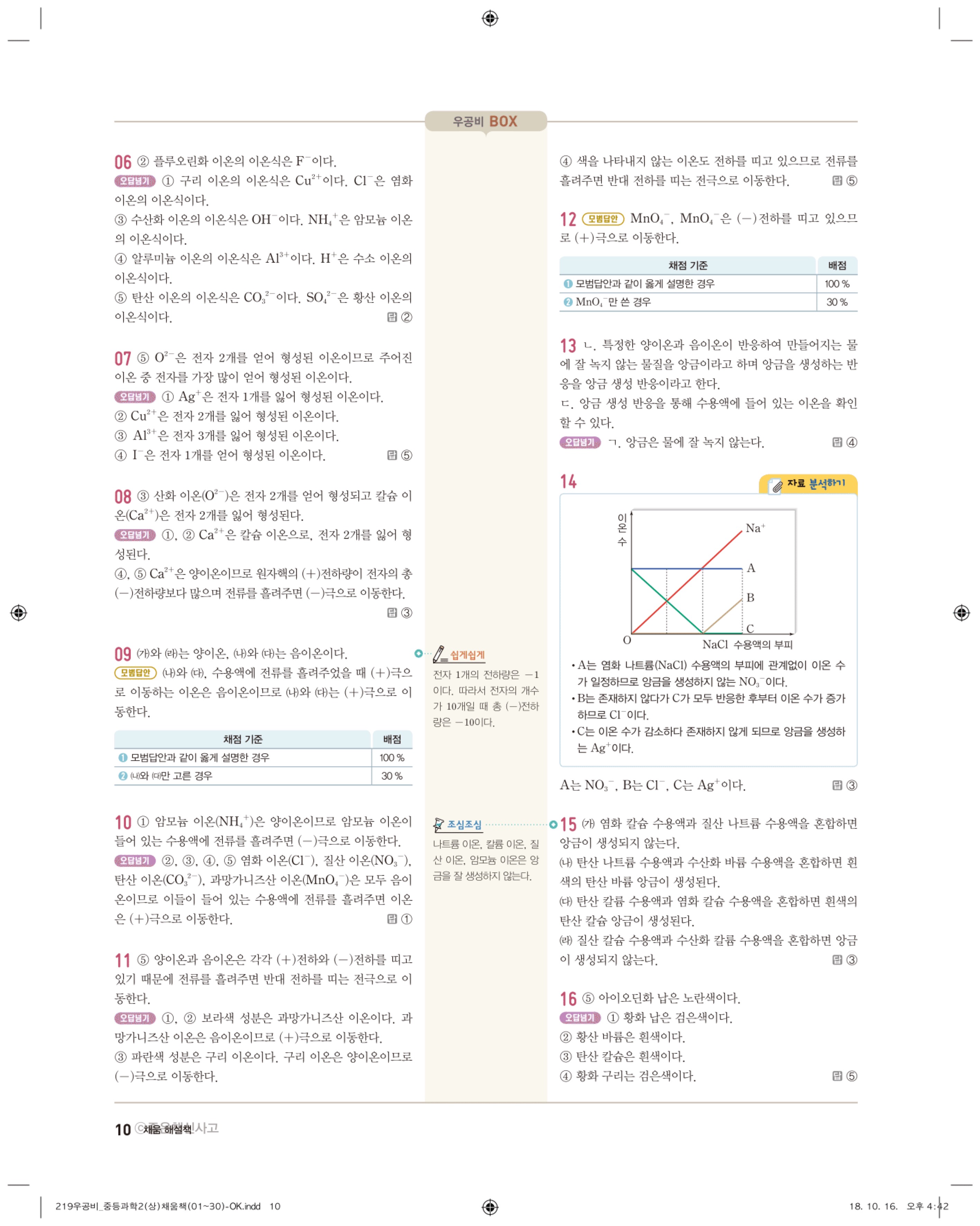 우공비 중등과학 2-1 답지 해설 바로보는 사진답지 빠른답지 모바일최적화