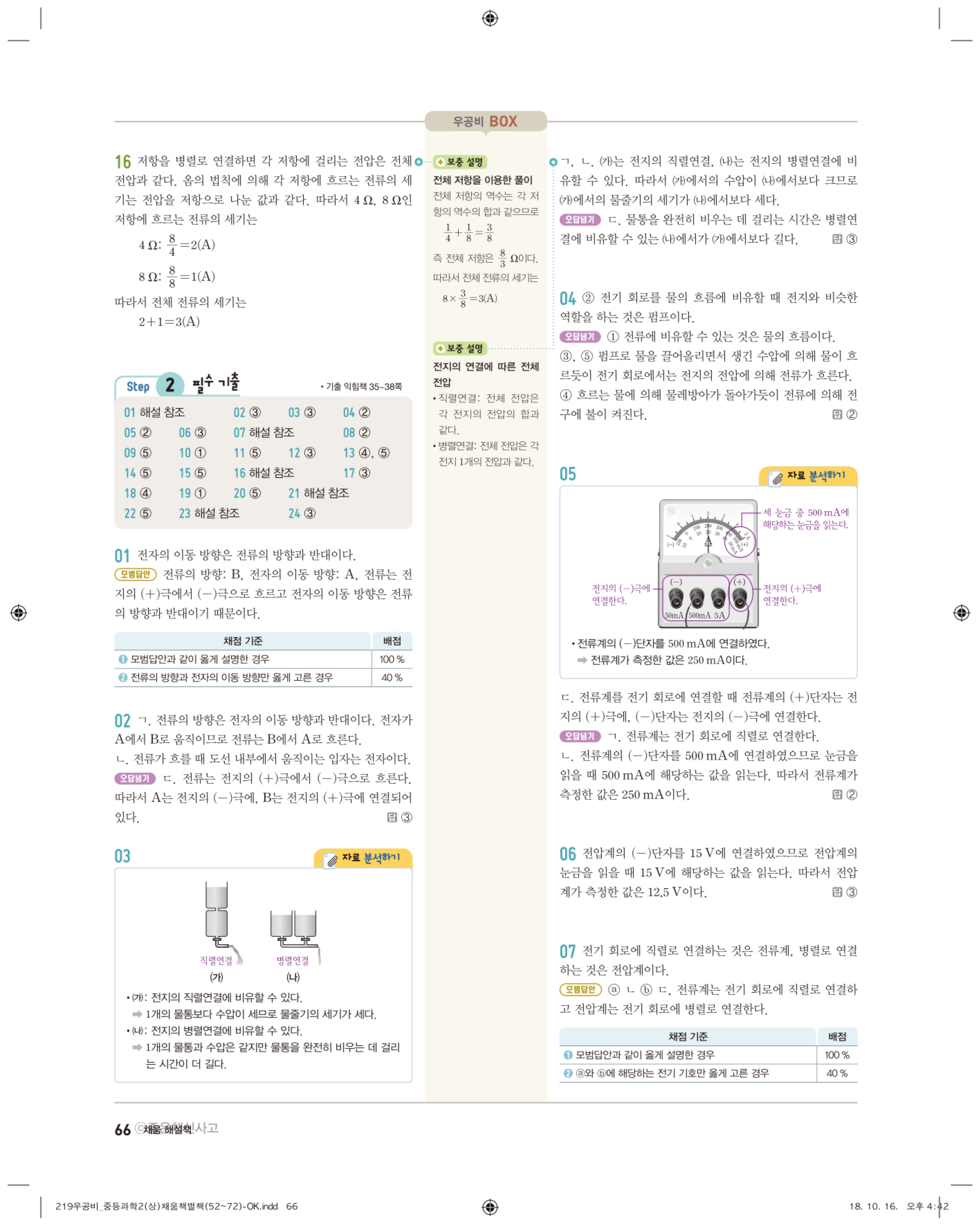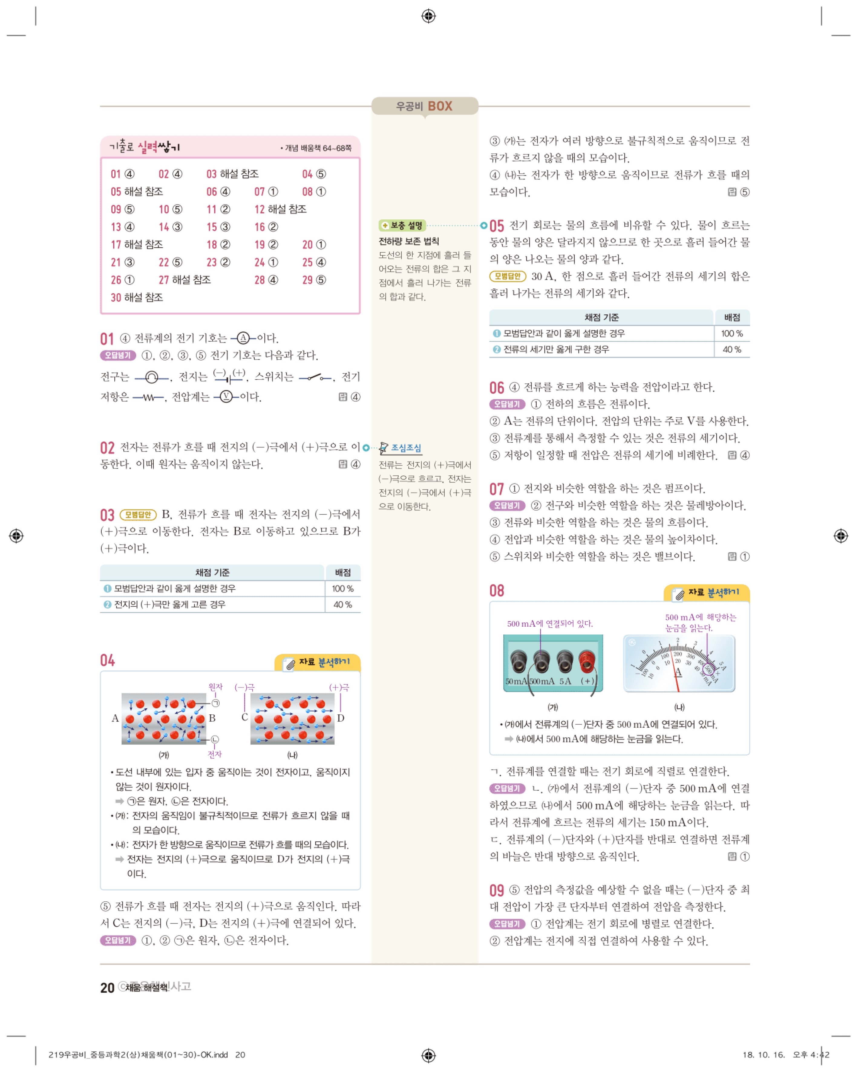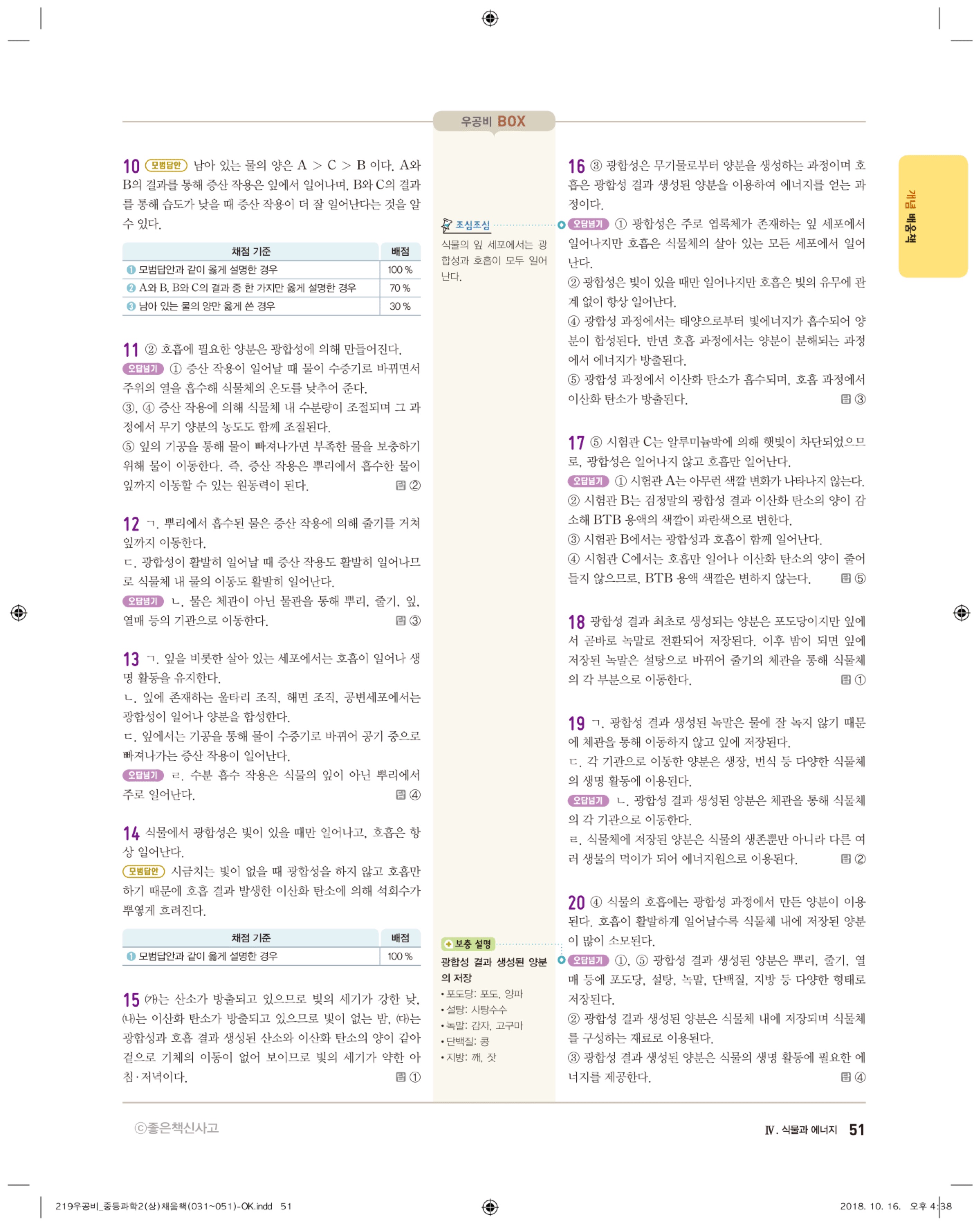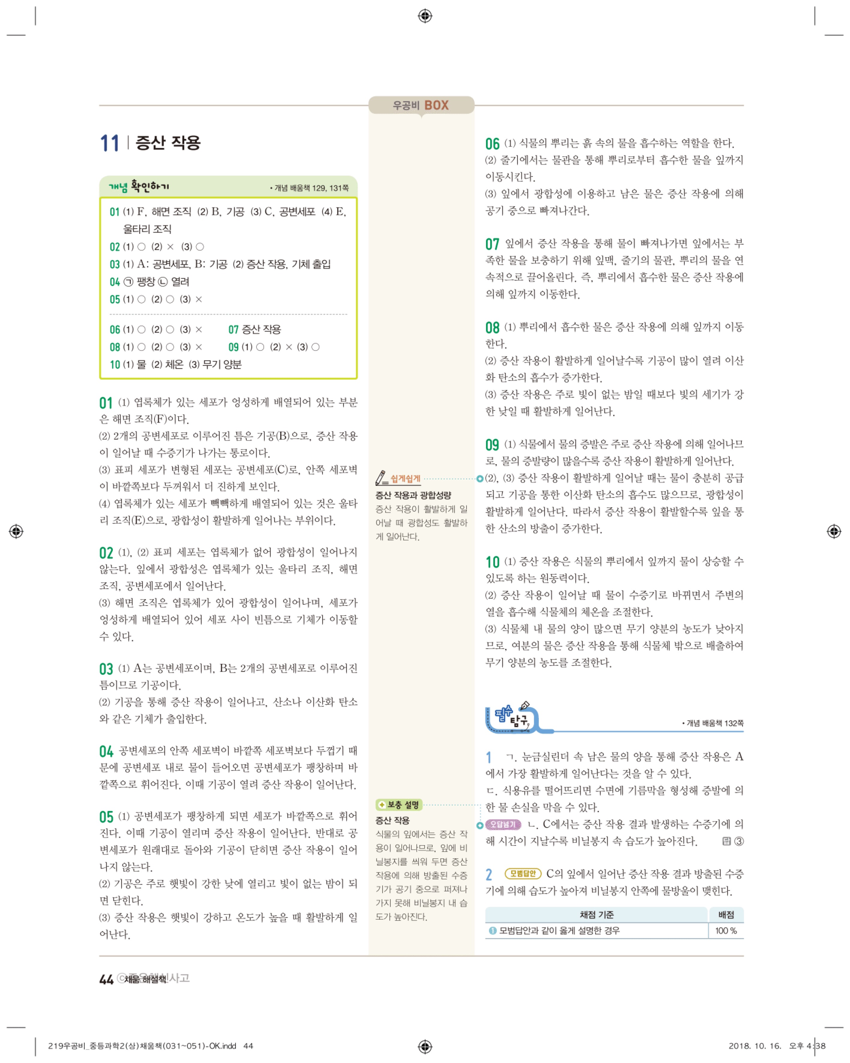 우공비 중등과학 2-1 답지 해설 바로보는 사진답지 빠른답지 모바일최적화