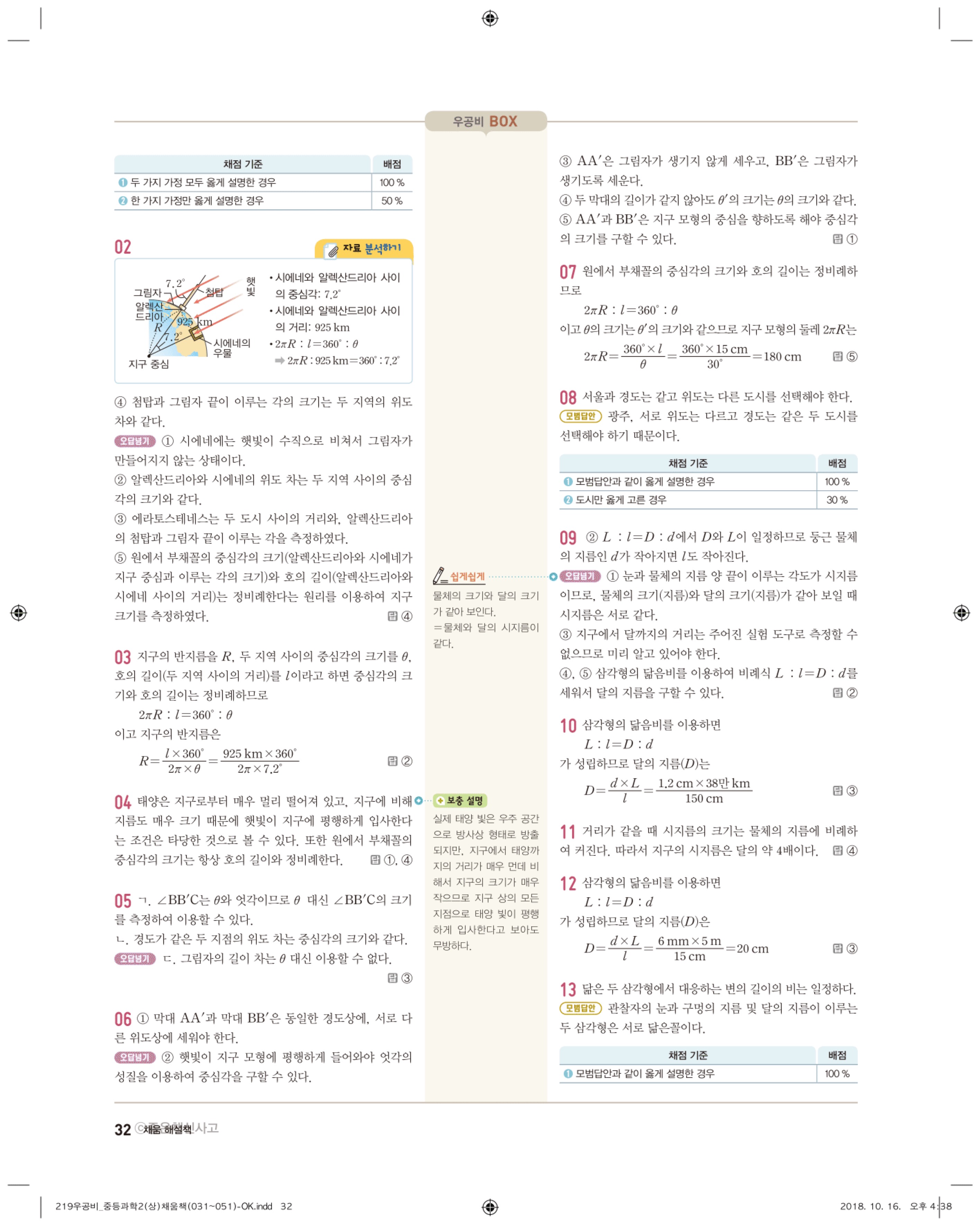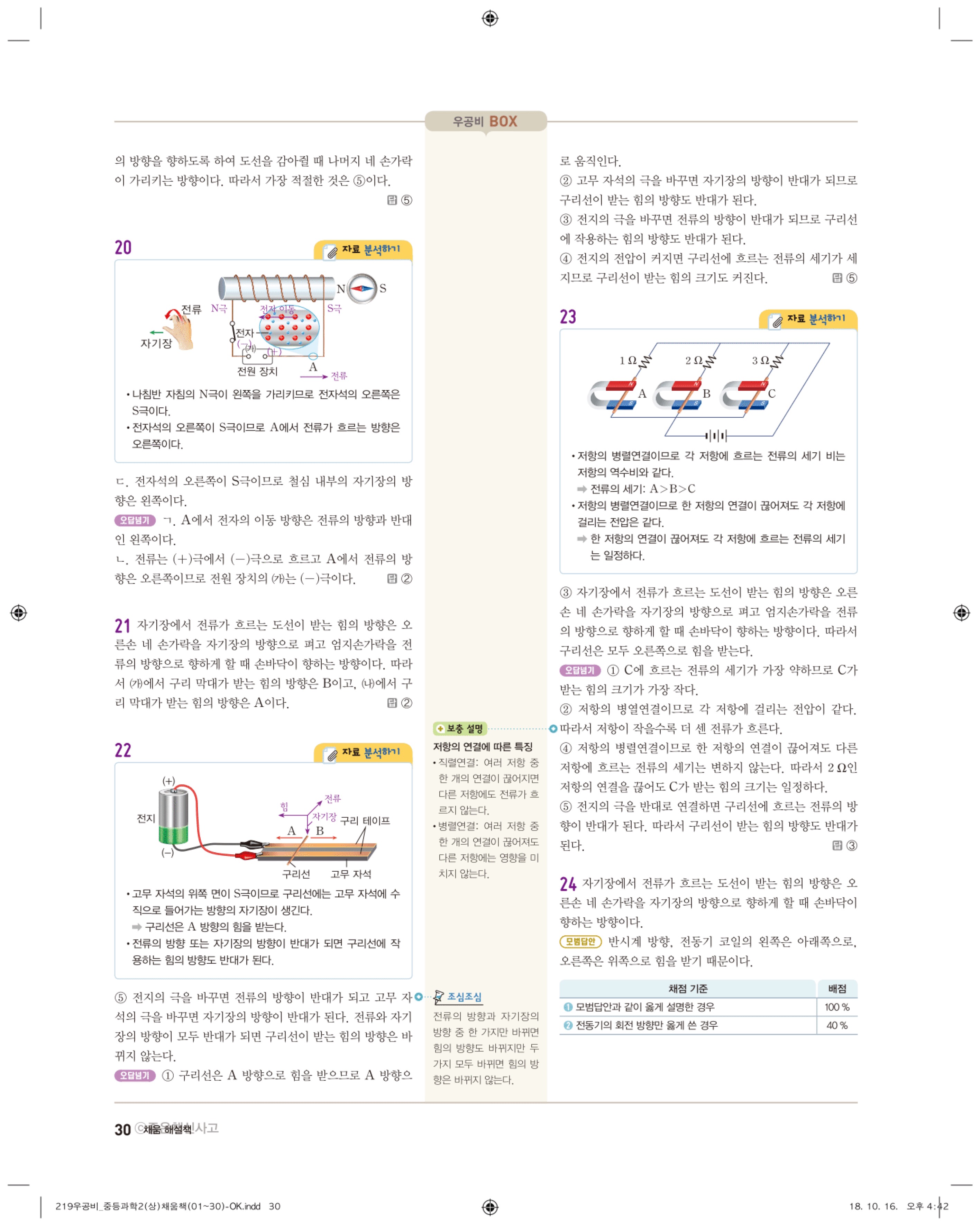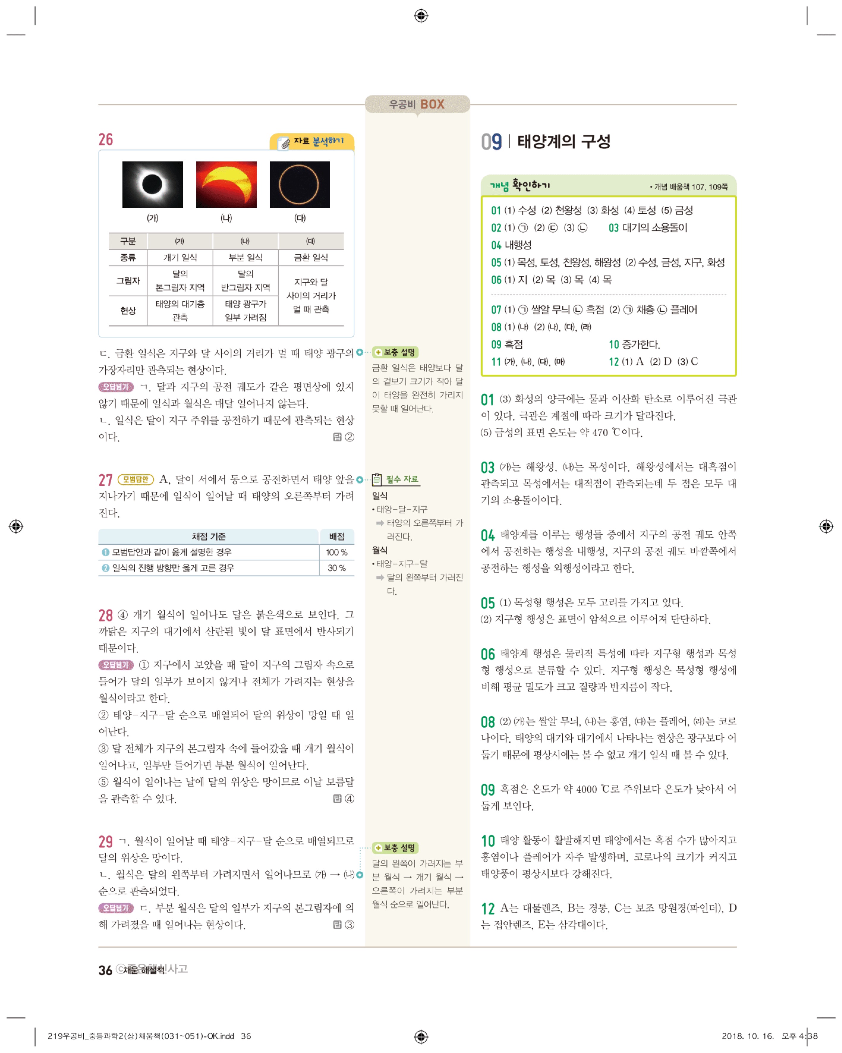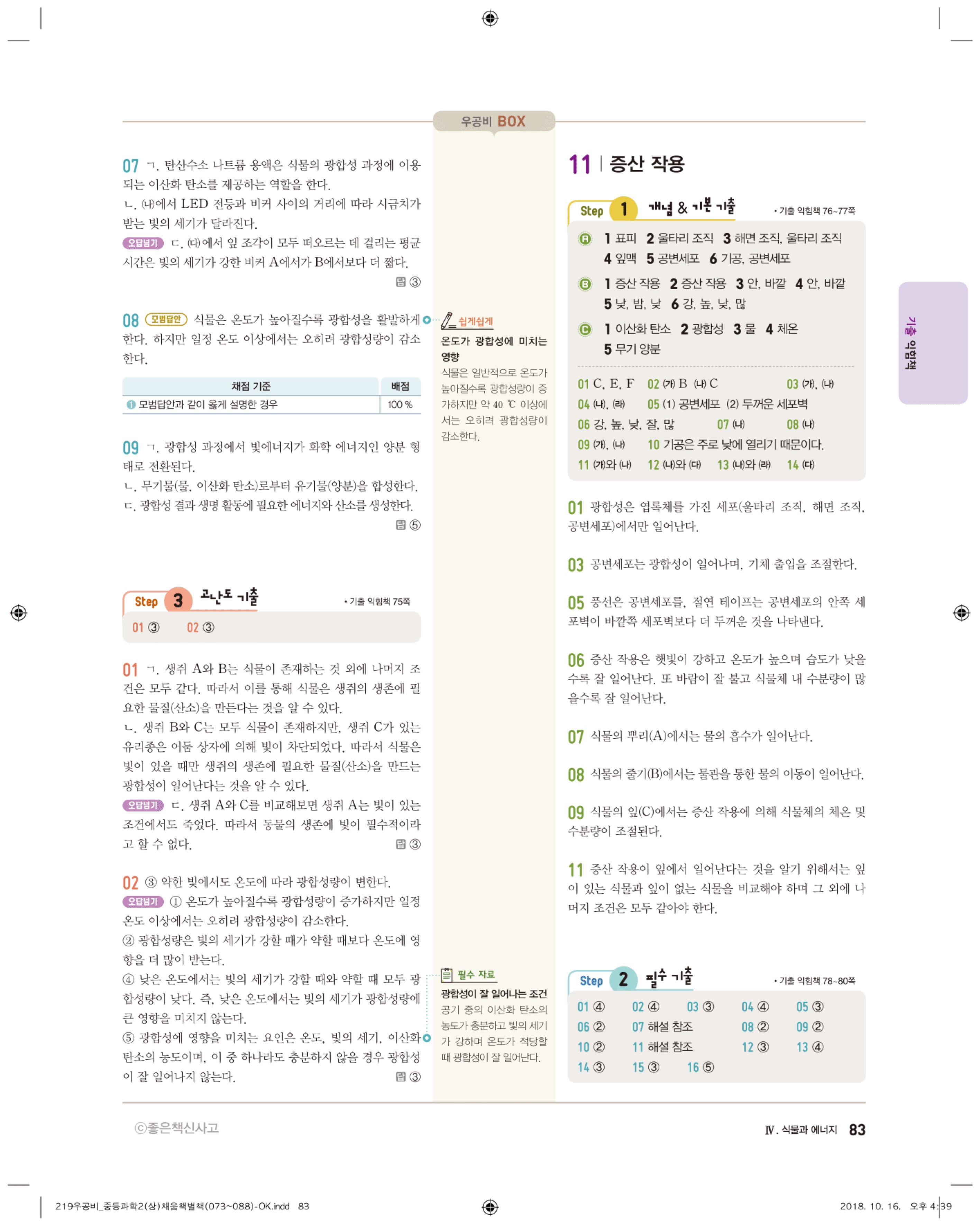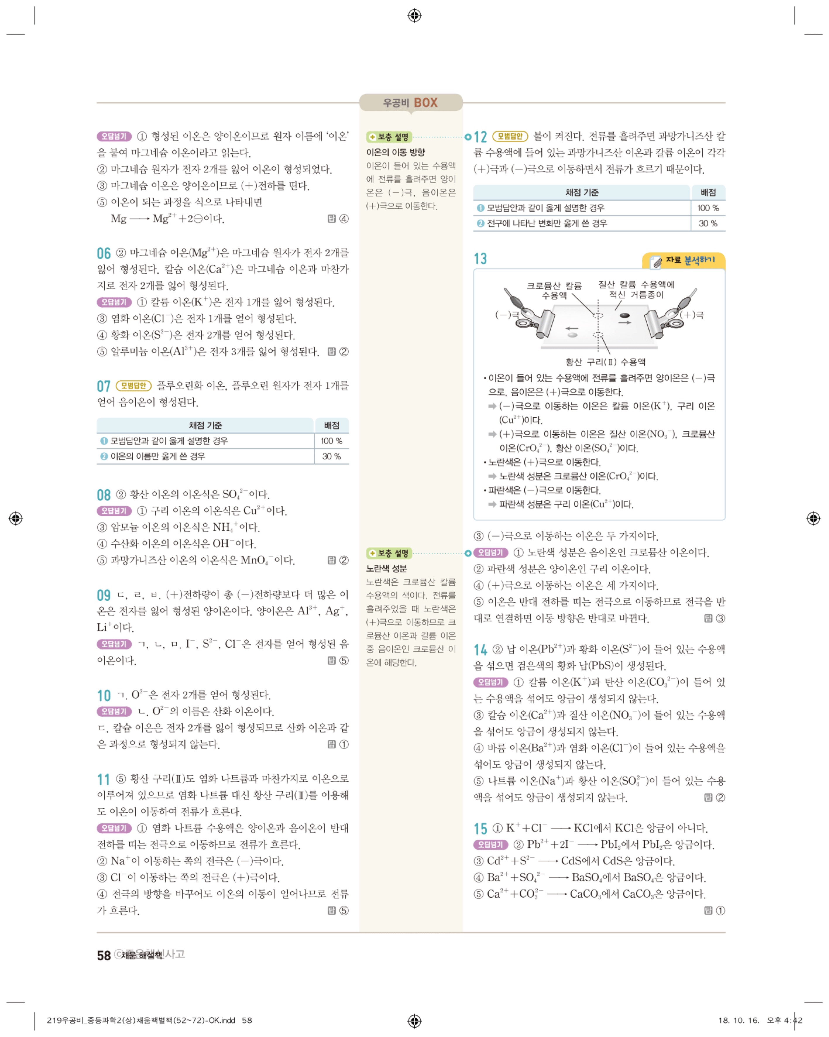 우공비 중등과학 2-1 답지 해설 바로보는 사진답지 빠른답지 모바일최적화