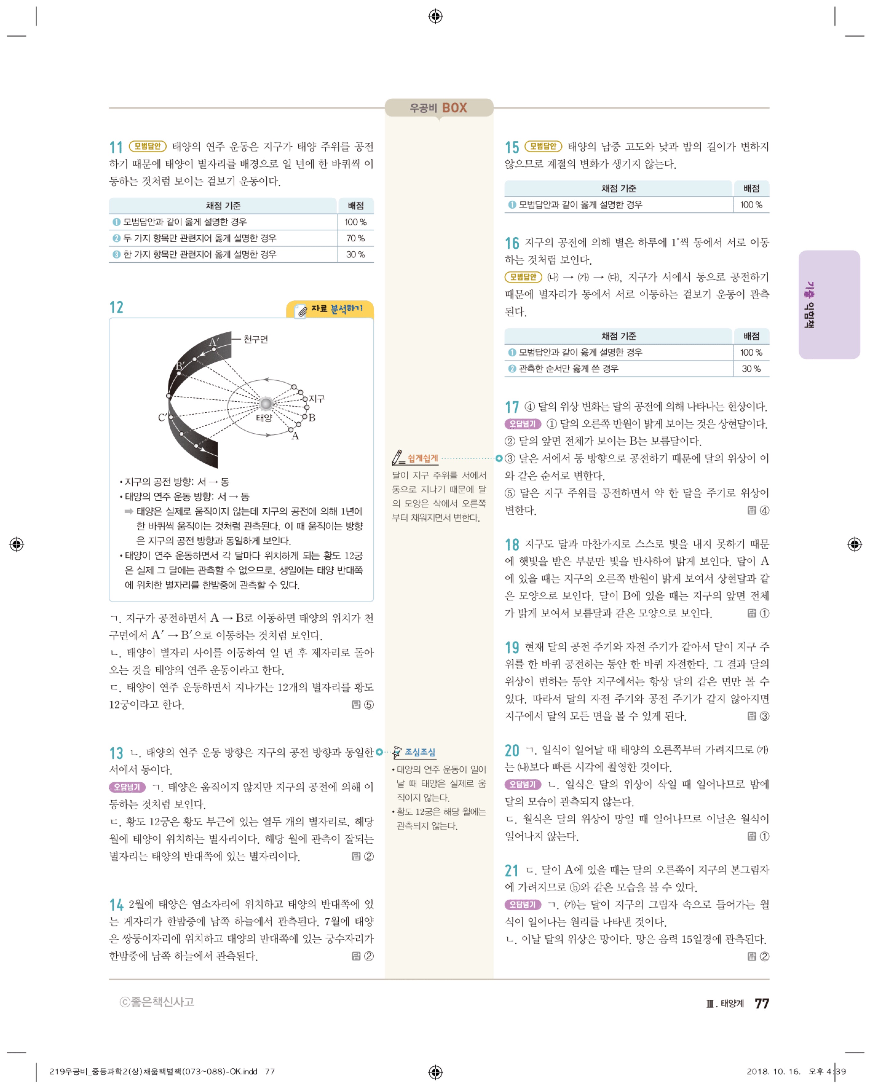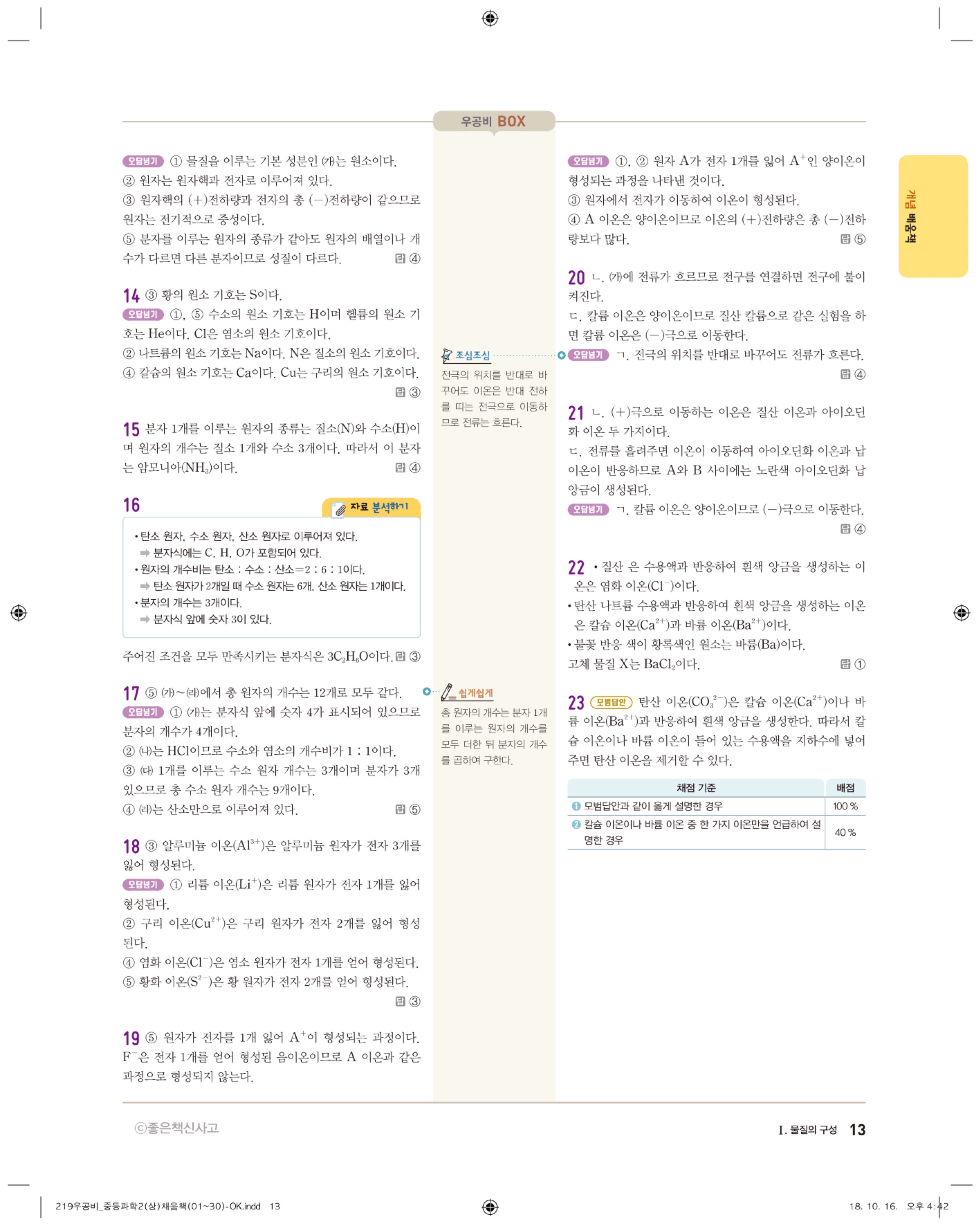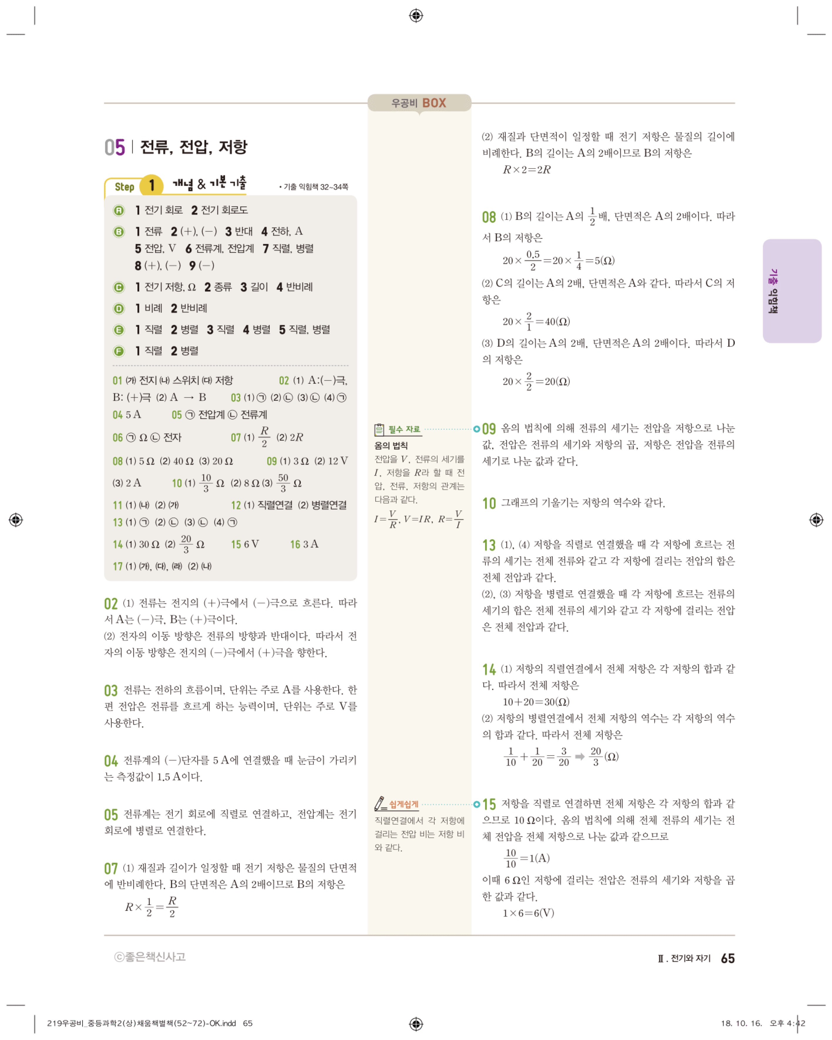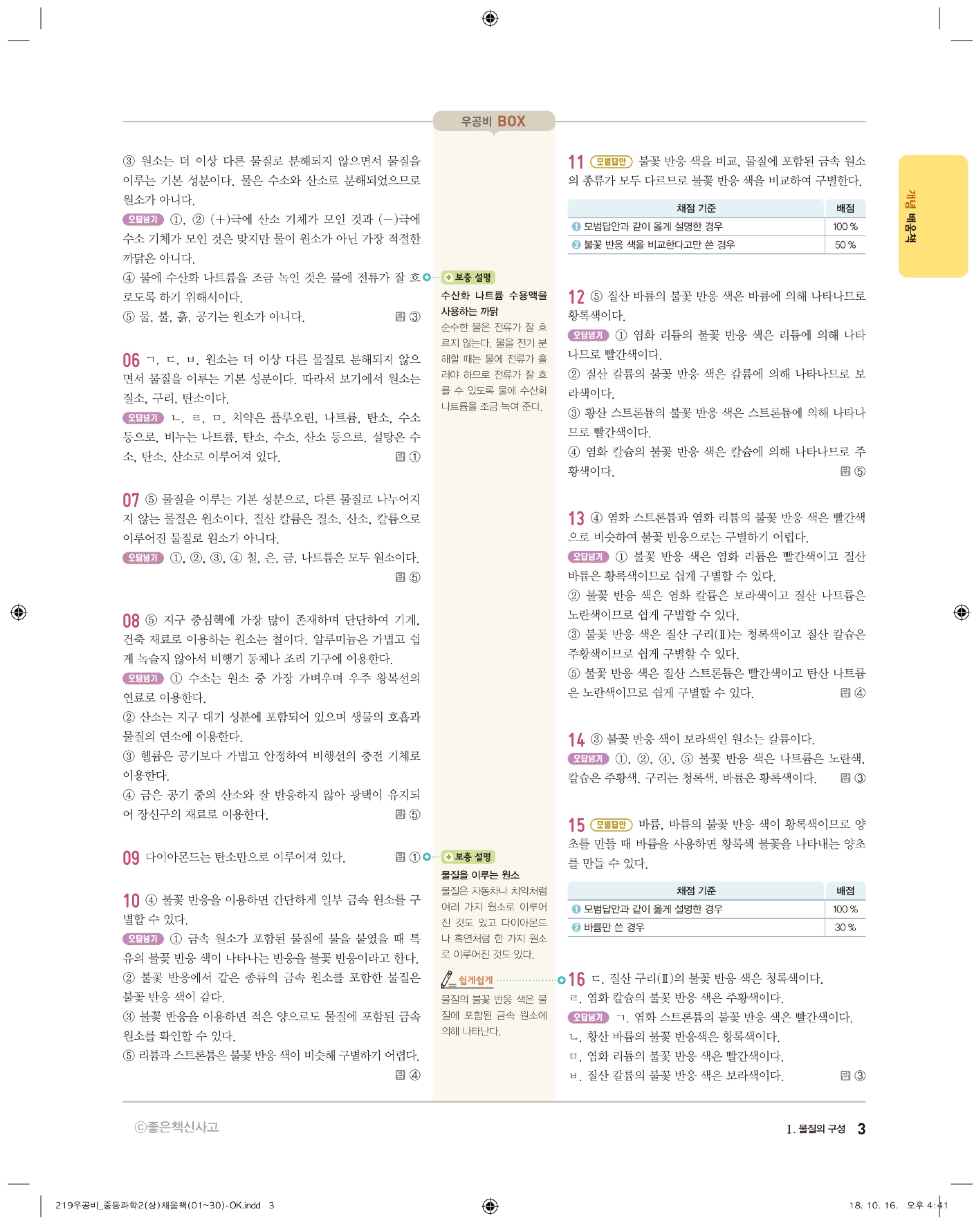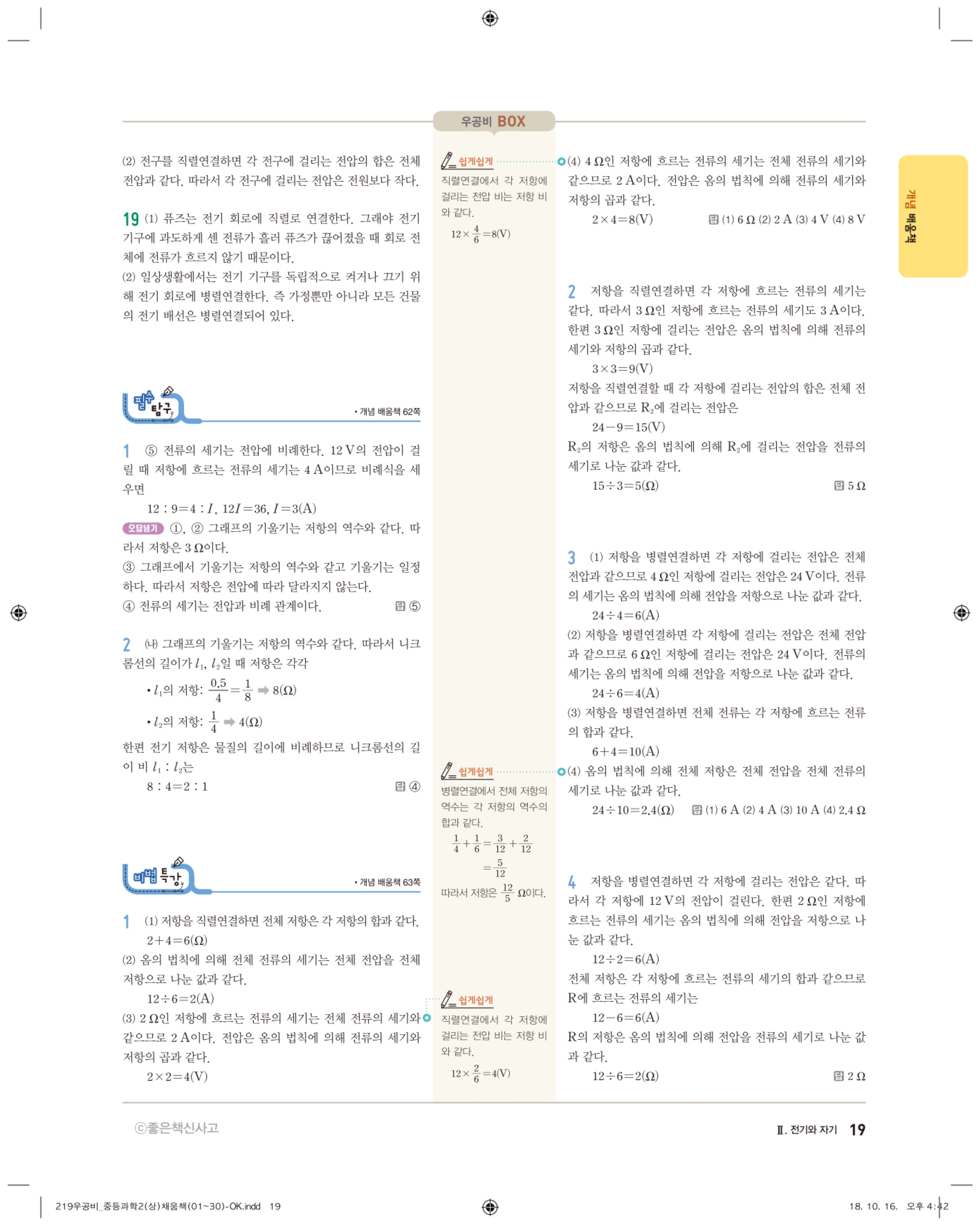 우공비 중등과학 2-1 답지 해설 바로보는 사진답지 빠른답지 모바일최적화