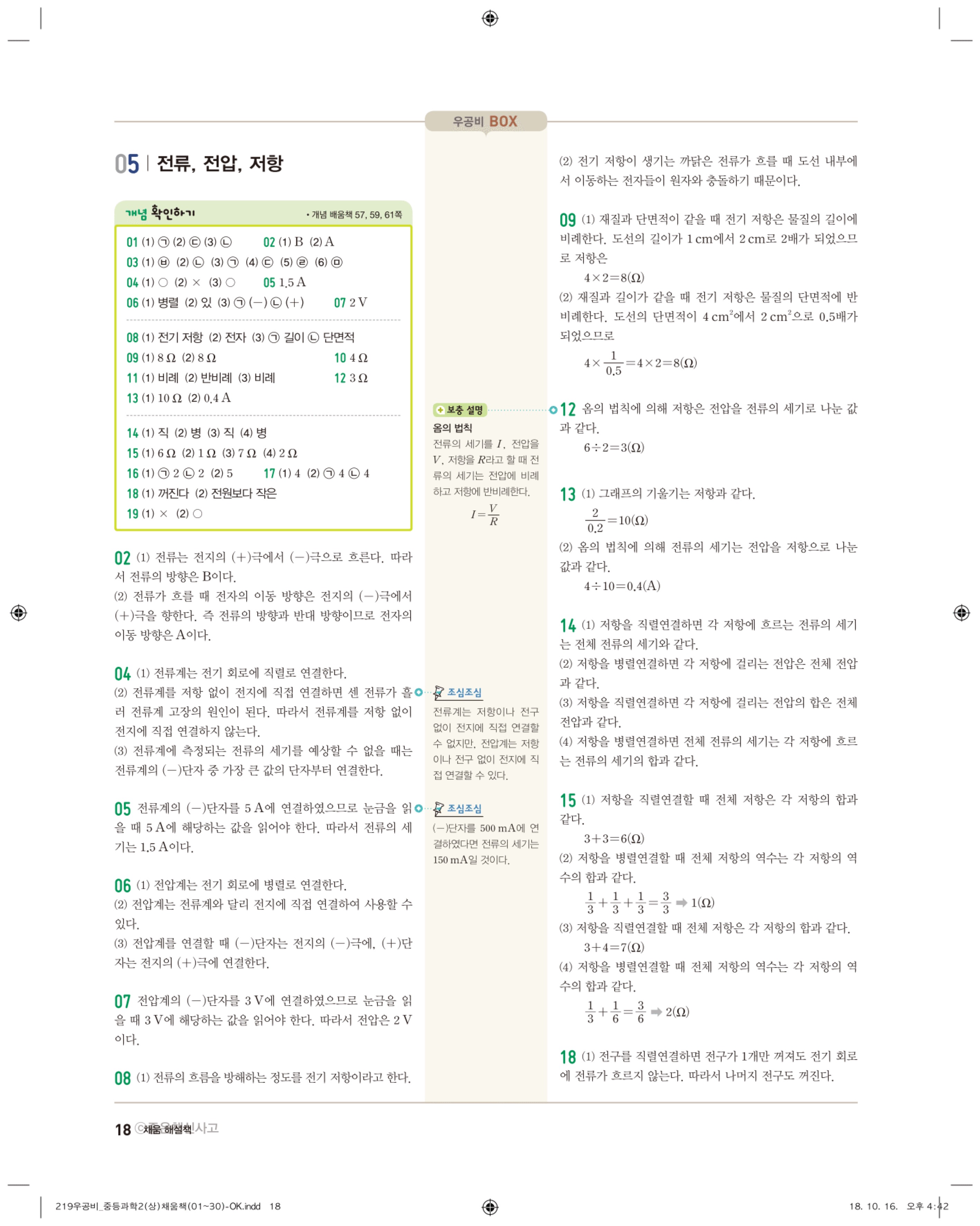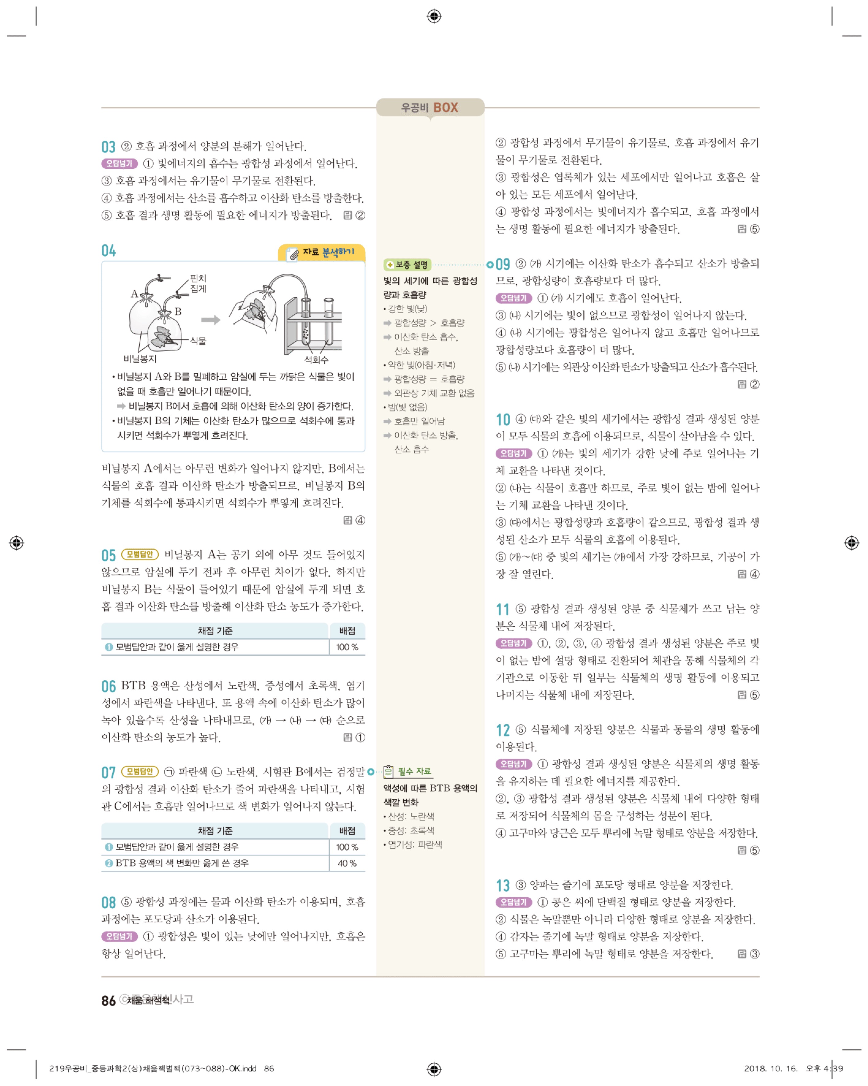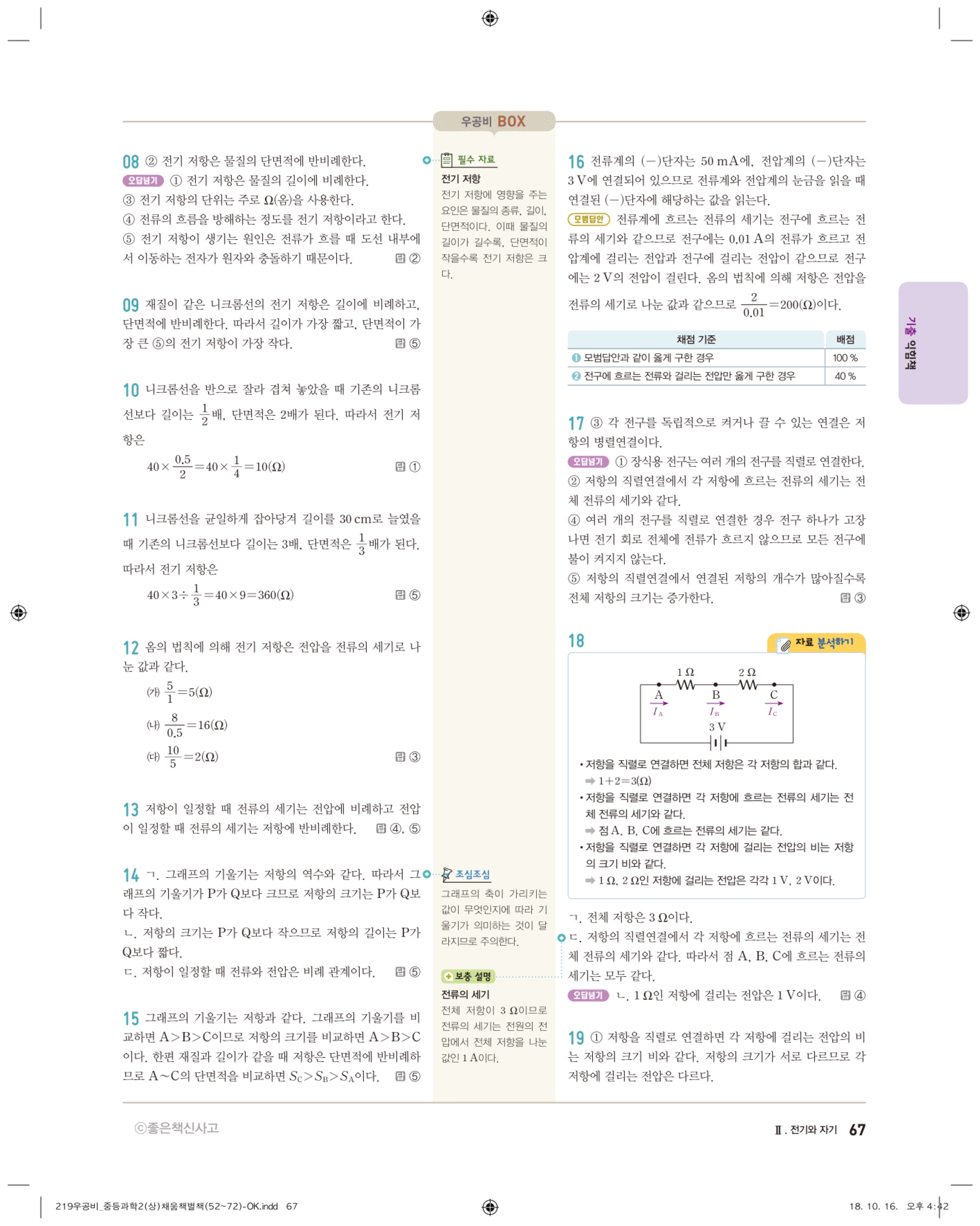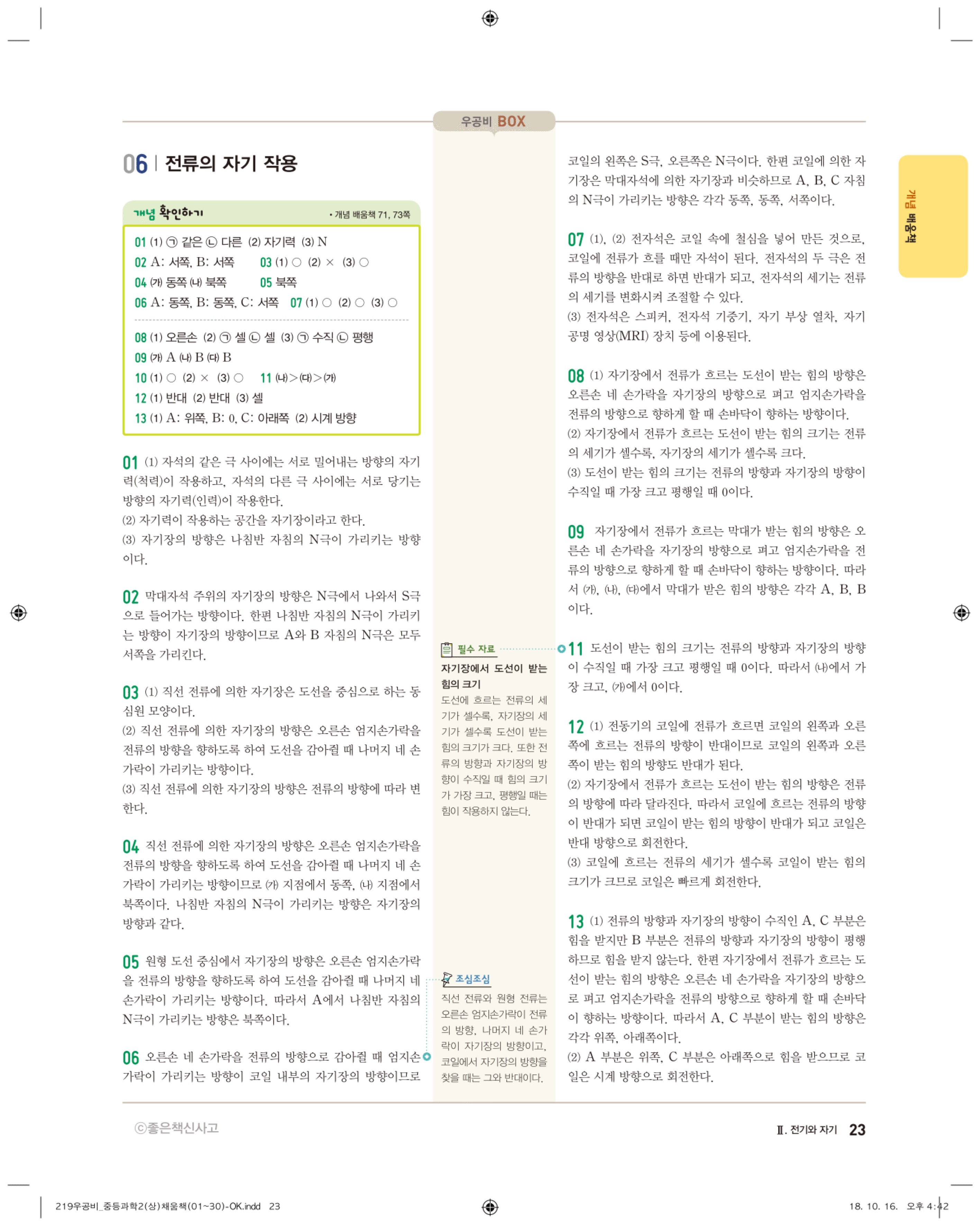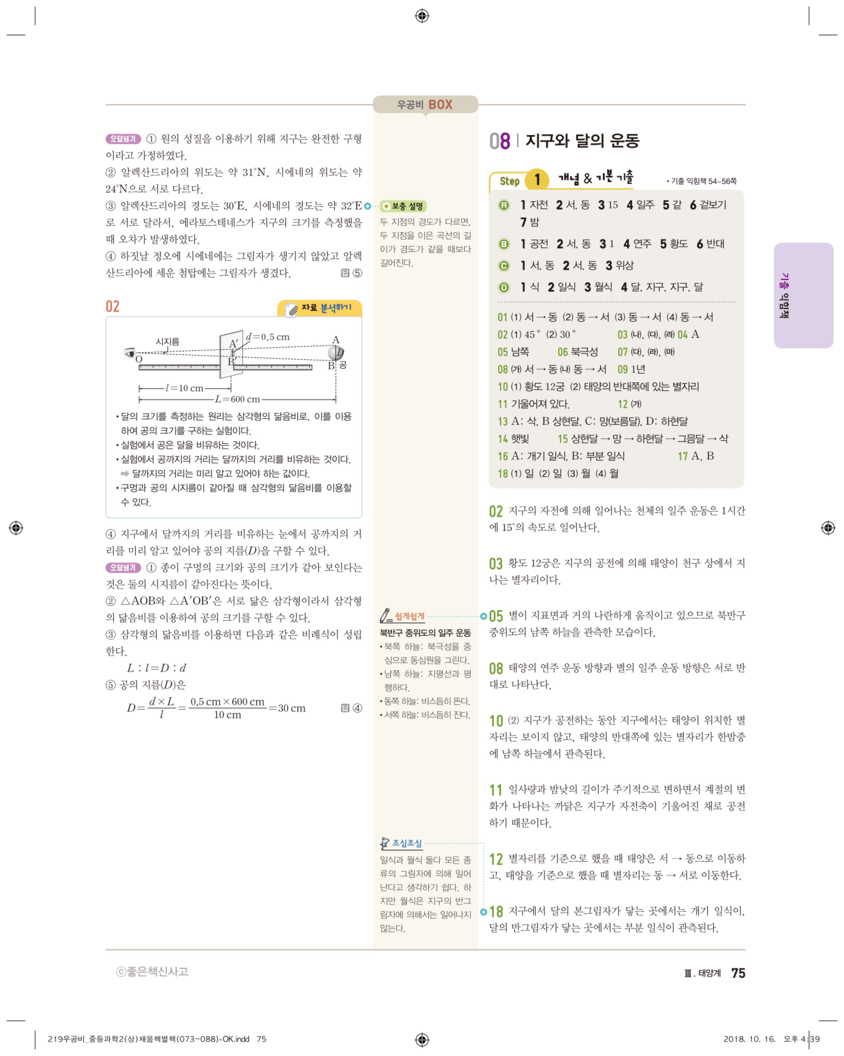 우공비 중등과학 2-1 답지 해설 바로보는 사진답지 빠른답지 모바일최적화