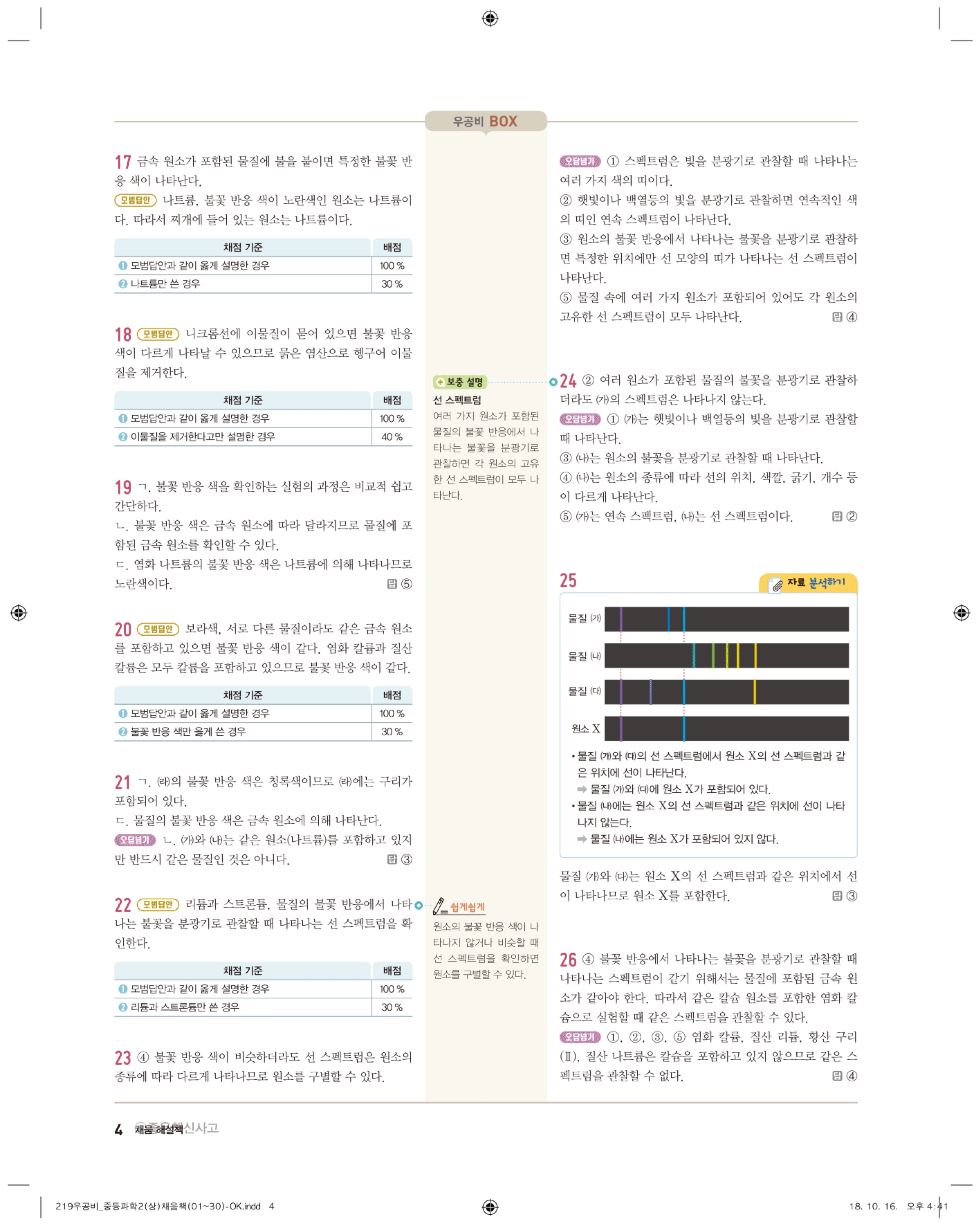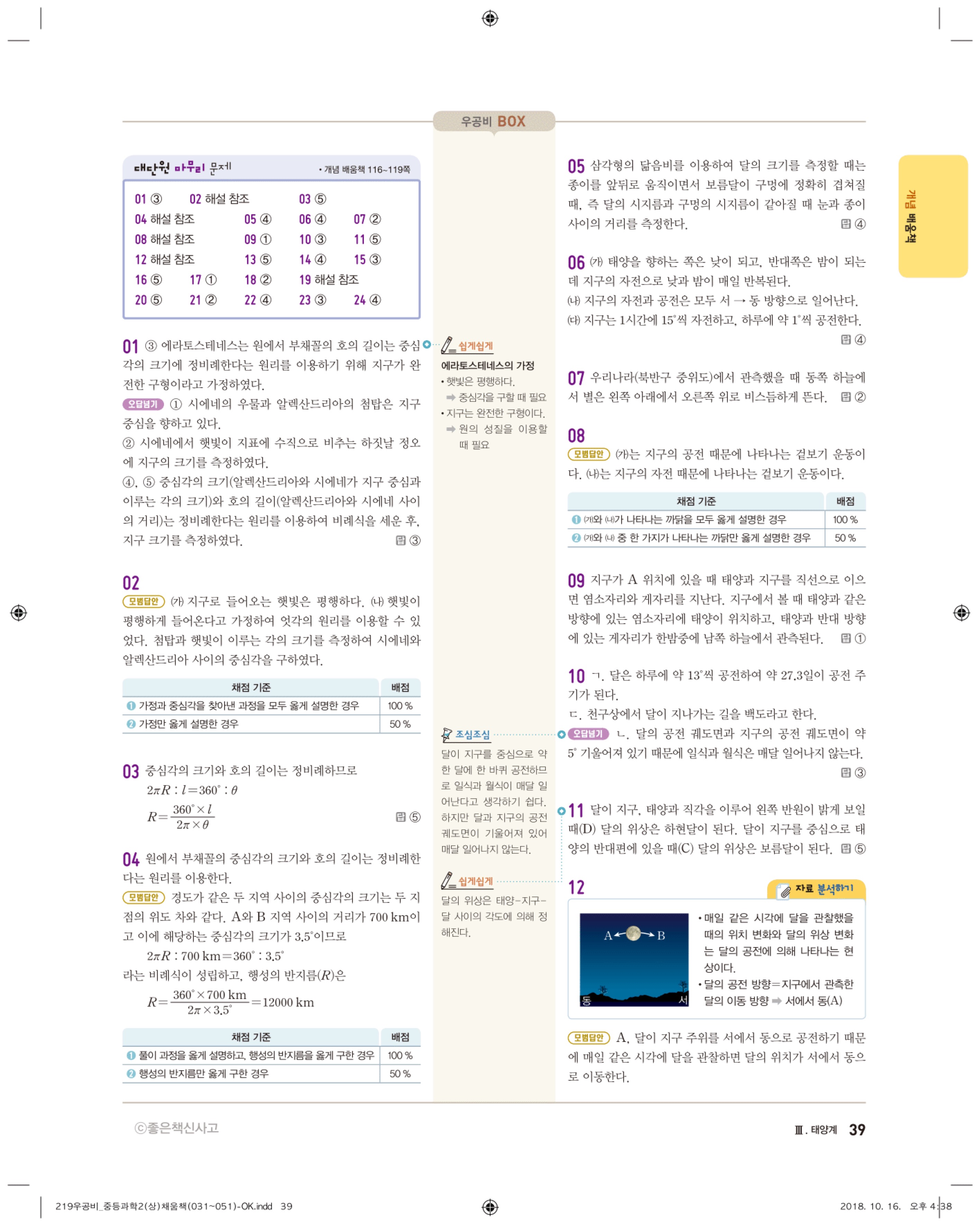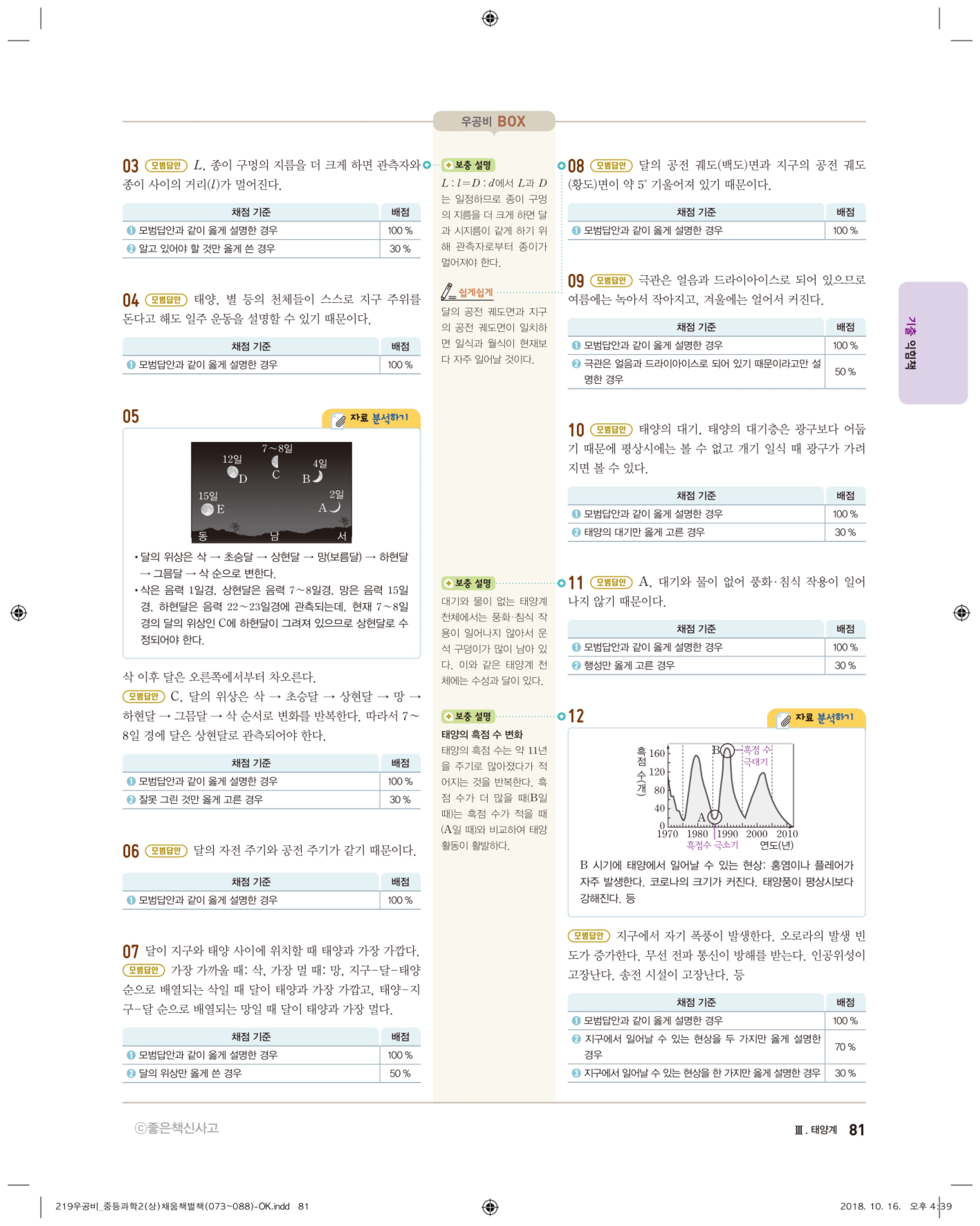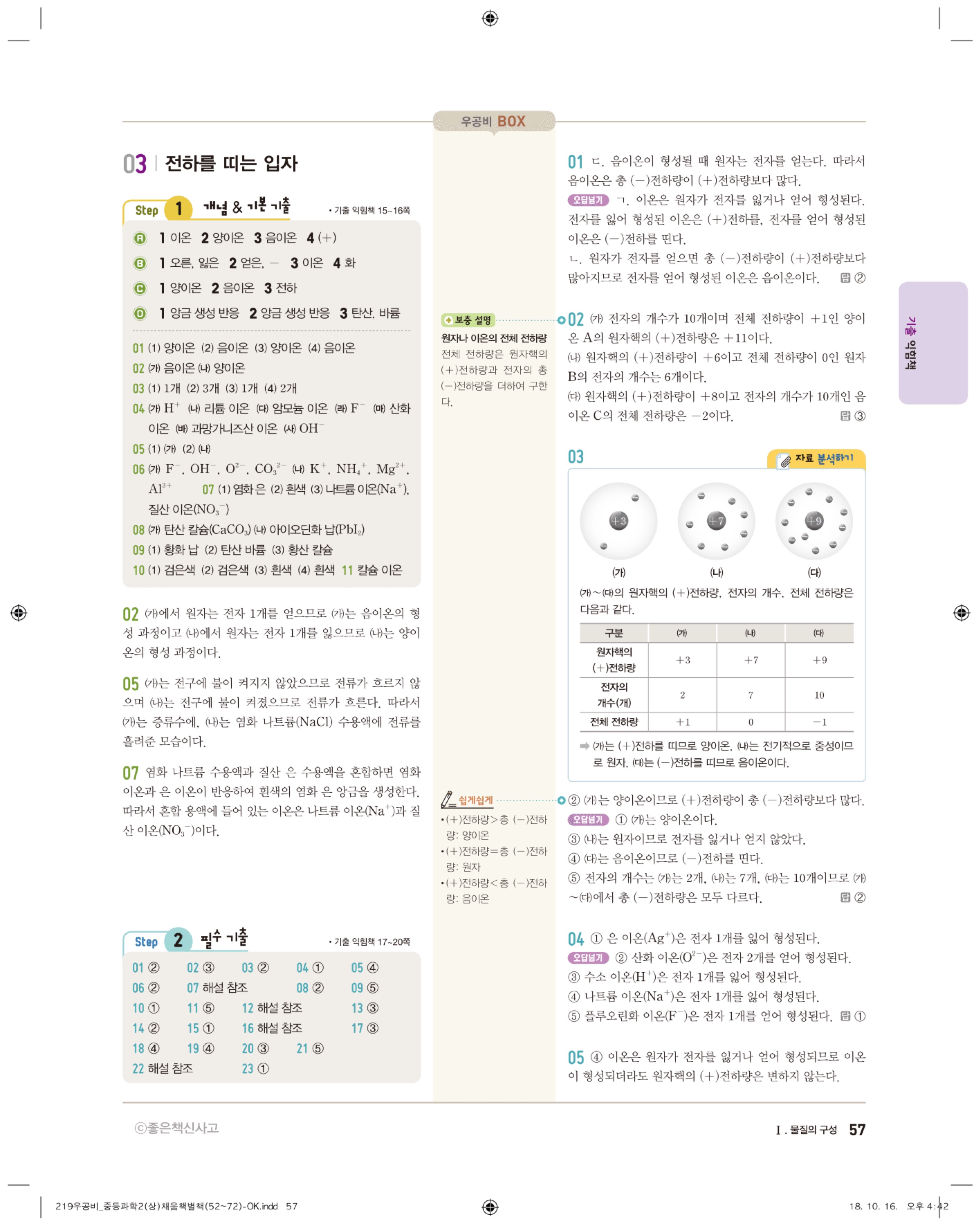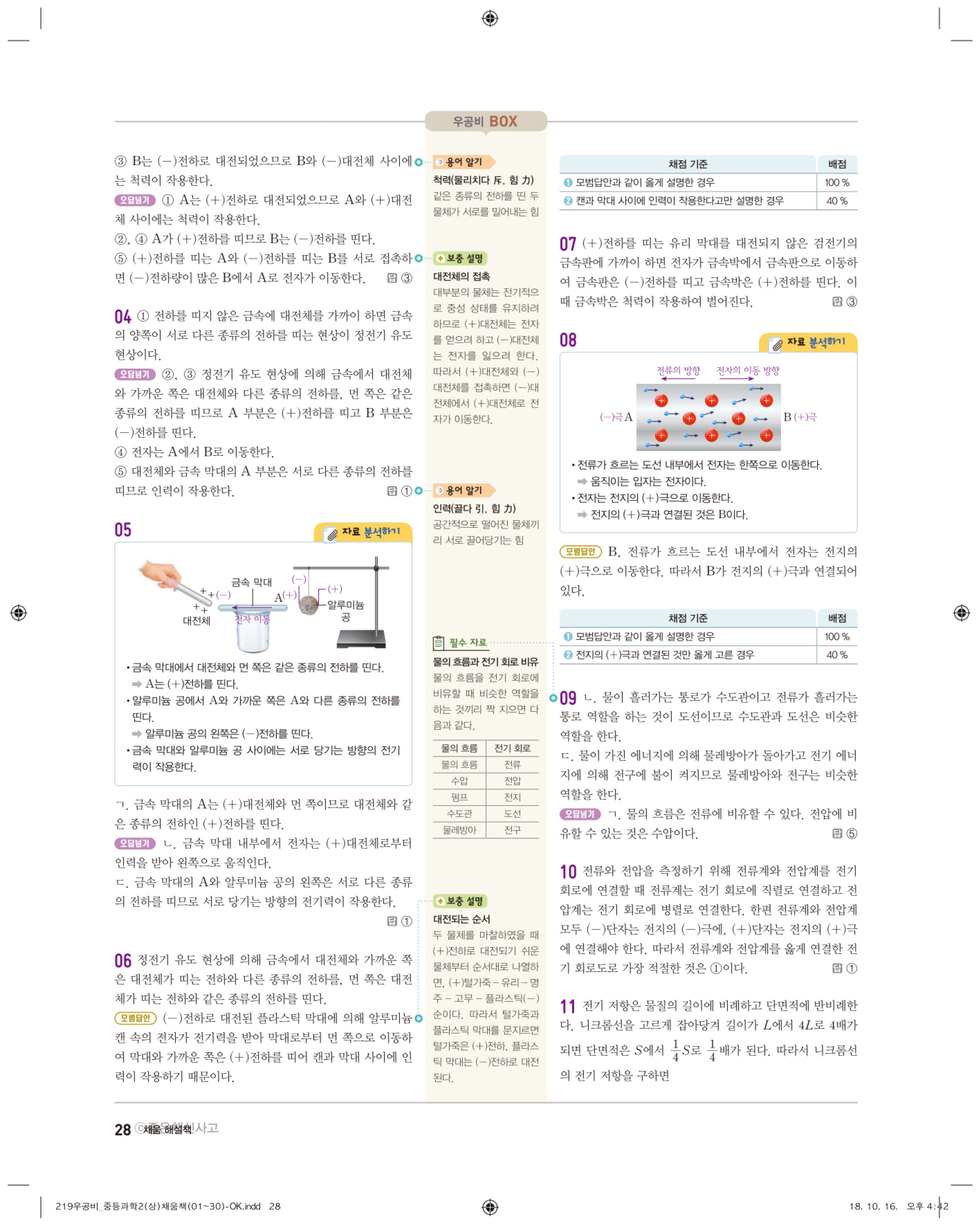 우공비 중등과학 2-1 답지 해설 바로보는 사진답지 빠른답지 모바일최적화