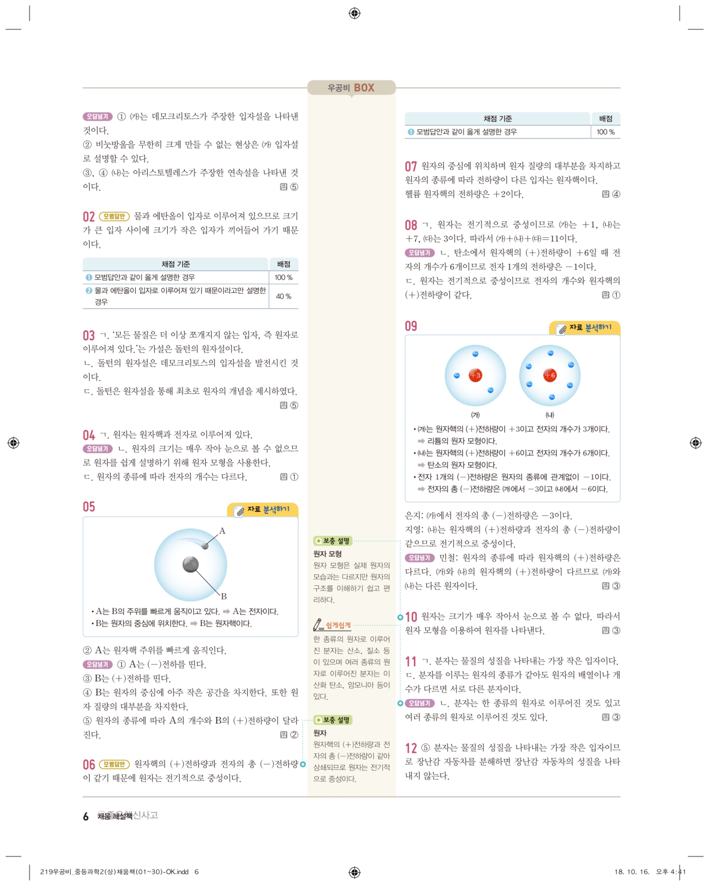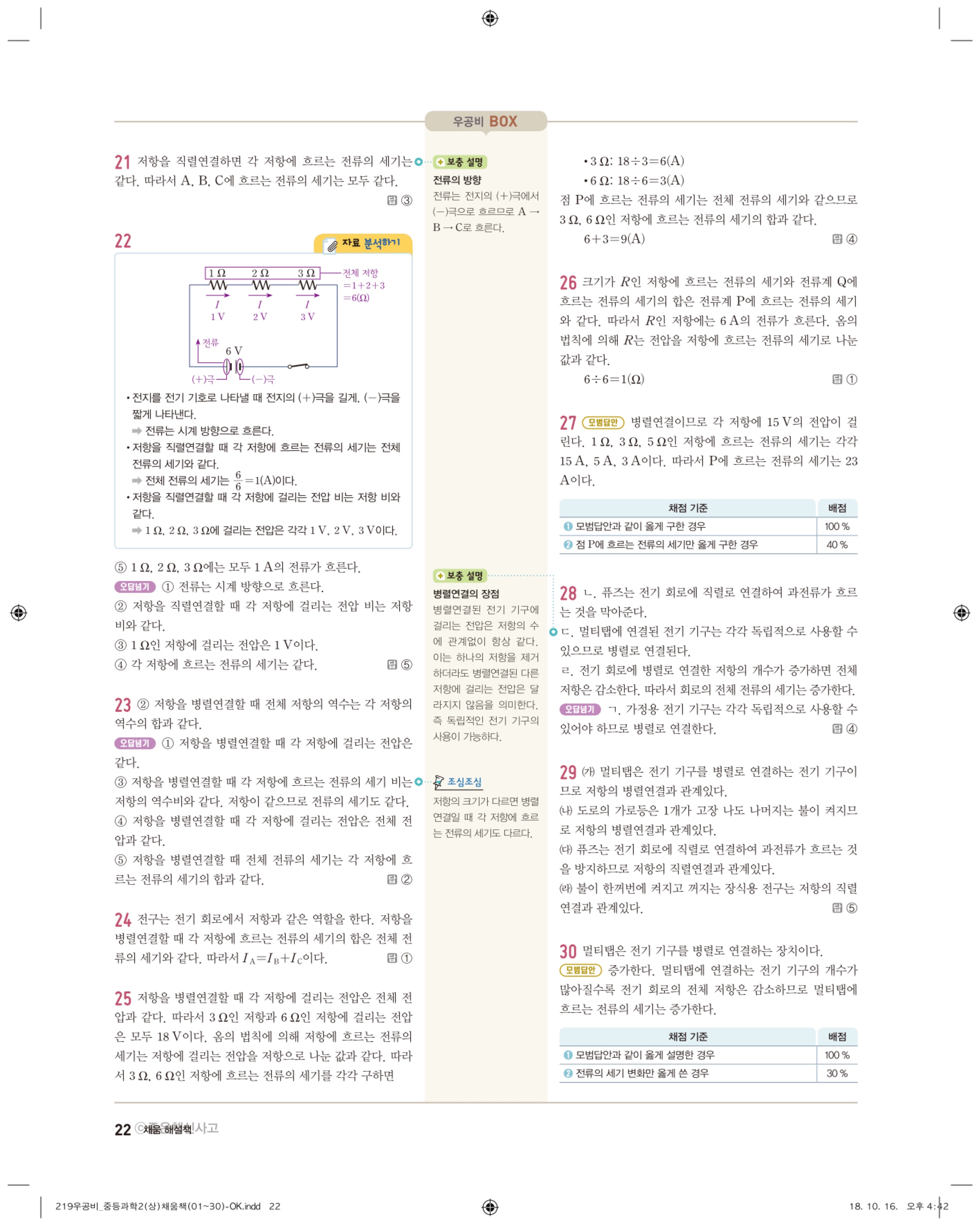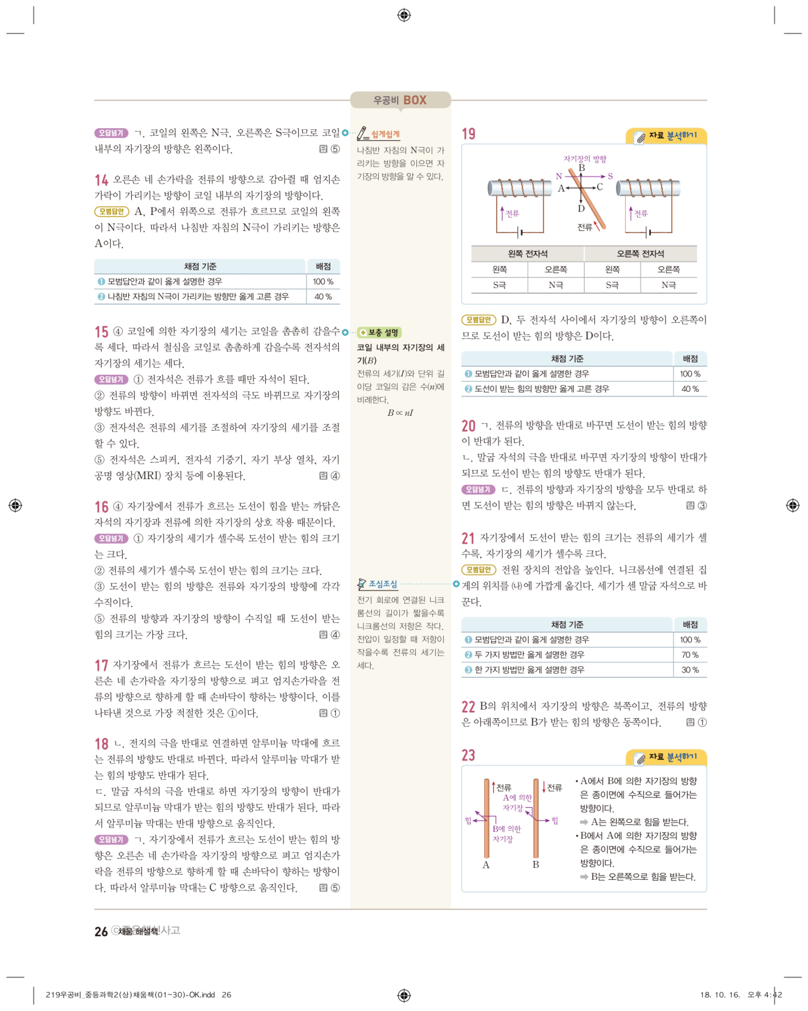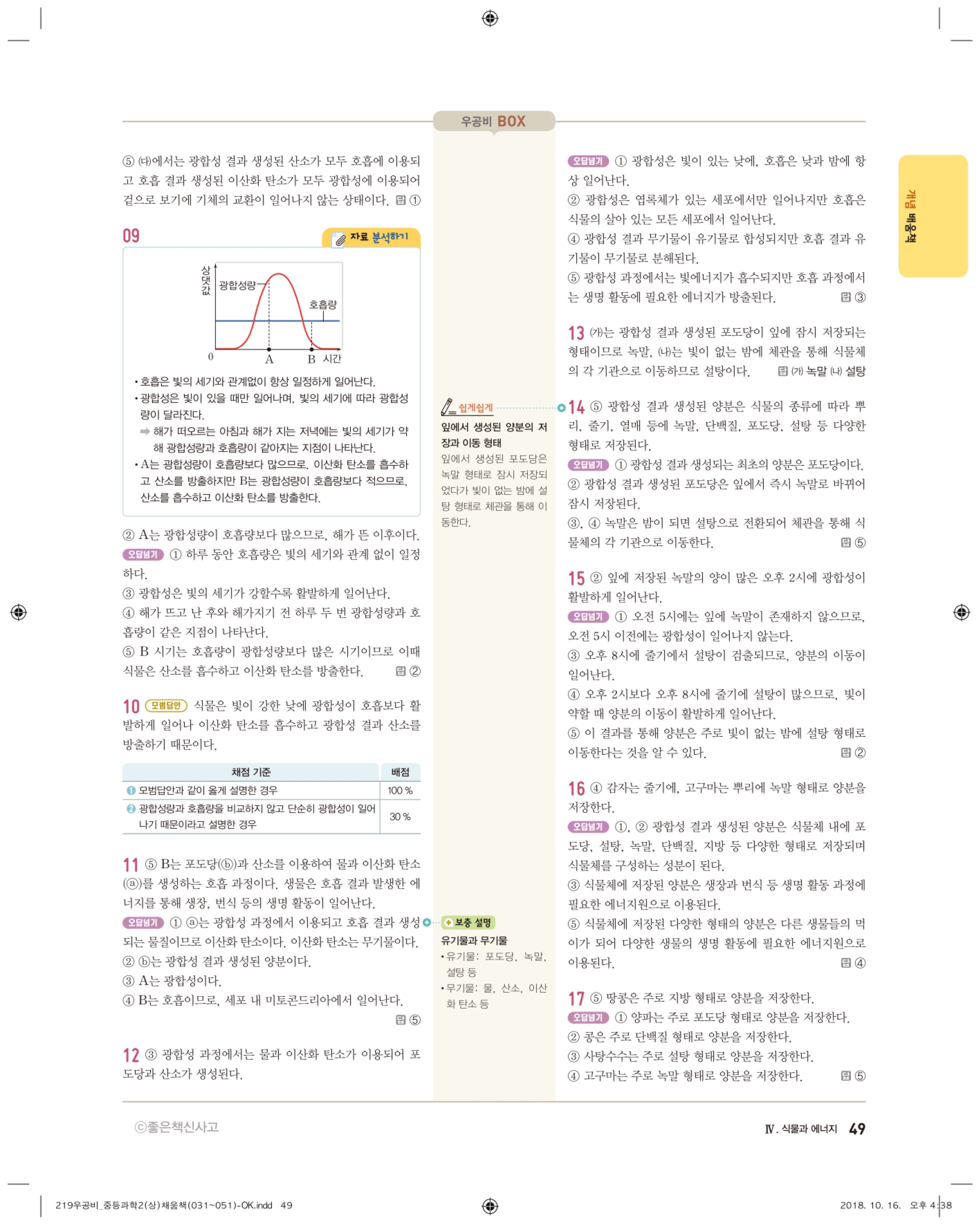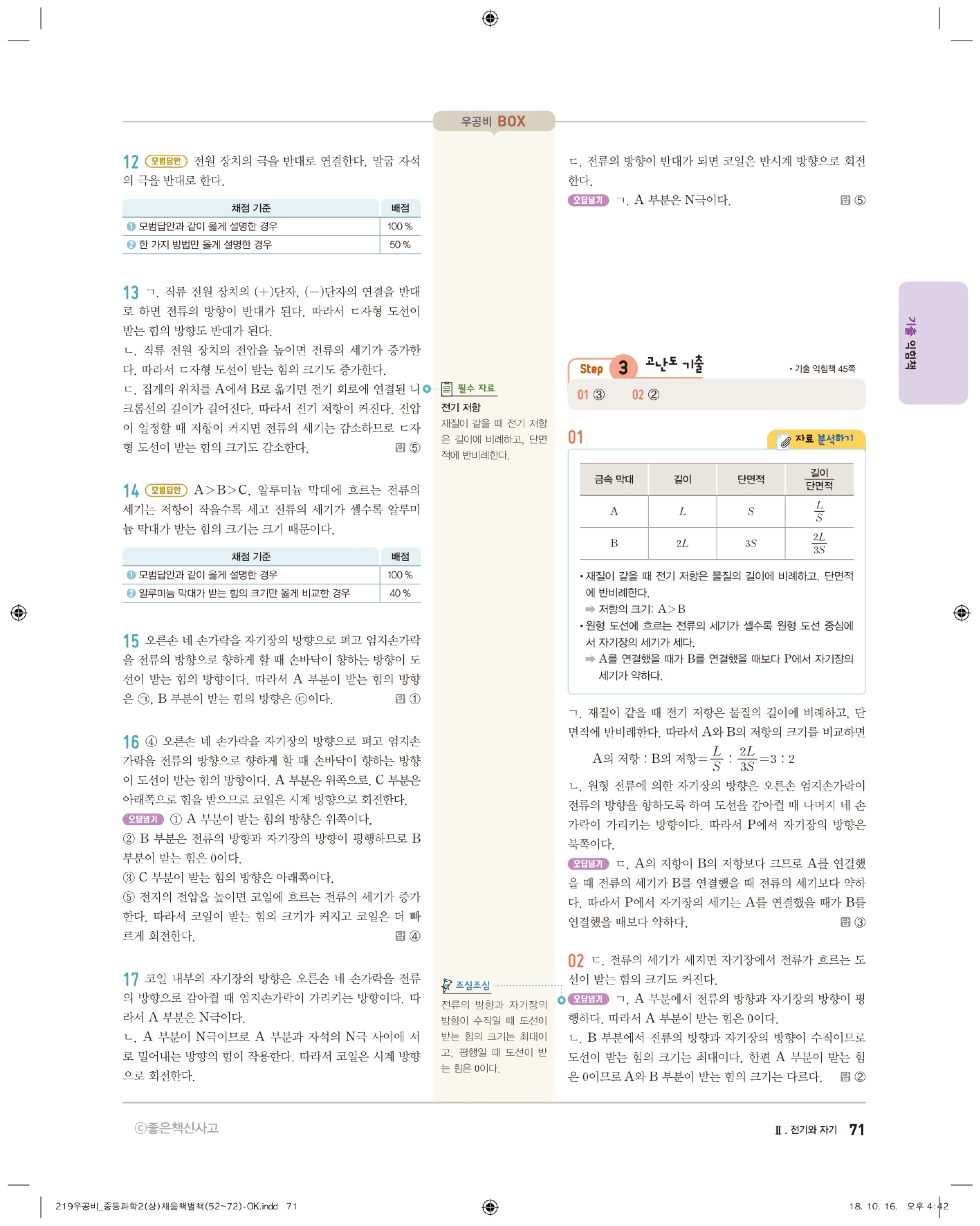 우공비 중등과학 2-1 답지 해설 바로보는 사진답지 빠른답지 모바일최적화
