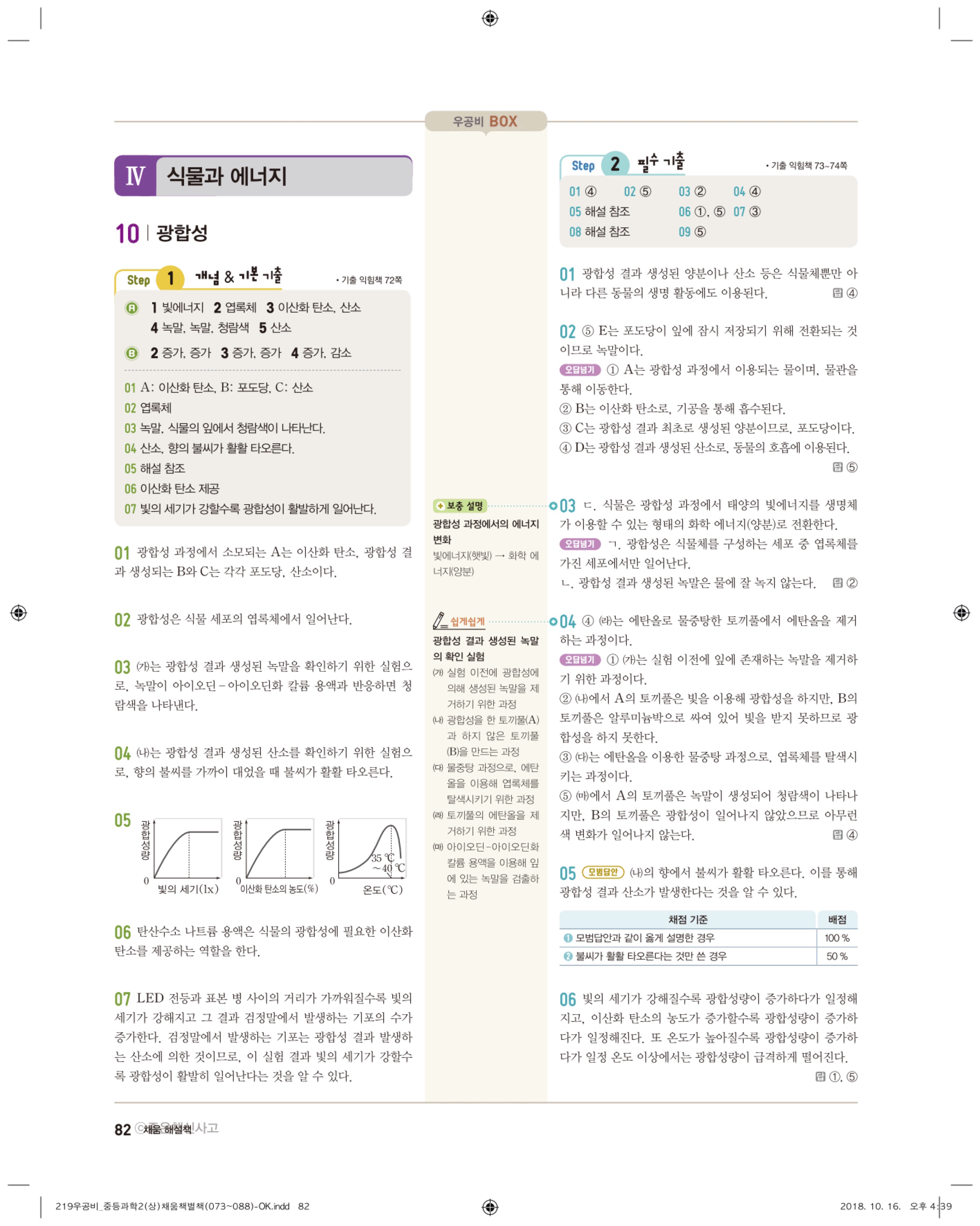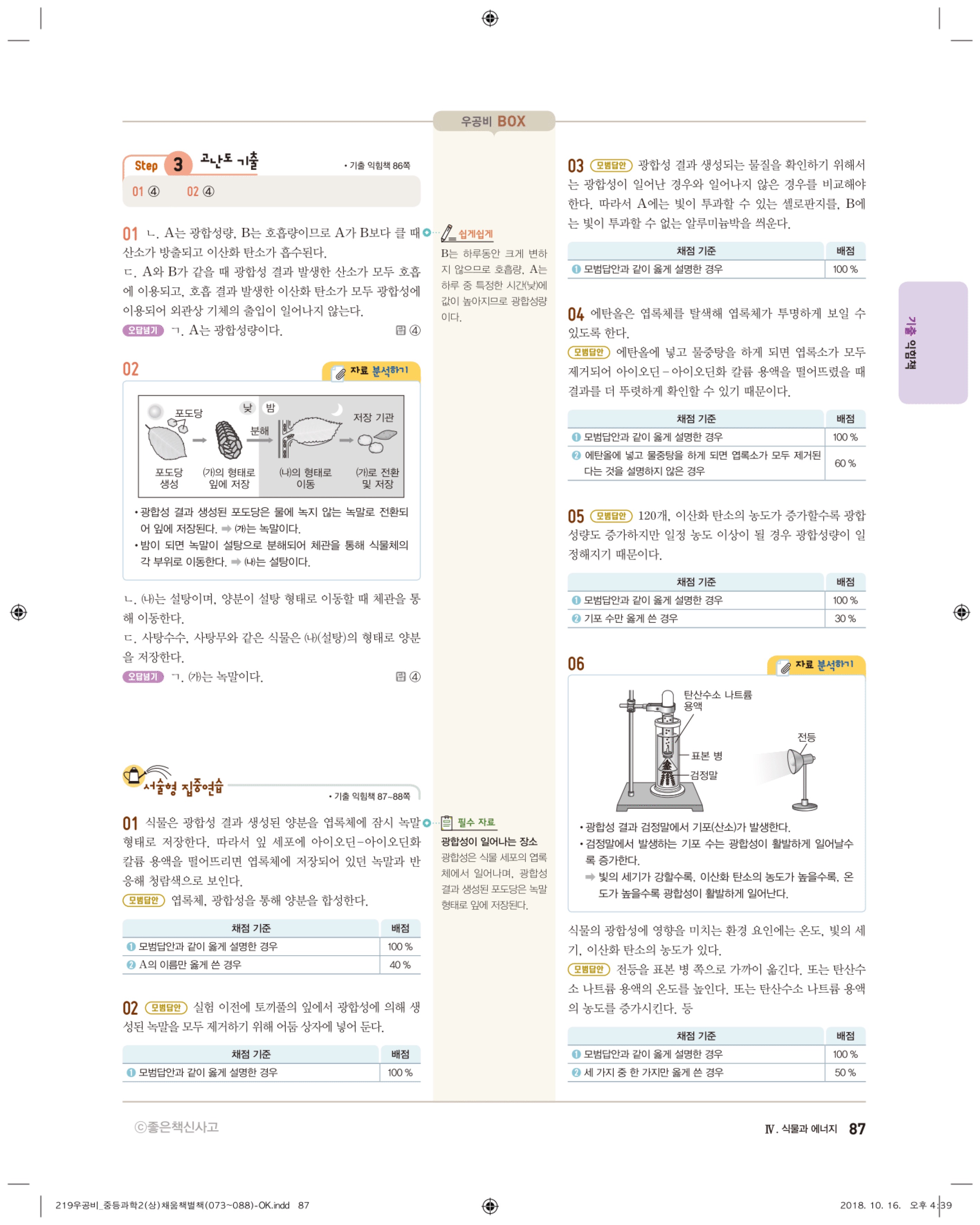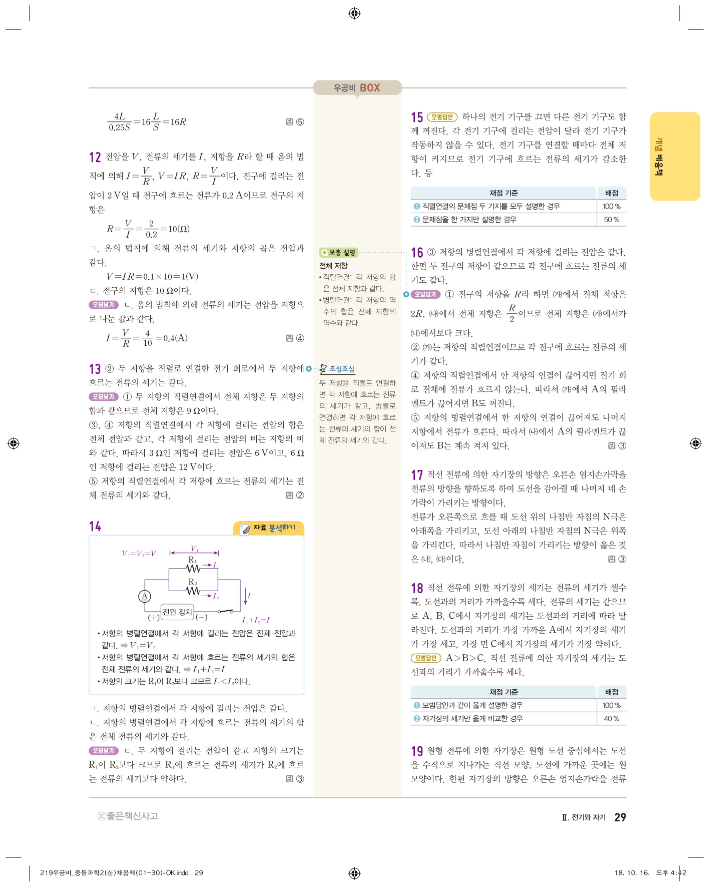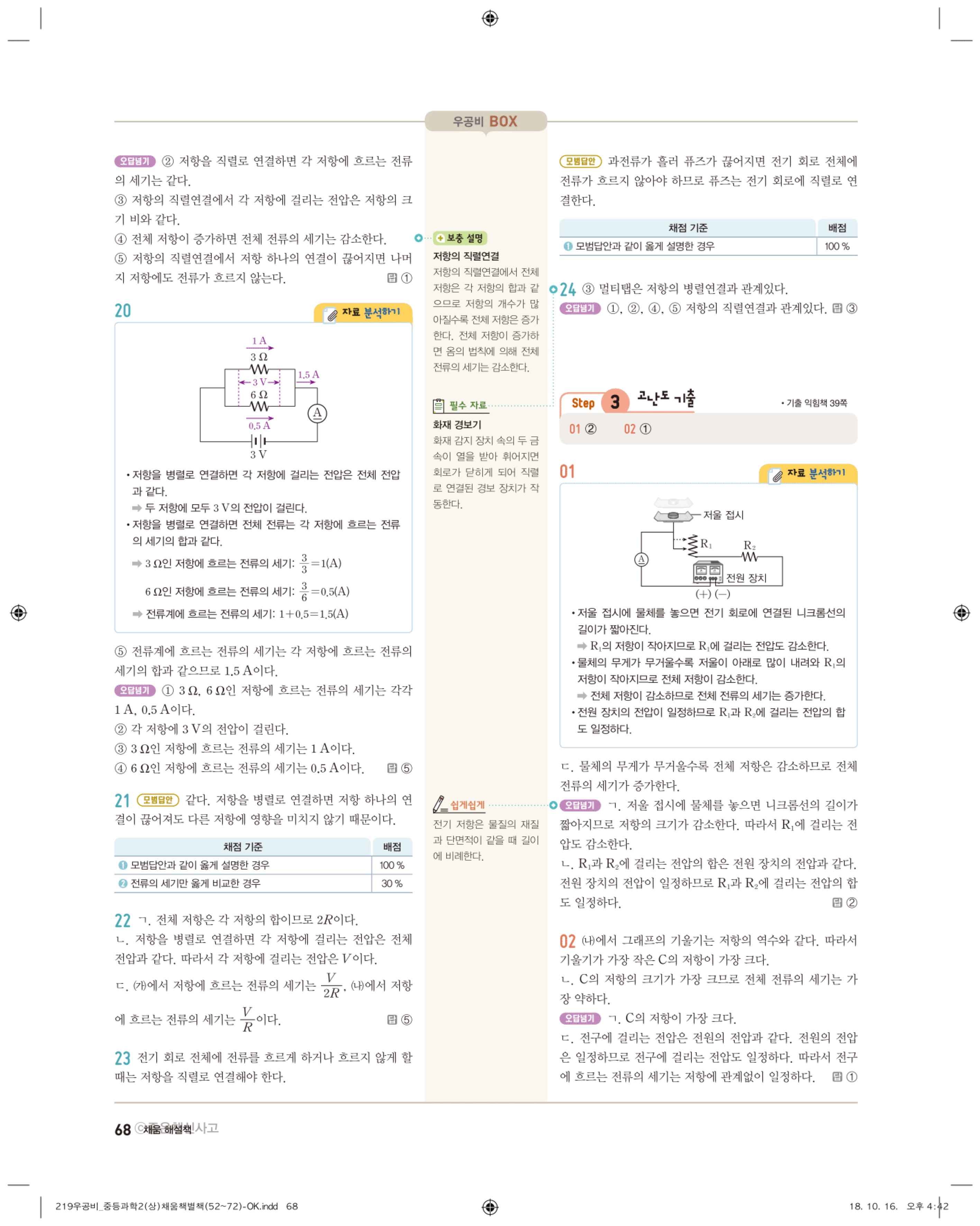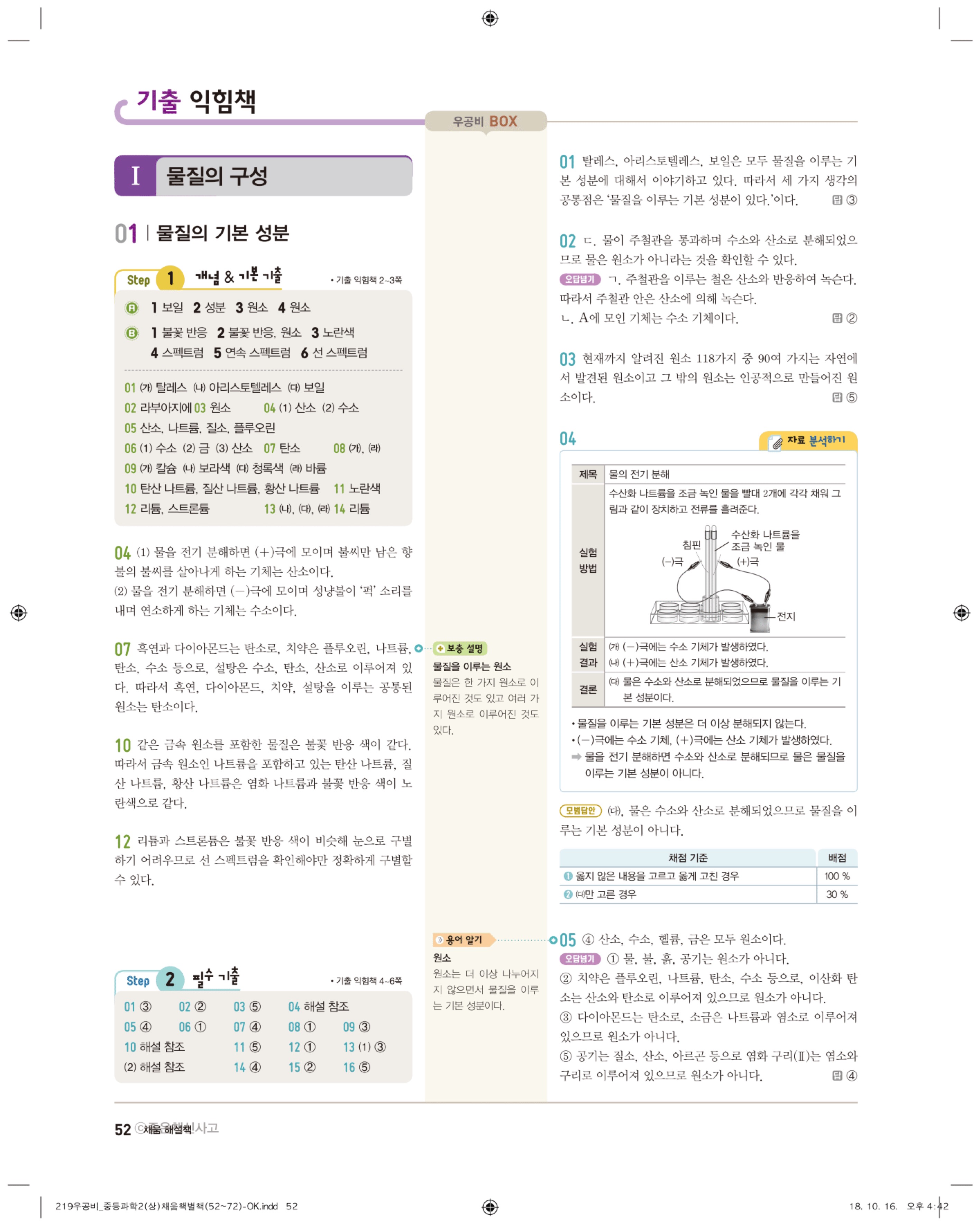 우공비 중등과학 2-1 답지 해설 바로보는 사진답지 빠른답지 모바일최적화