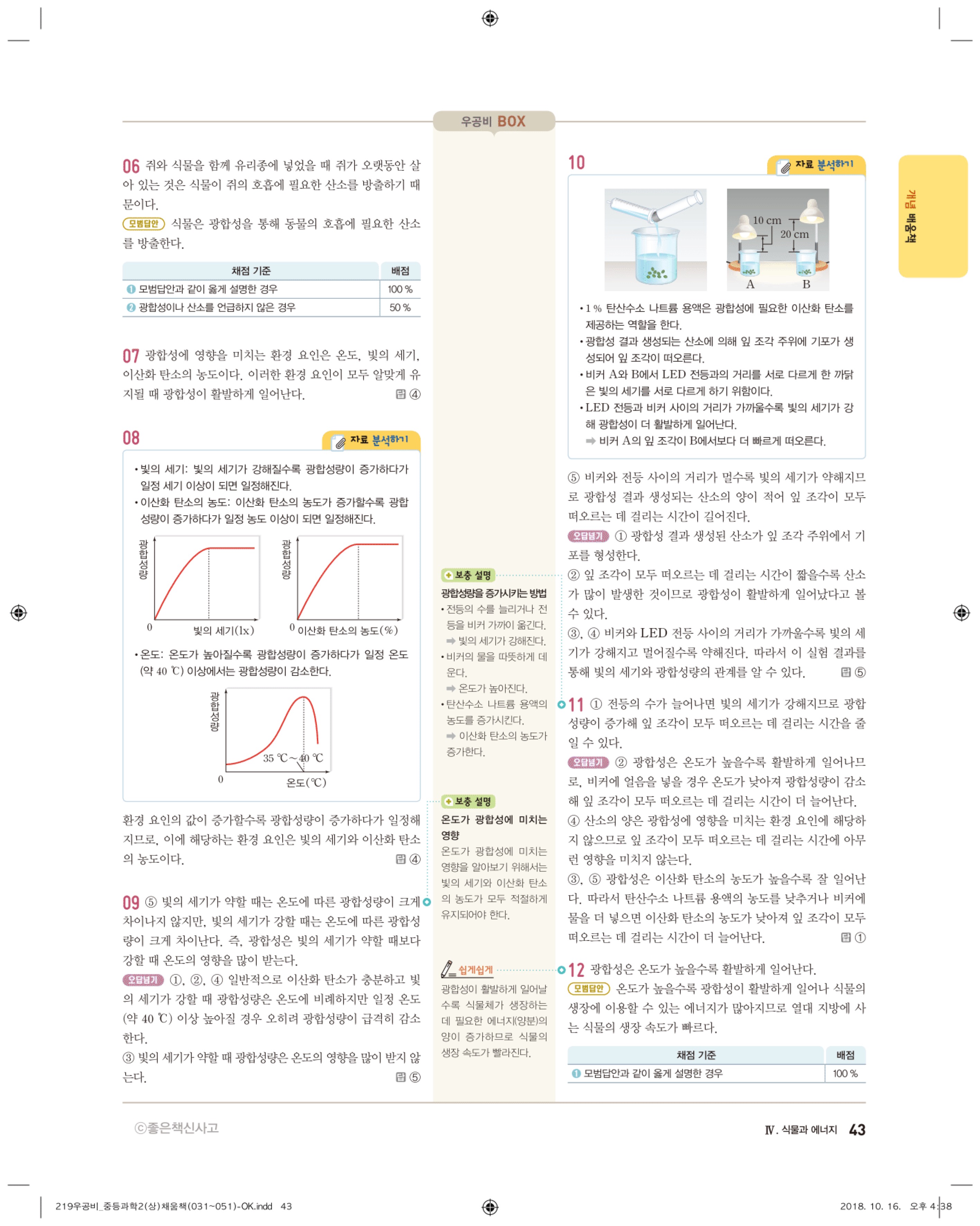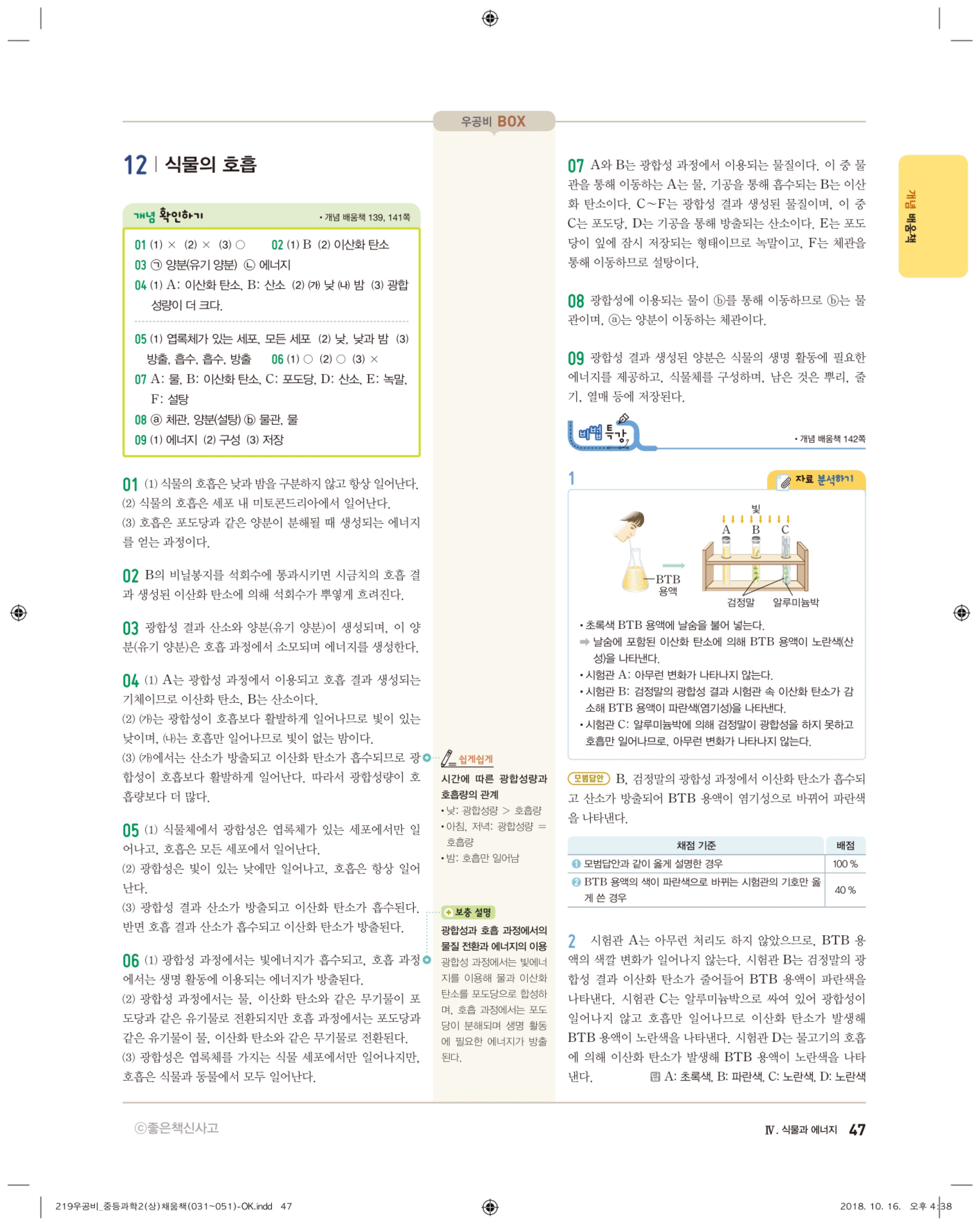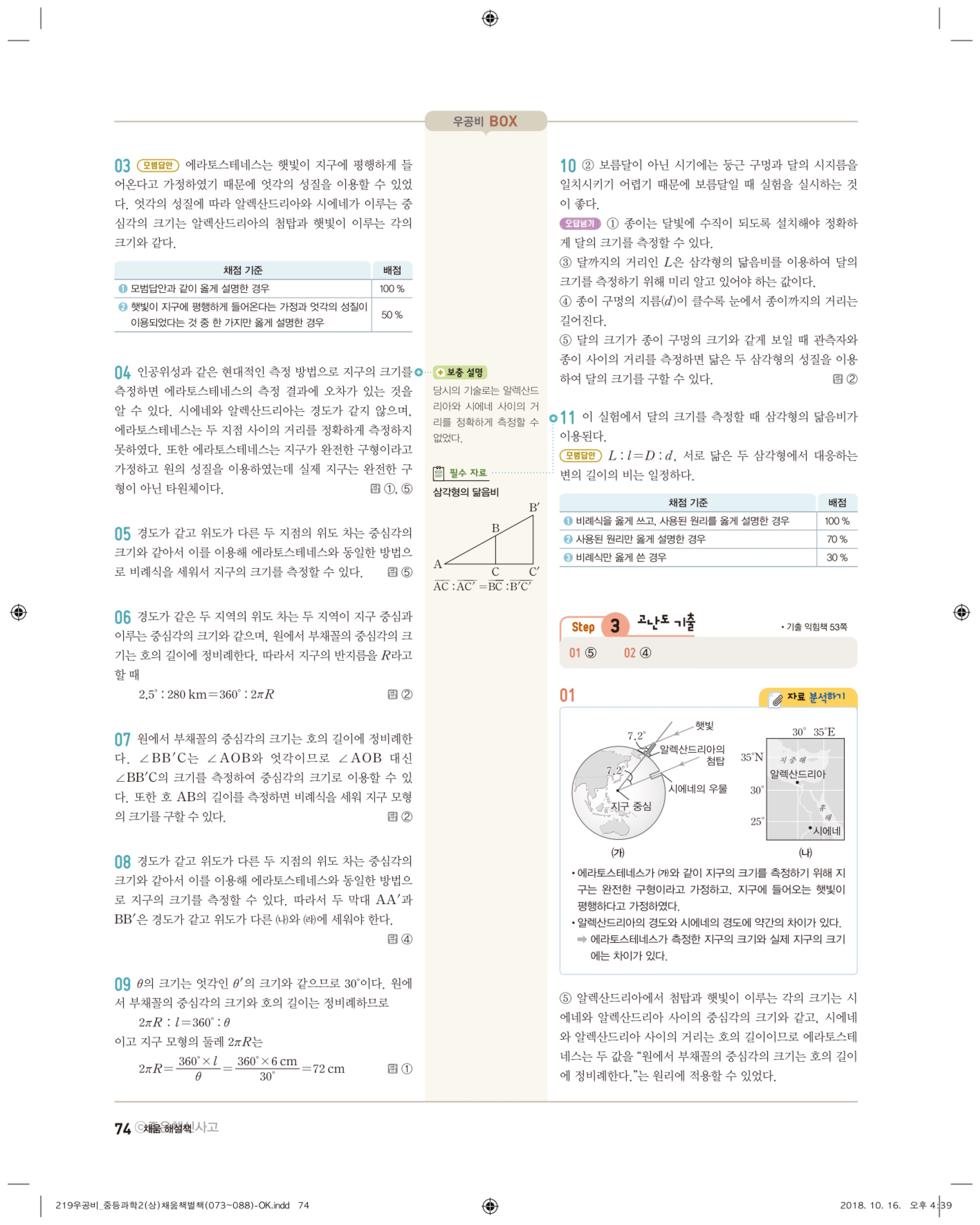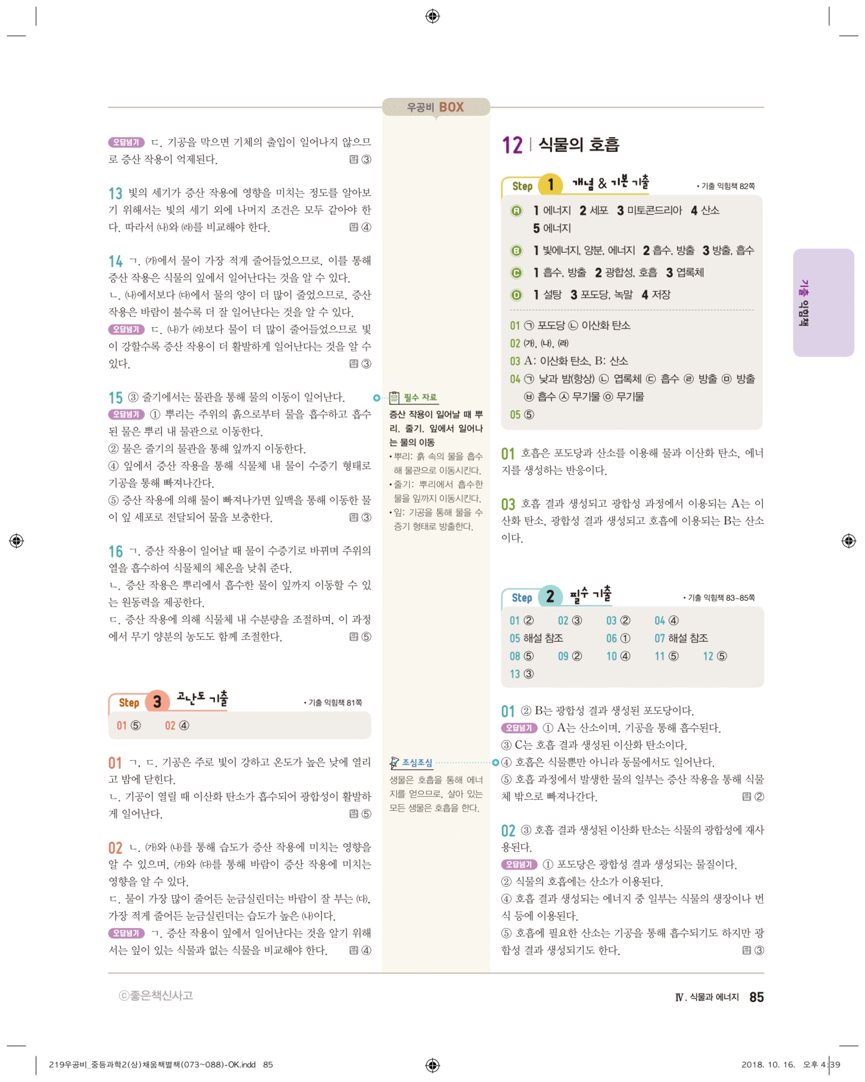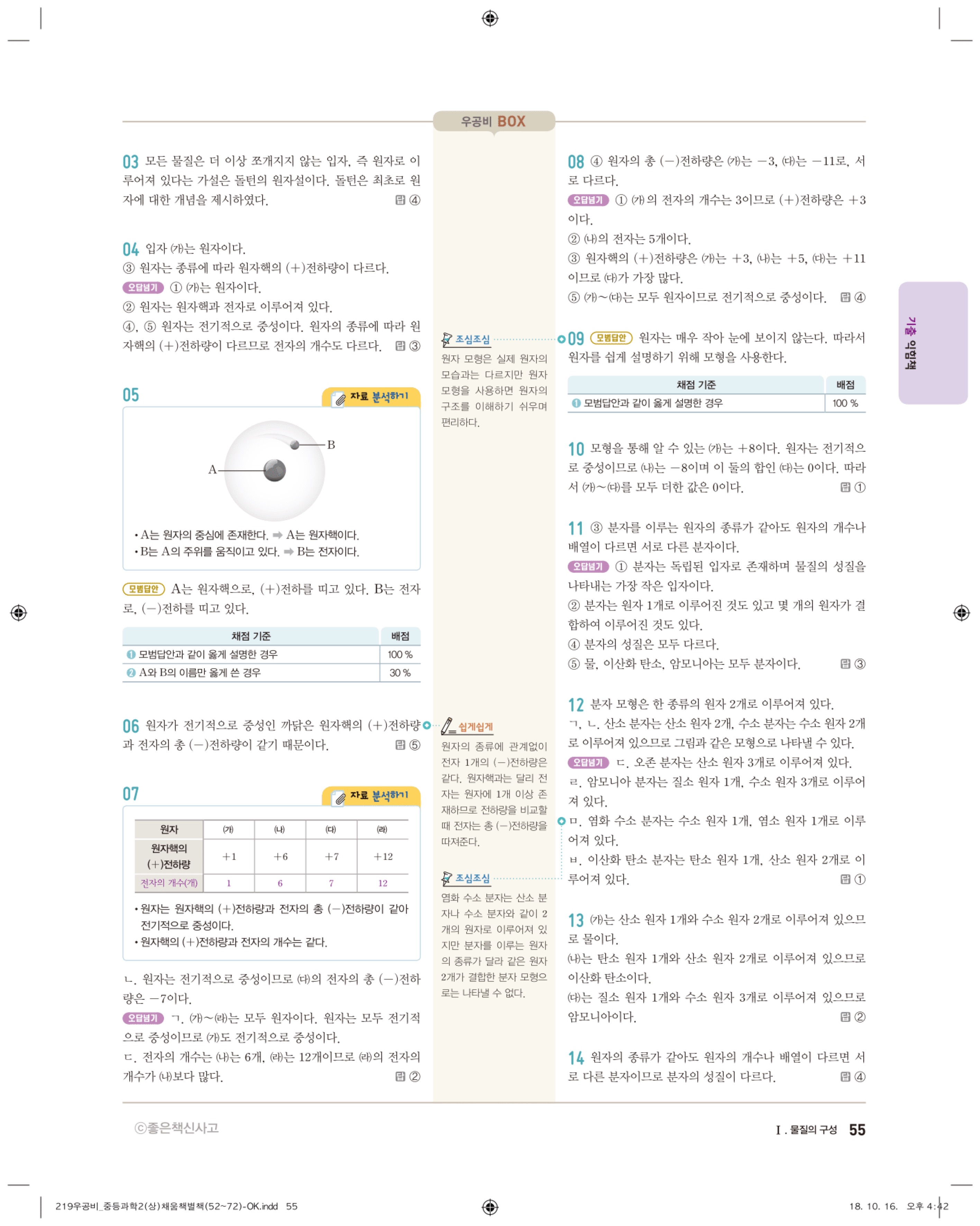 우공비 중등과학 2-1 답지 해설 바로보는 사진답지 빠른답지 모바일최적화