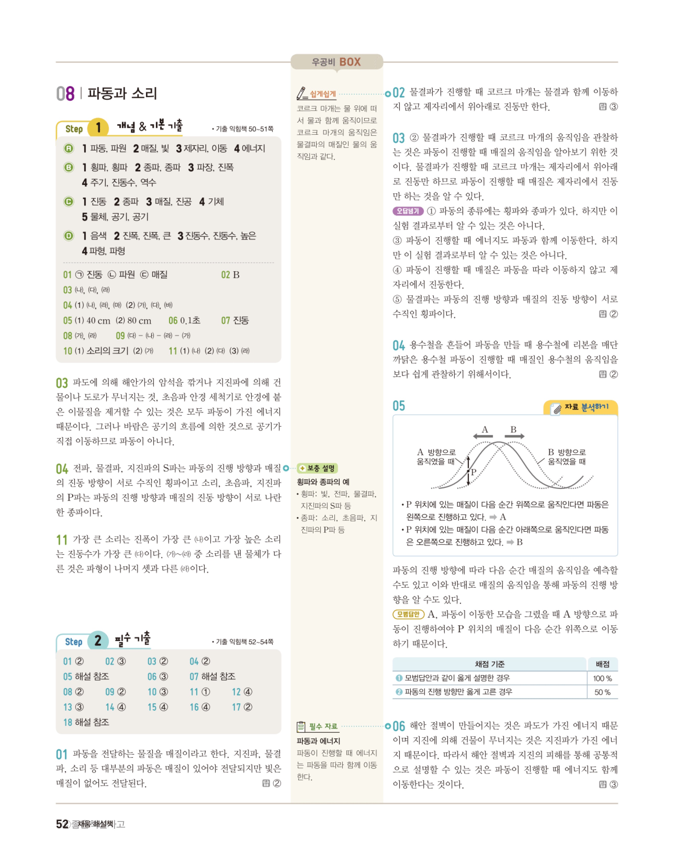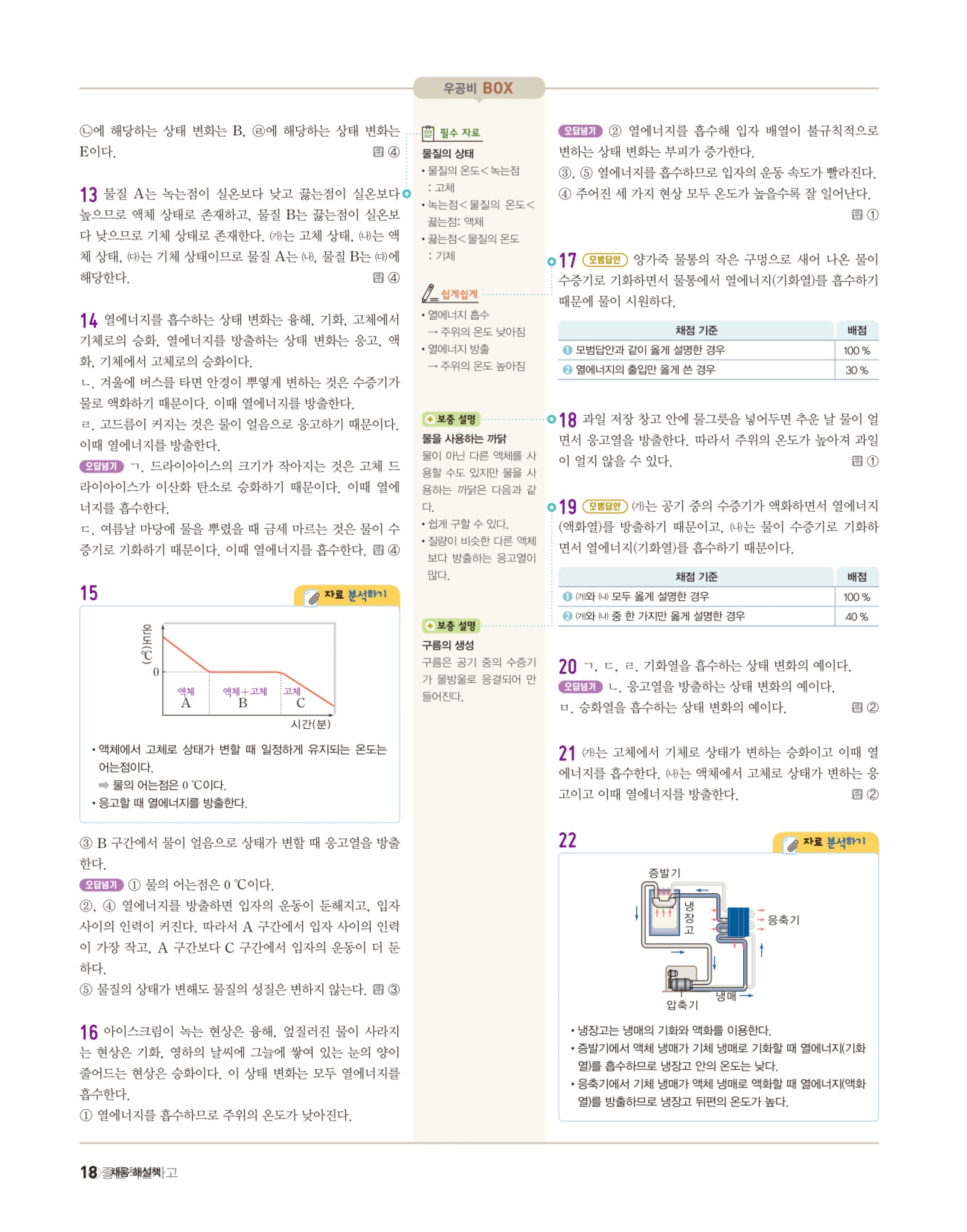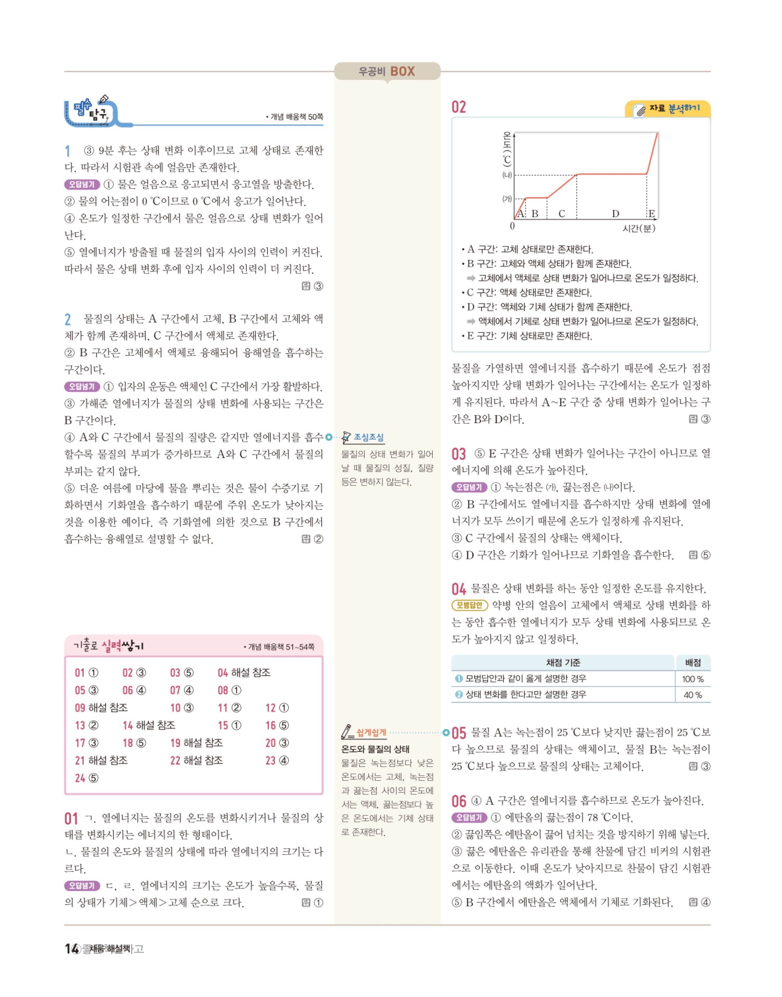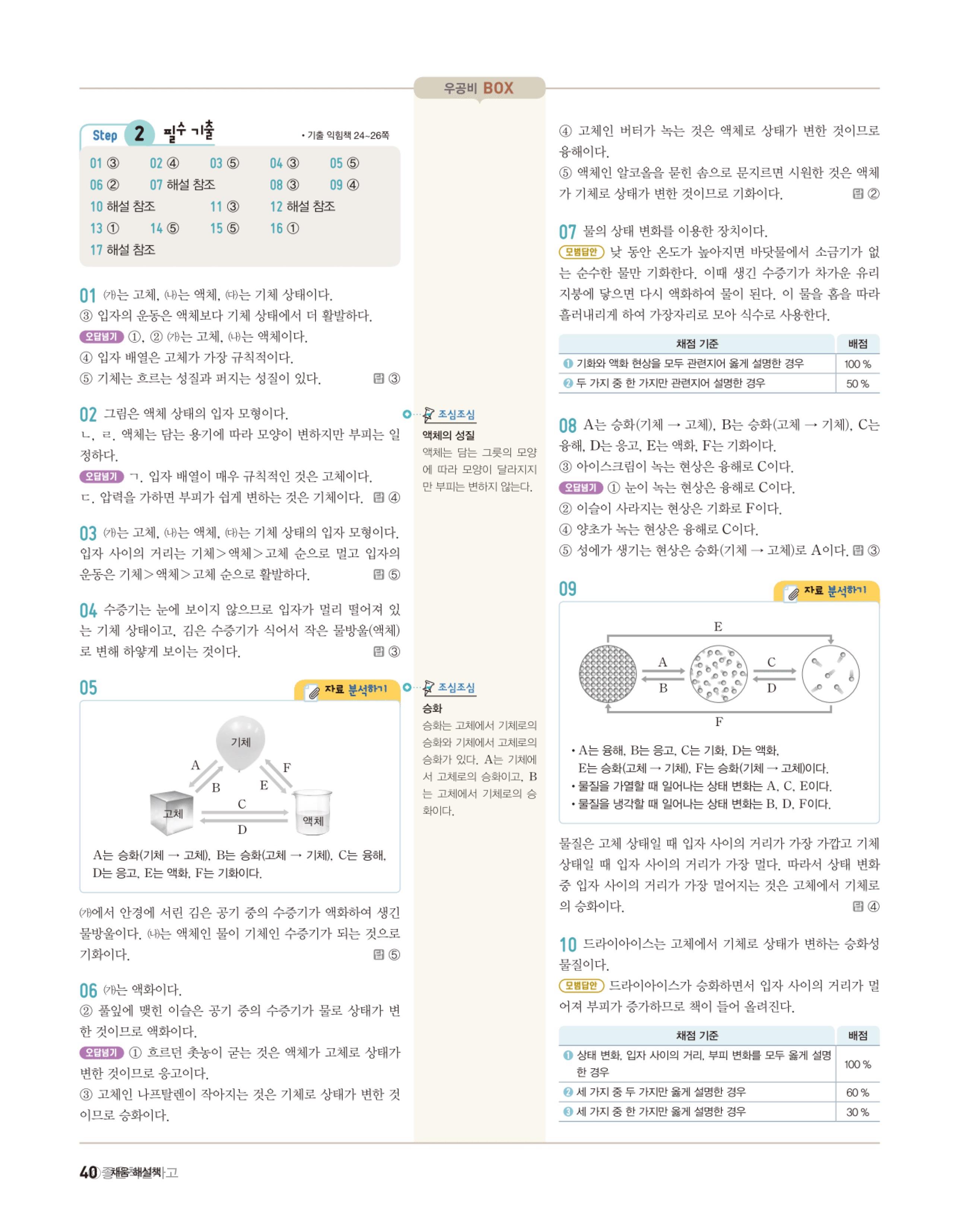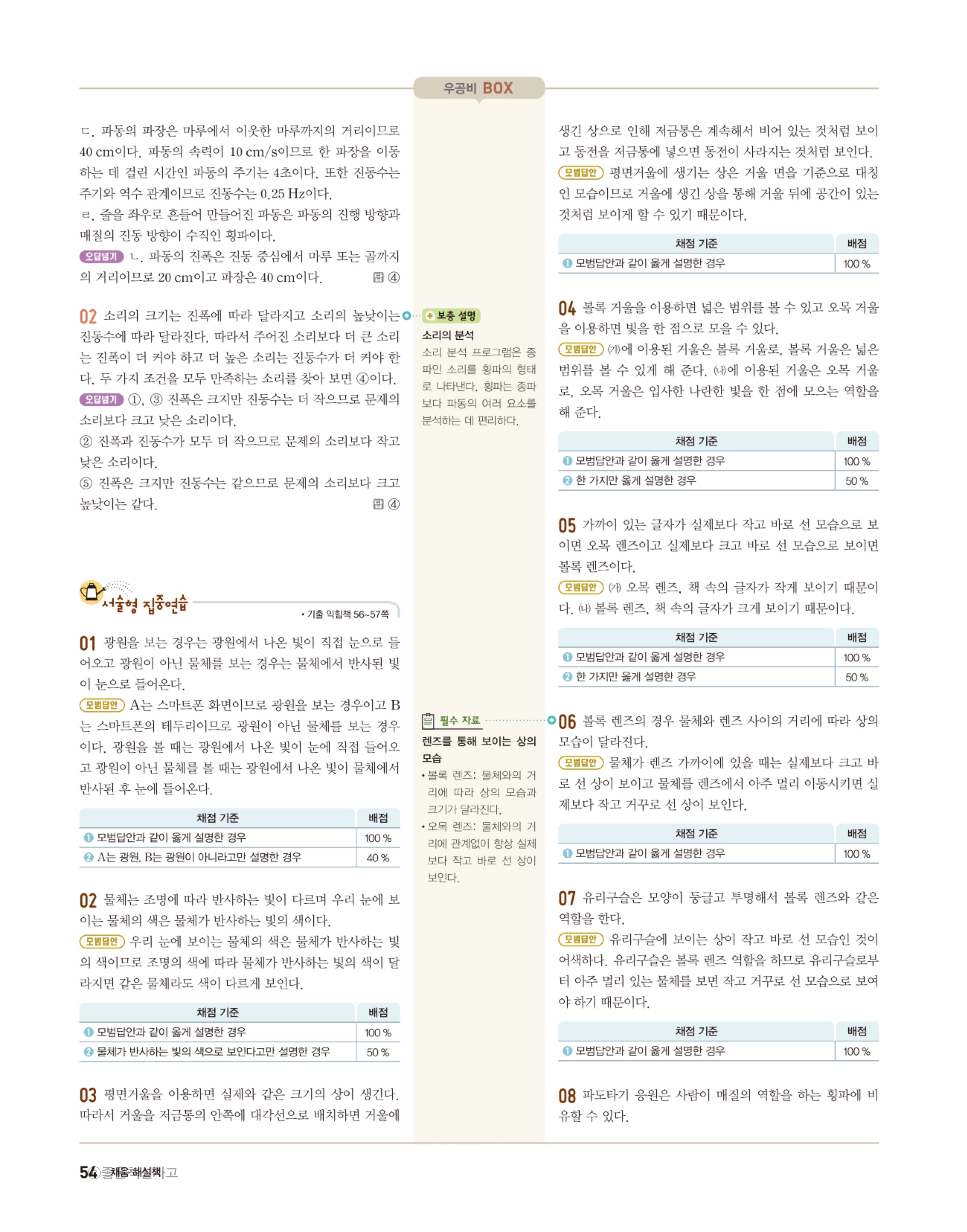 우공비 중등과학 1-2 답지 해설 바로보는 사진답지 빠른답지 모바일최적화