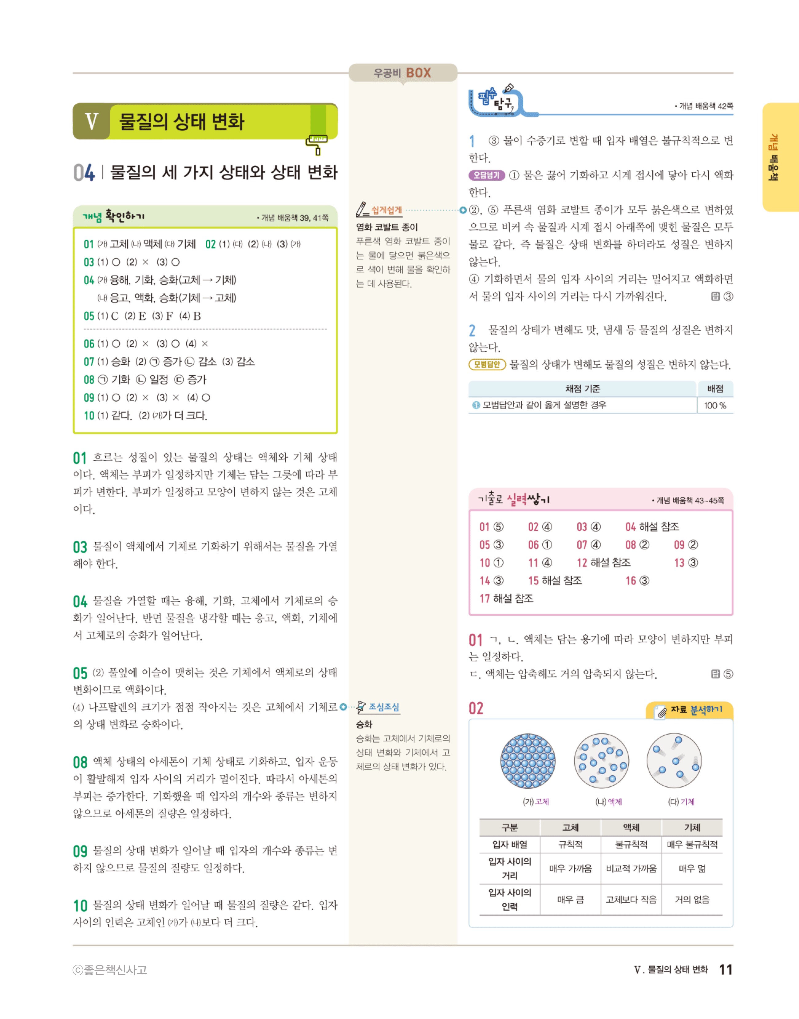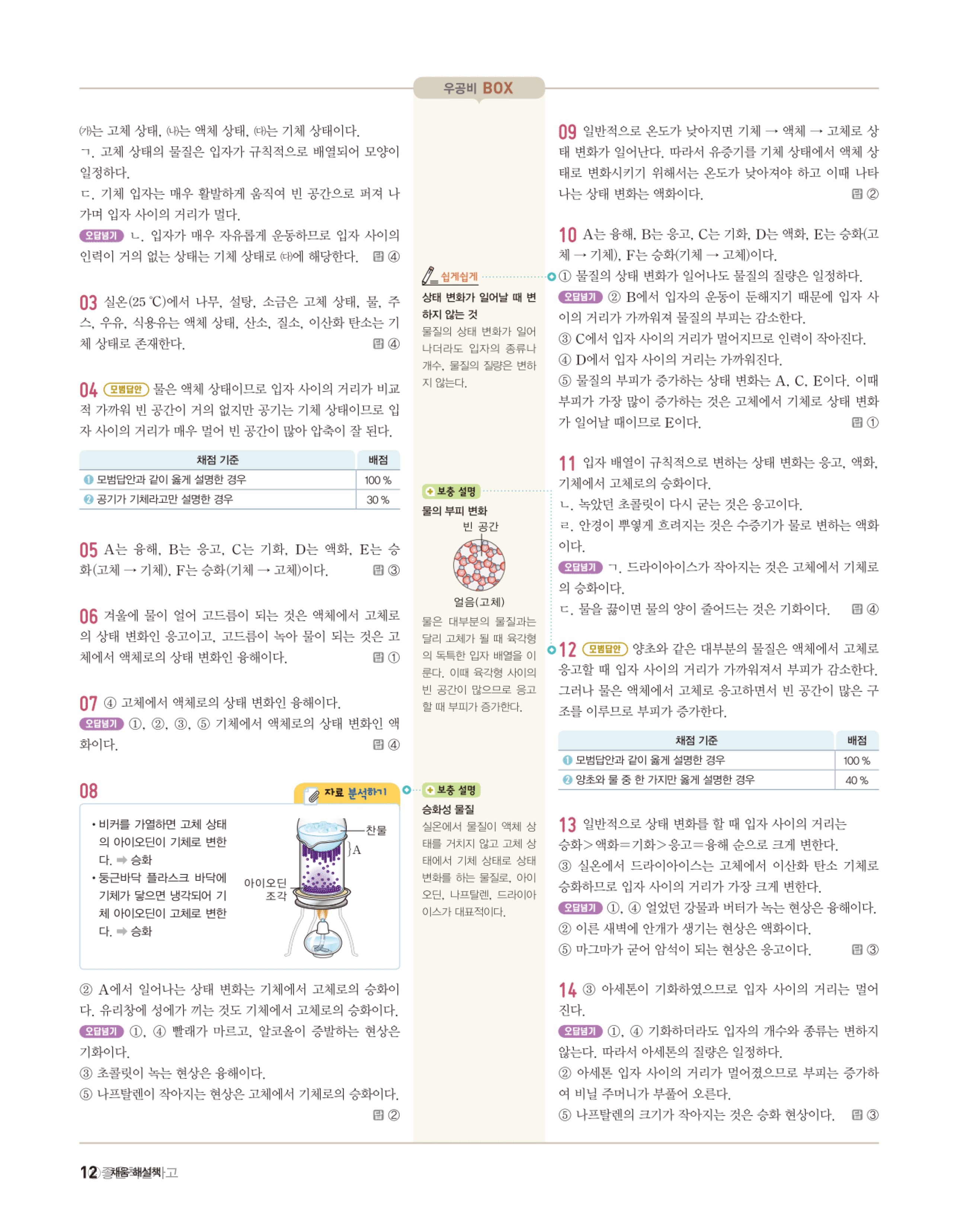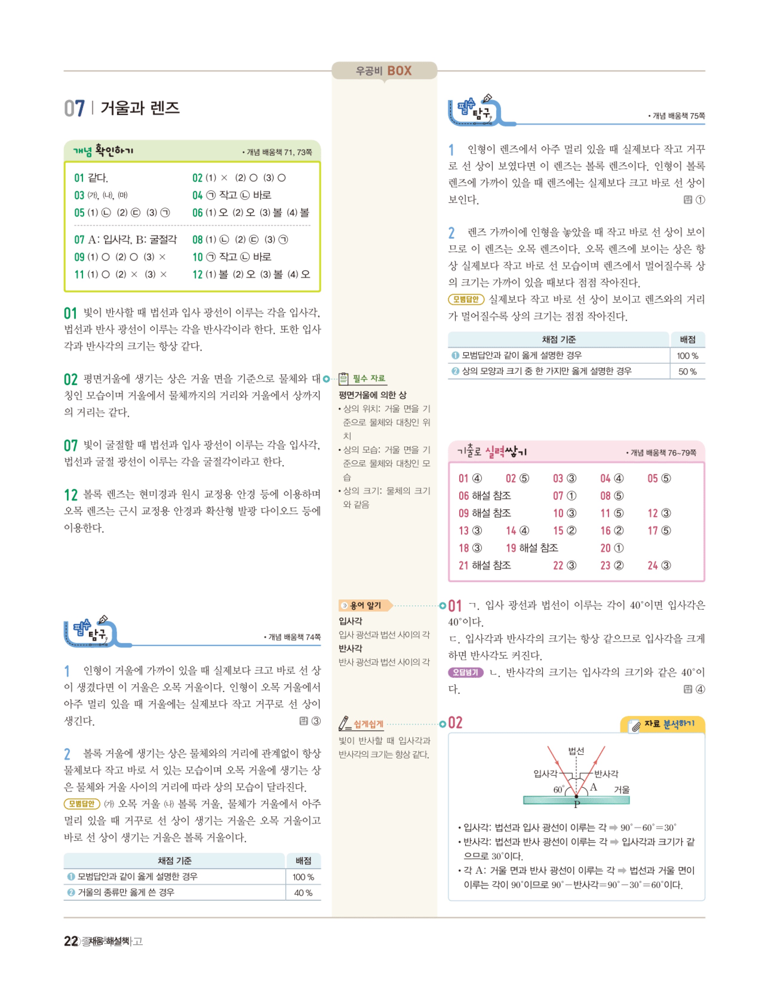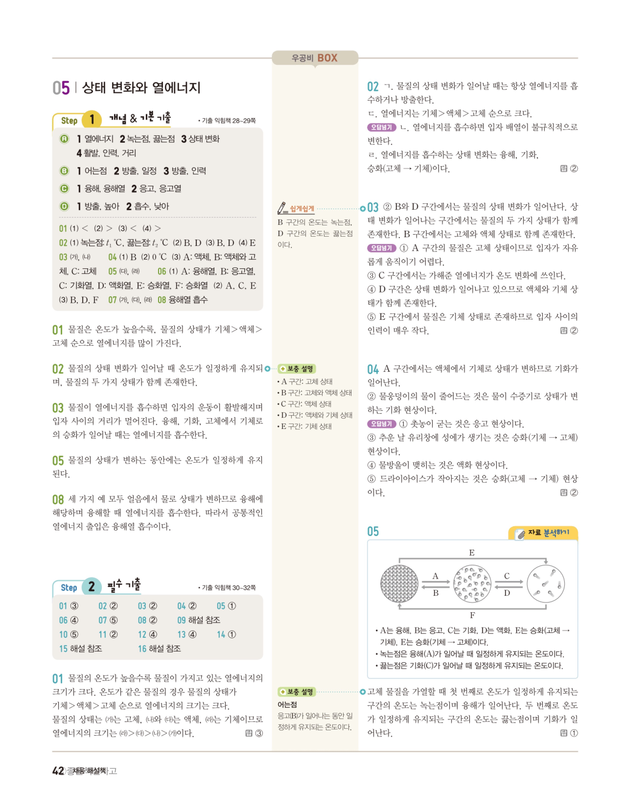우공비 중등과학 1-2 답지 해설 바로보는 사진답지 빠른답지 모바일최적화