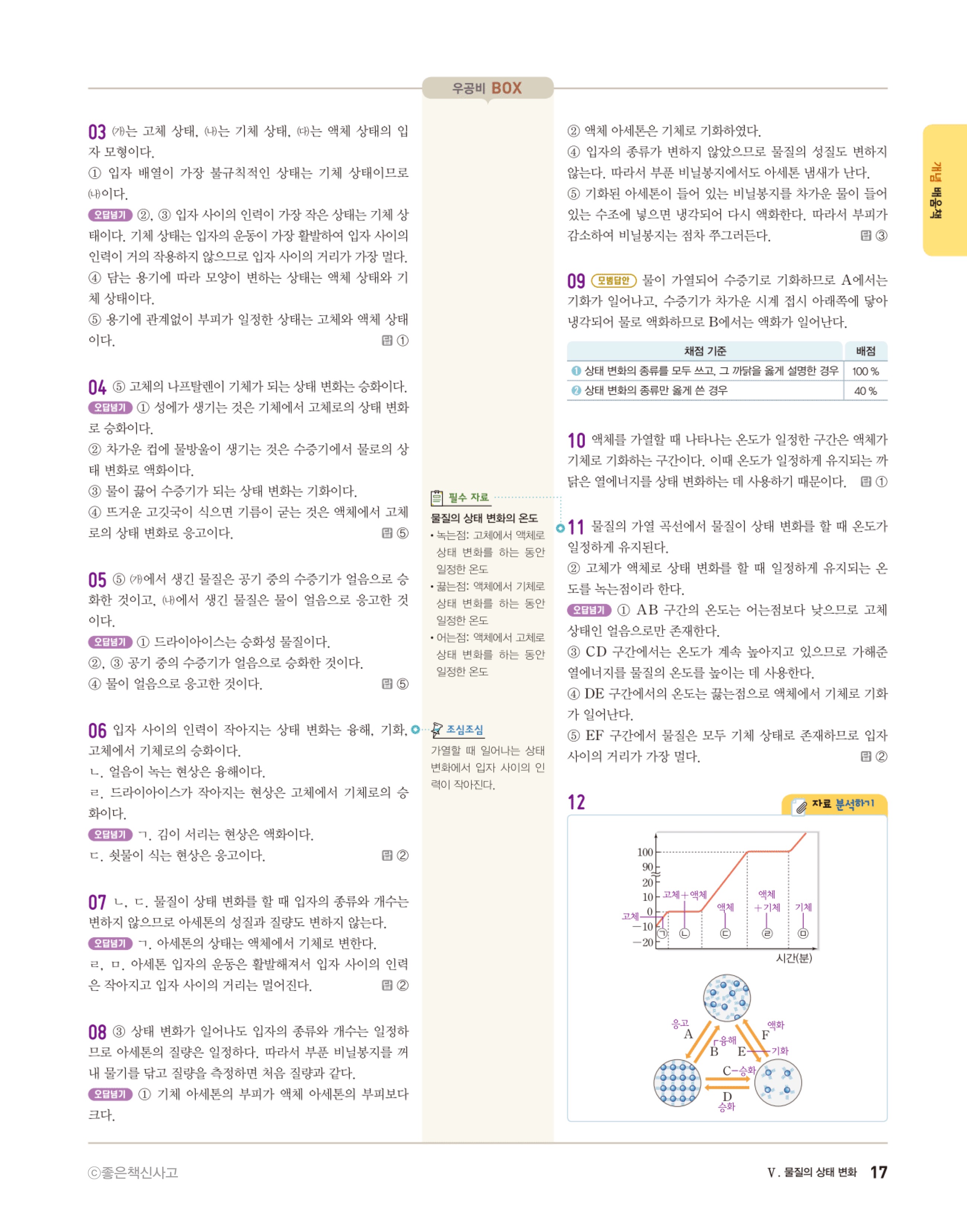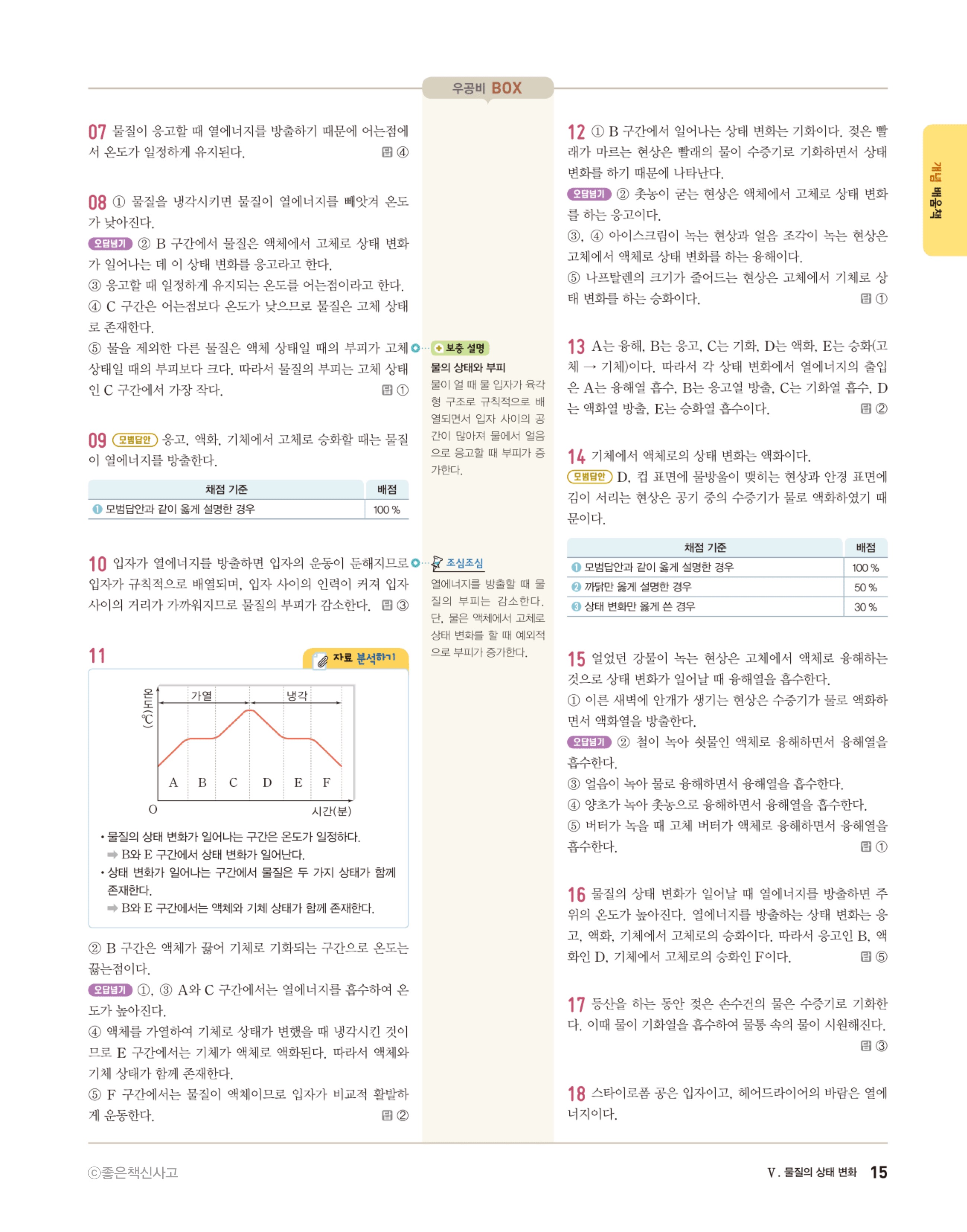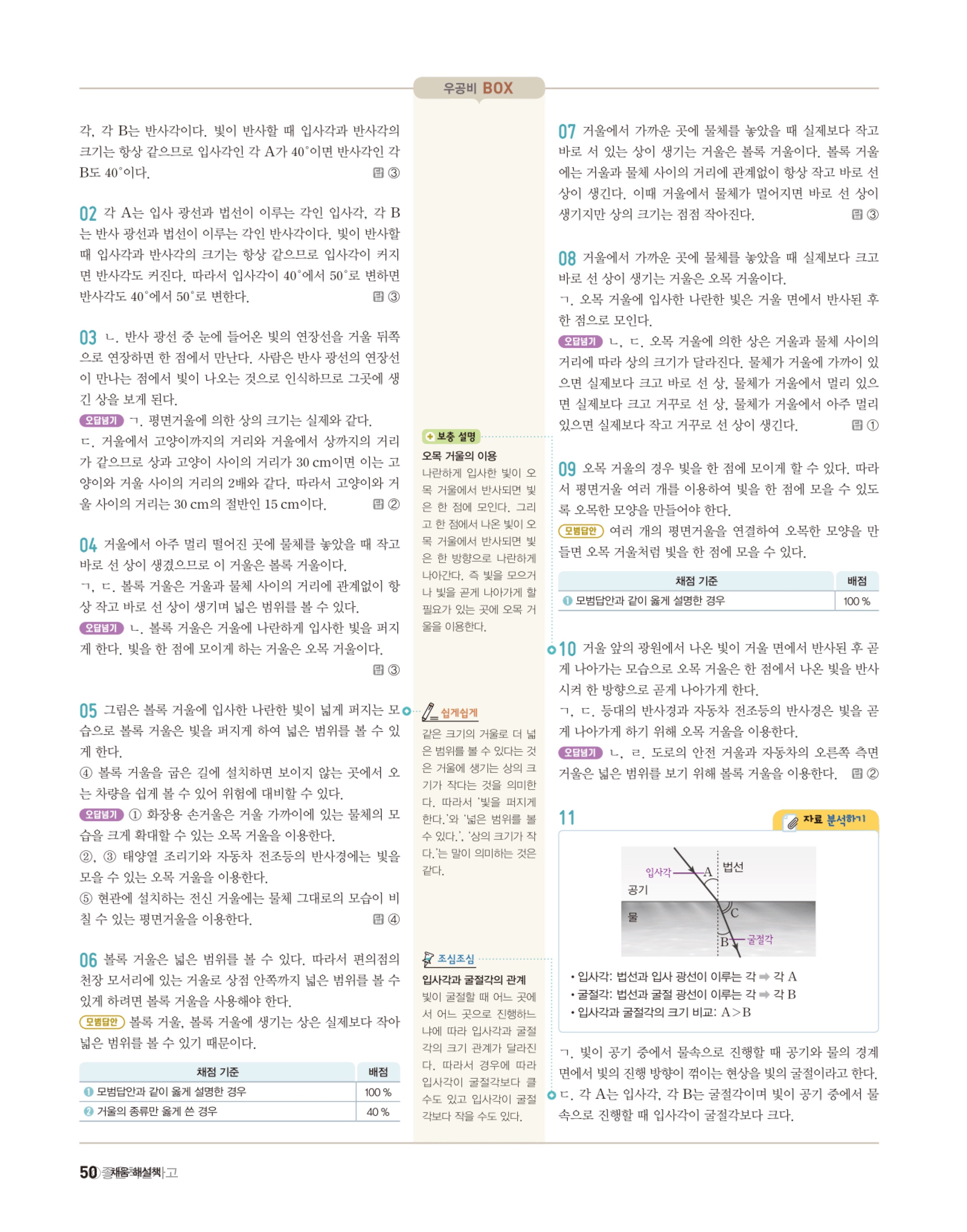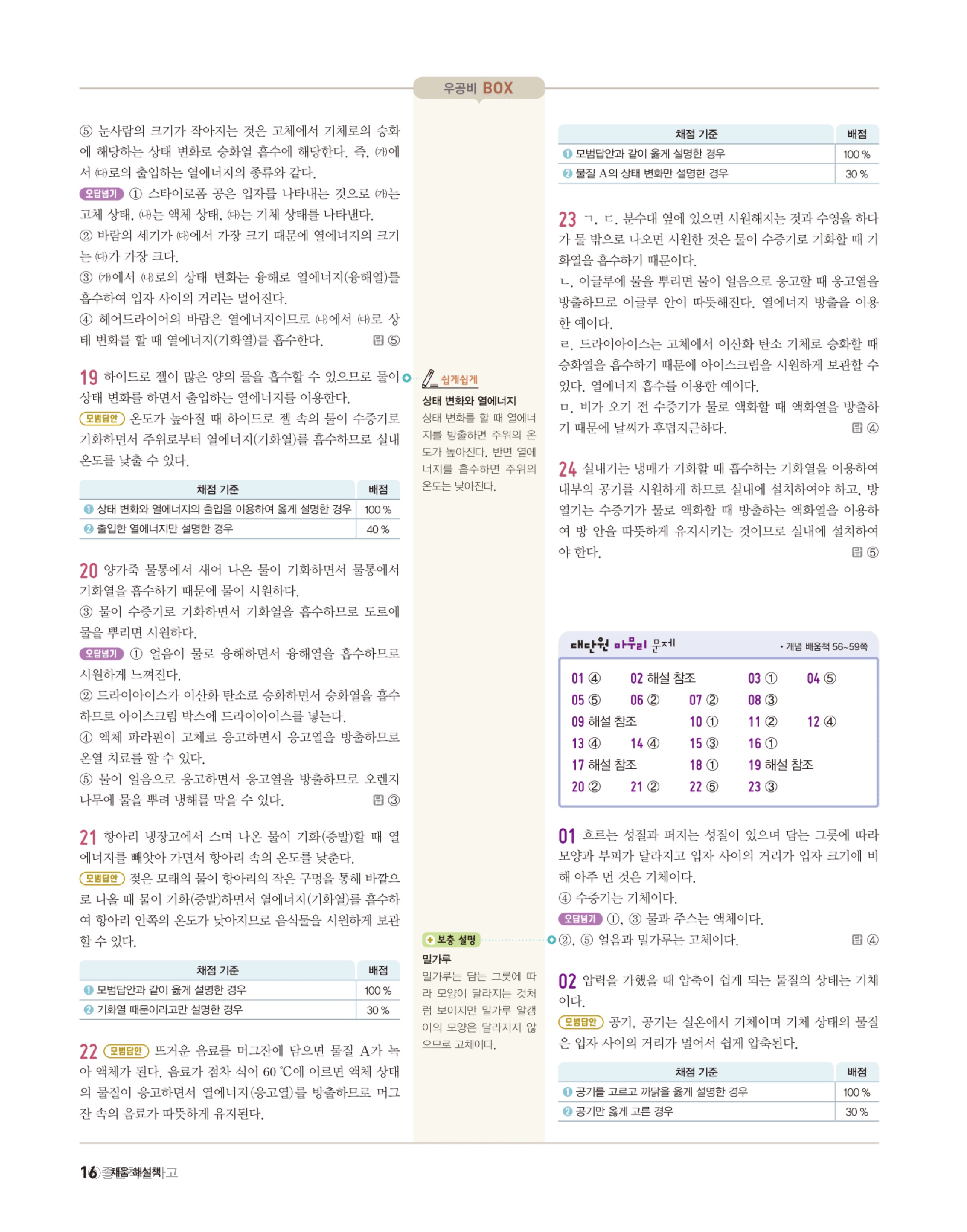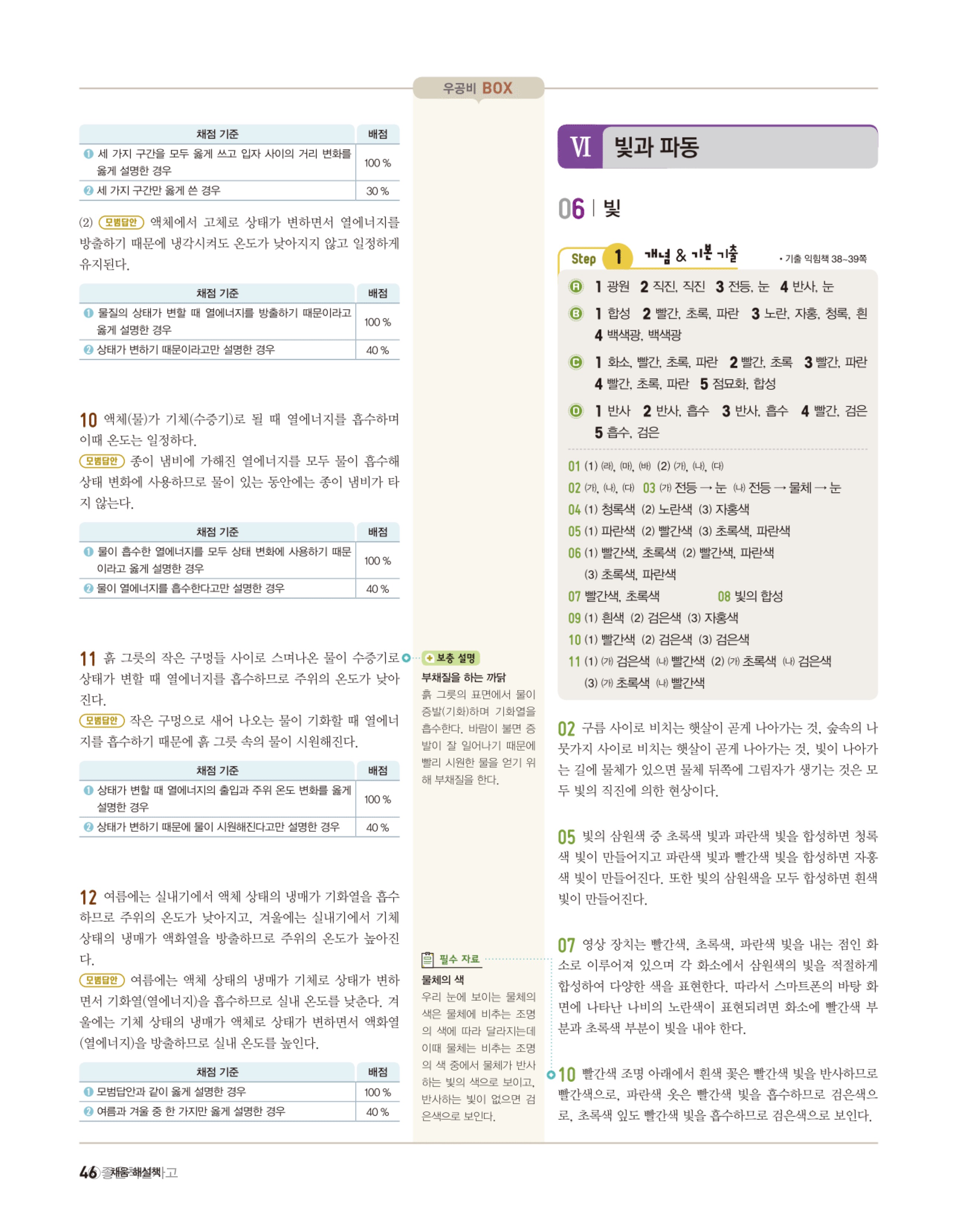 우공비 중등과학 1-2 답지 해설 바로보는 사진답지 빠른답지 모바일최적화
