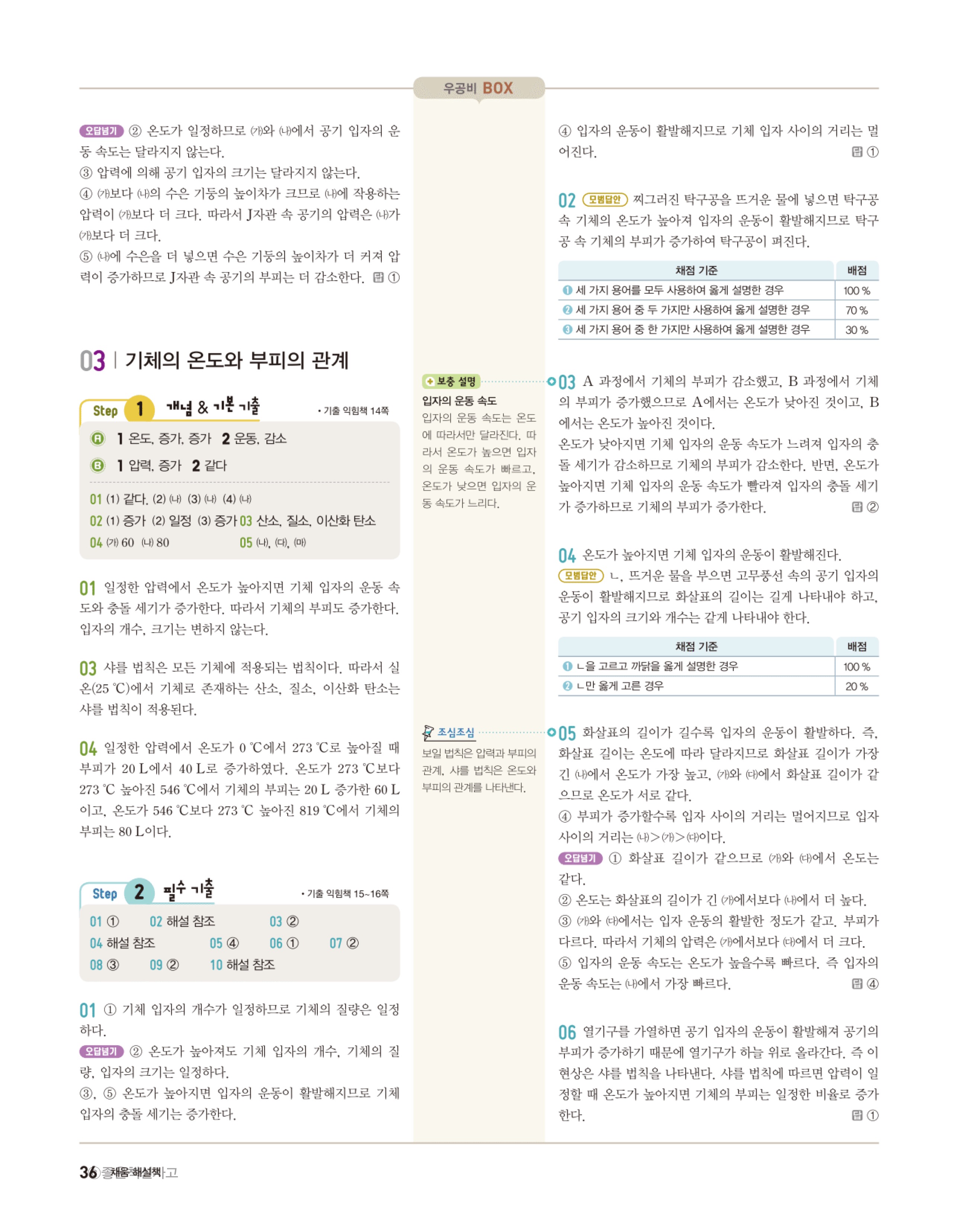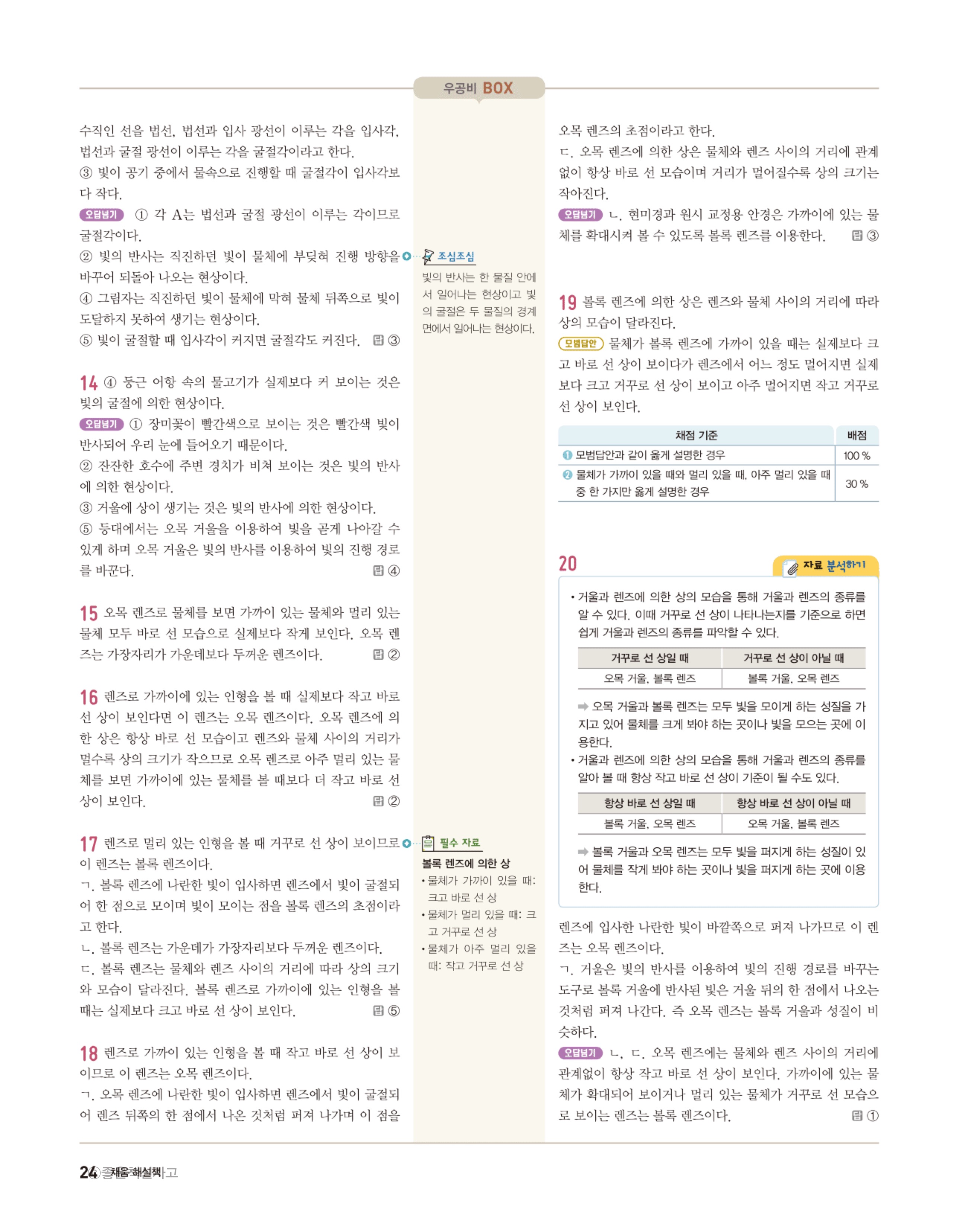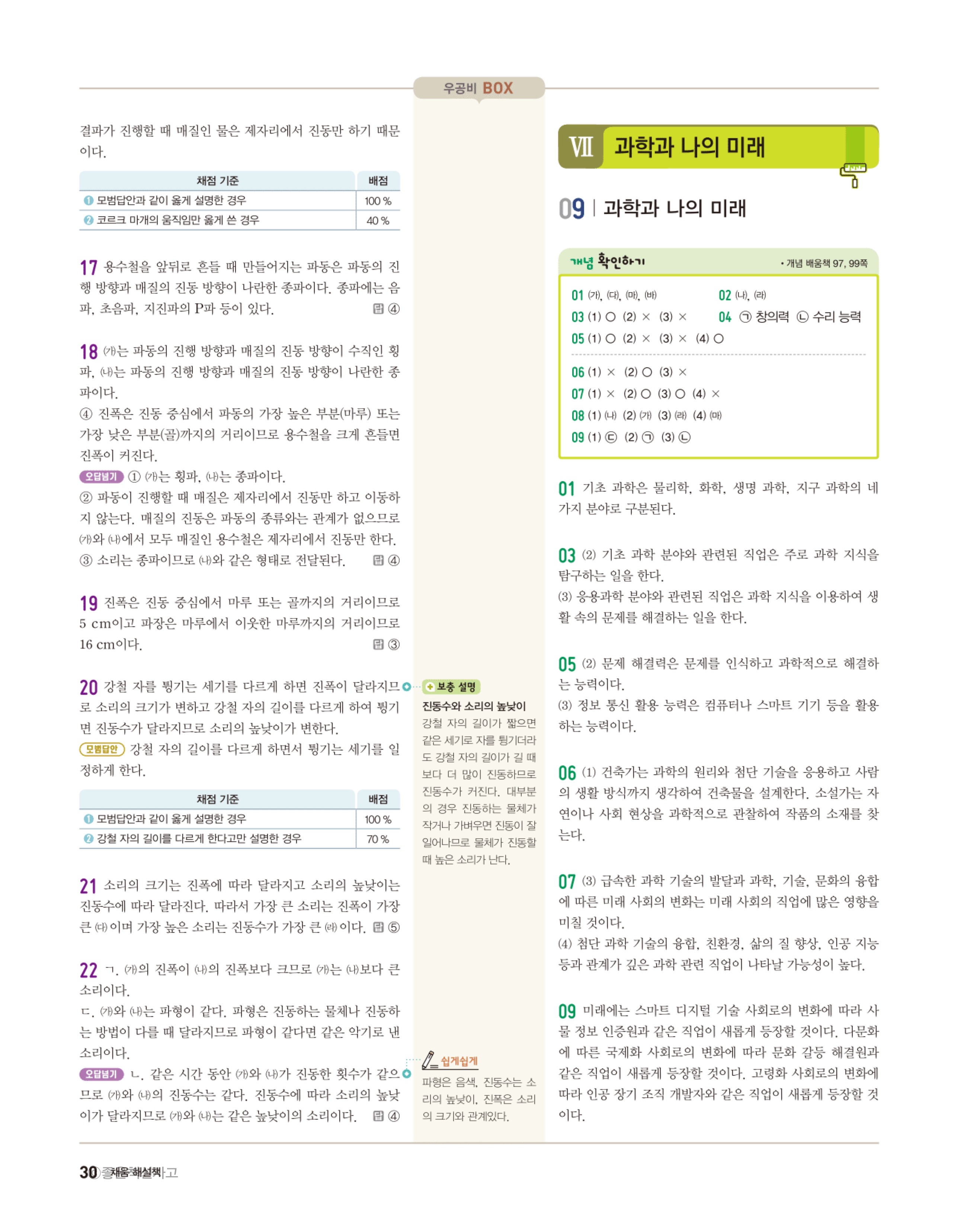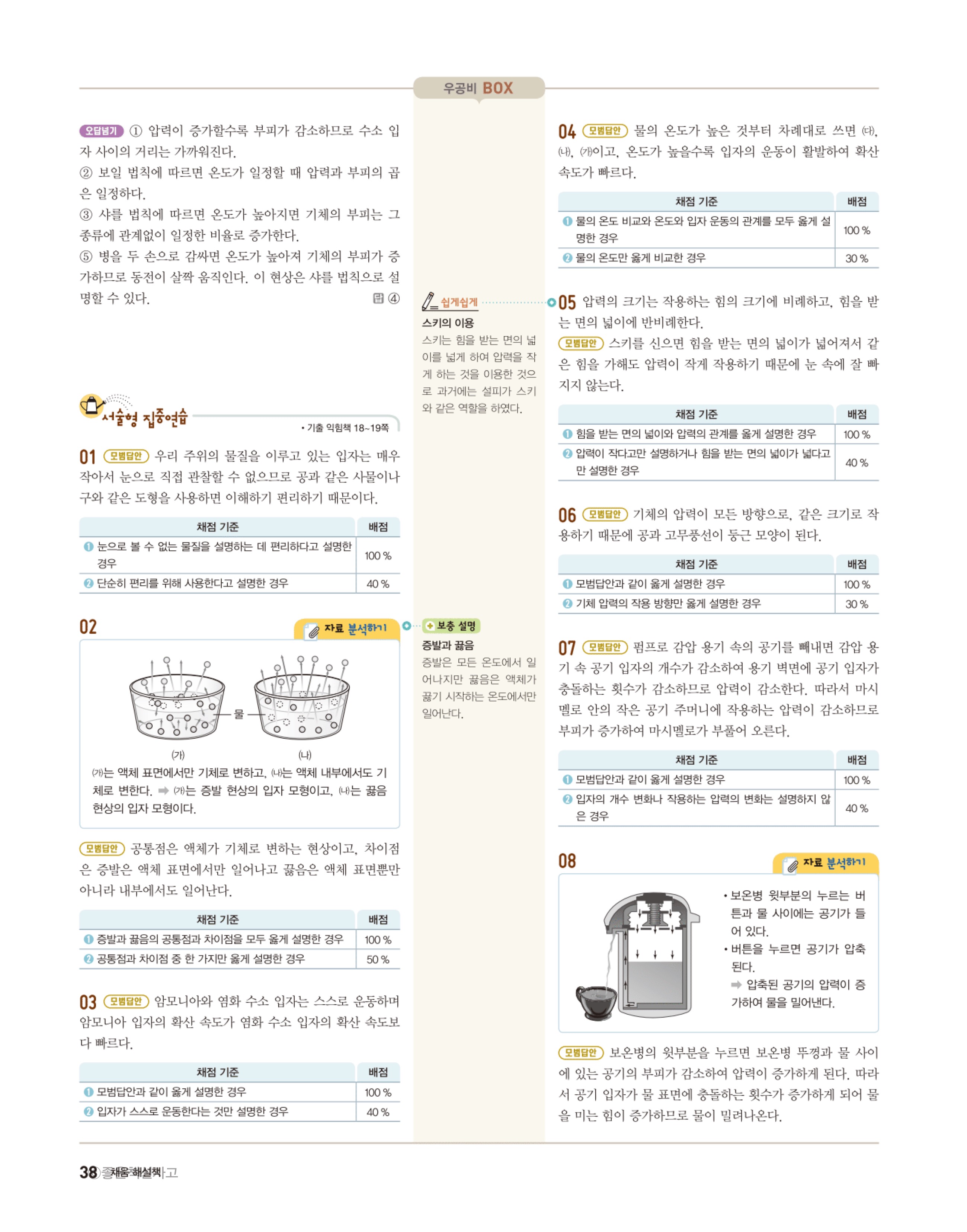 우공비 중등과학 1-2 답지 해설 바로보는 사진답지 빠른답지 모바일최적화