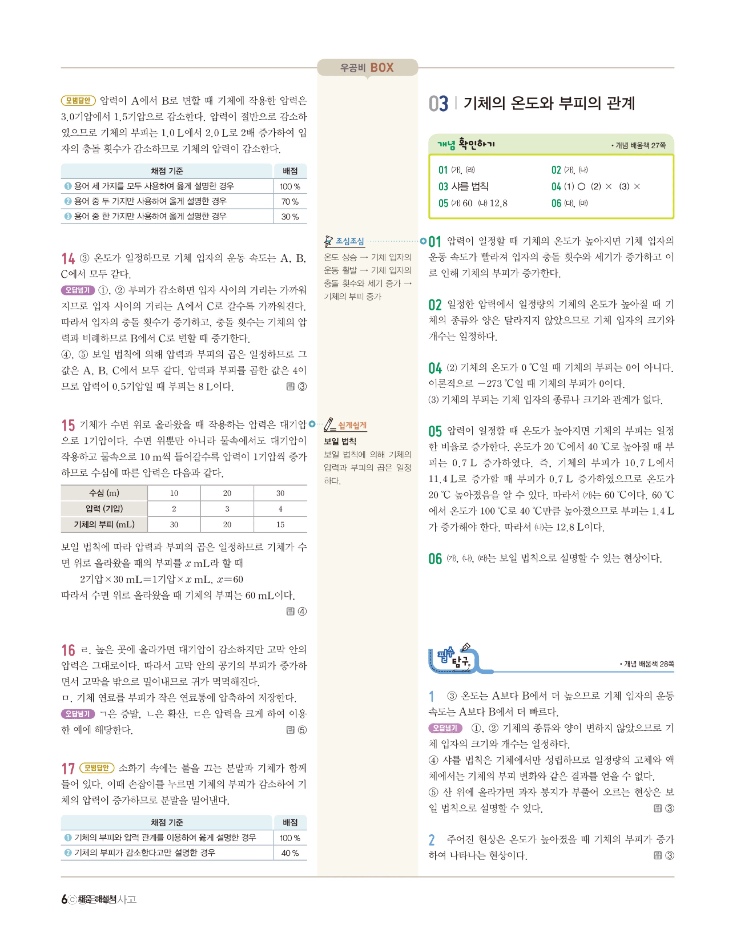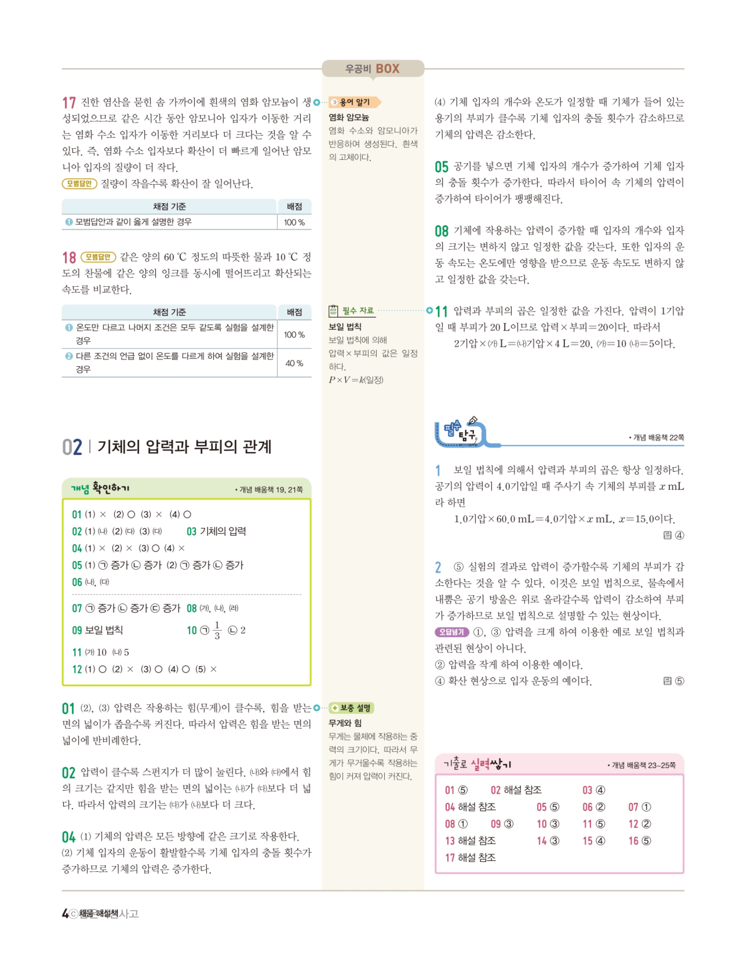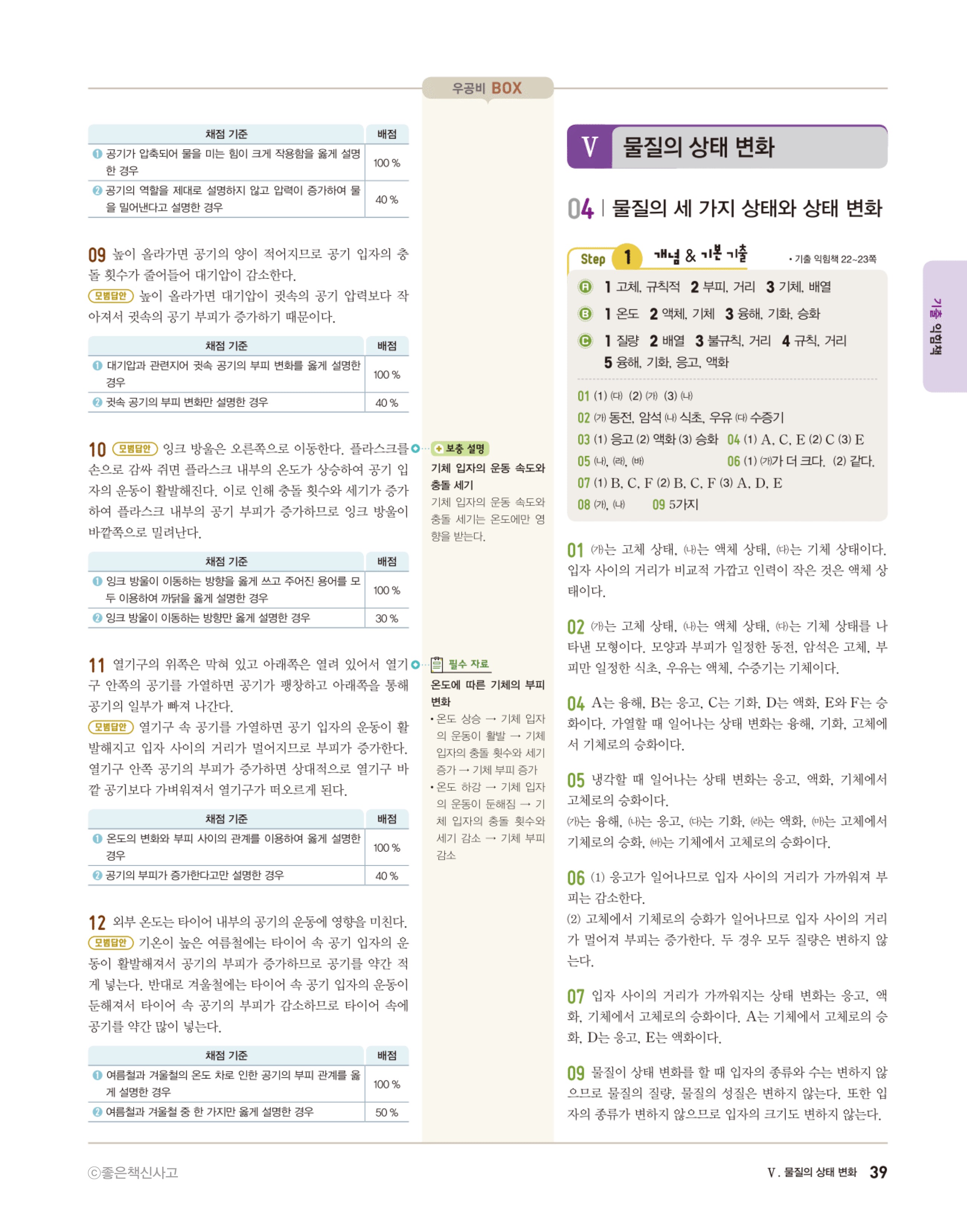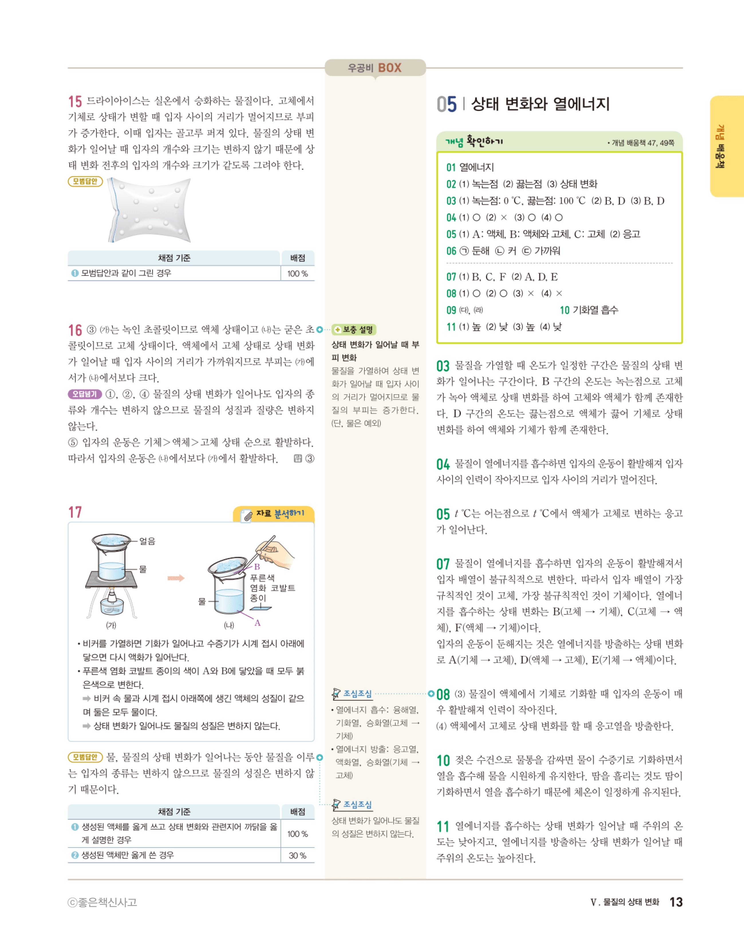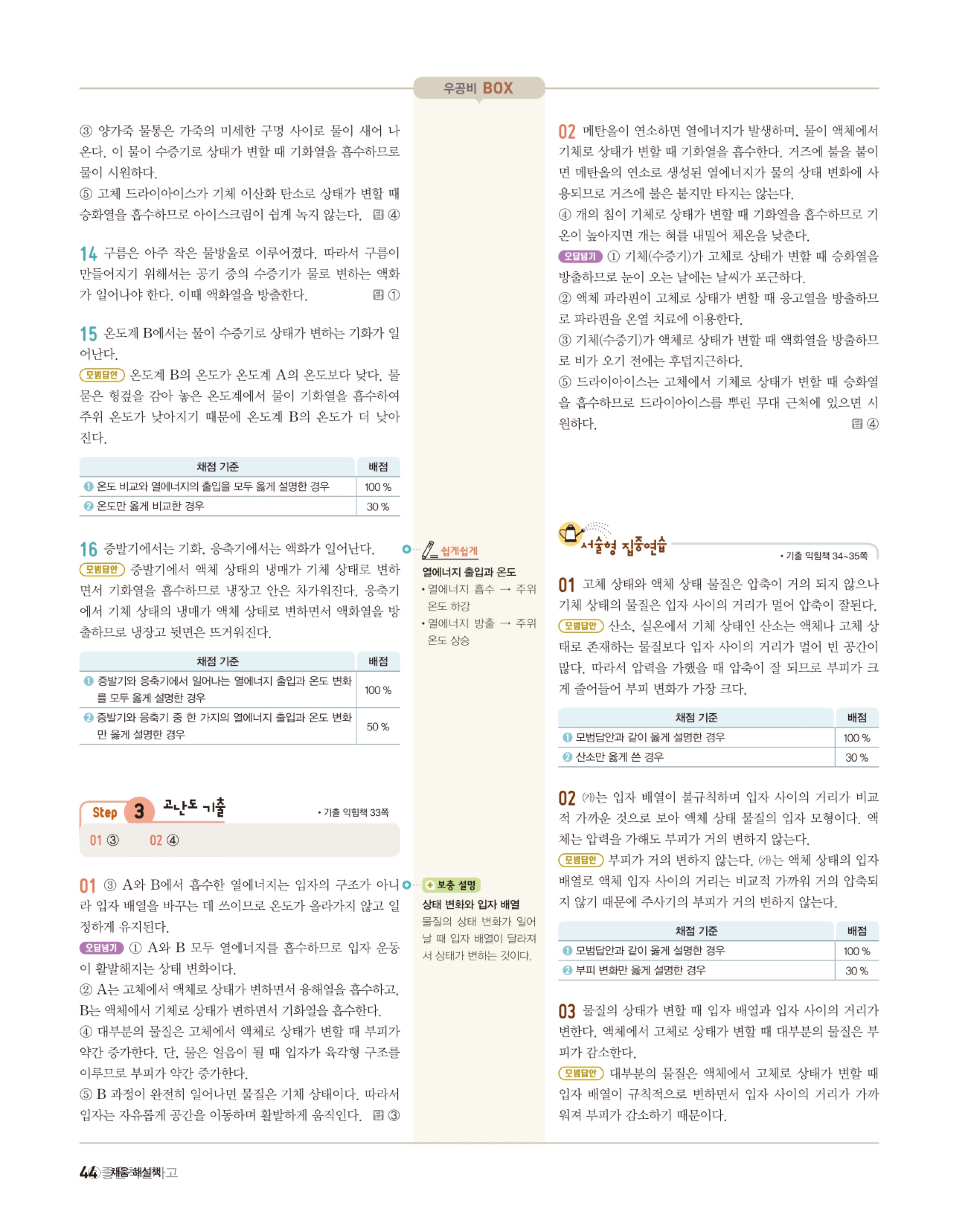 우공비 중등과학 1-2 답지 해설 바로보는 사진답지 빠른답지 모바일최적화