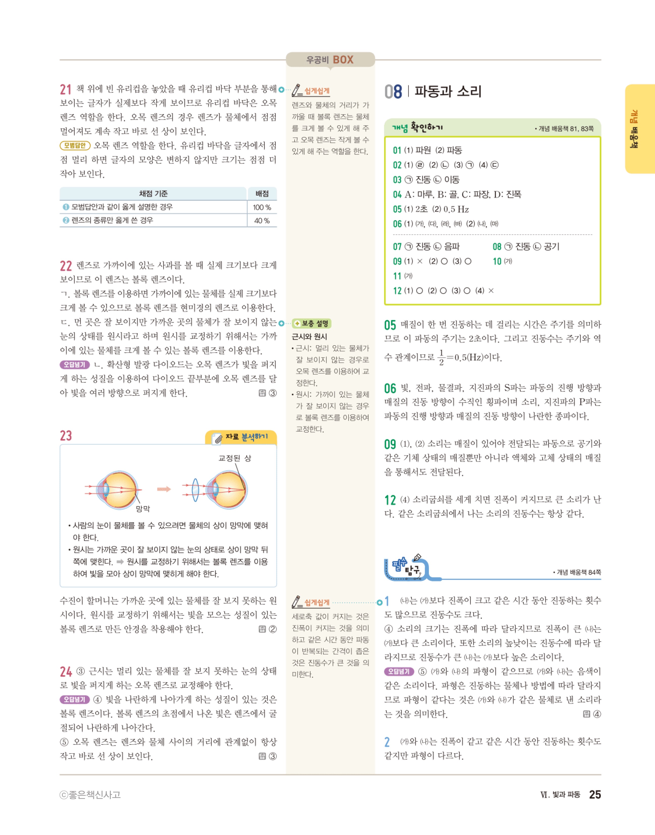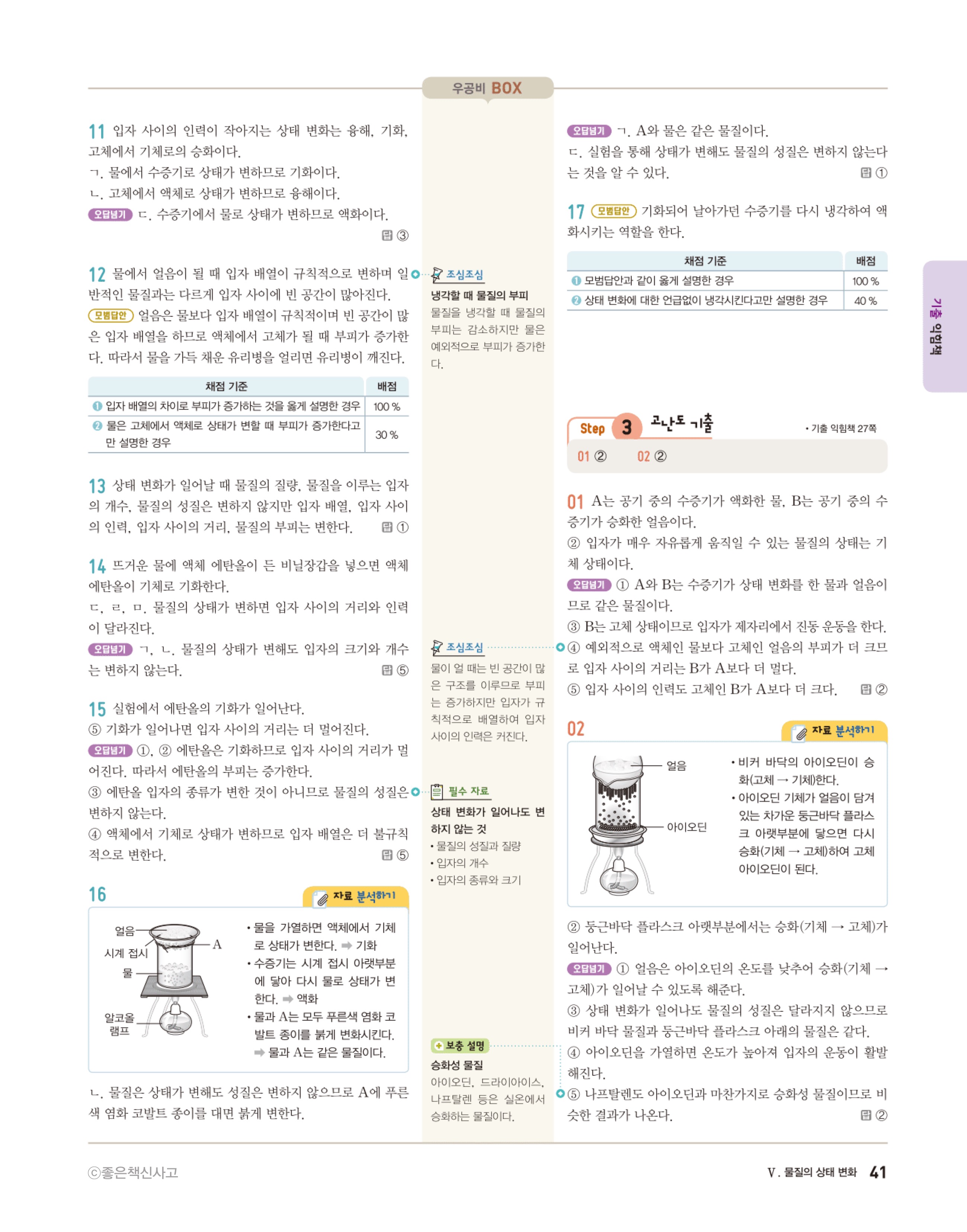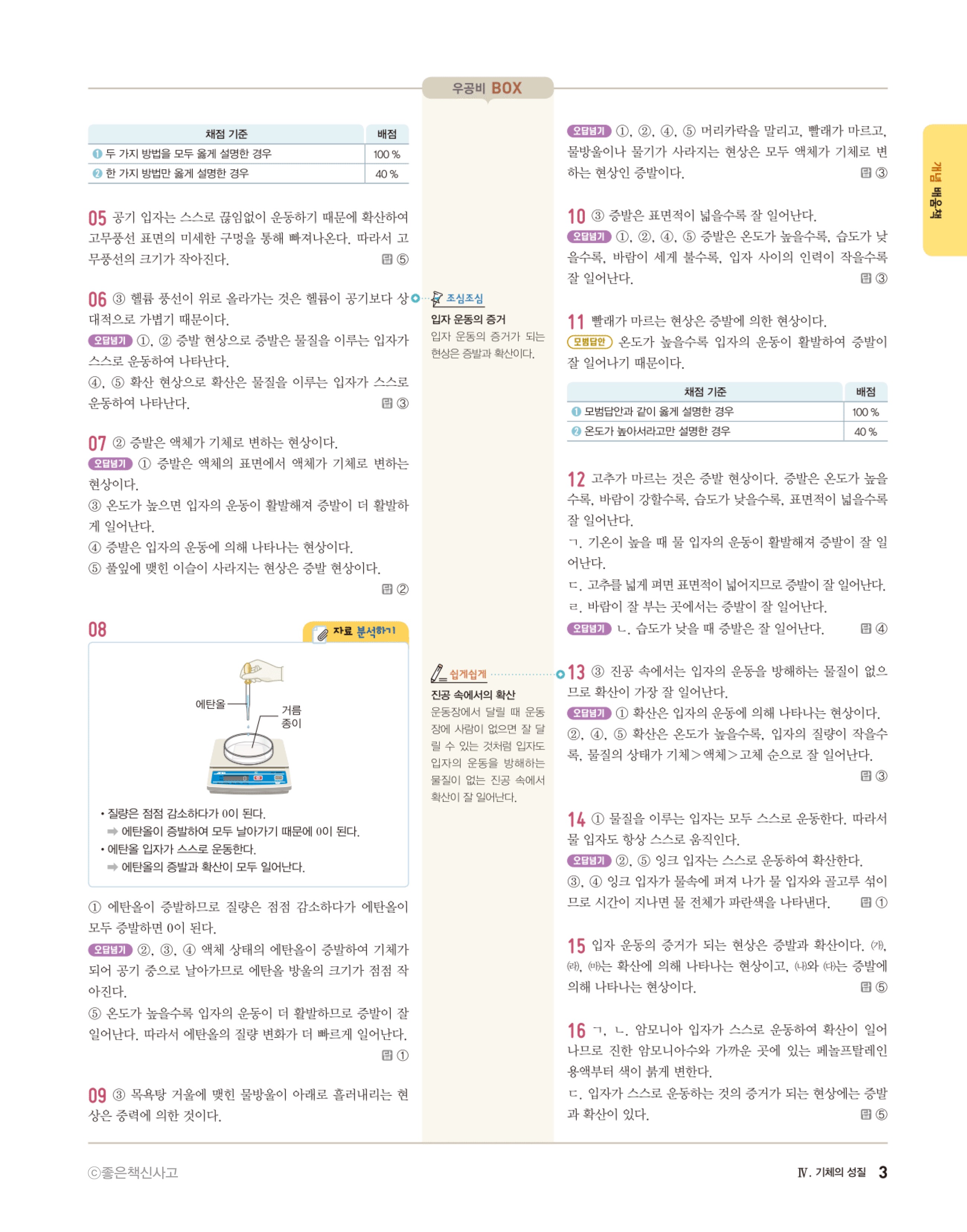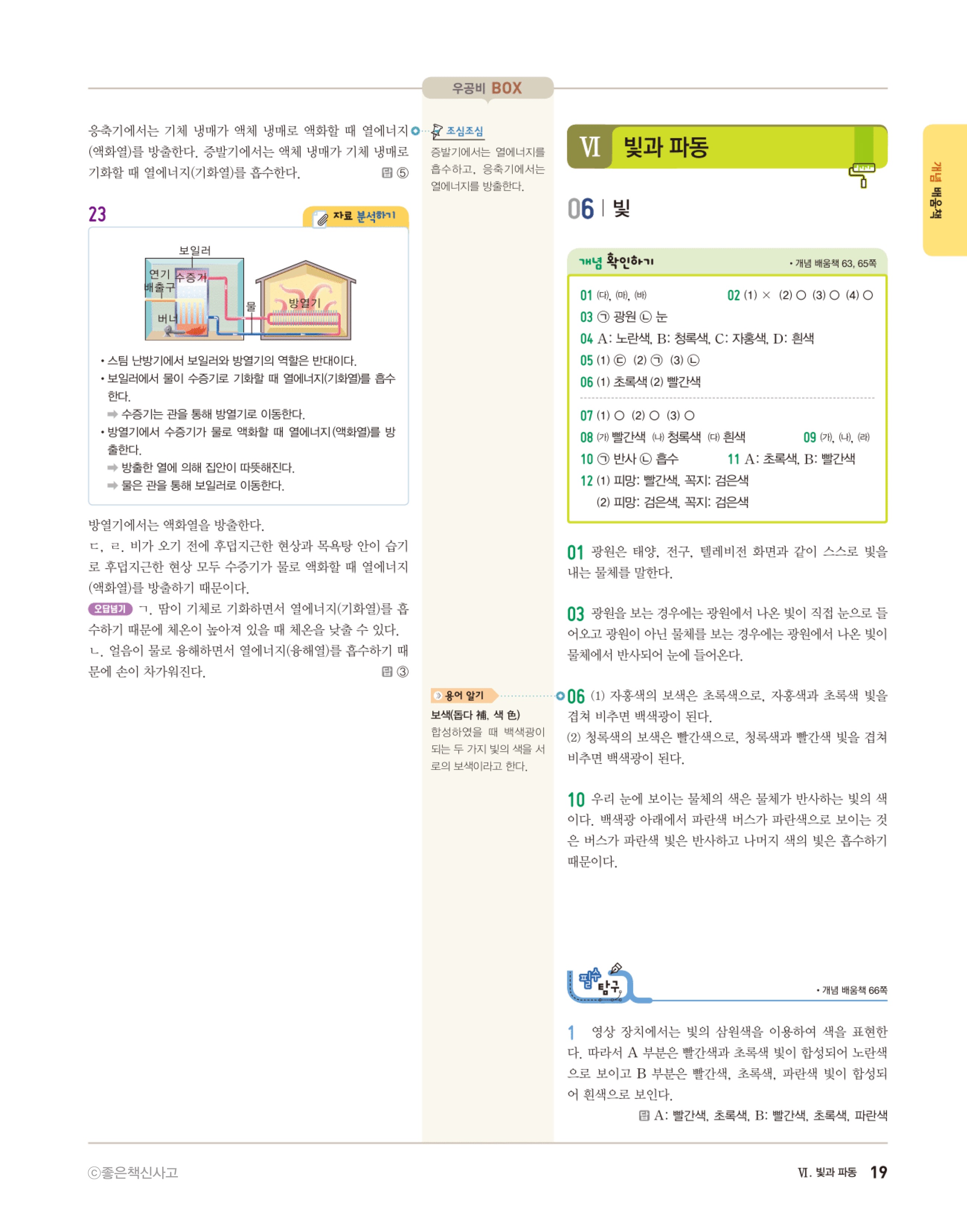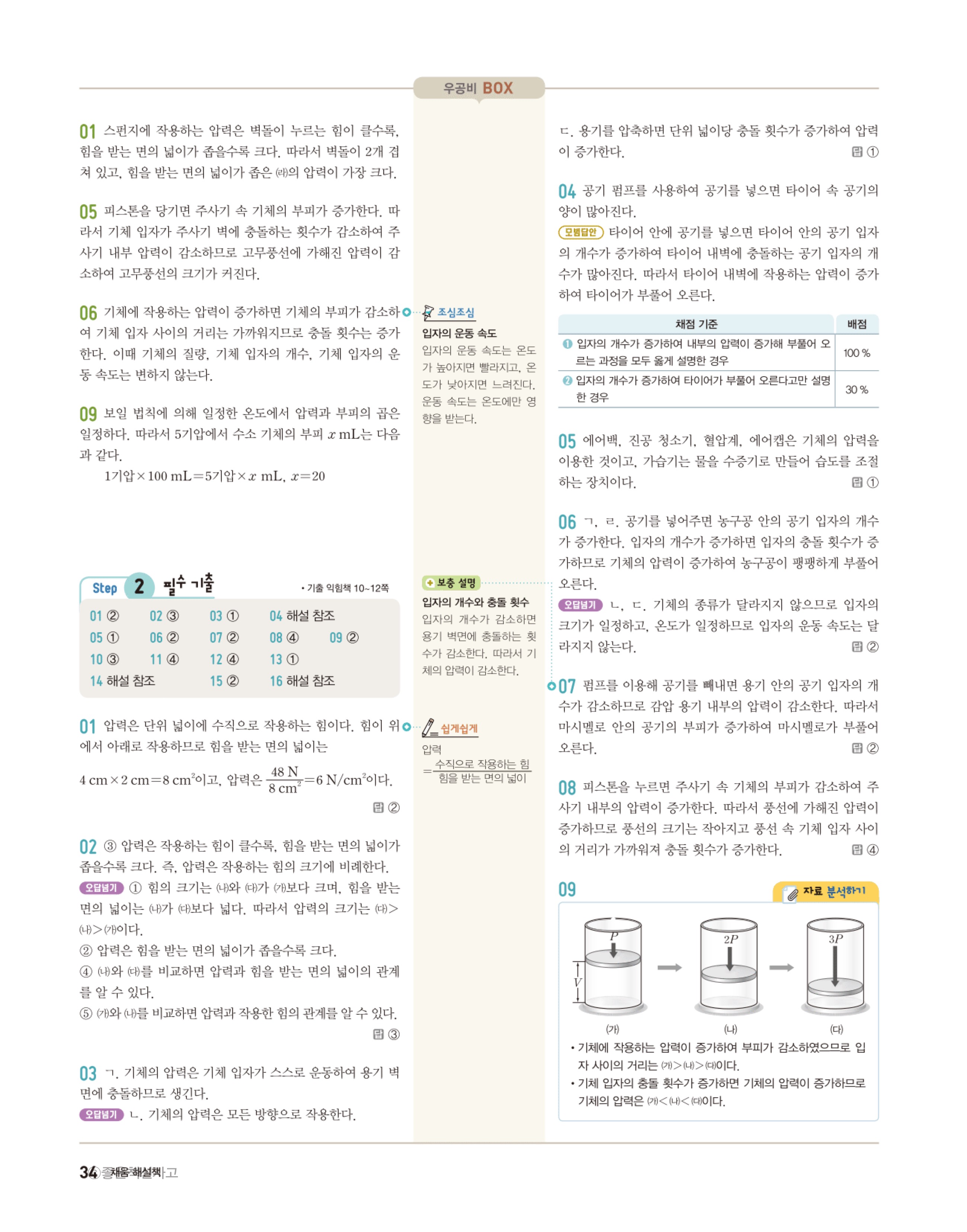 우공비 중등과학 1-2 답지 해설 바로보는 사진답지 빠른답지 모바일최적화