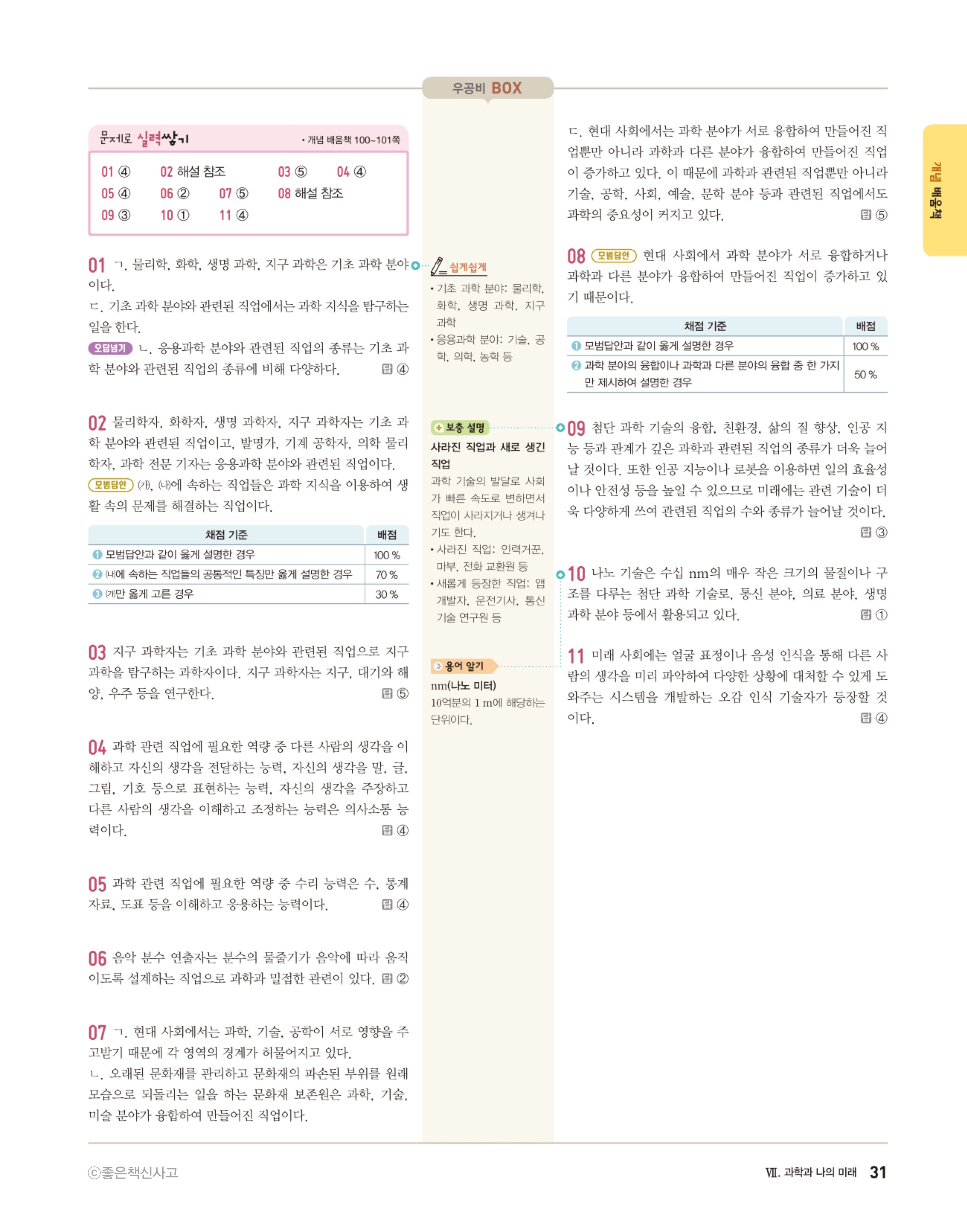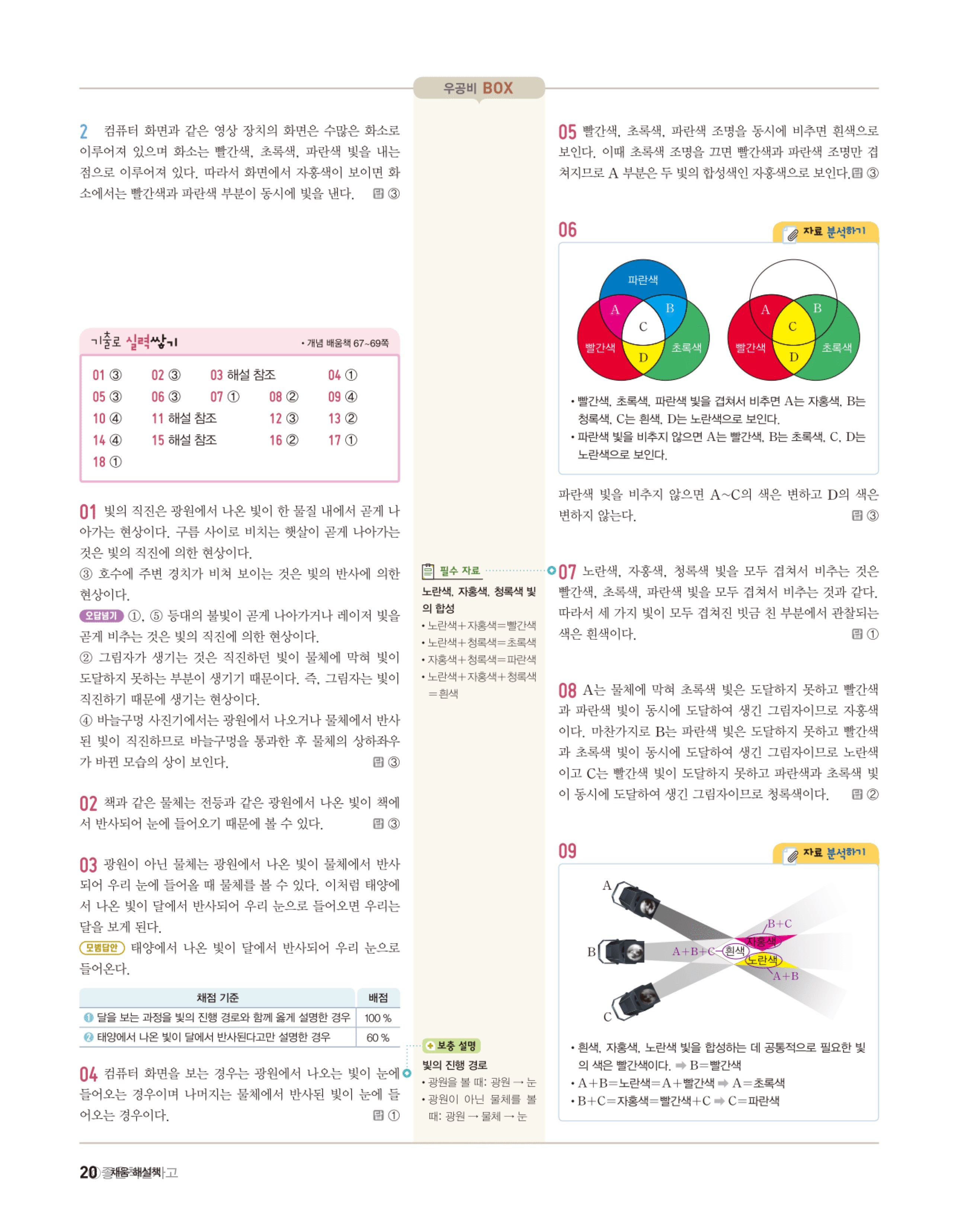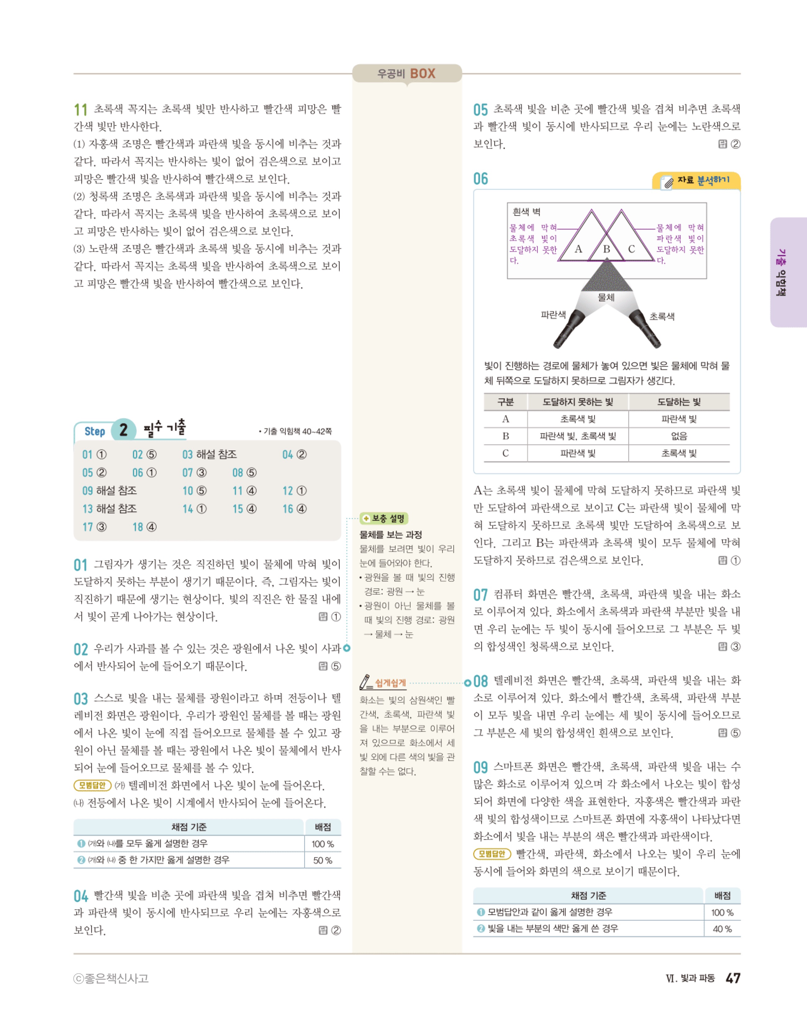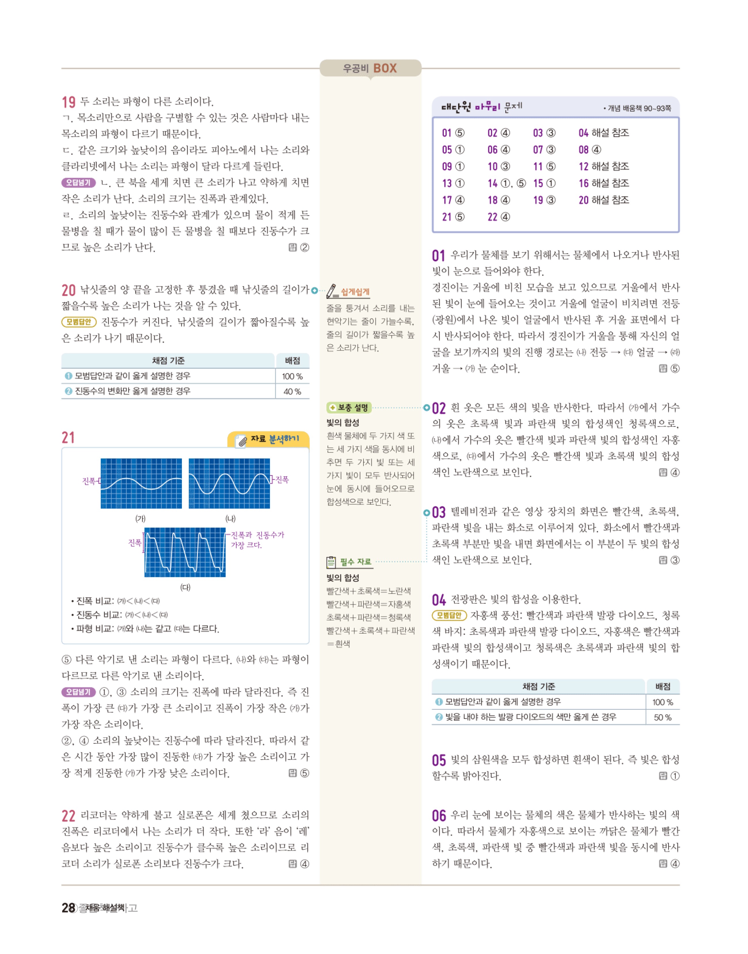 우공비 중등과학 1-2 답지 해설 바로보는 사진답지 빠른답지 모바일최적화