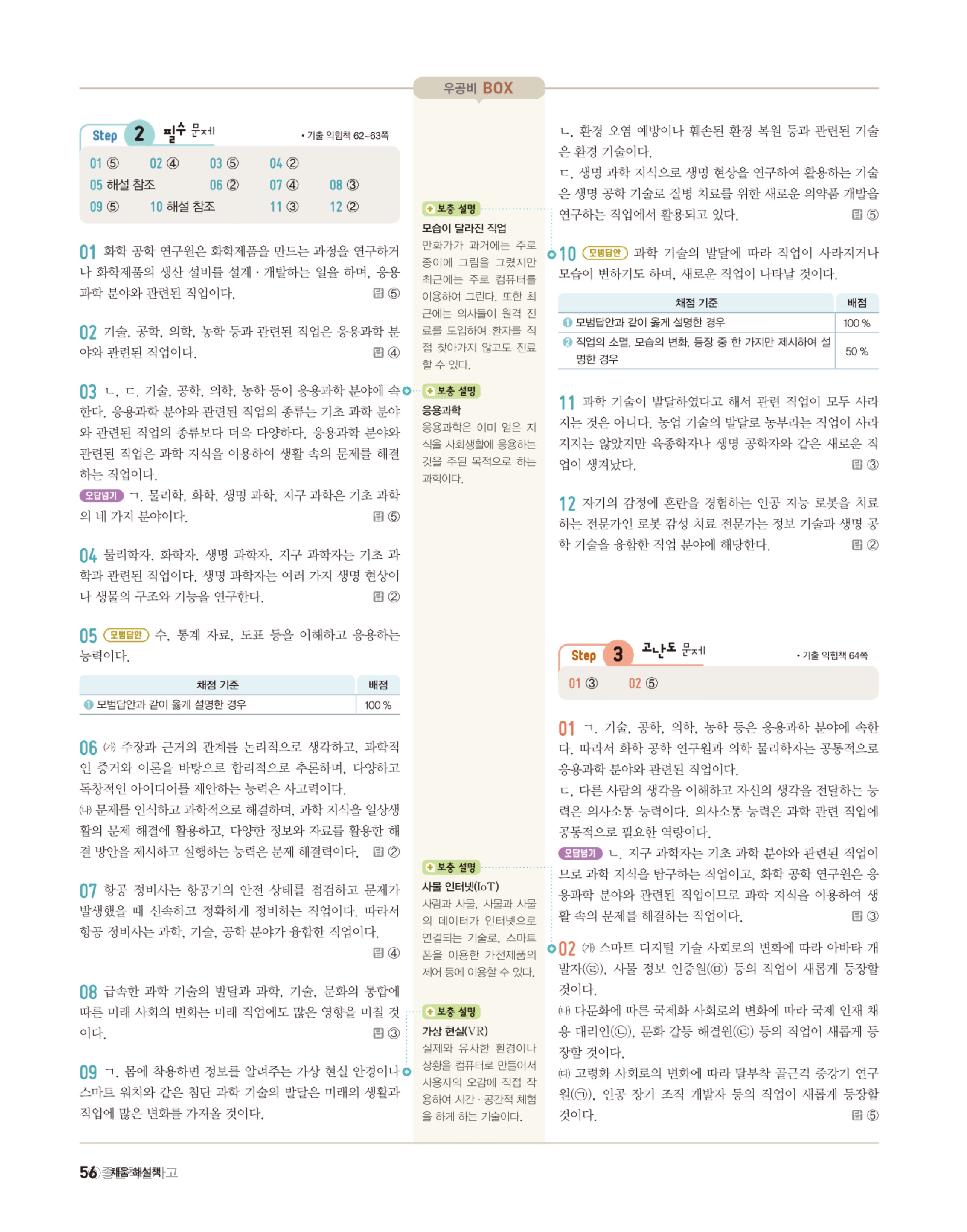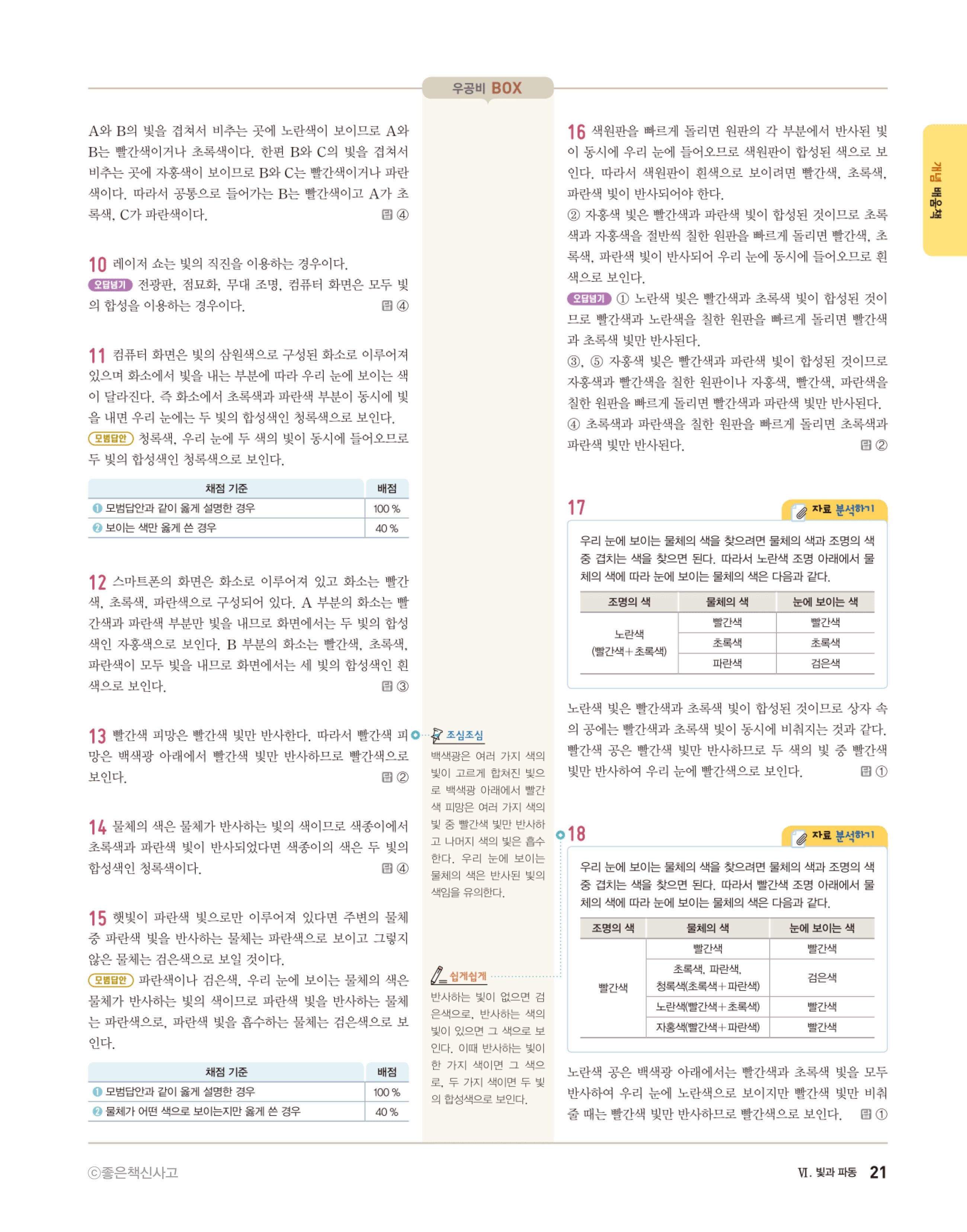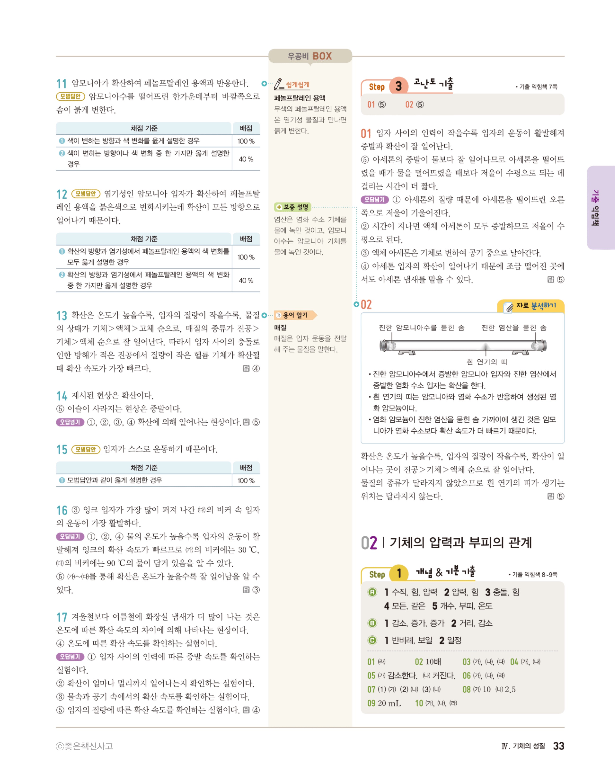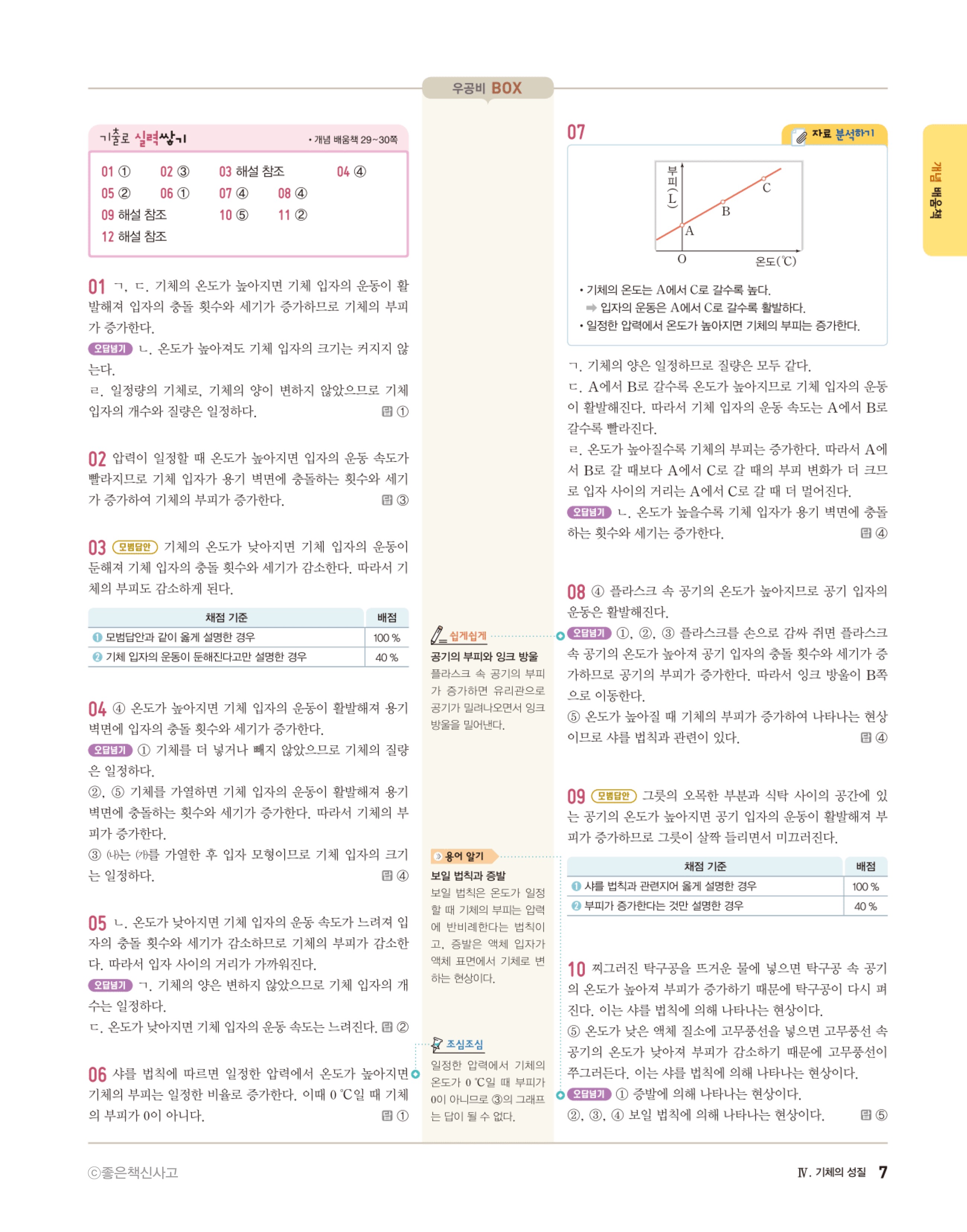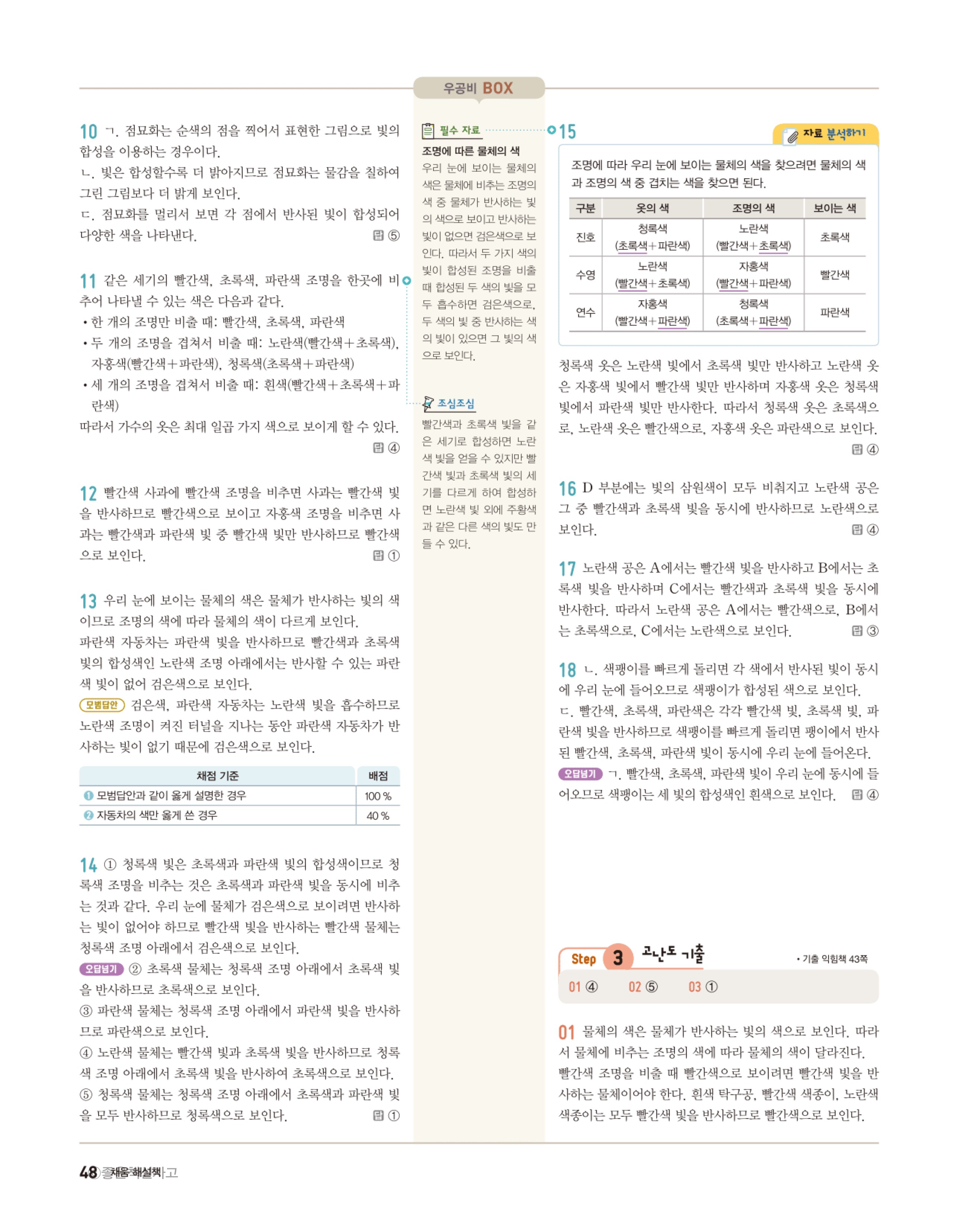 우공비 중등과학 1-2 답지 해설 바로보는 사진답지 빠른답지 모바일최적화