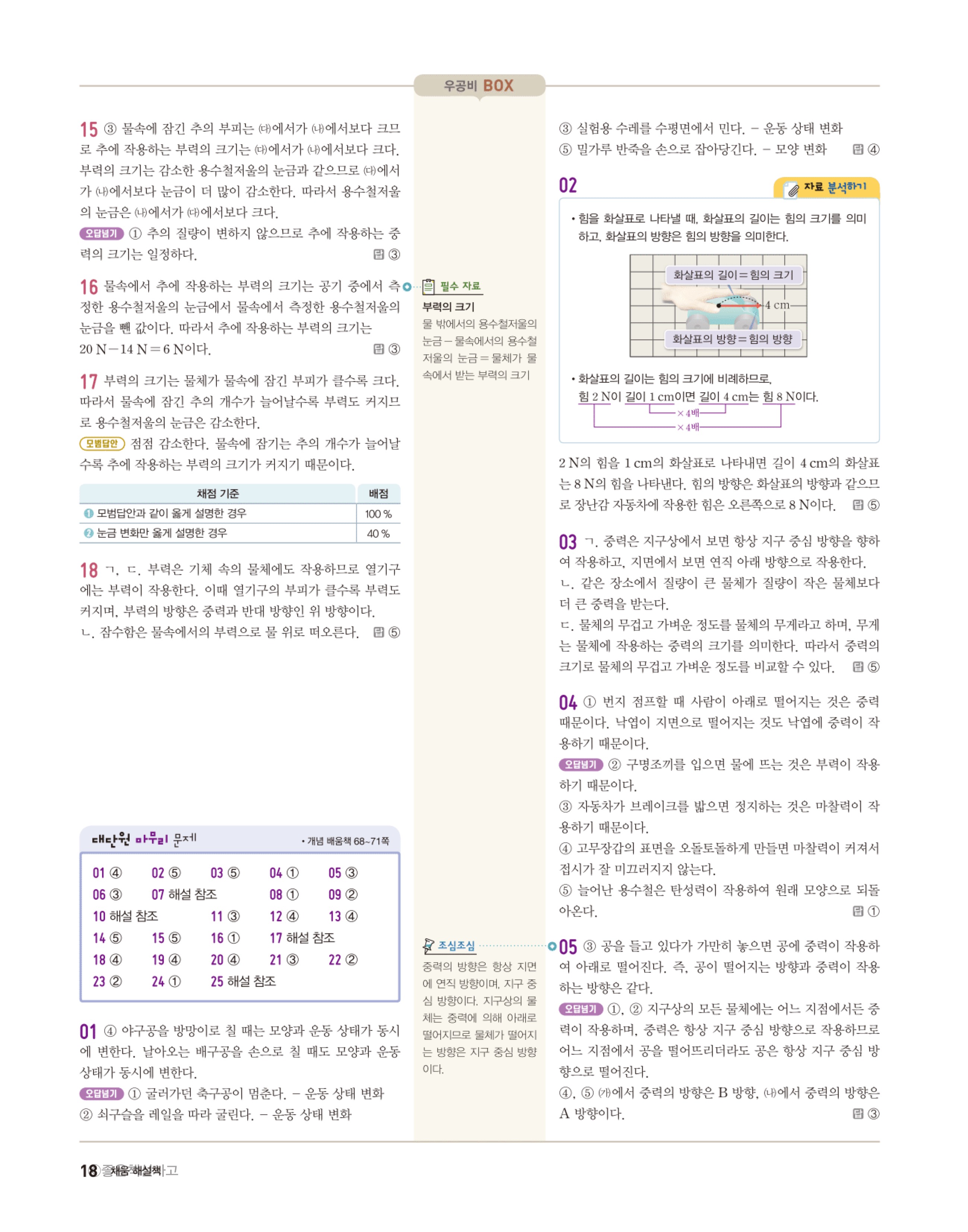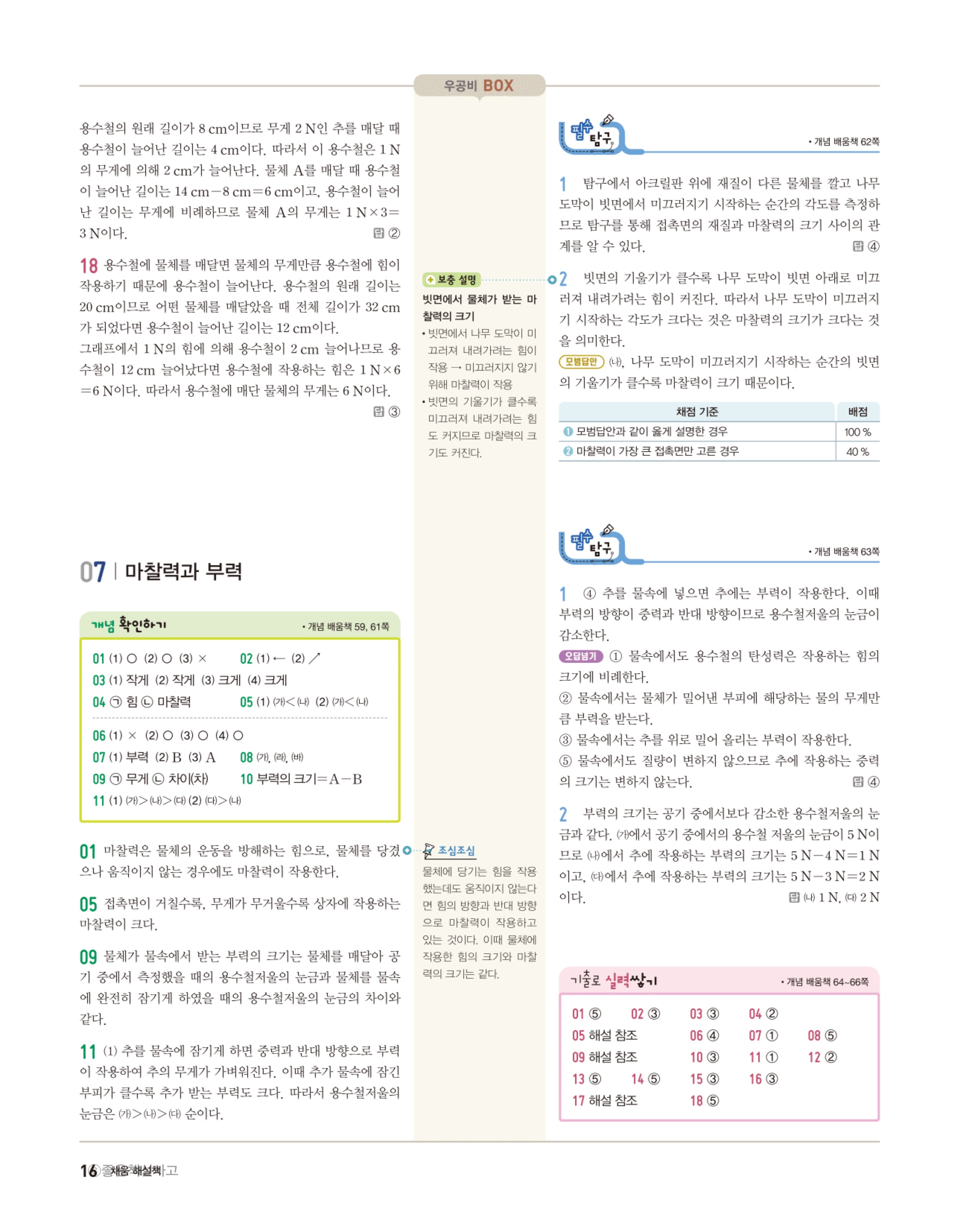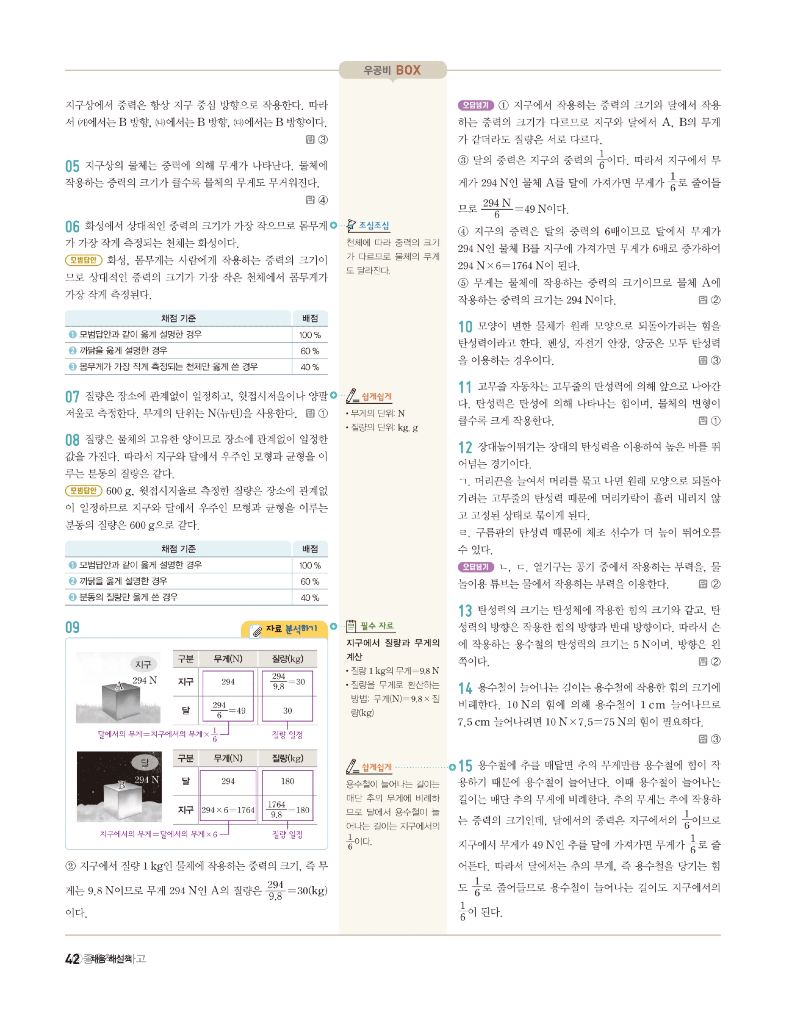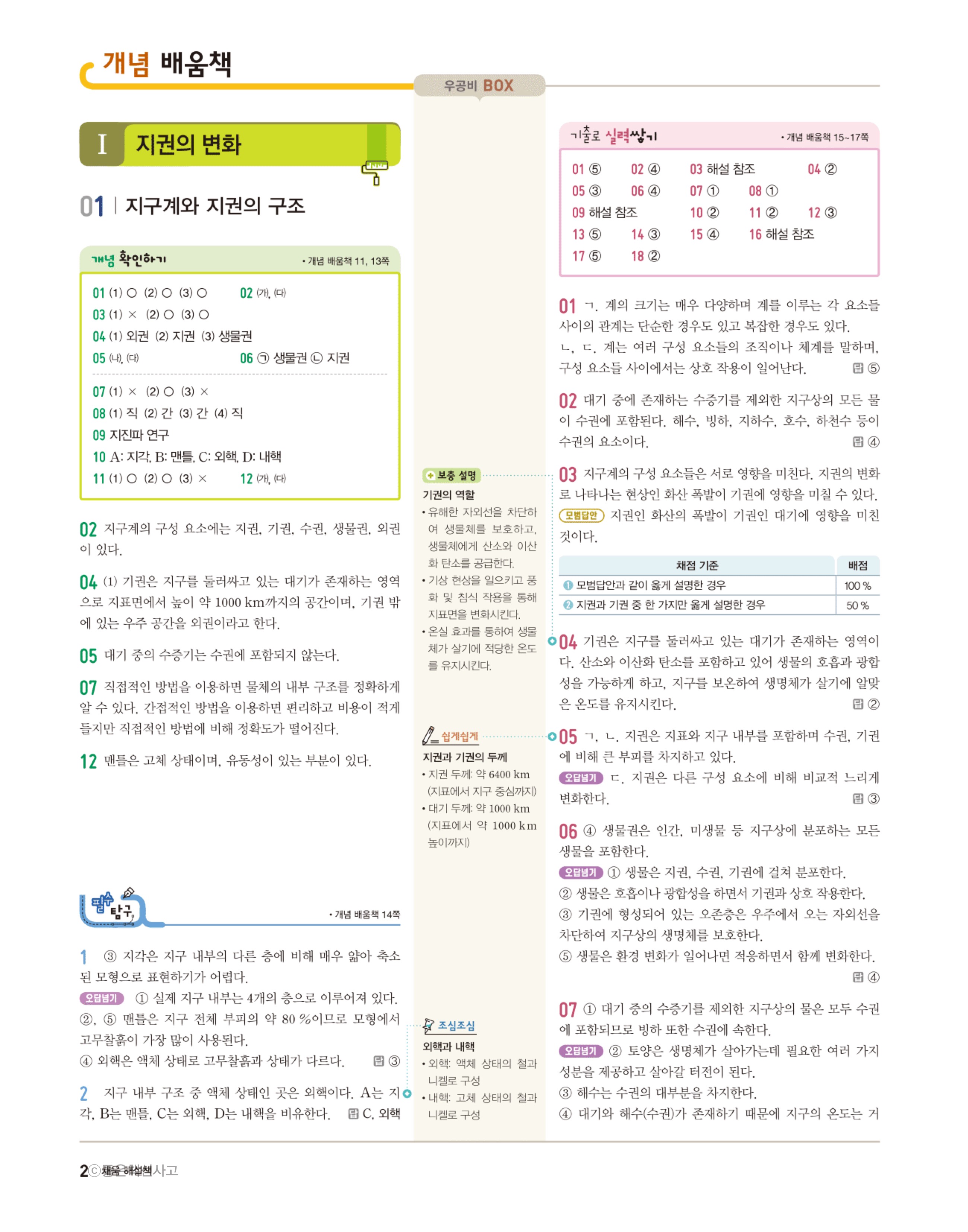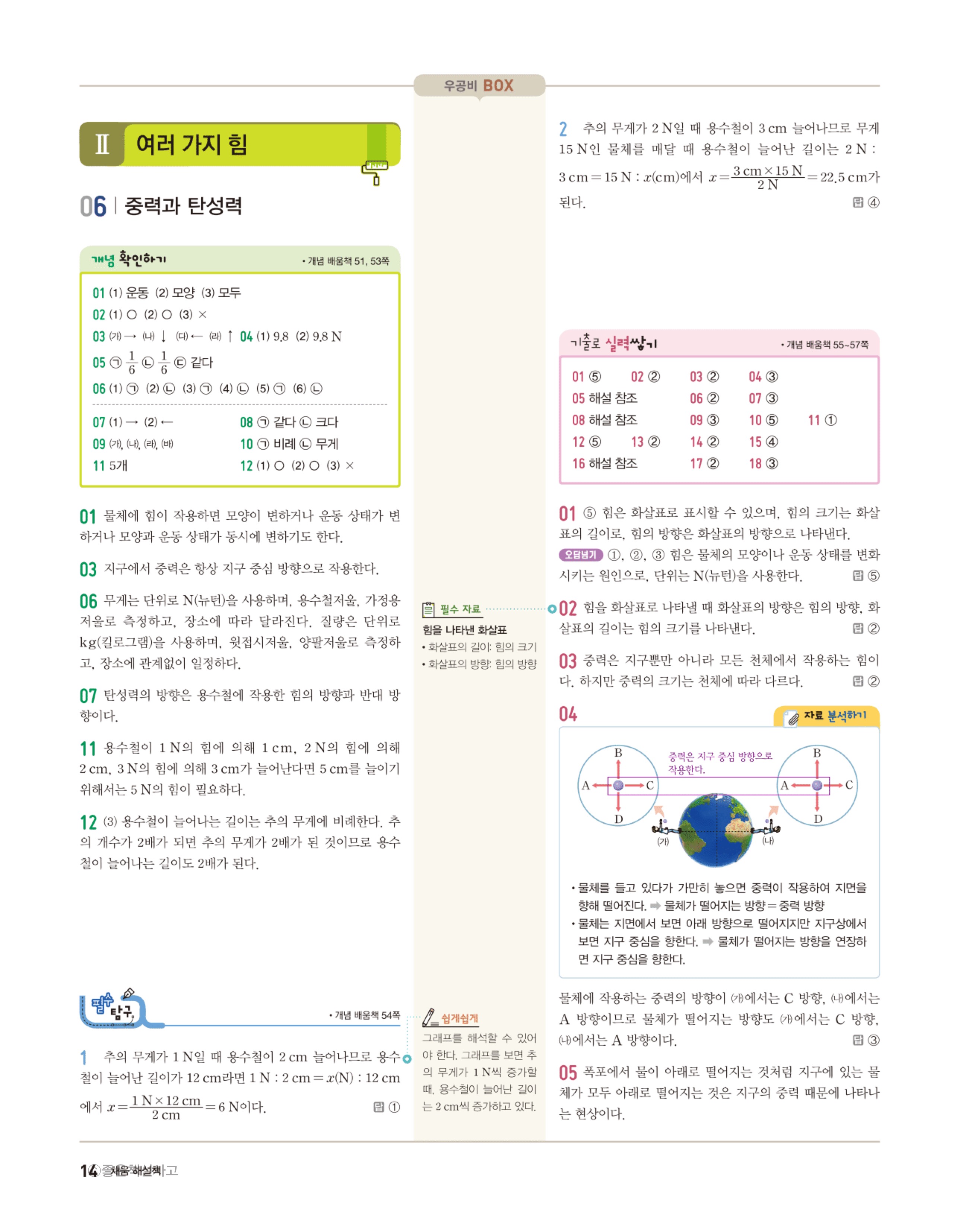 우공비 중등과학 1-1 답지 해설 바로보는 사진답지 빠른답지 모바일최적화