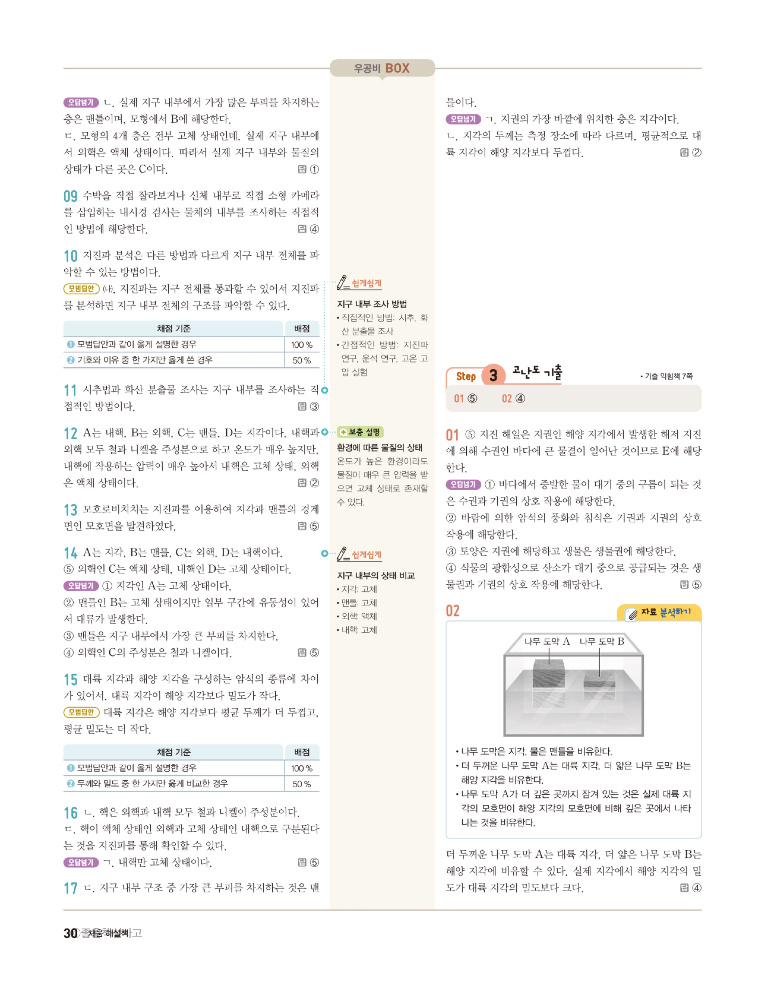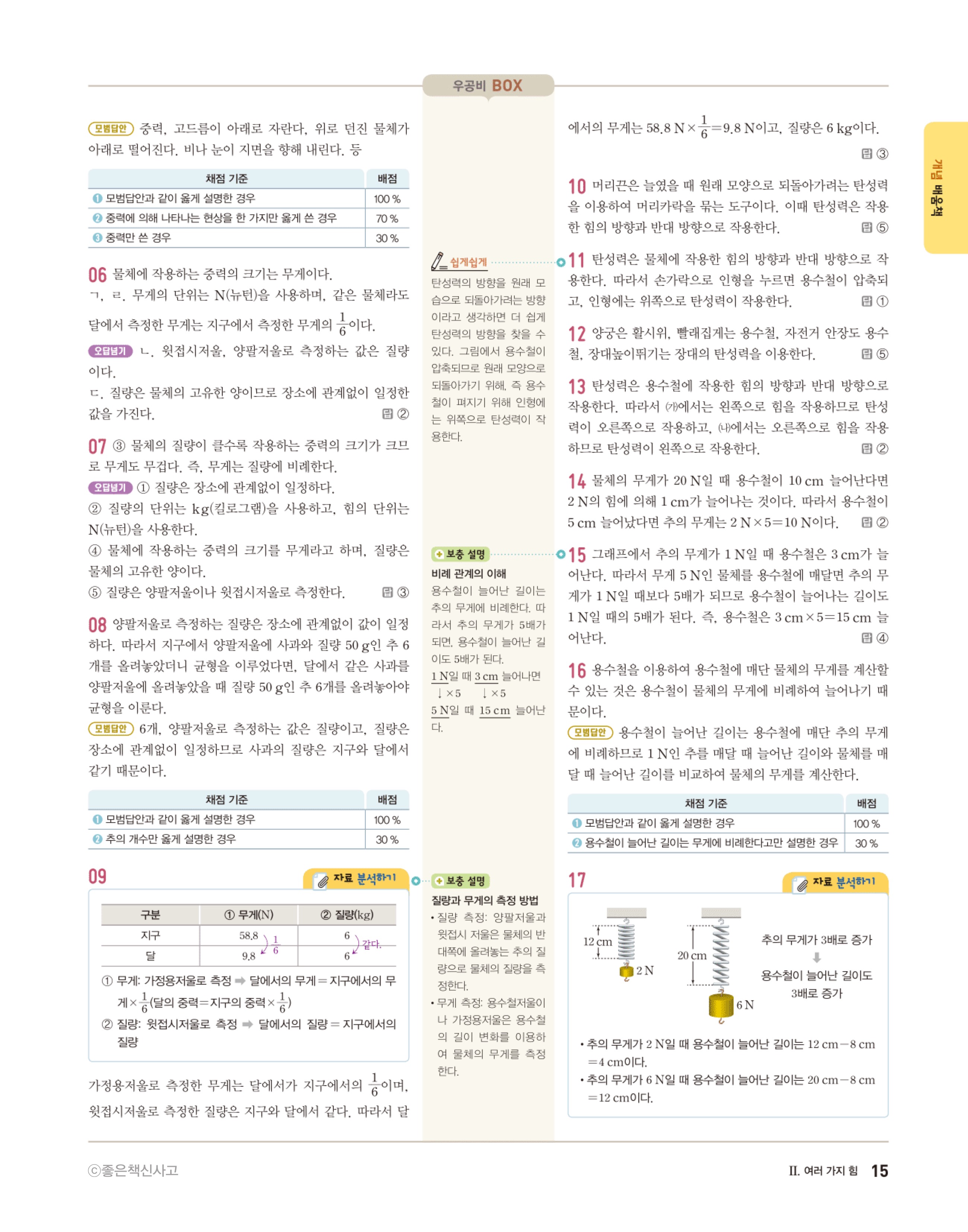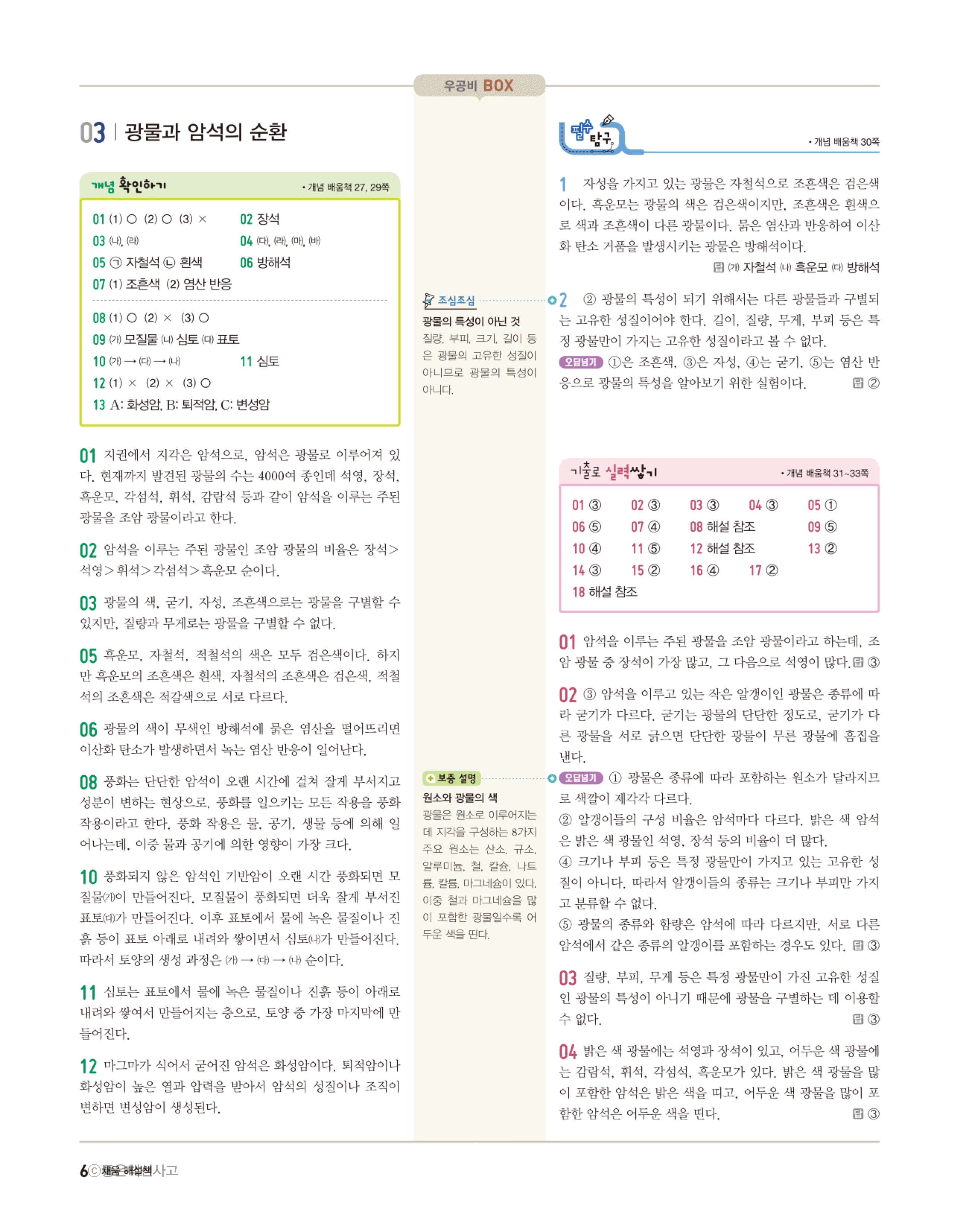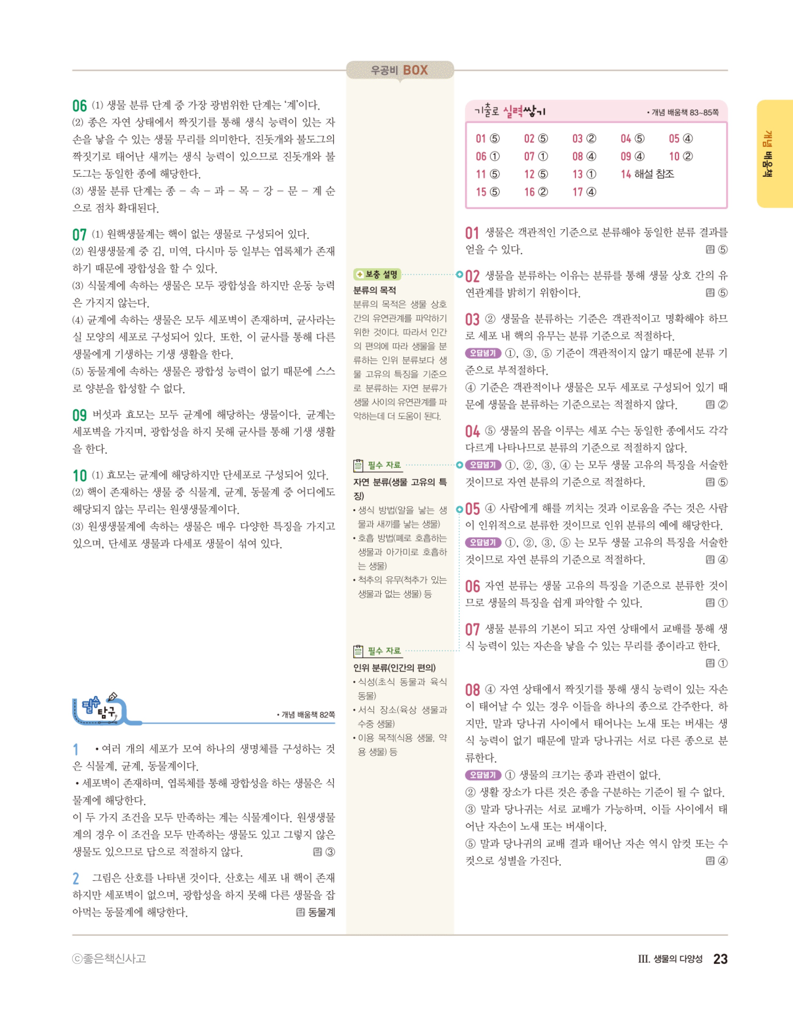 우공비 중등과학 1-1 답지 해설 바로보는 사진답지 빠른답지 모바일최적화