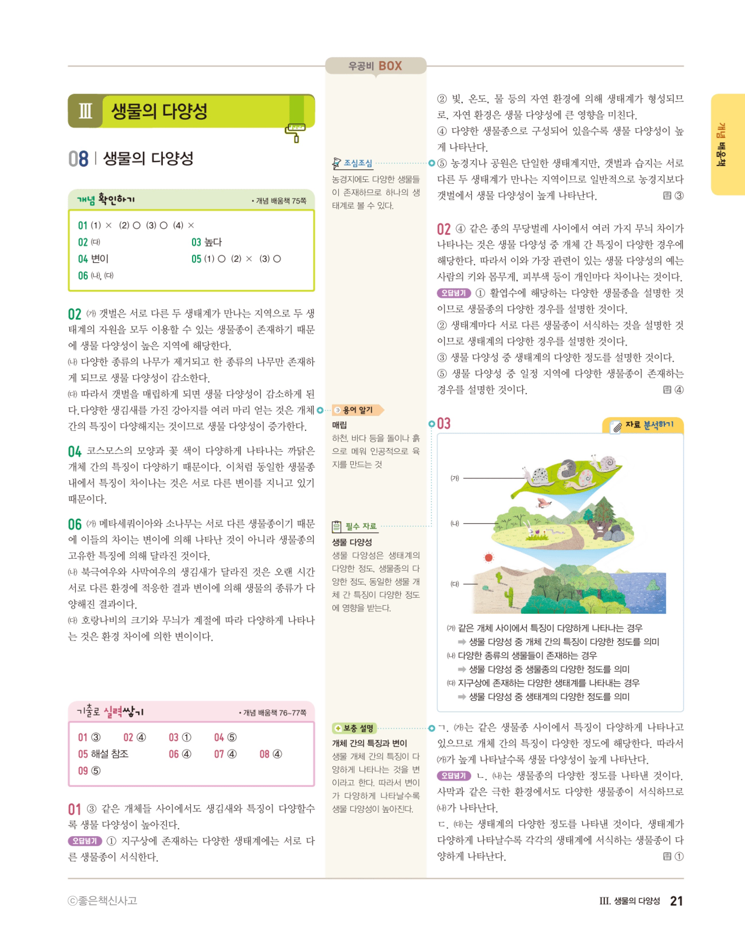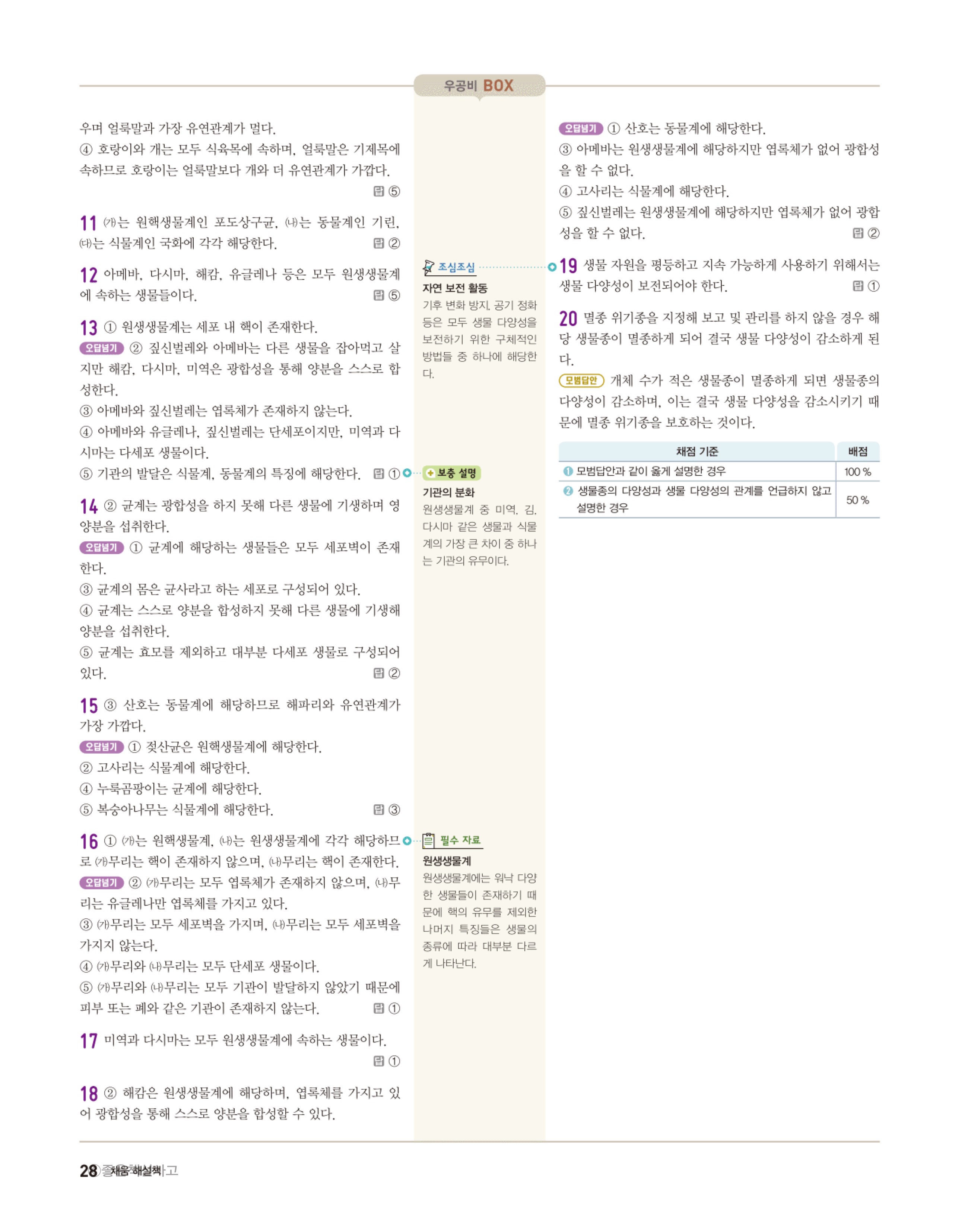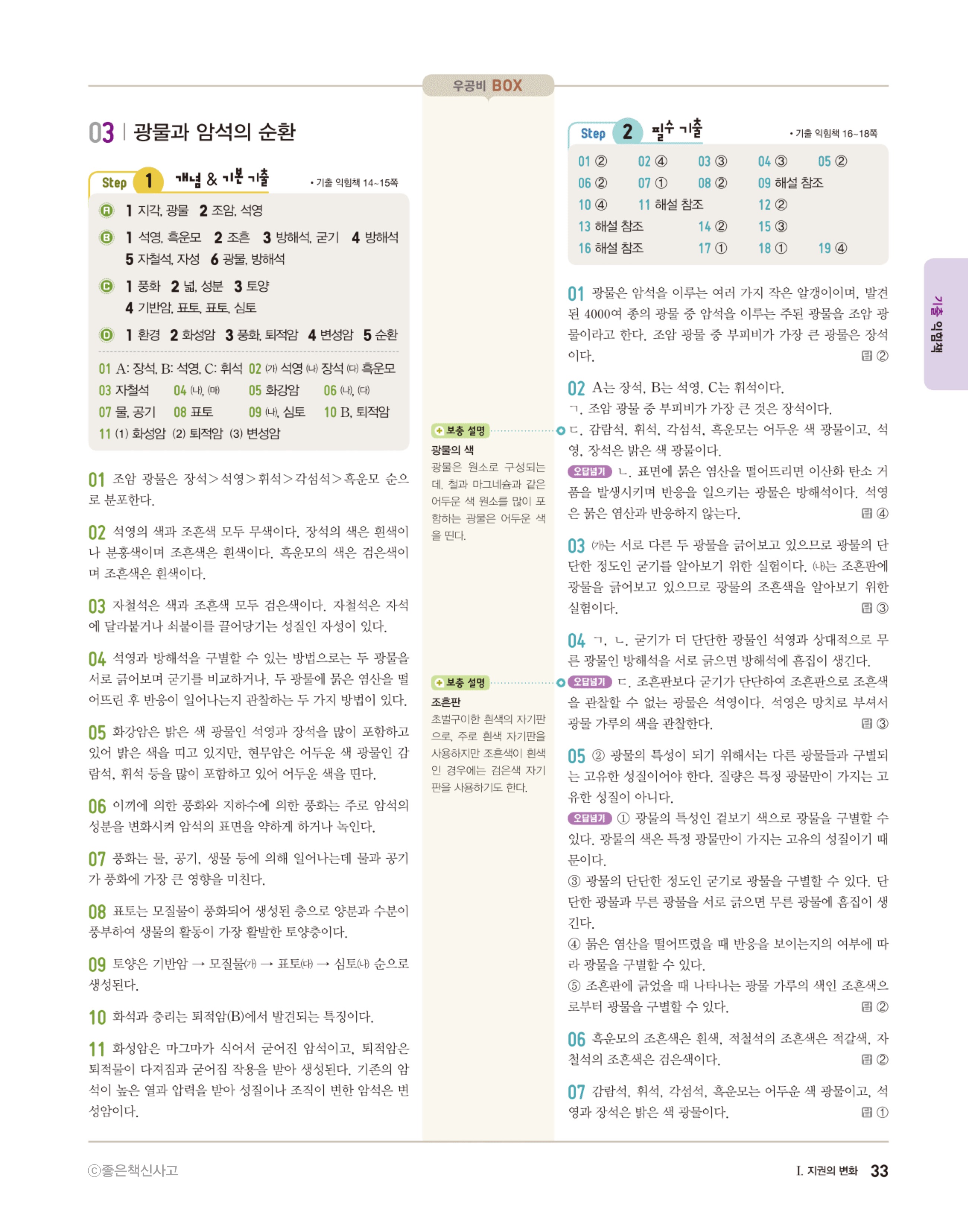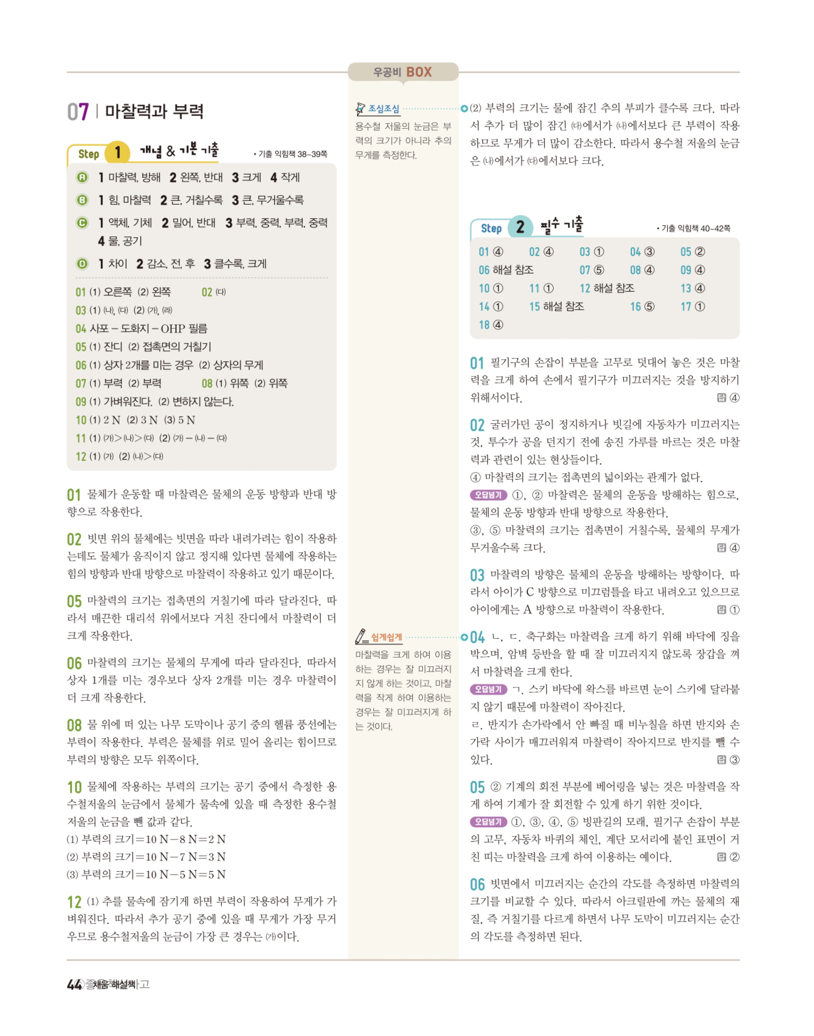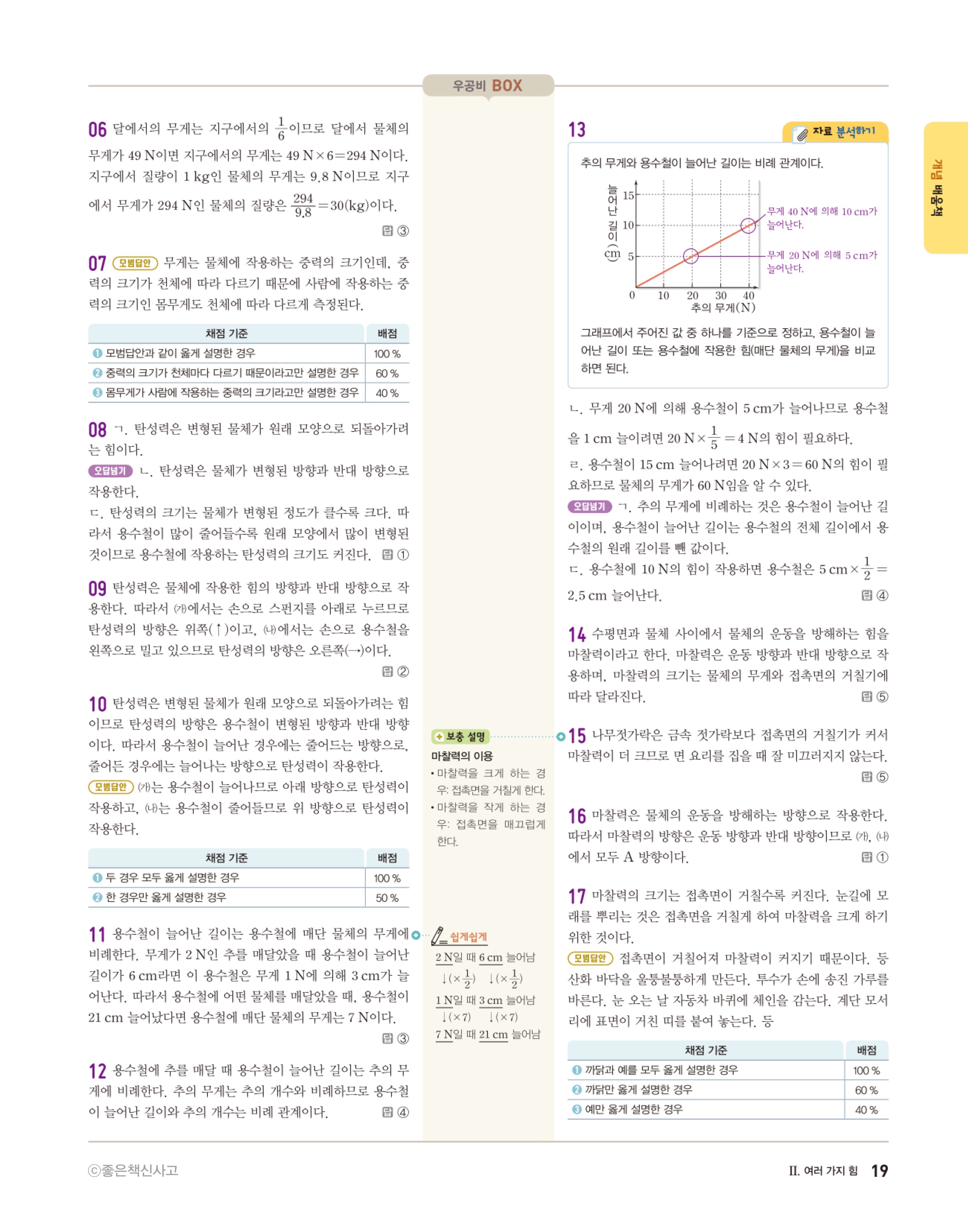 우공비 중등과학 1-1 답지 해설 바로보는 사진답지 빠른답지 모바일최적화
