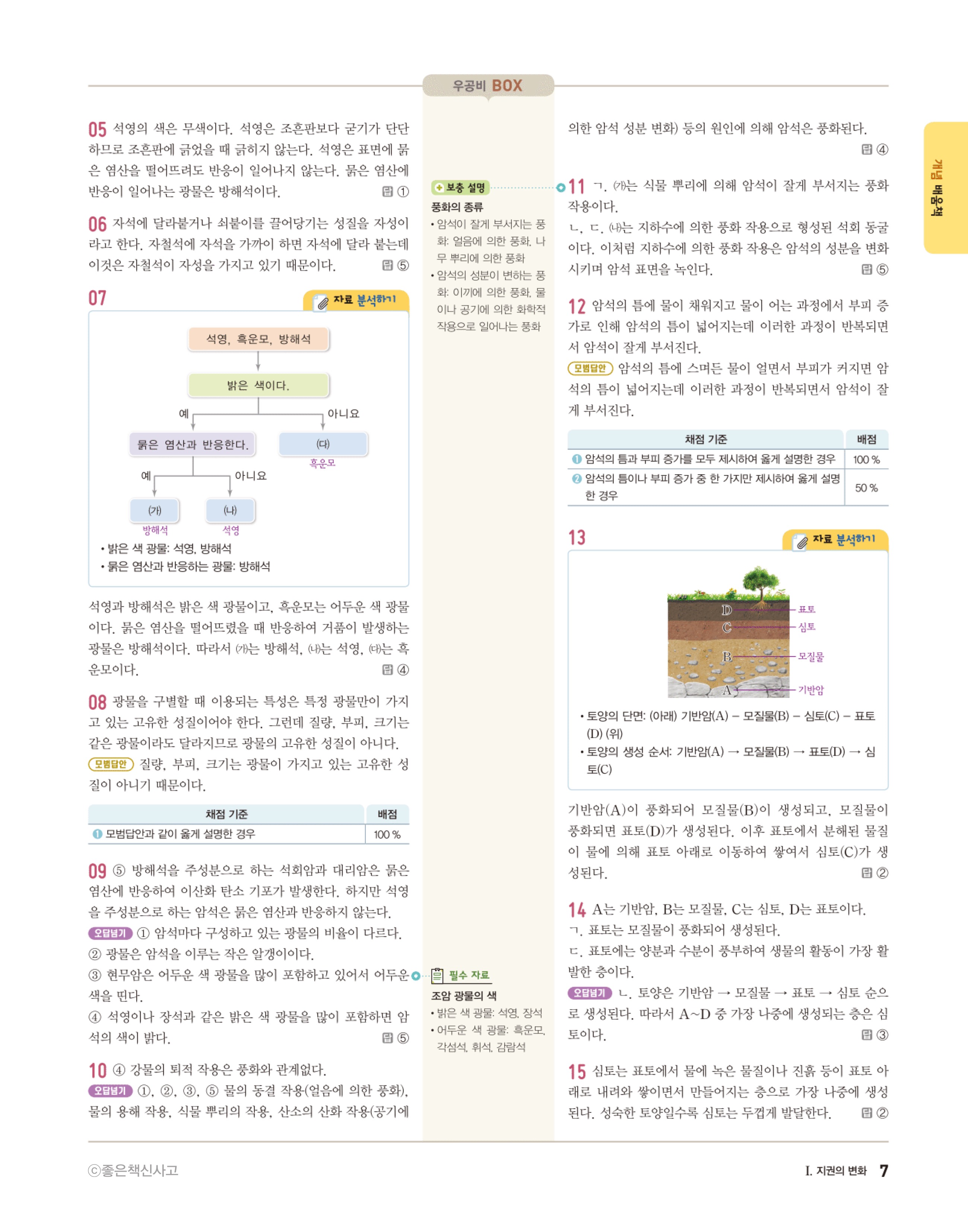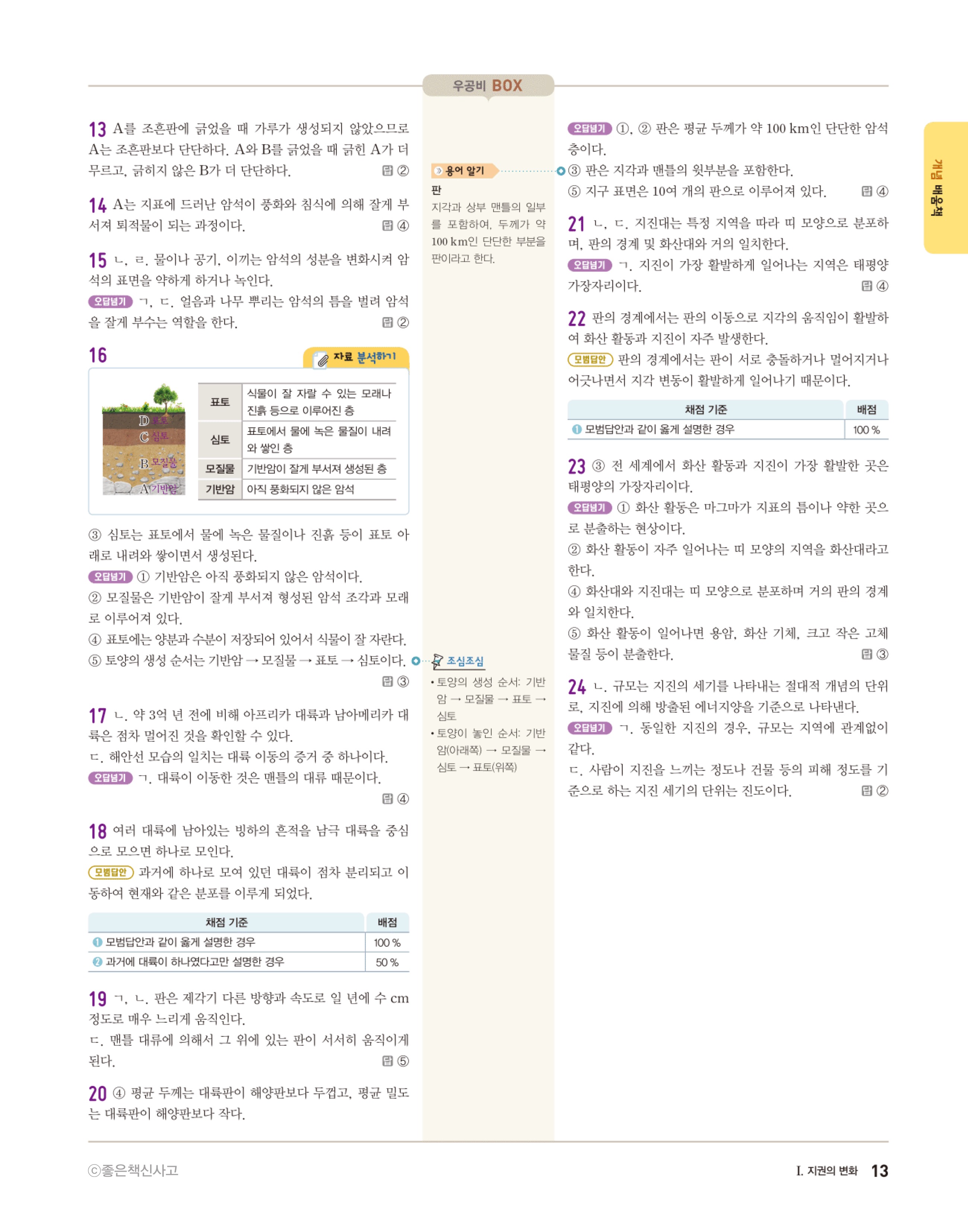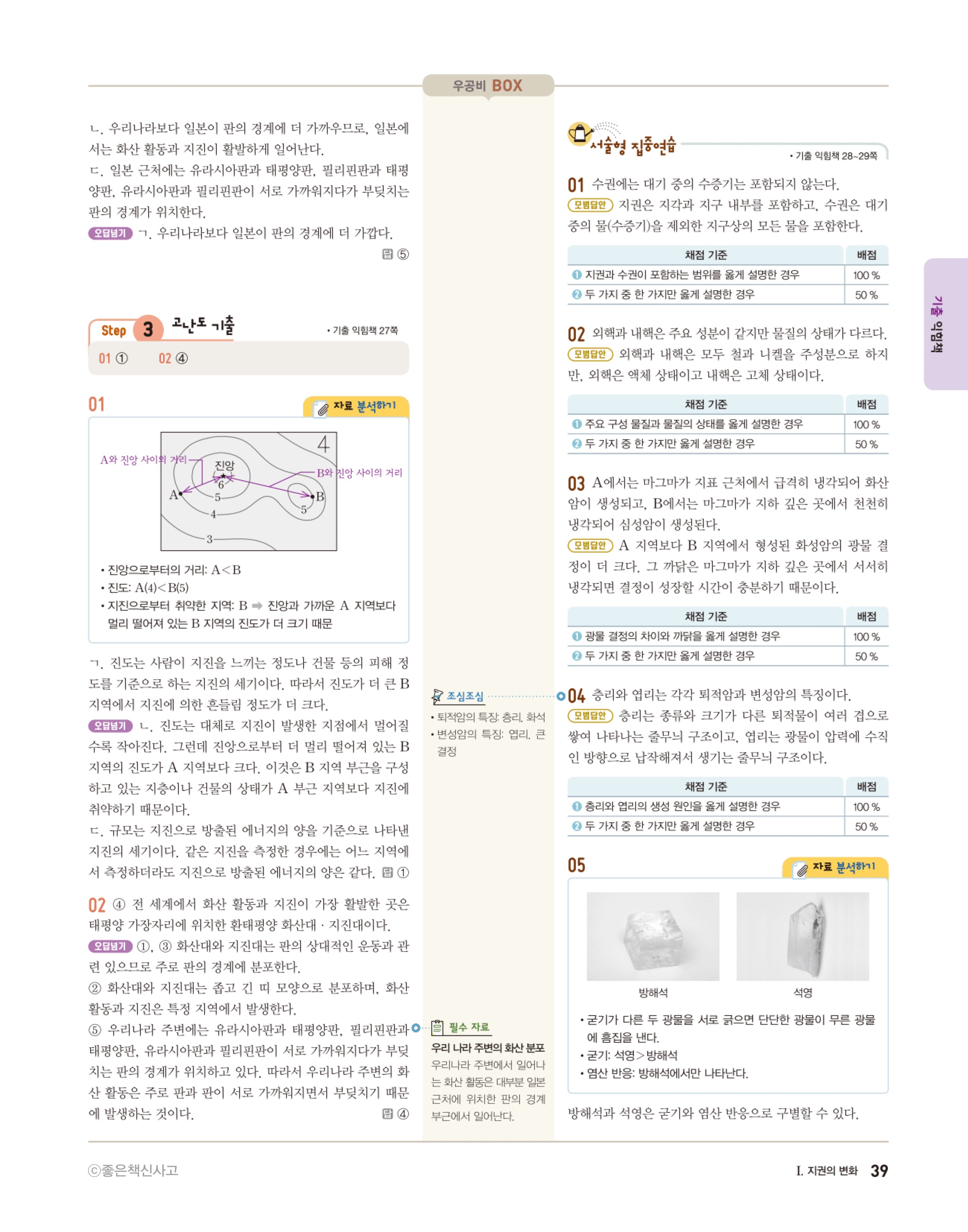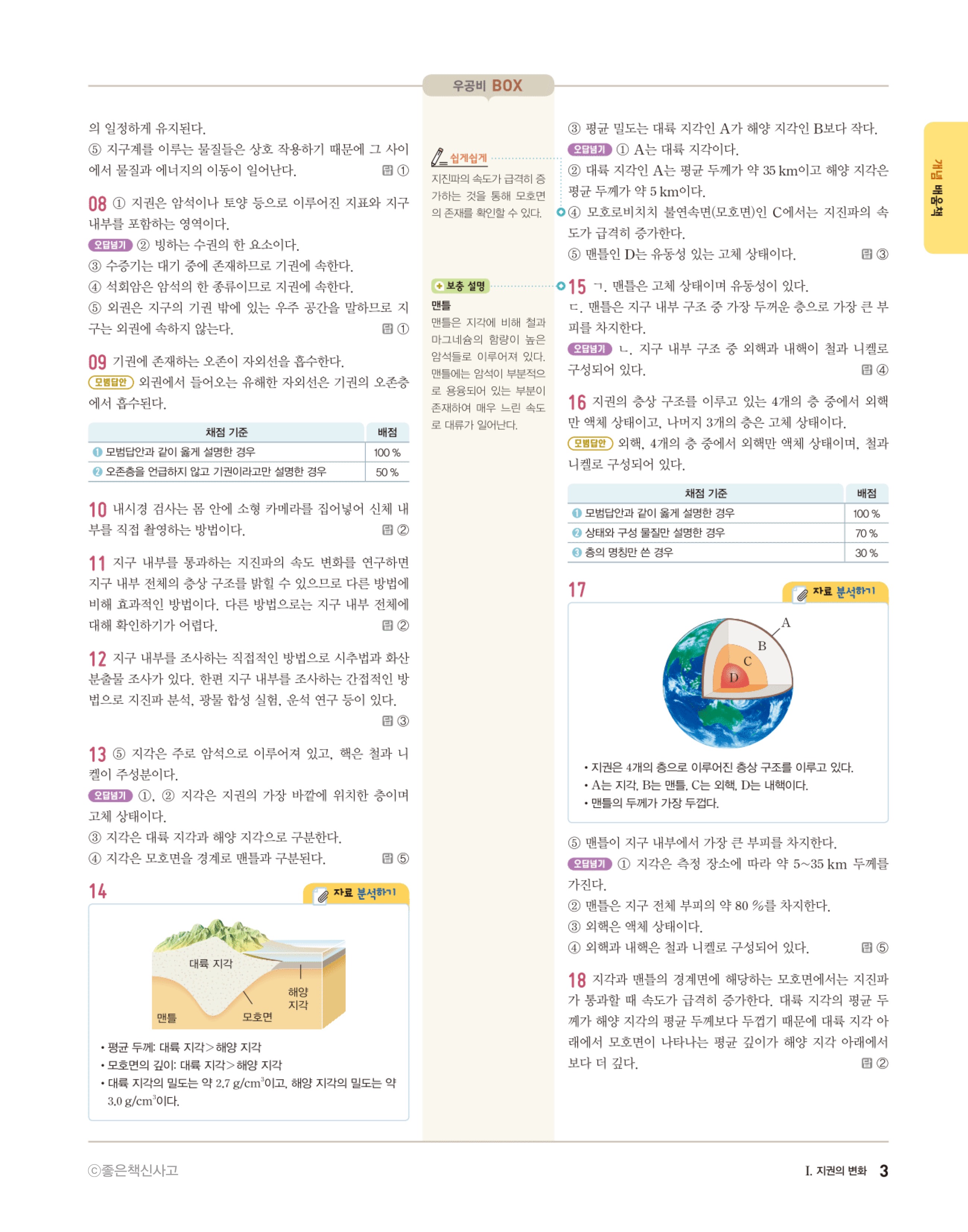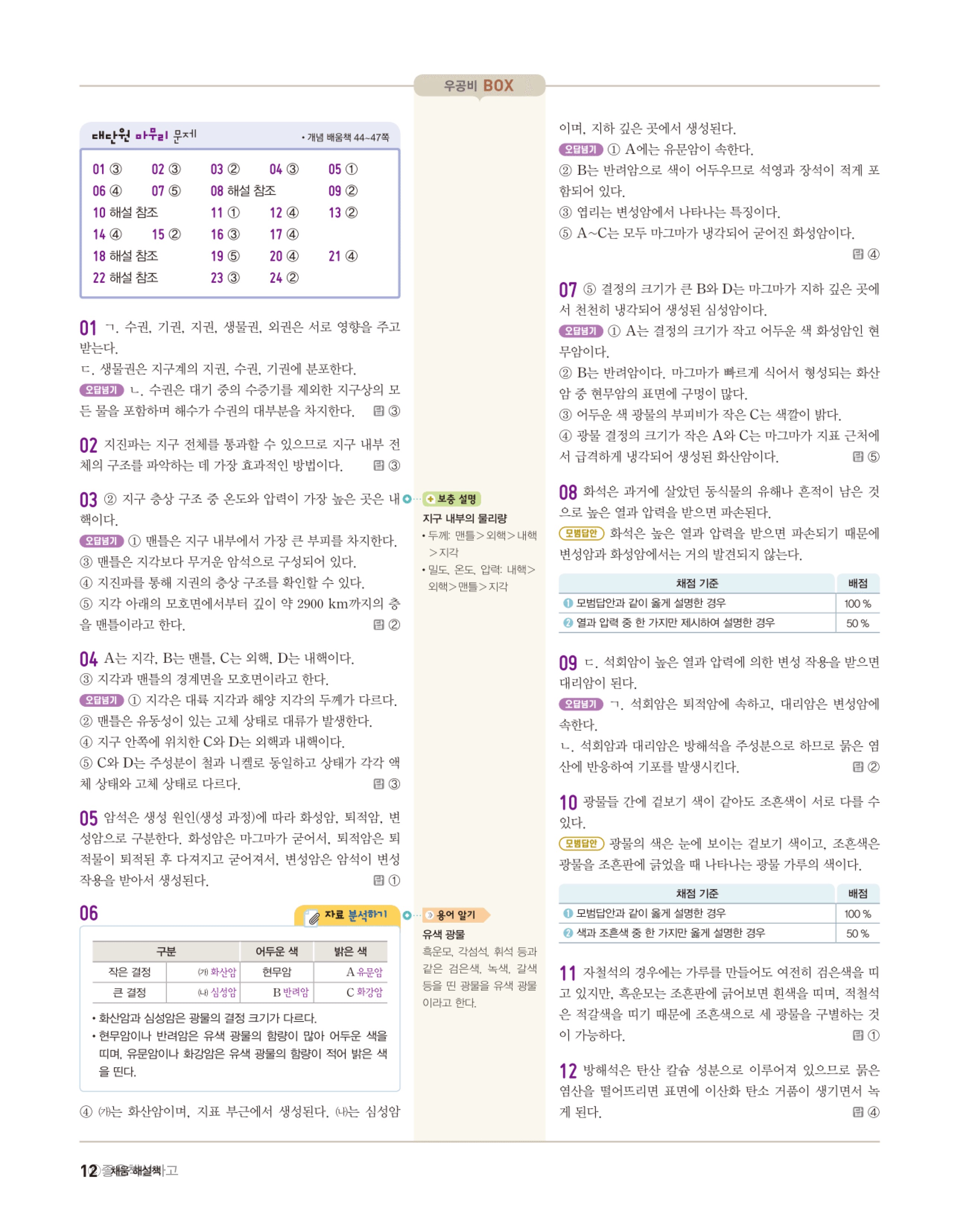 우공비 중등과학 1-1 답지 해설 바로보는 사진답지 빠른답지 모바일최적화
