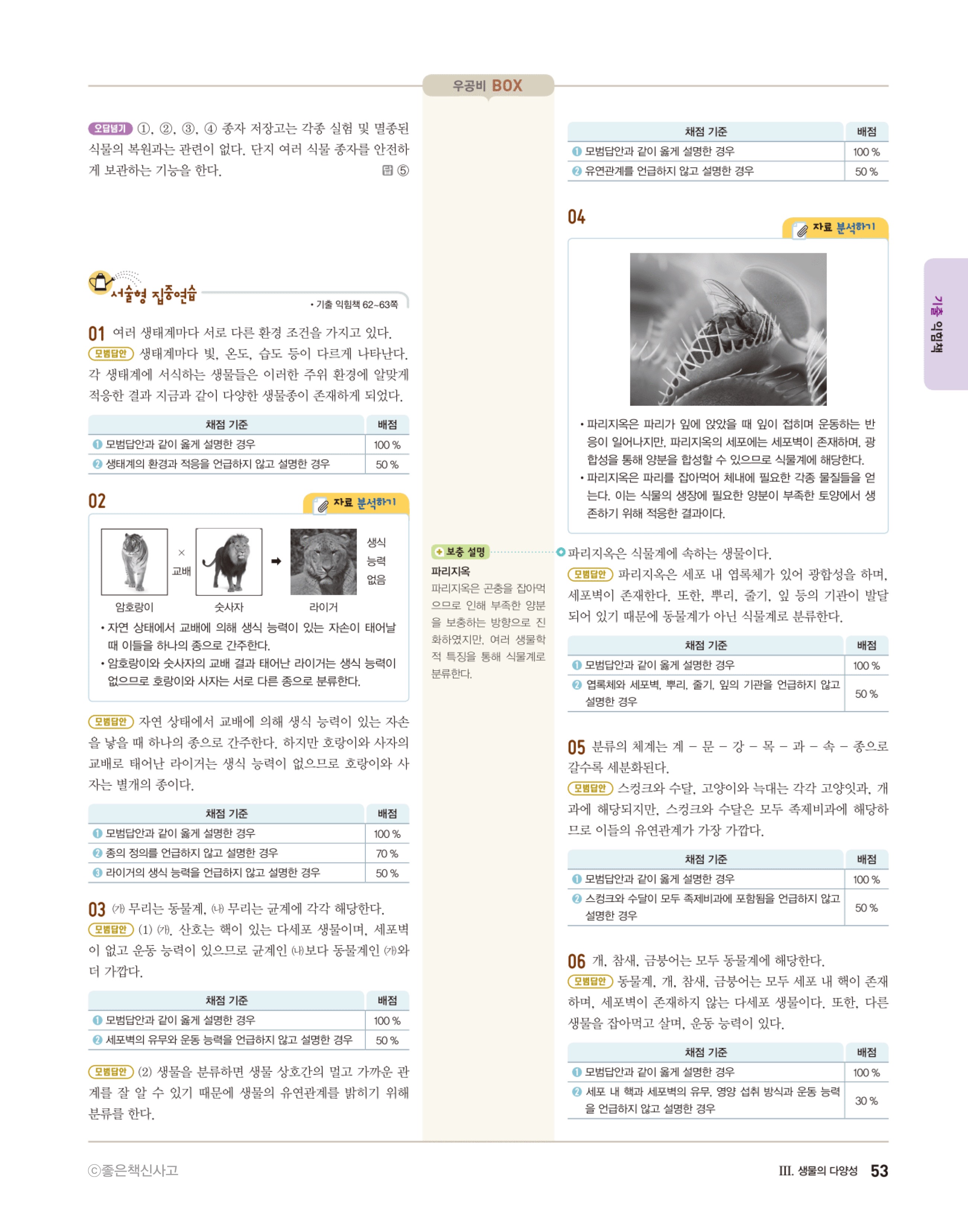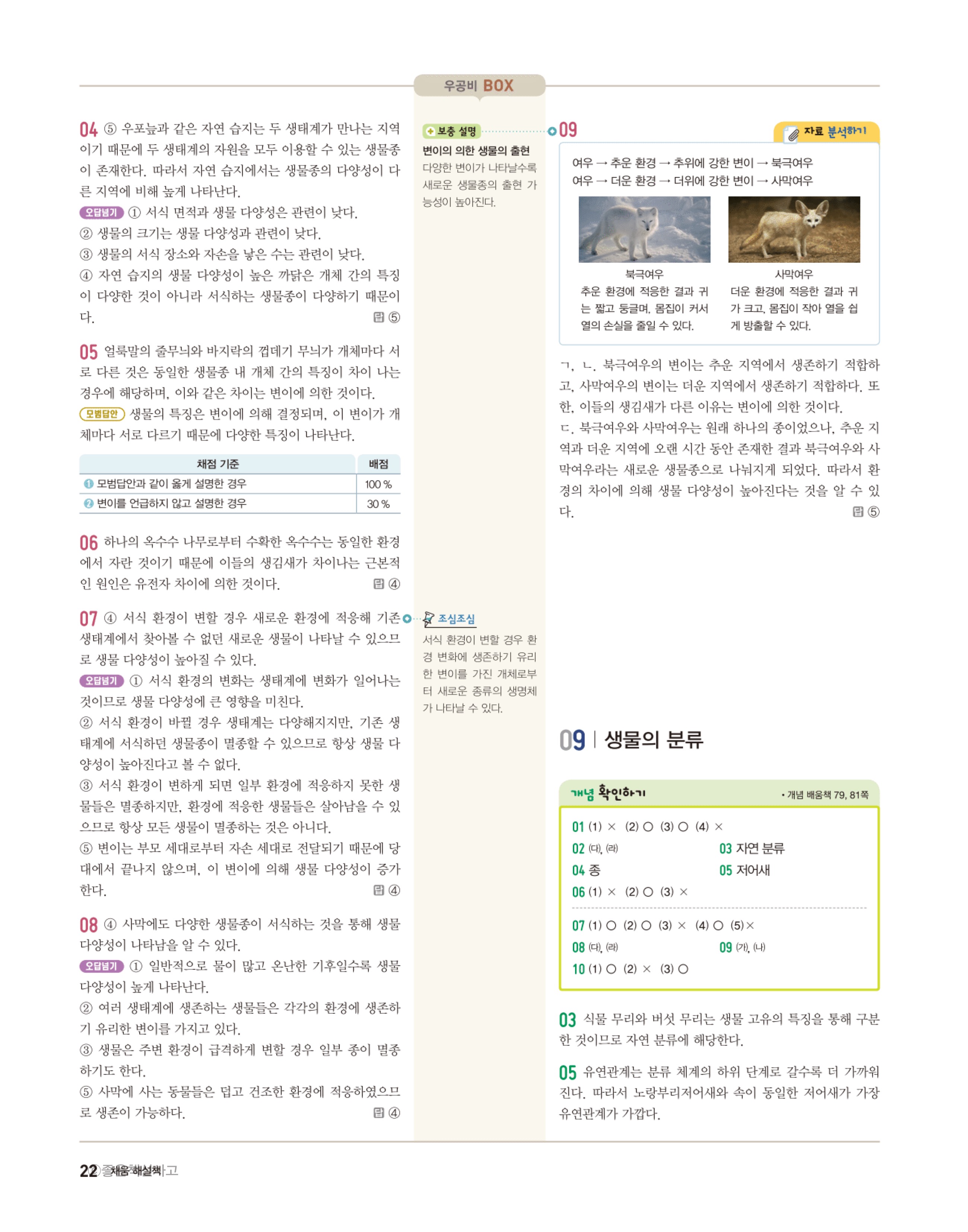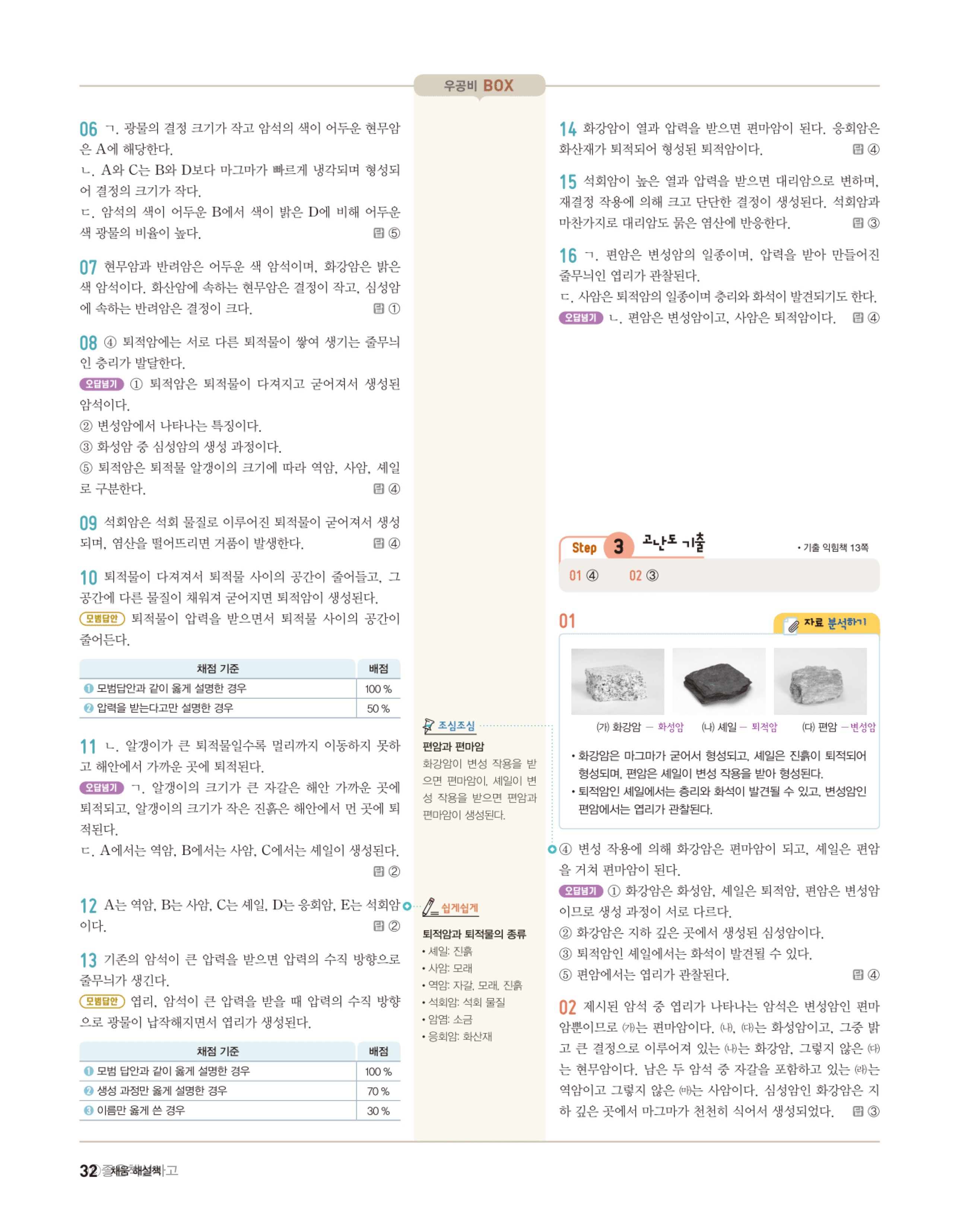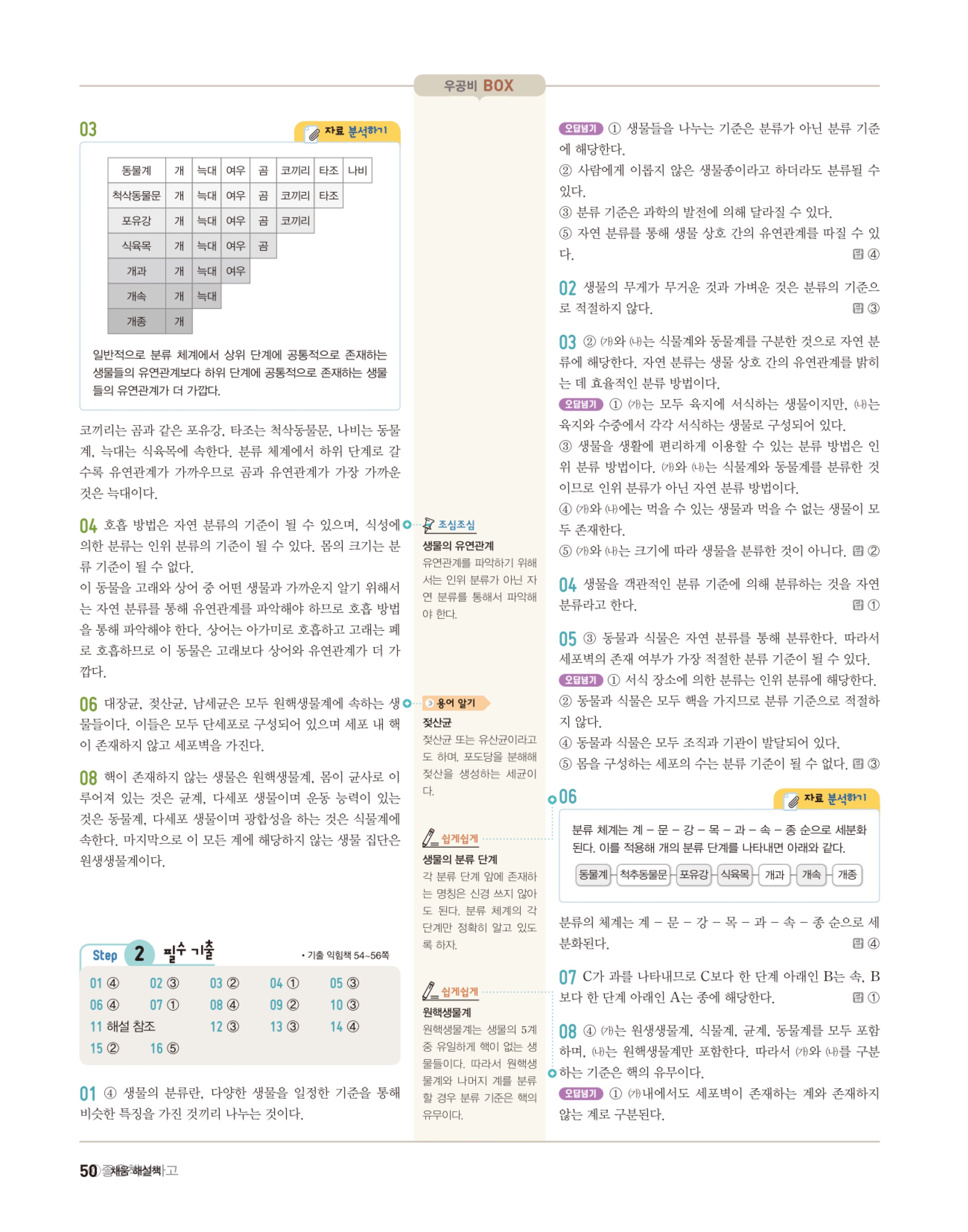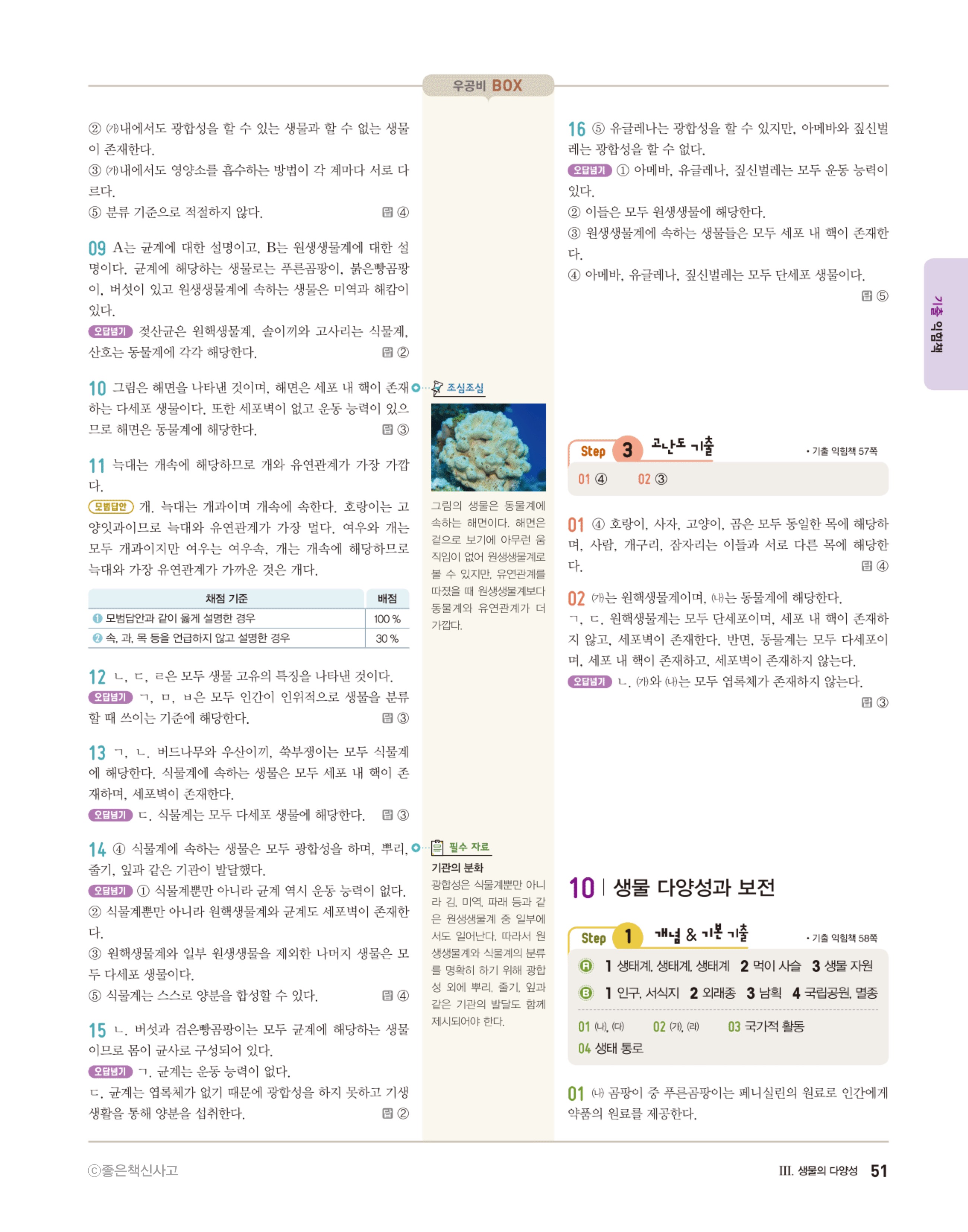 우공비 중등과학 1-1 답지 해설 바로보는 사진답지 빠른답지 모바일최적화