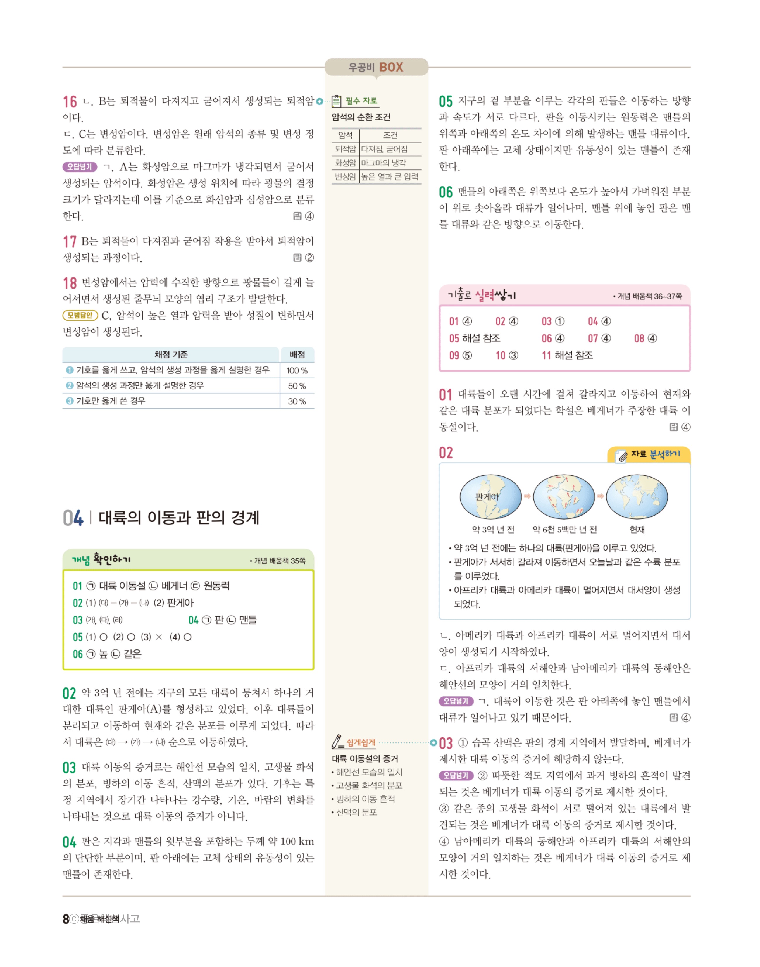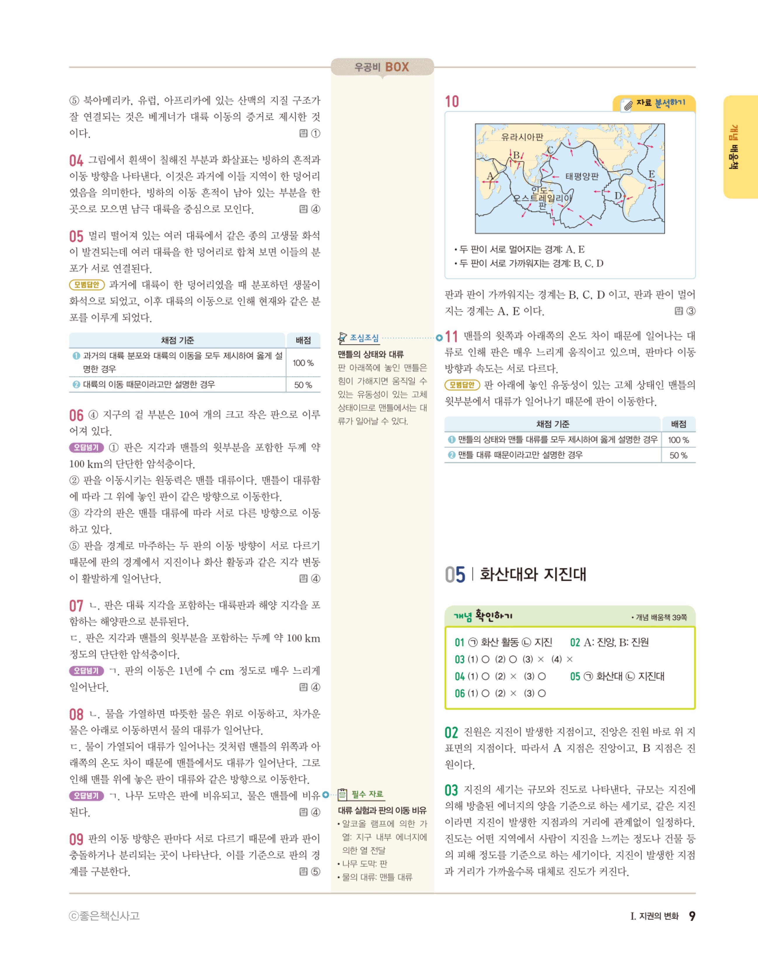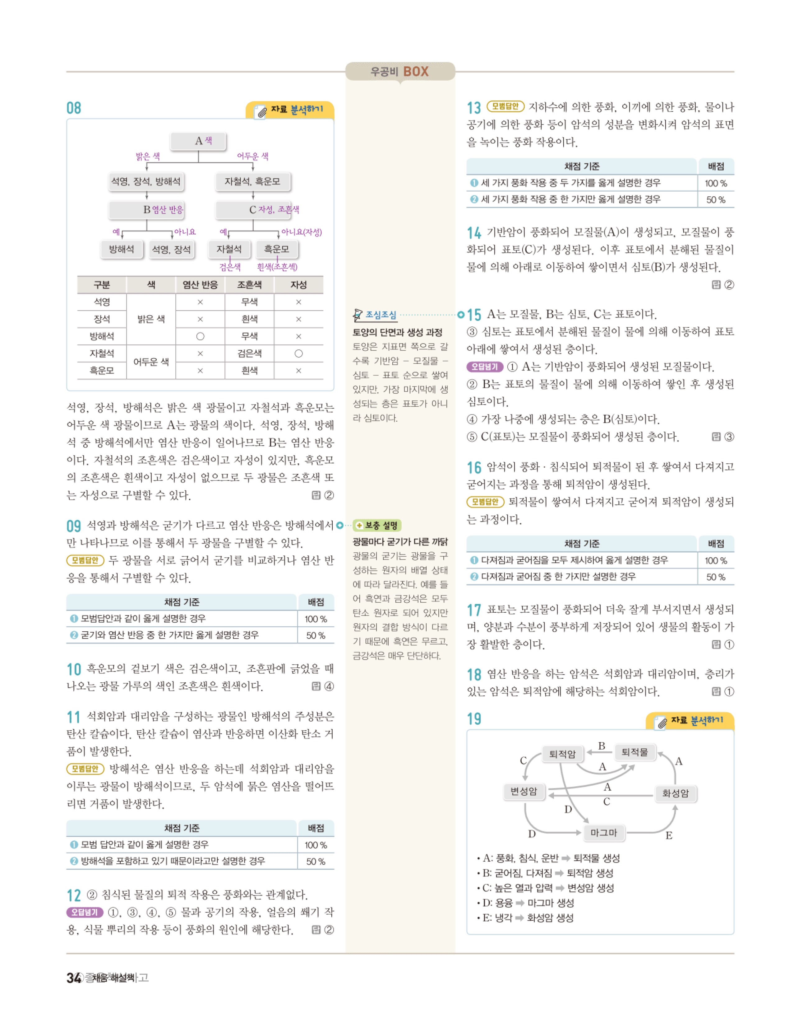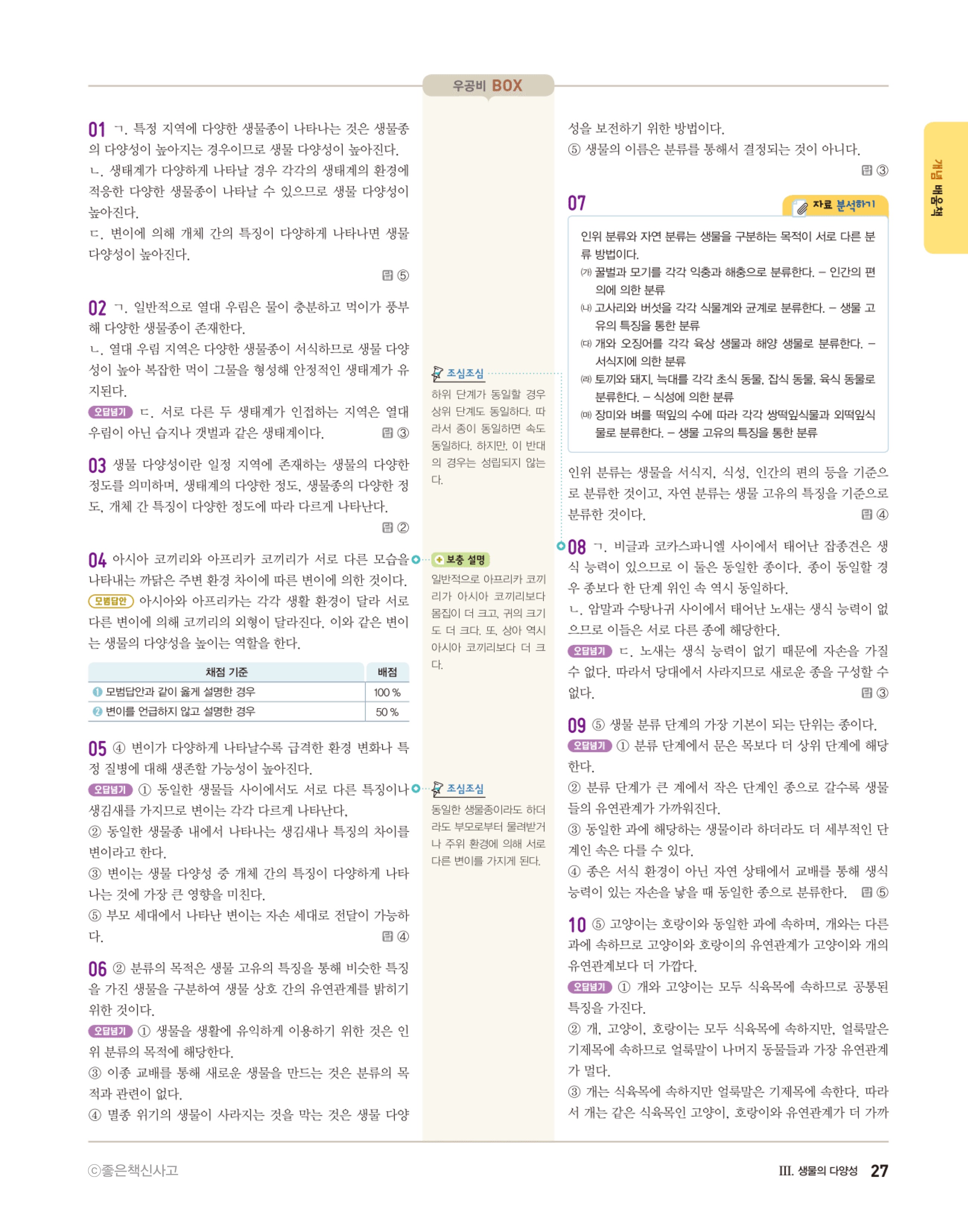 우공비 중등과학 1-1 답지 해설 바로보는 사진답지 빠른답지 모바일최적화