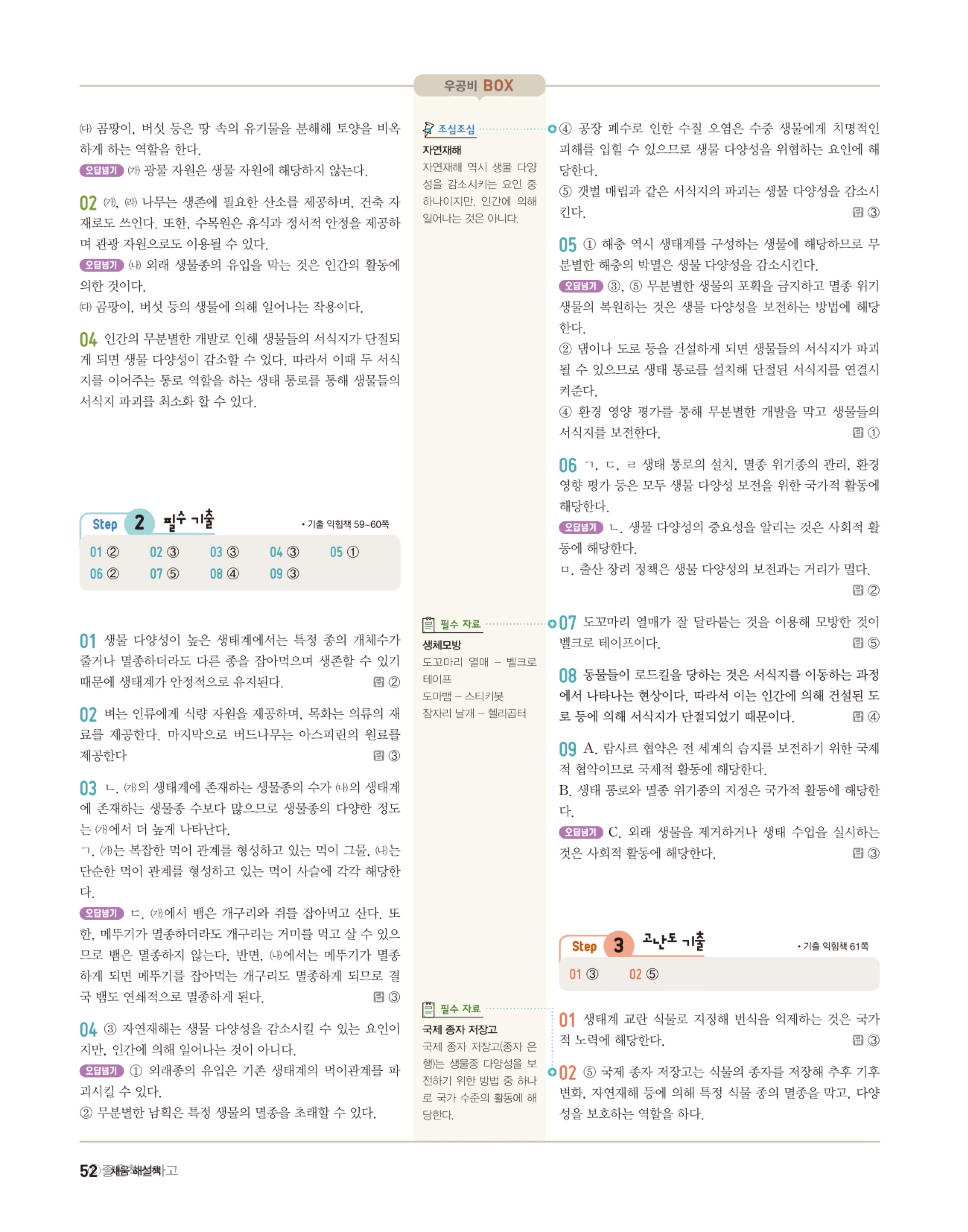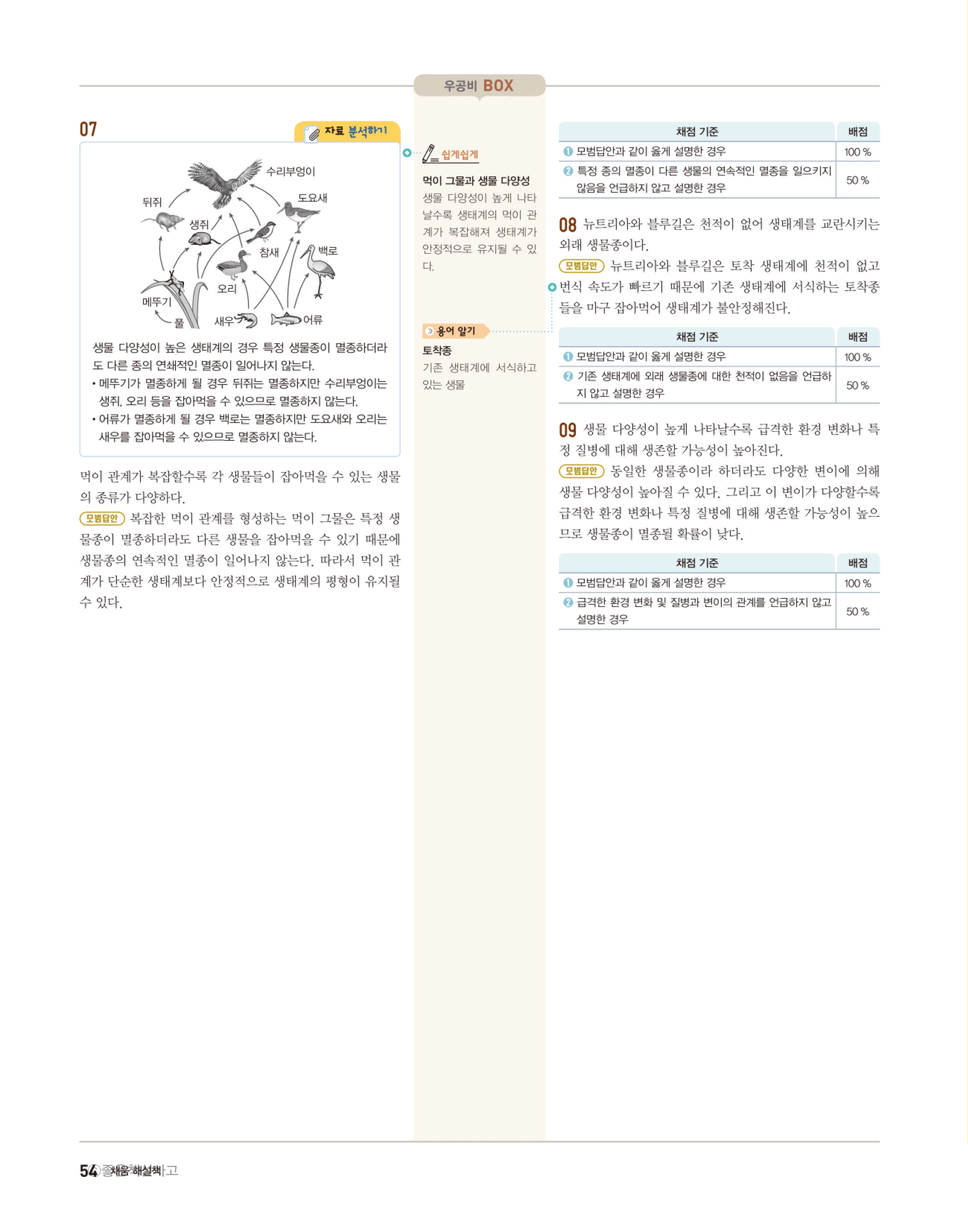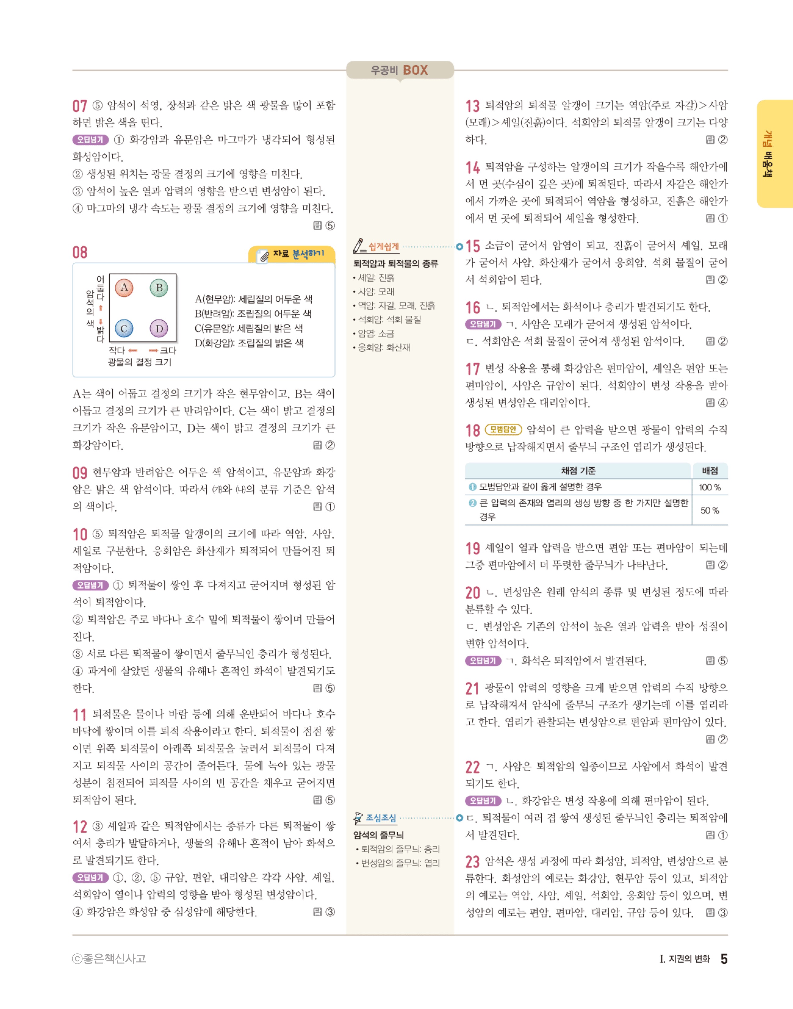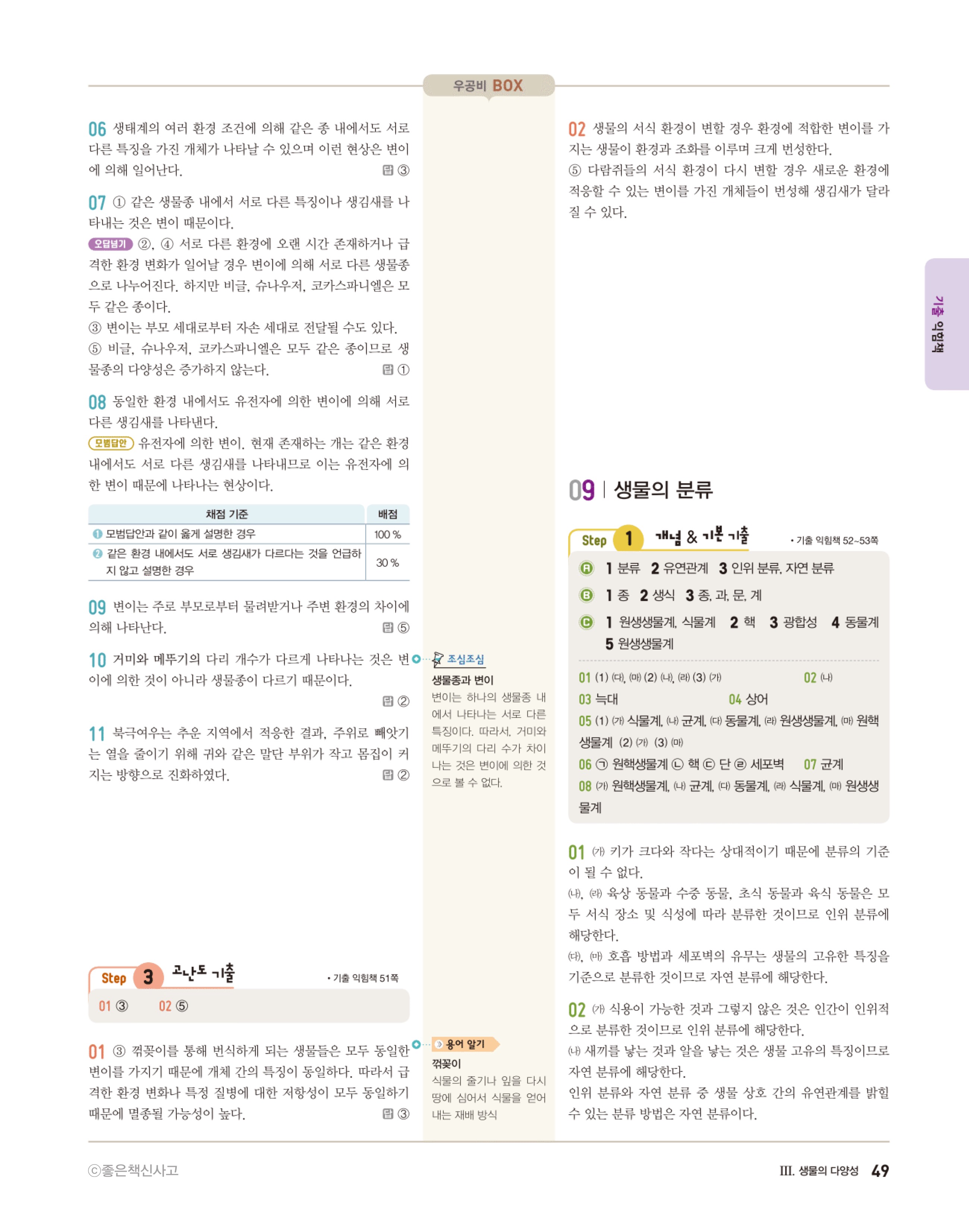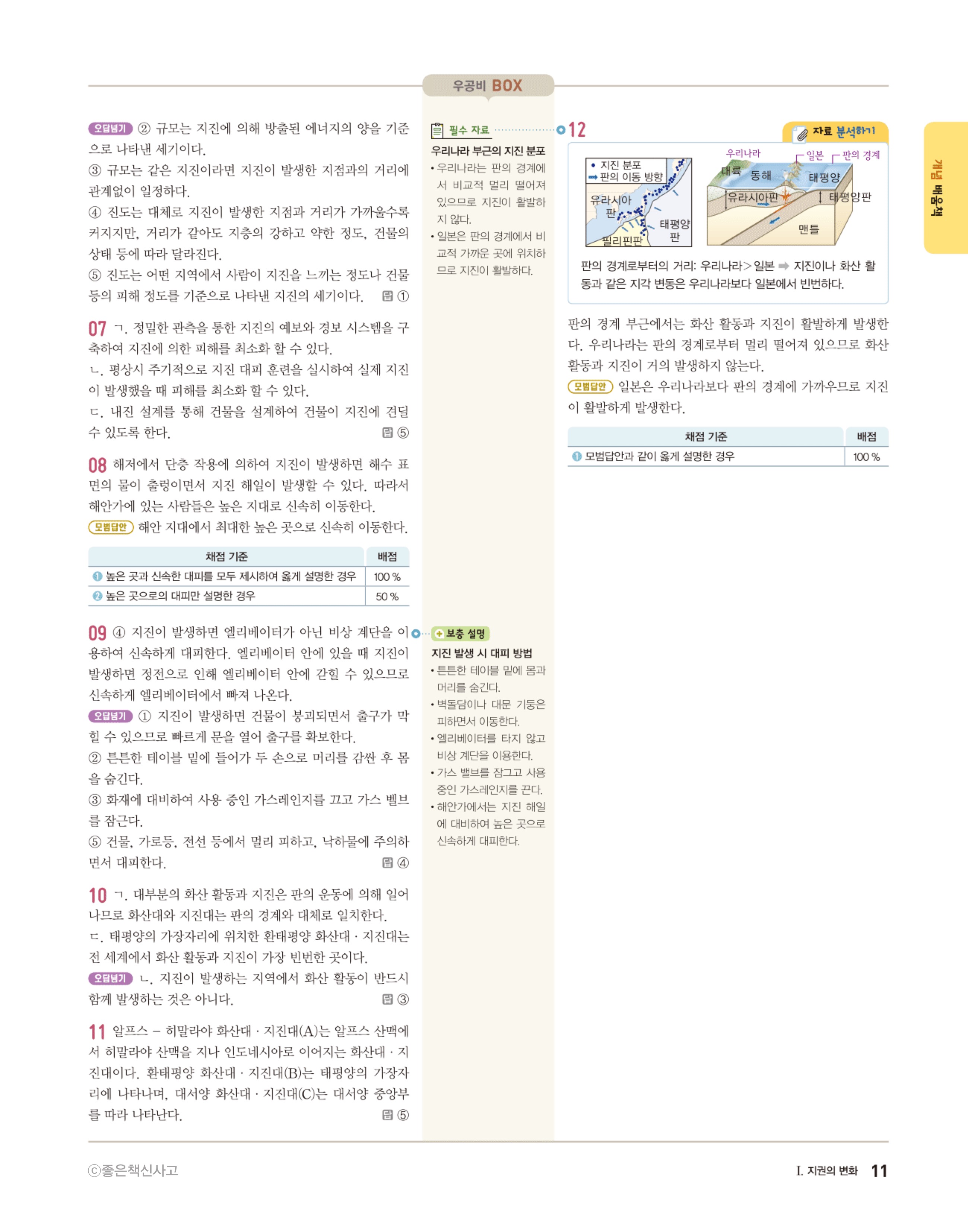 우공비 중등과학 1-1 답지 해설 바로보는 사진답지 빠른답지 모바일최적화