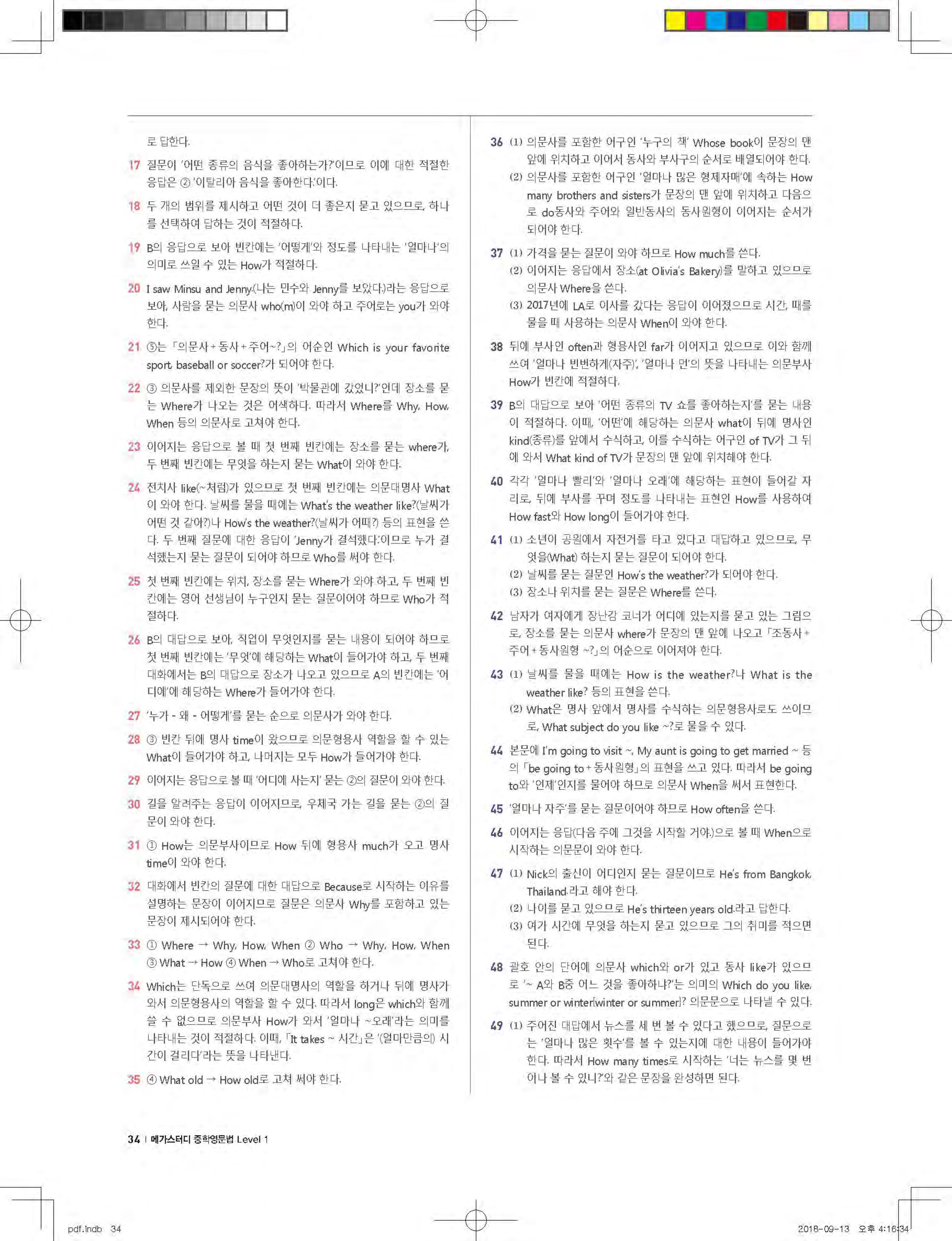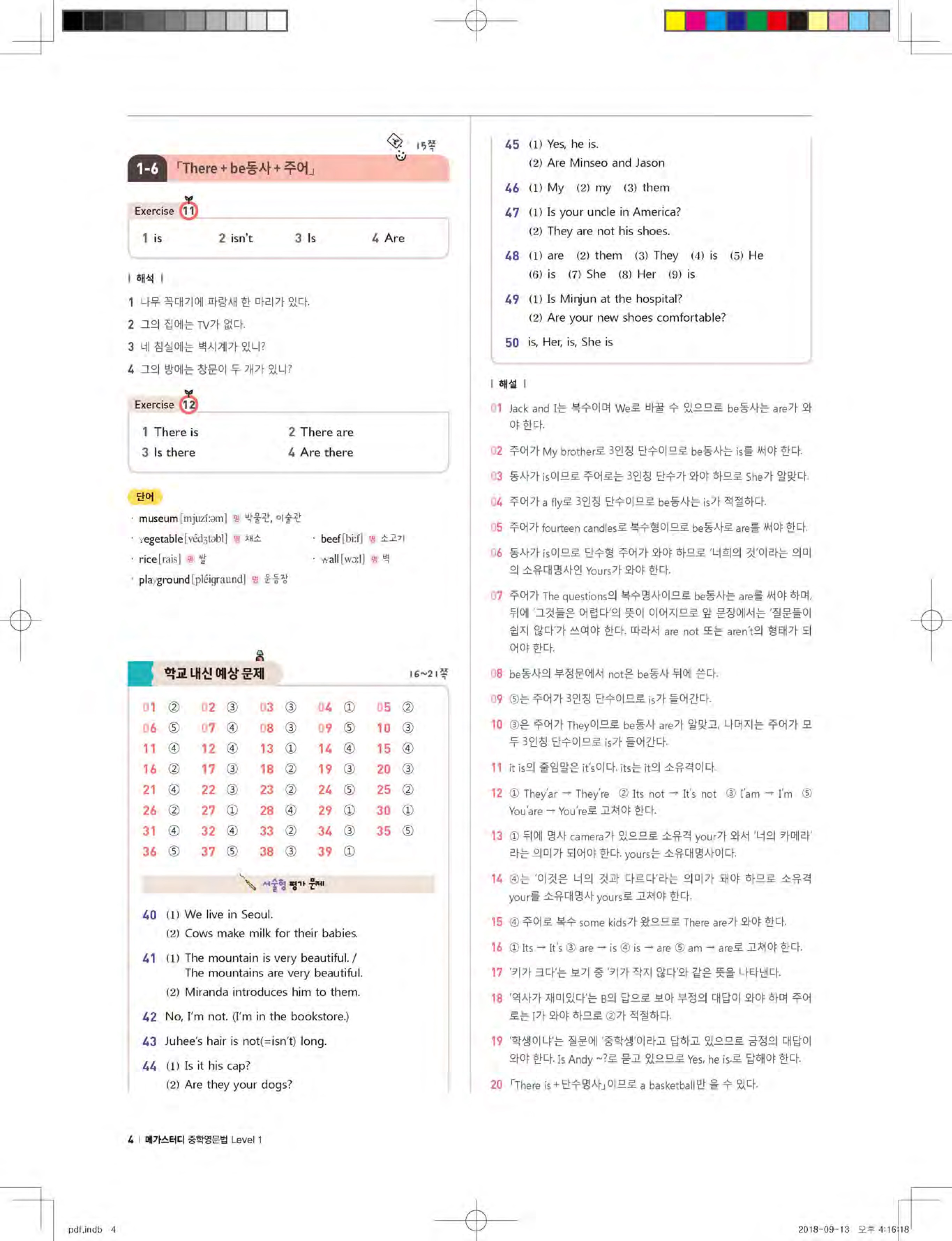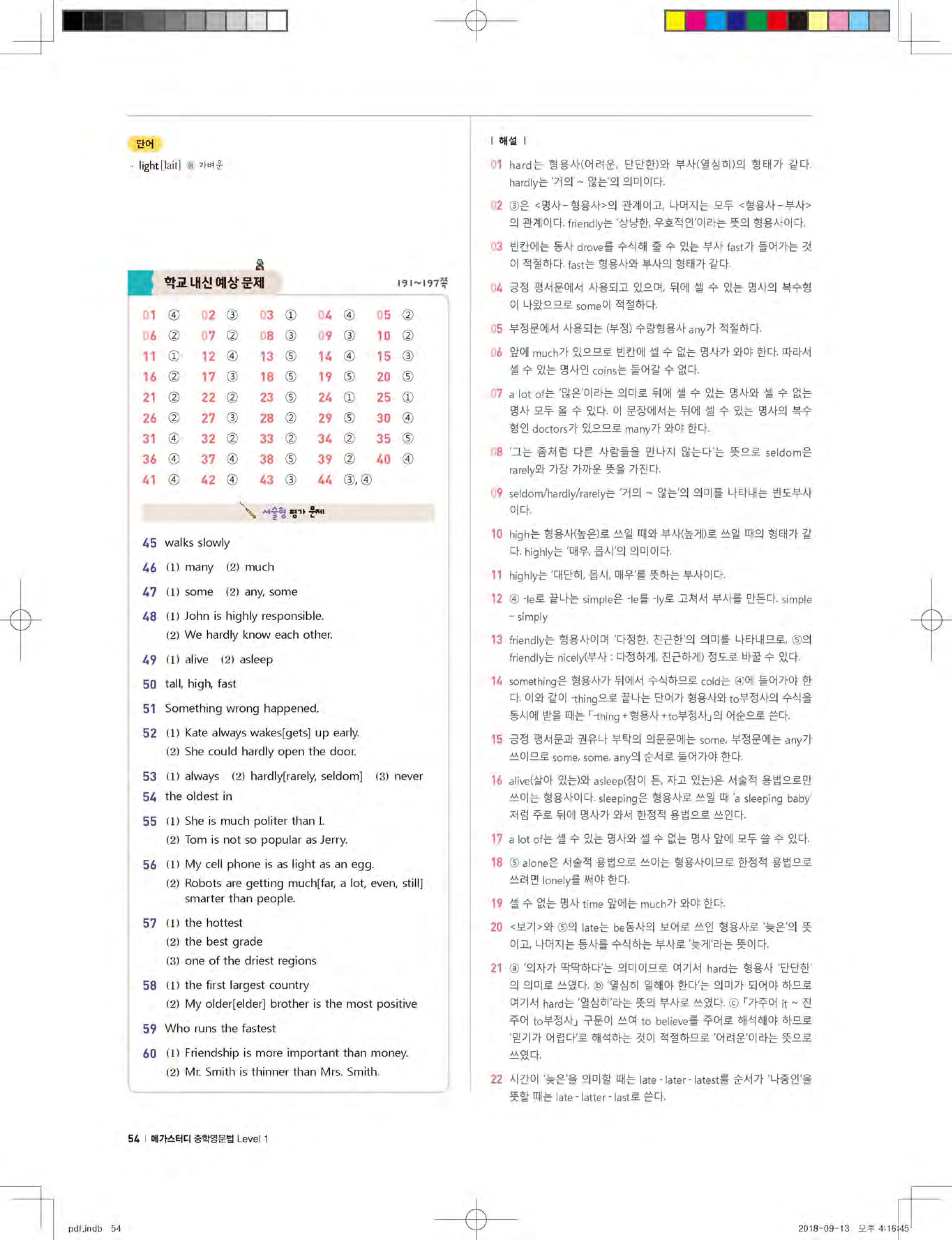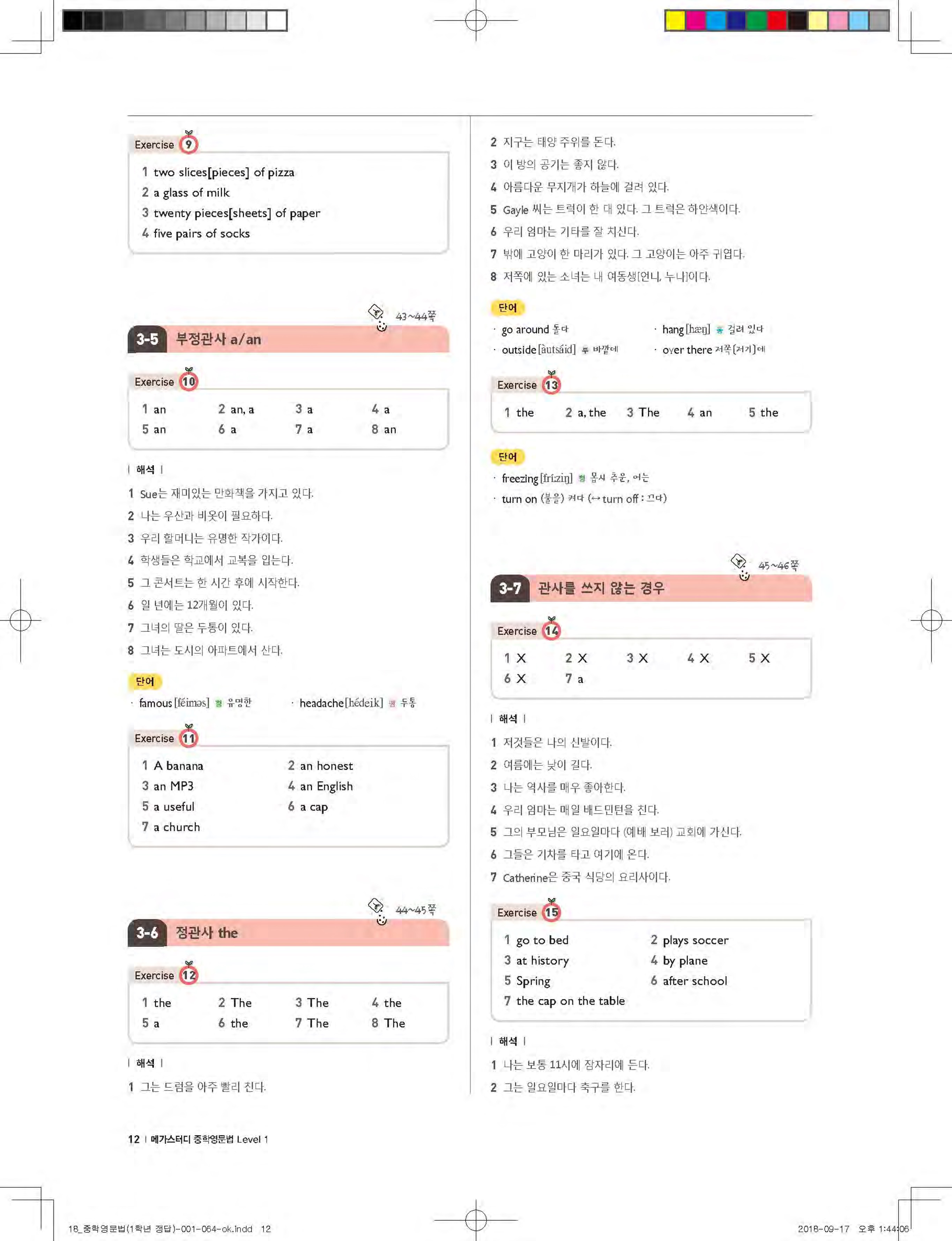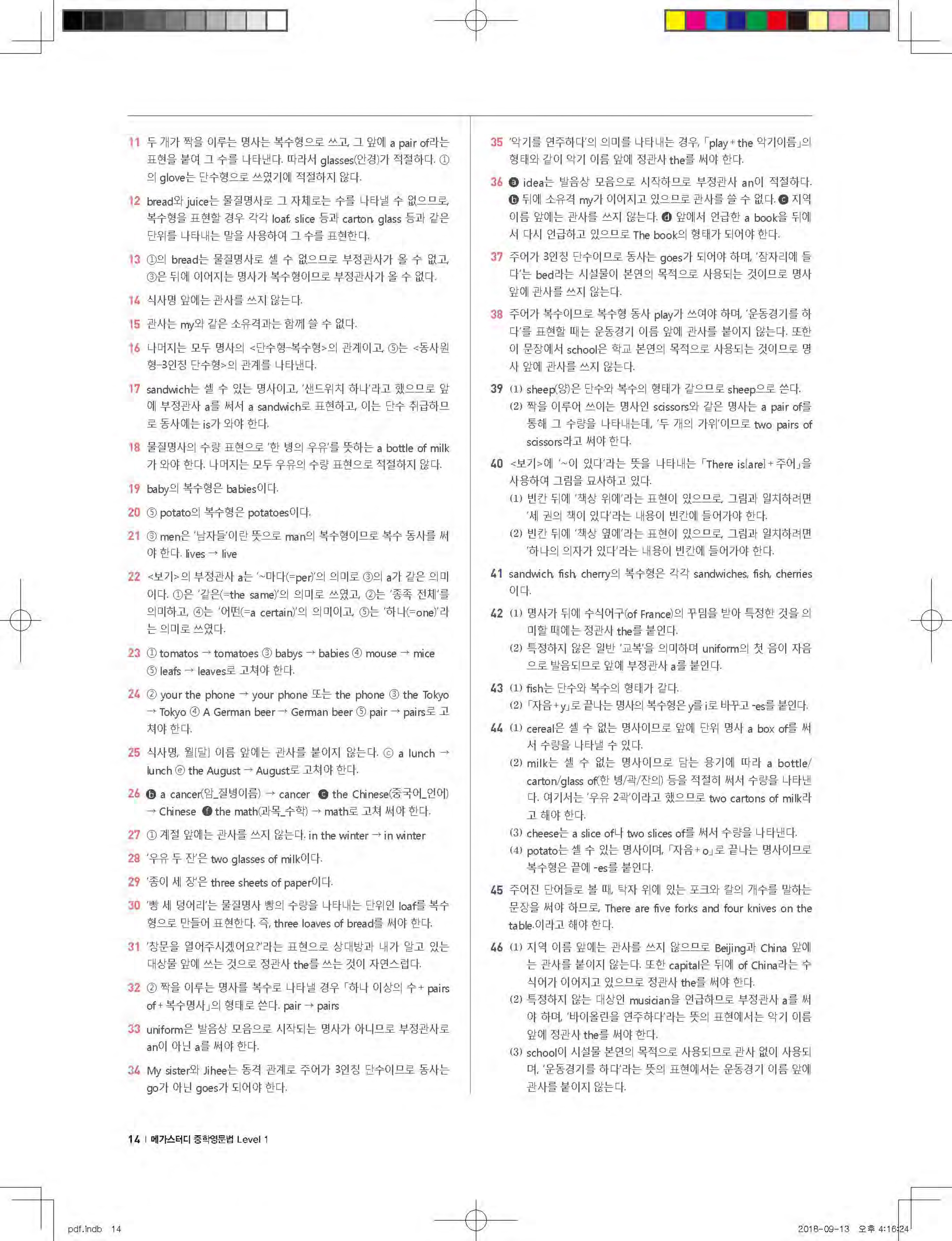 메가중학영문법 레벨1 답지 해설 바로보는 사진답지 빠른답지 모바일최적화