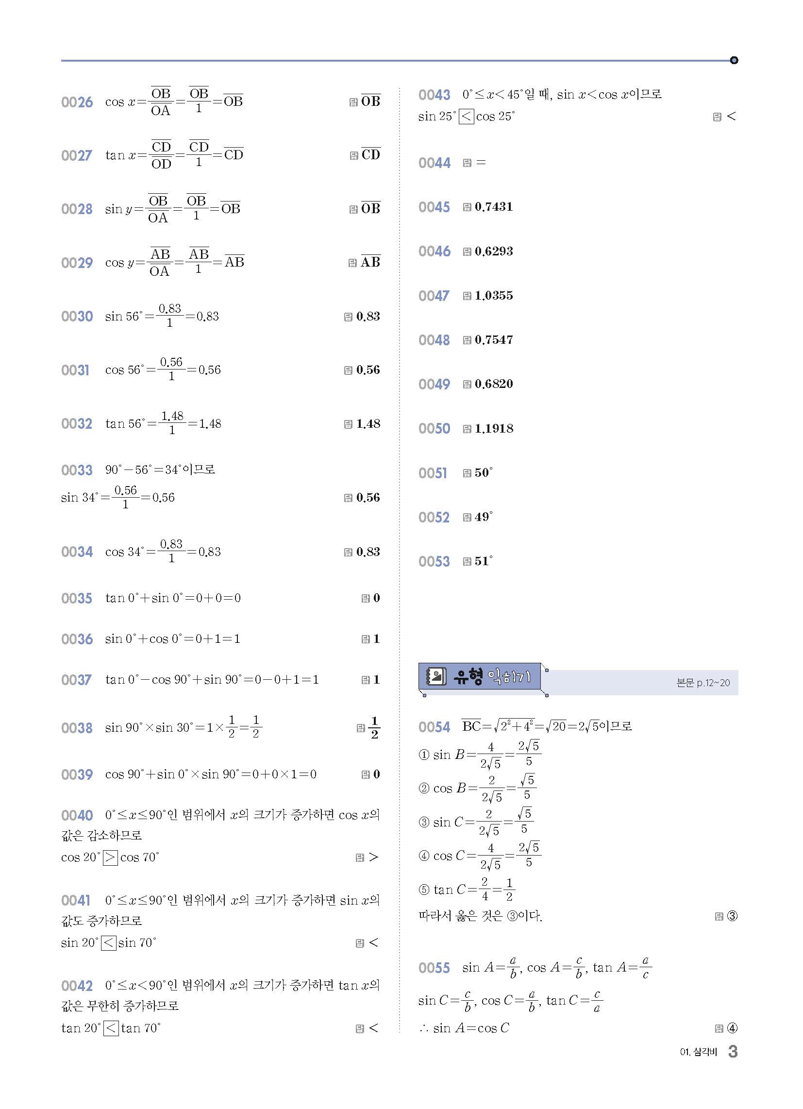 | 교학사 고호경 중3 수학교과서 답지 | |