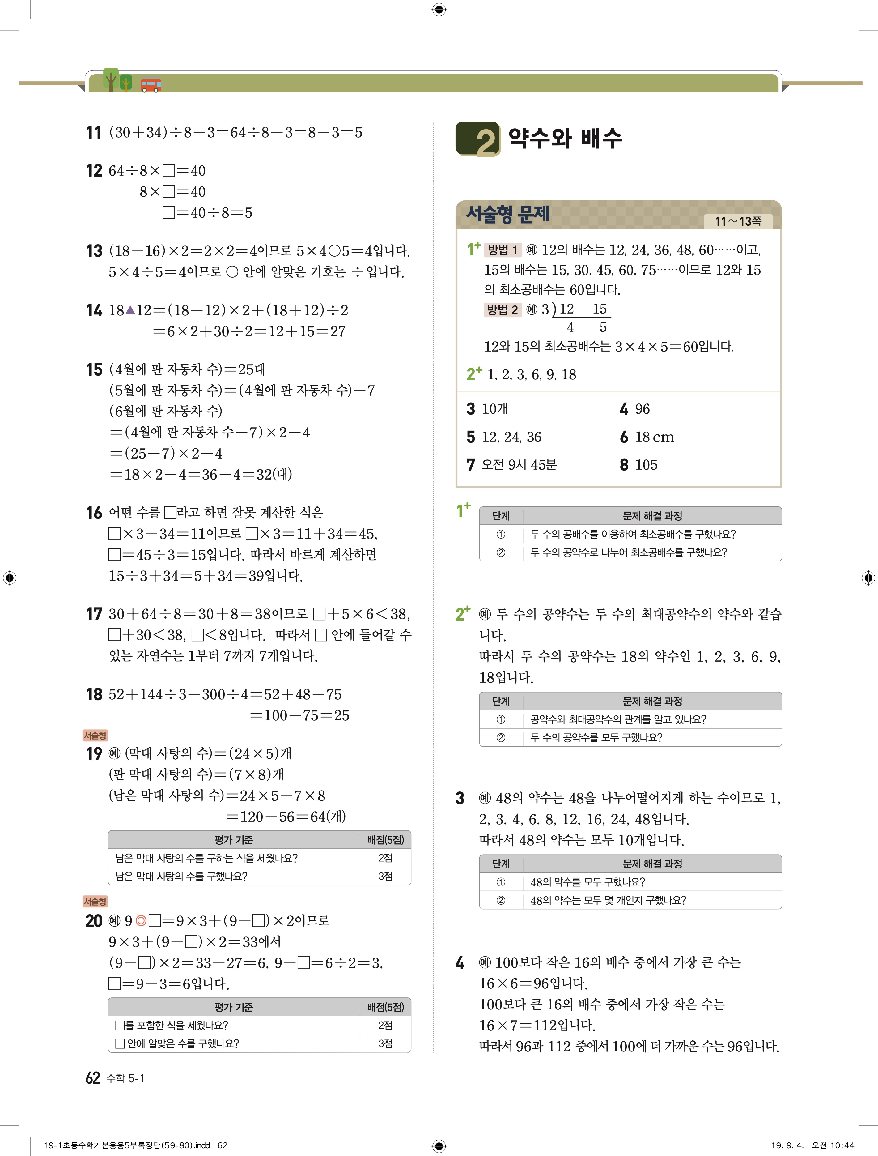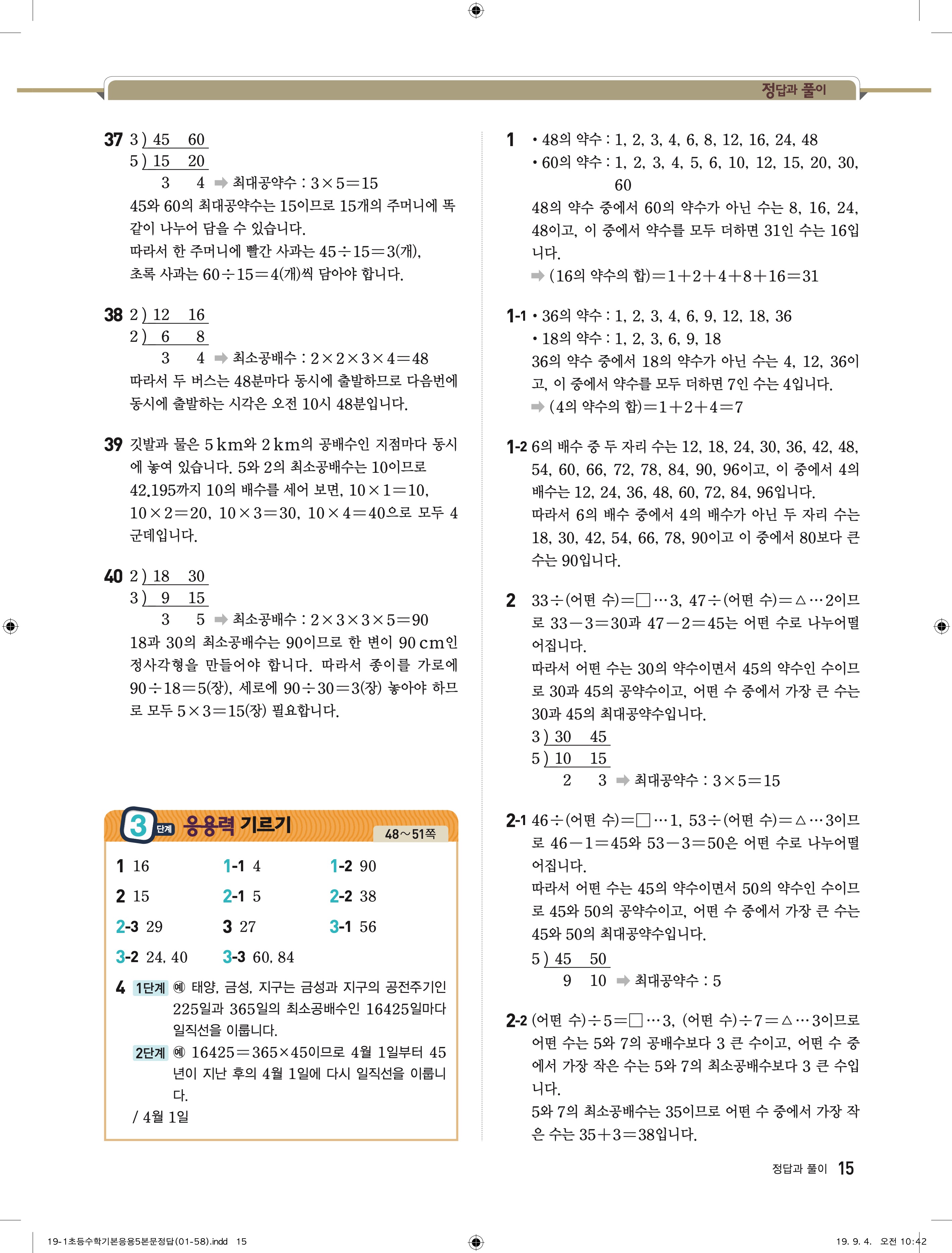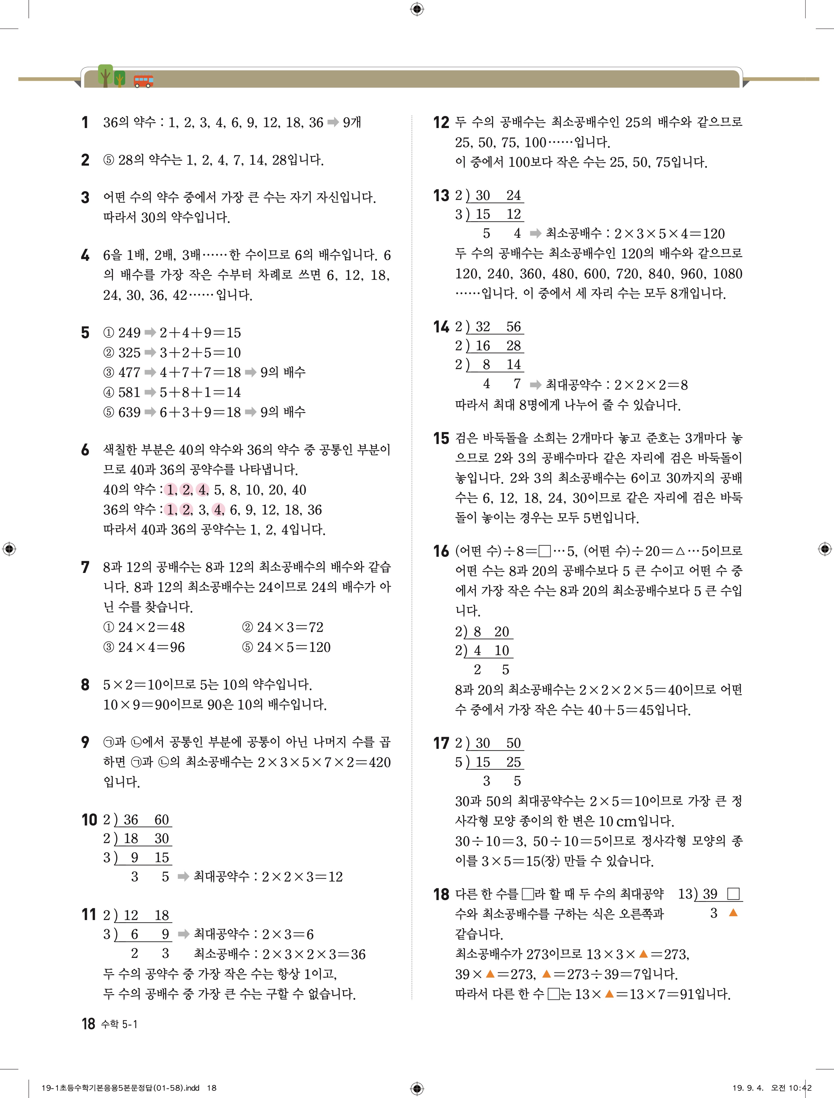 디딤돌 기본 응용 5-1 답지 해설 바로보는 사진답지 빠른답지 모바일최적화
