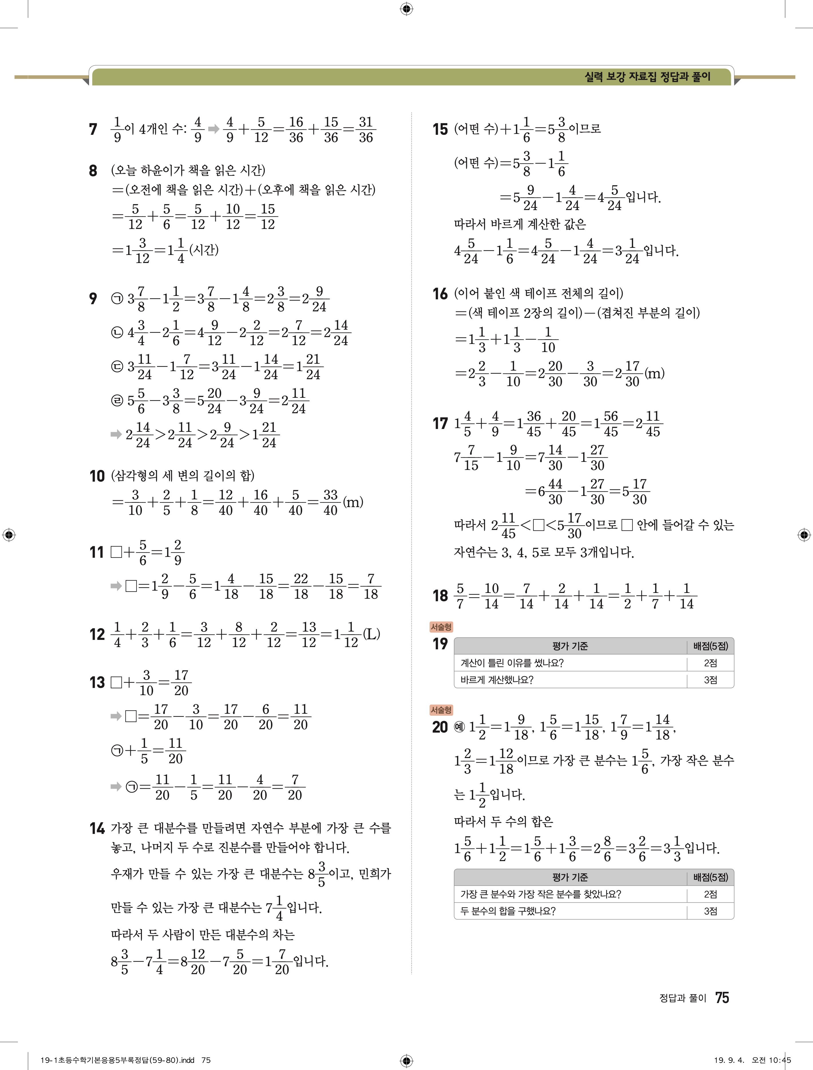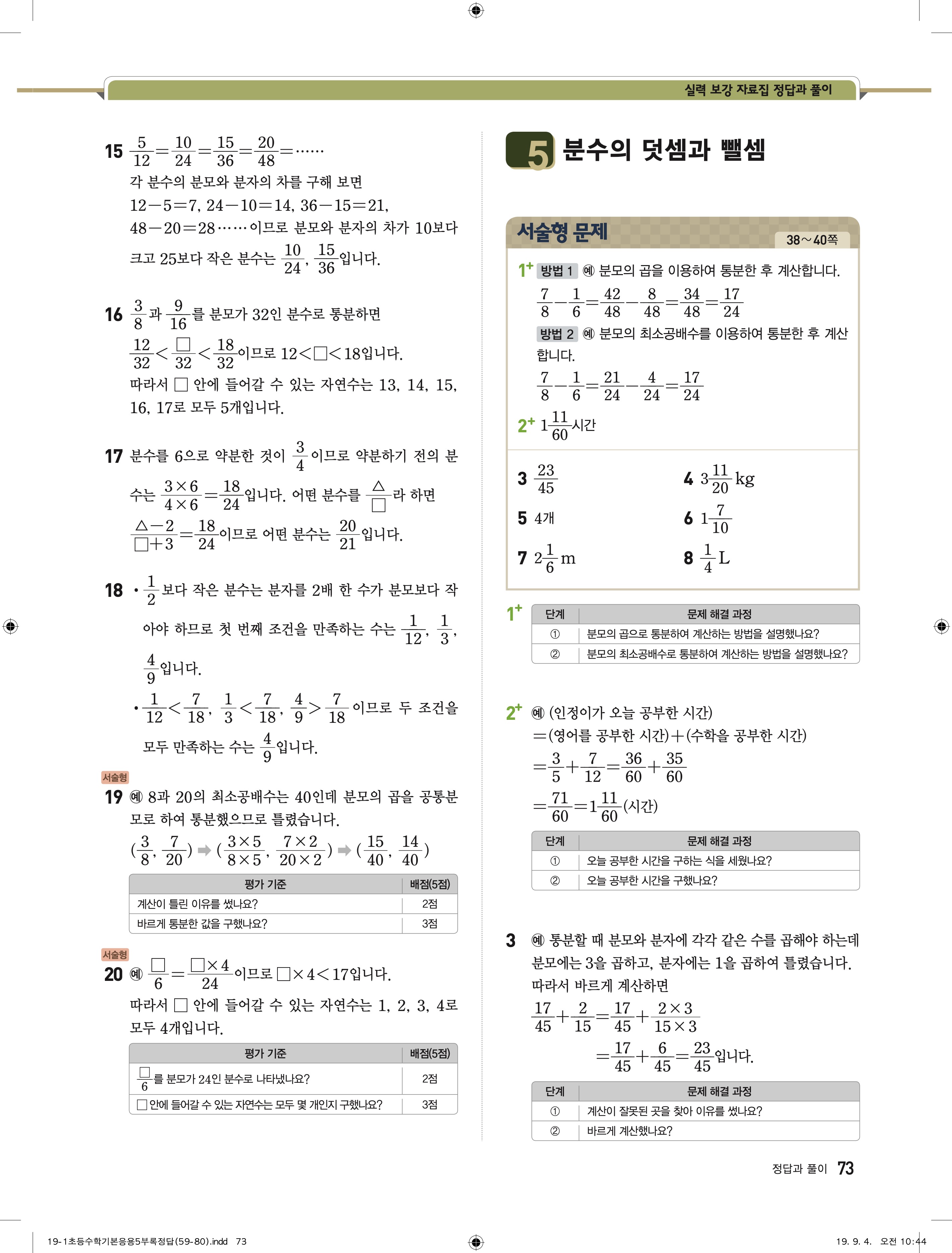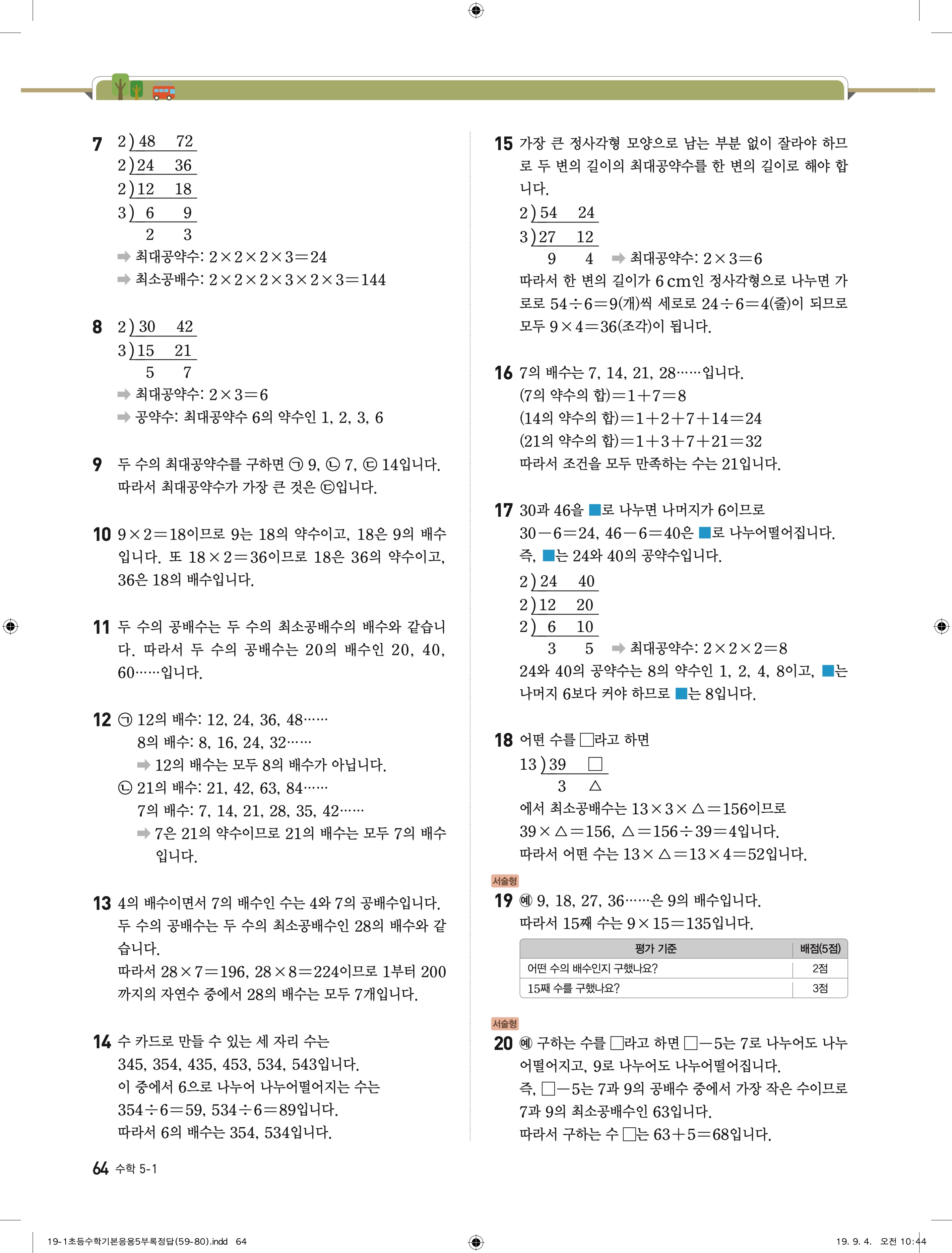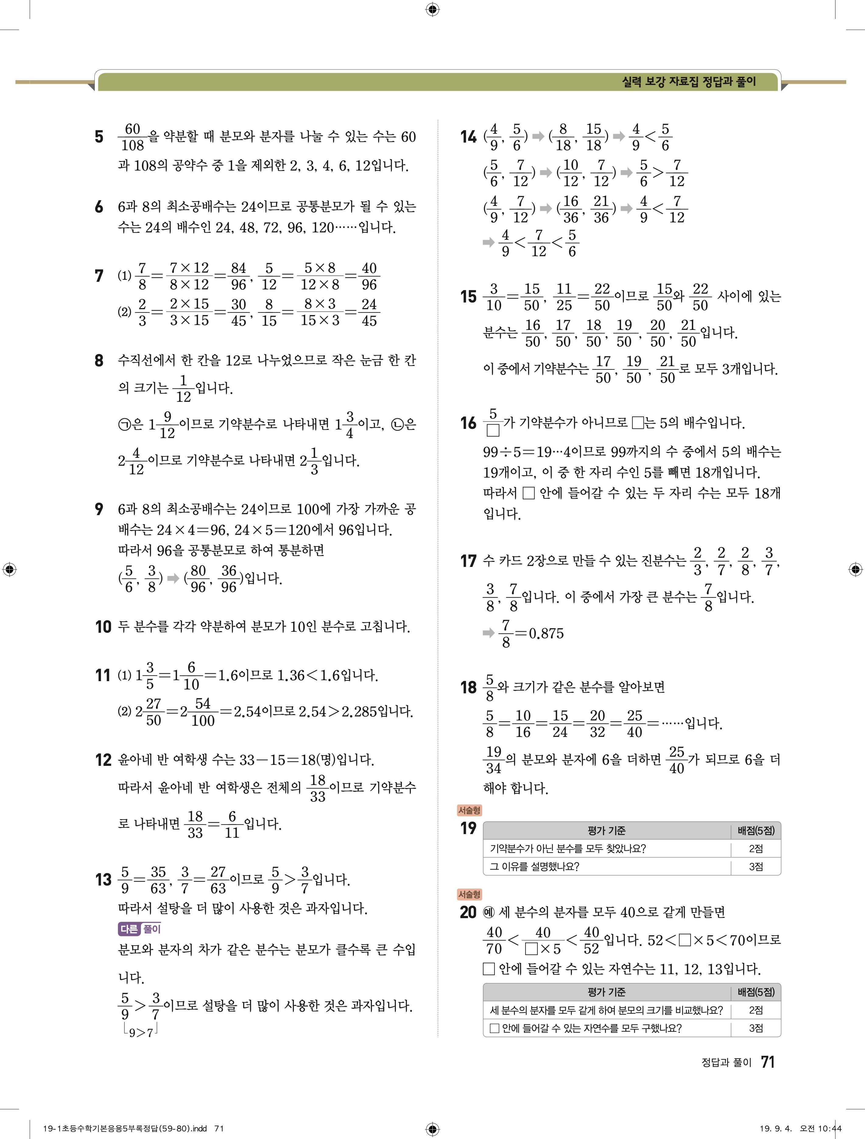 디딤돌 기본 응용 5-1 답지 해설 바로보는 사진답지 빠른답지 모바일최적화