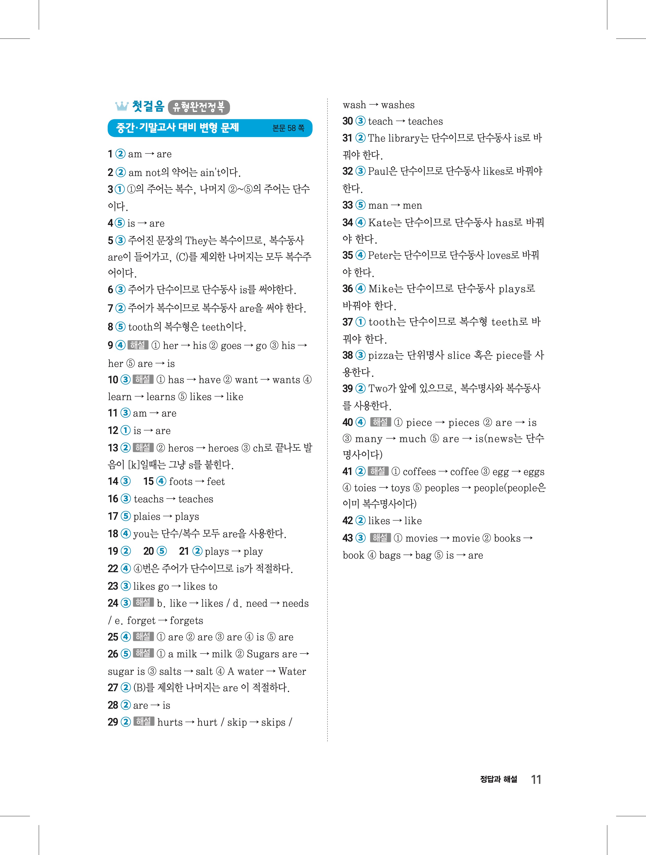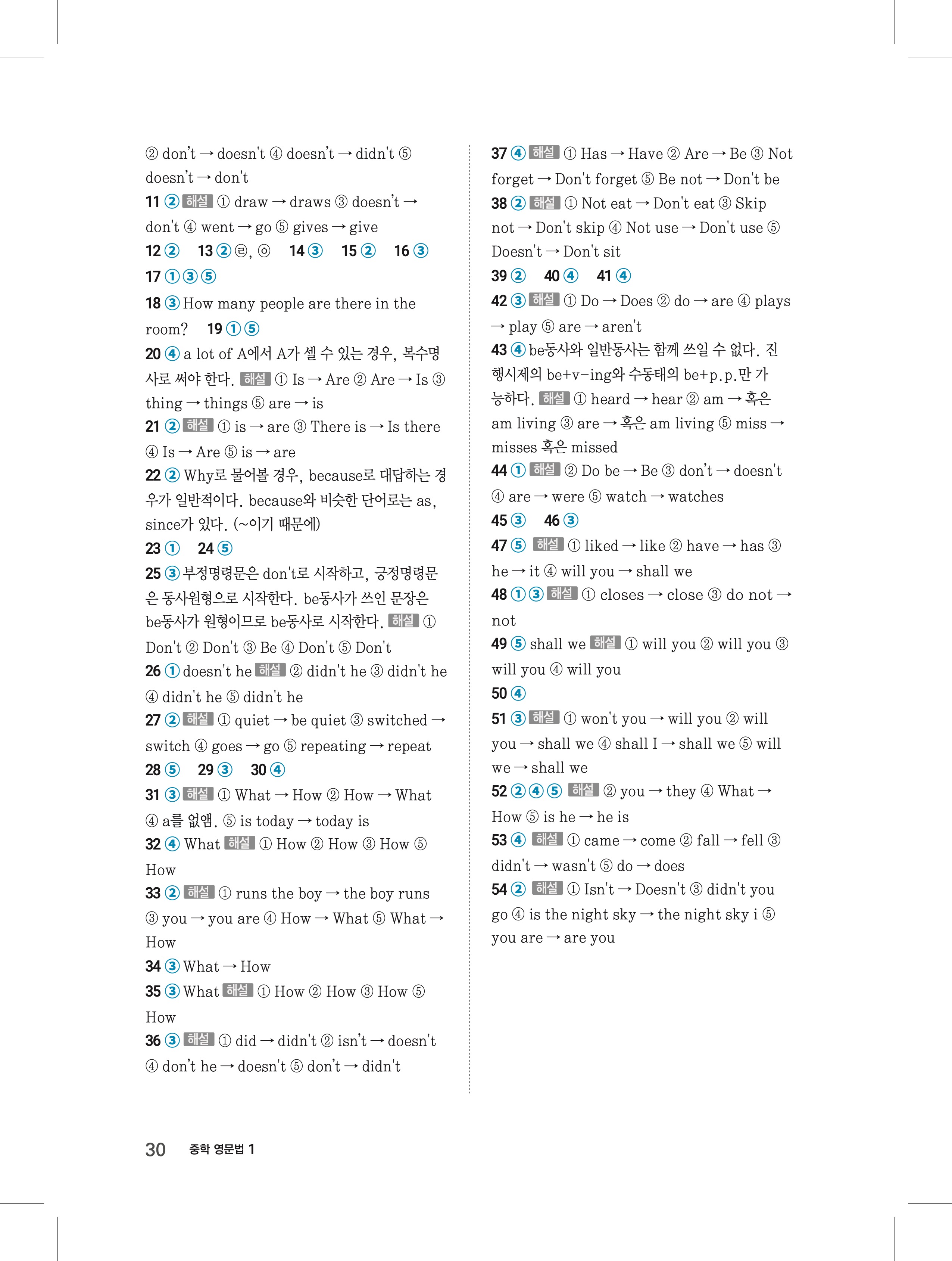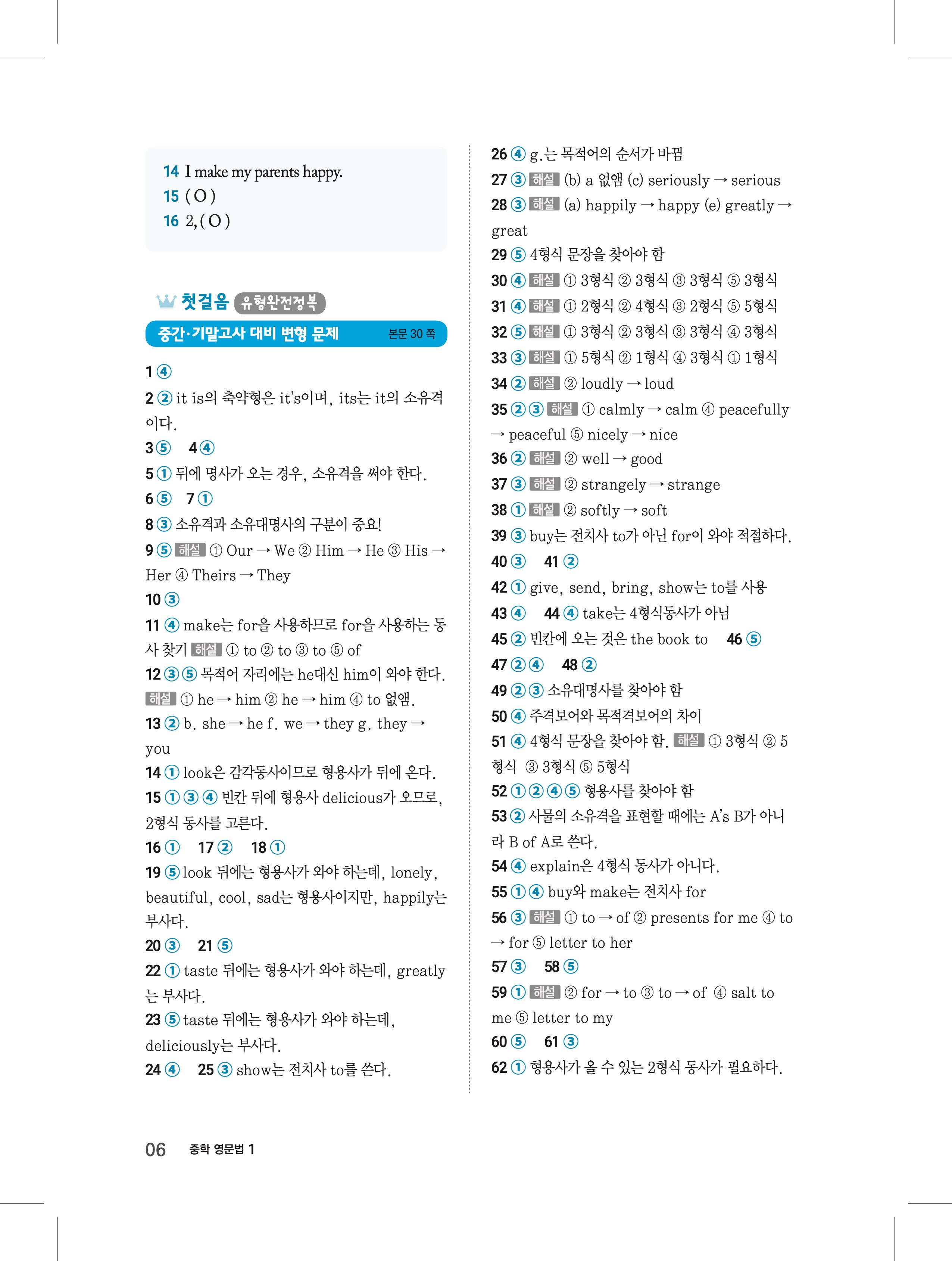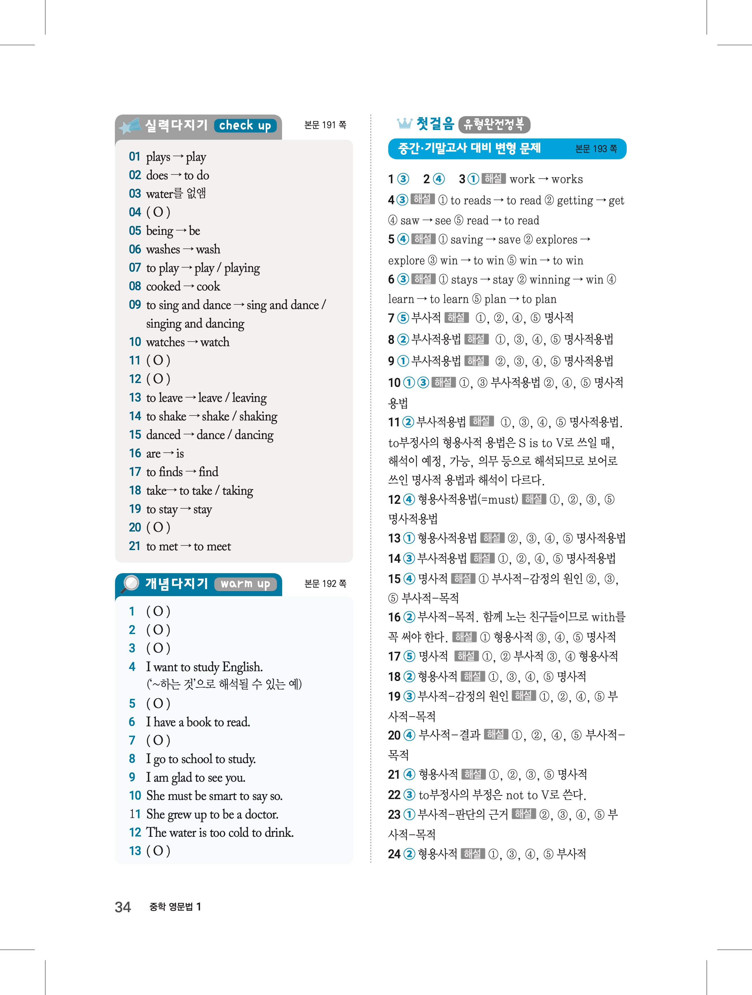 대치동 중학영문법 3600제 1권 답지 해설 바로보는 사진답지 빠른답지 모바일최적화
