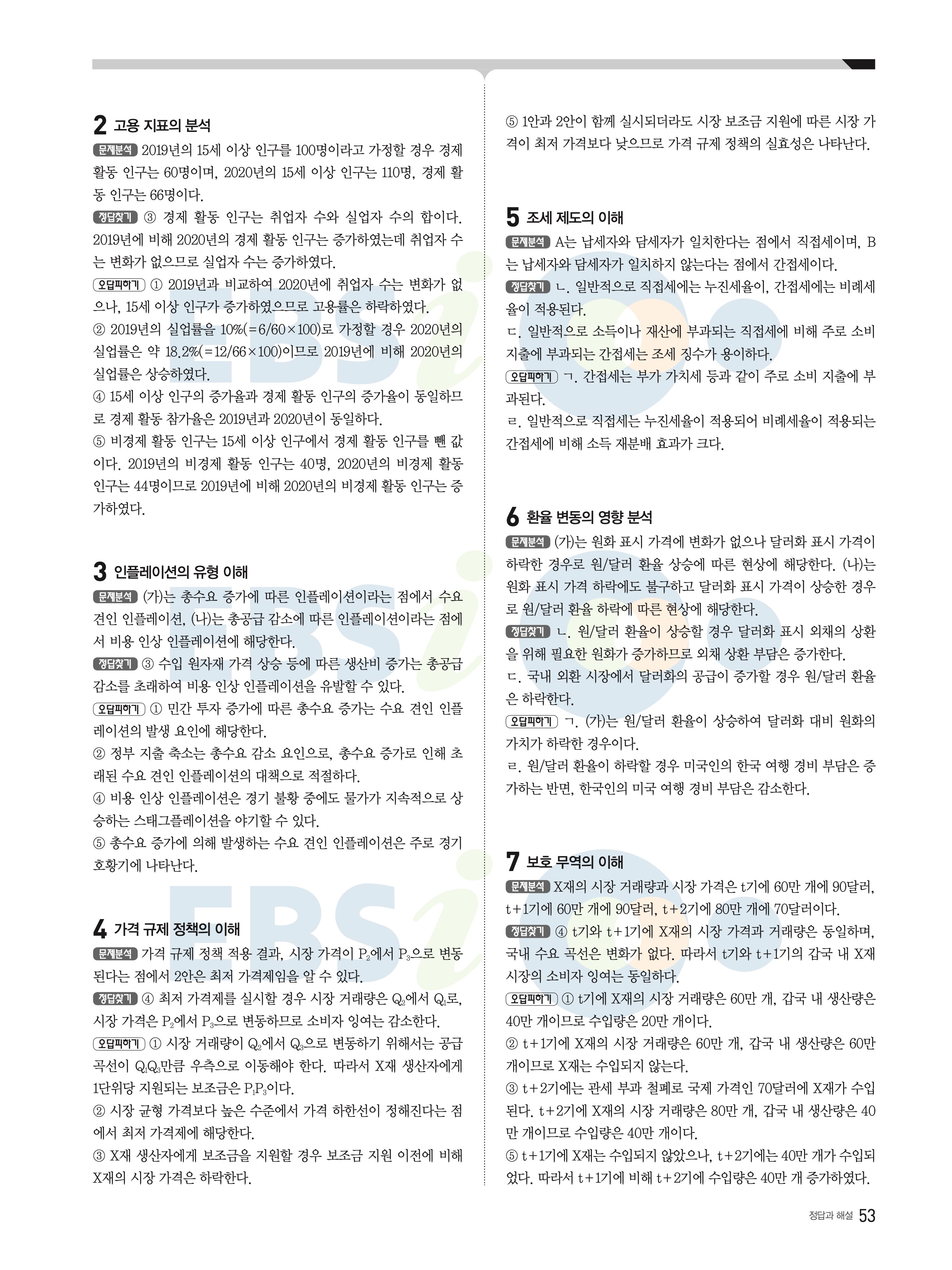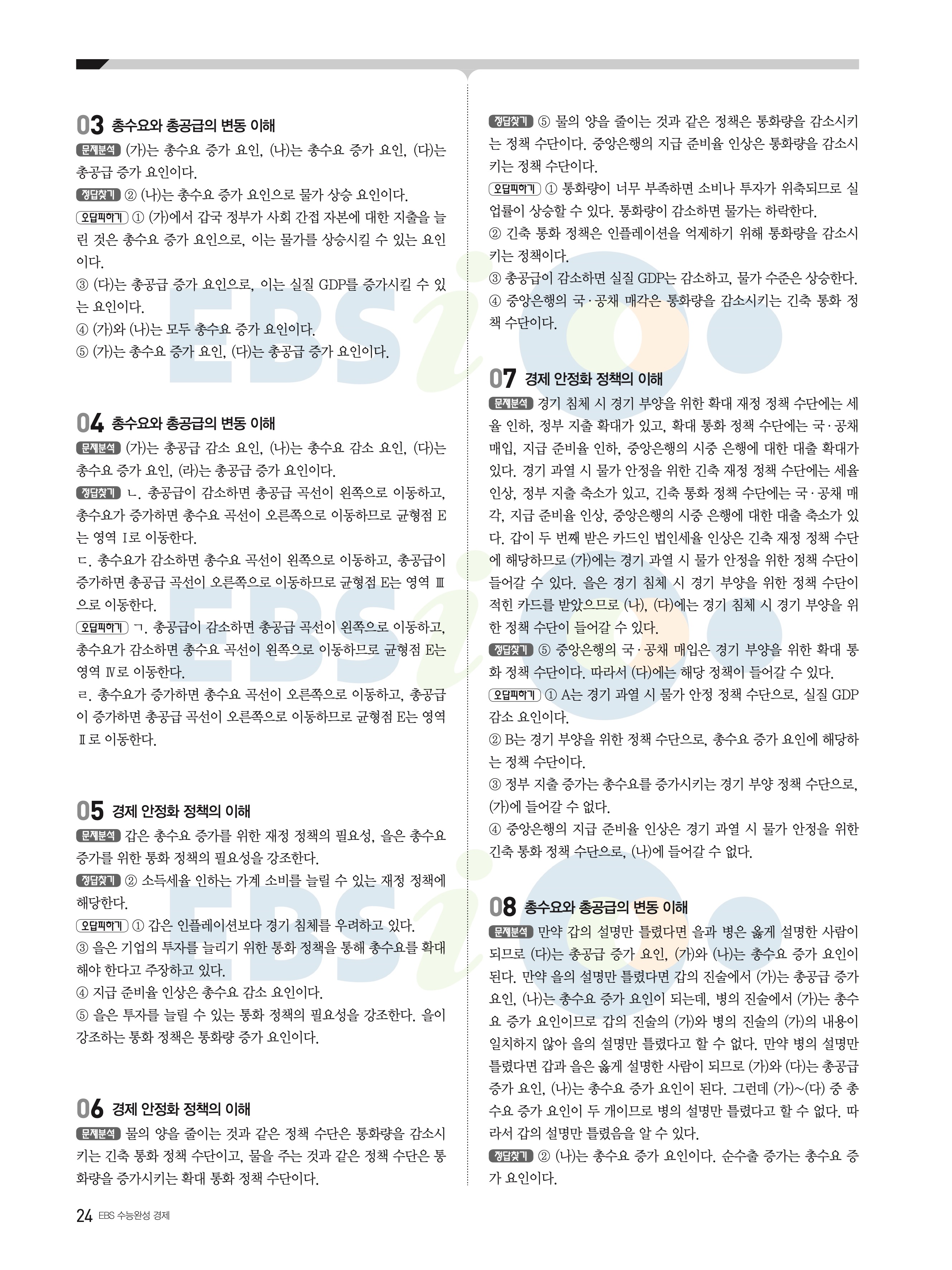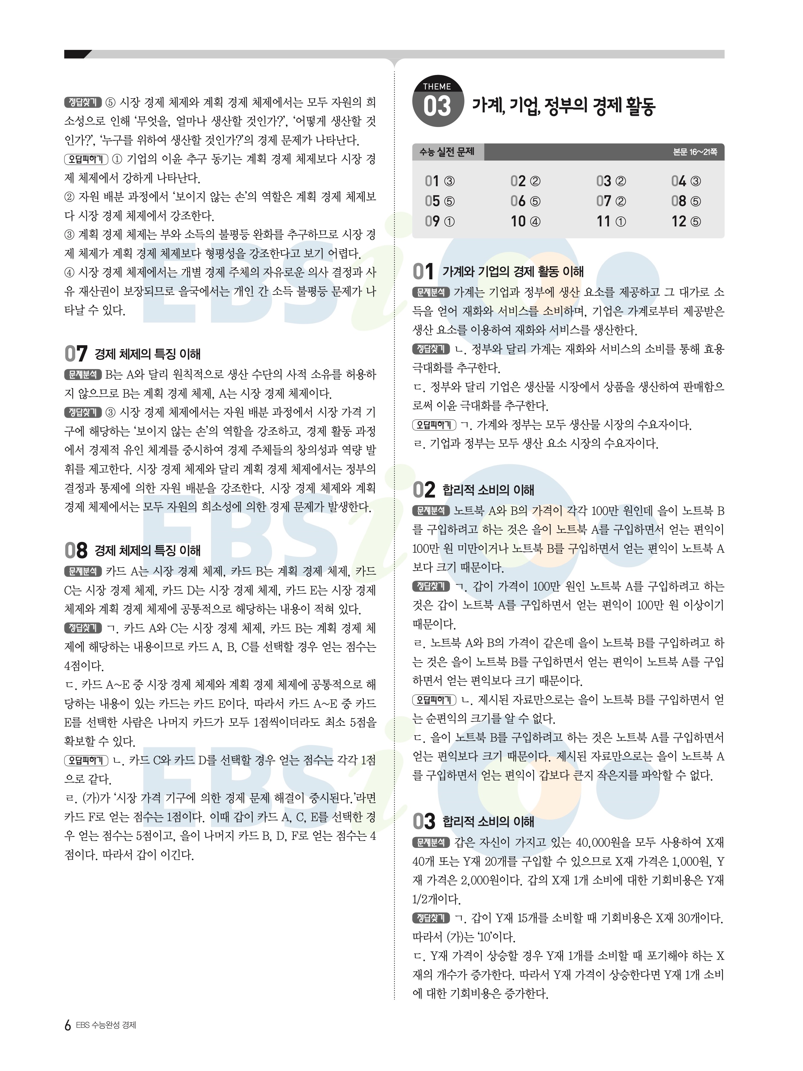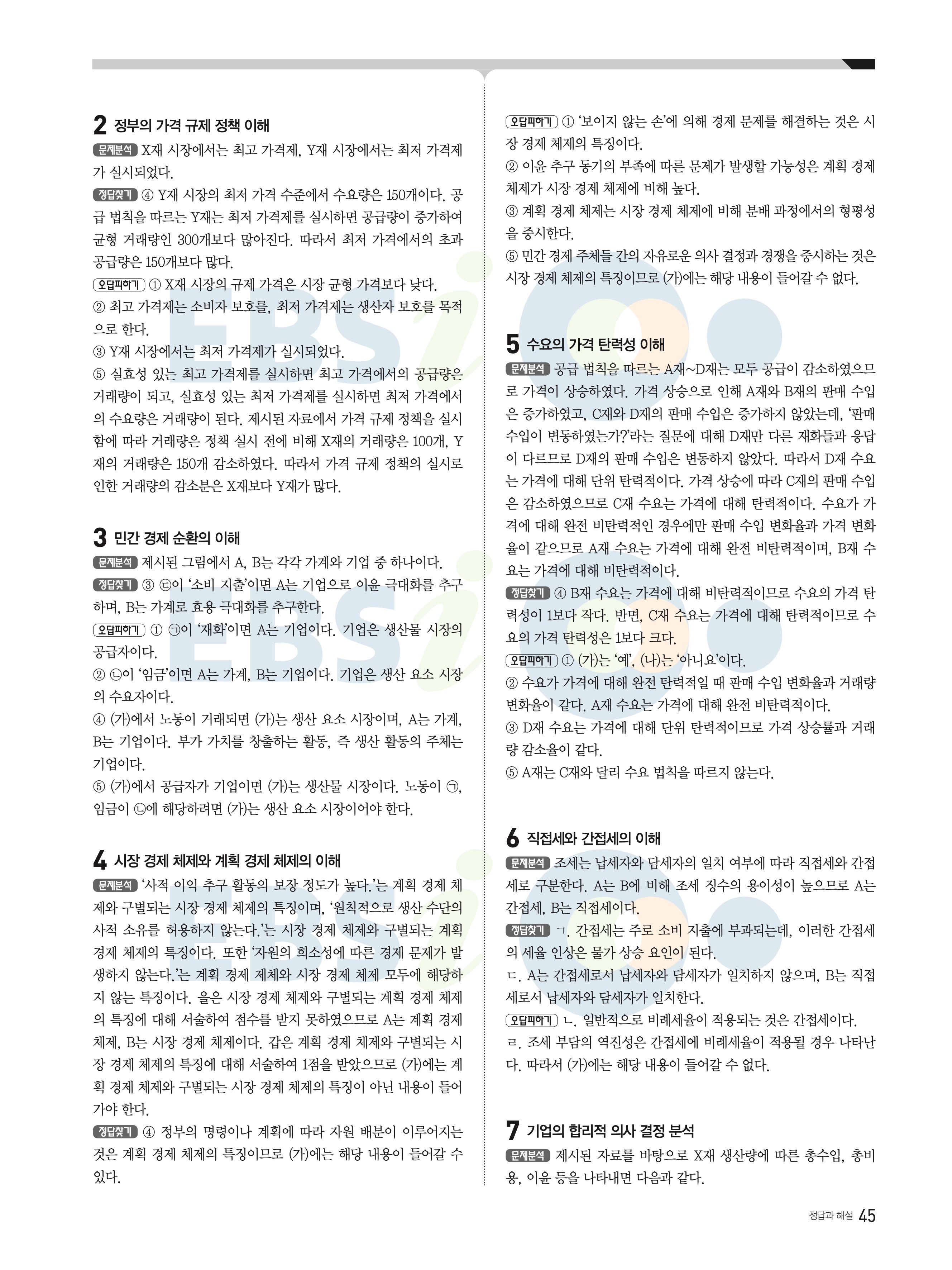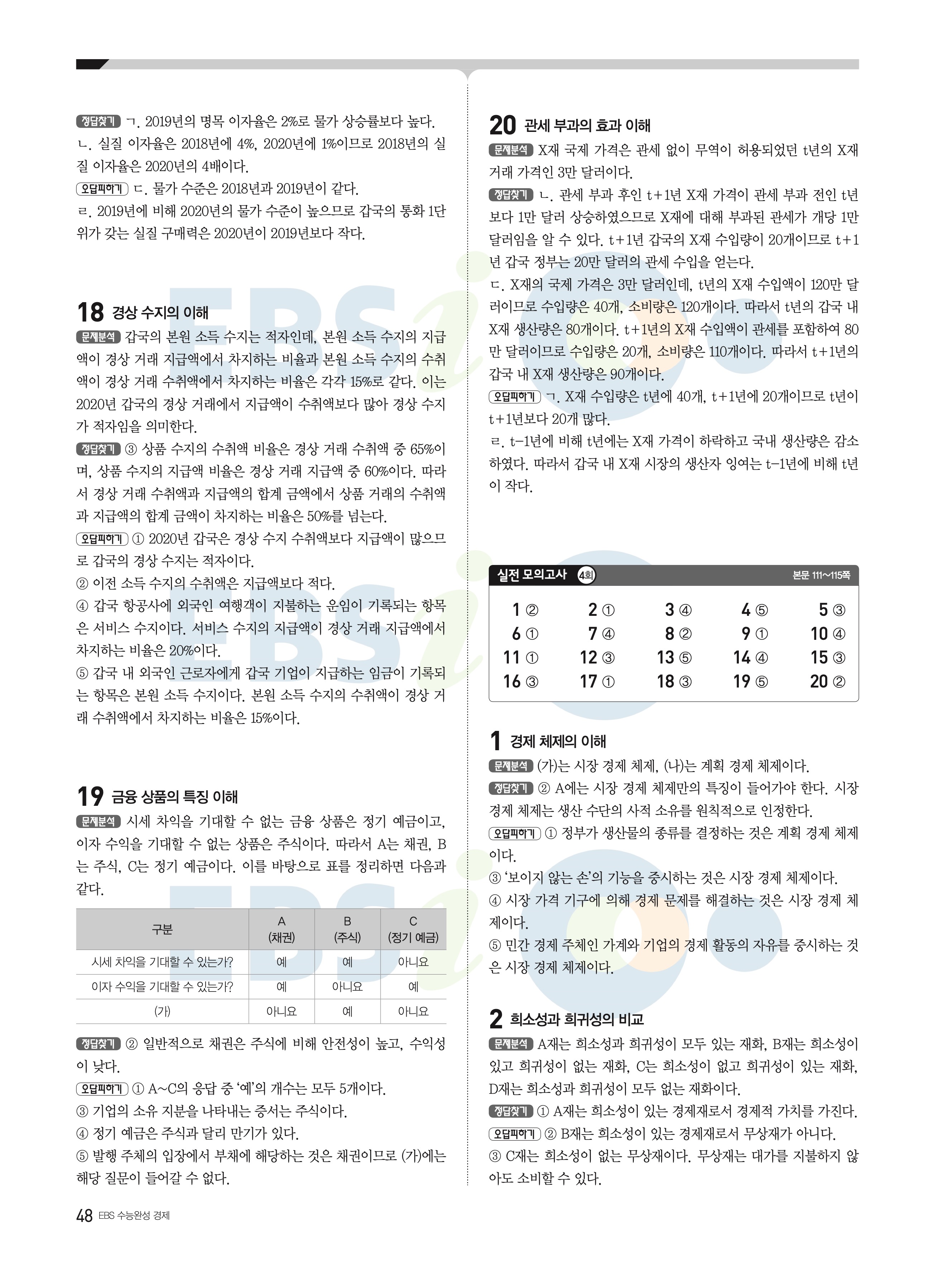 2022 EBS 수능완성 사회탐구영역 경제 답지 해설 바로보는 사진답지 모바일최적화