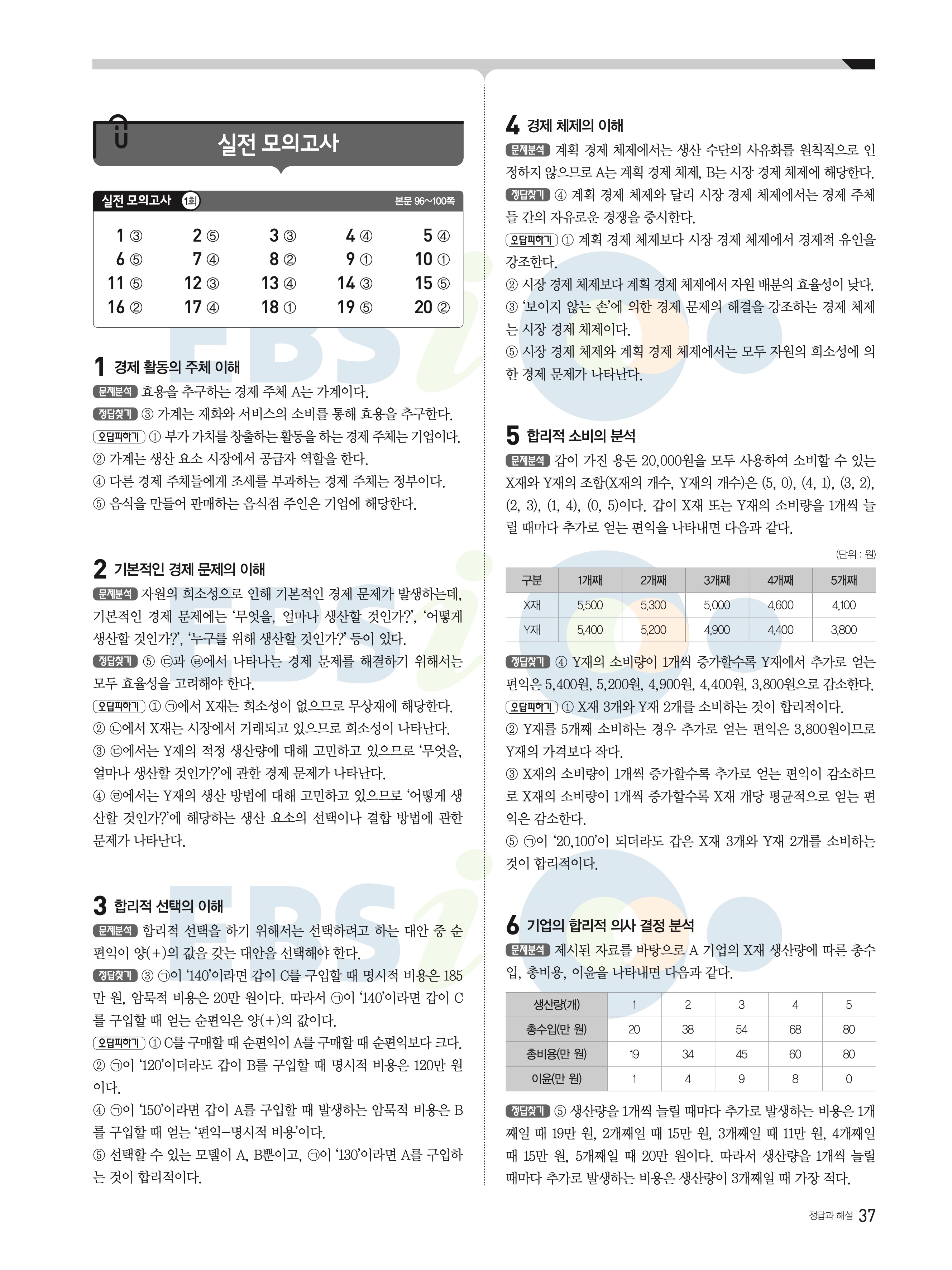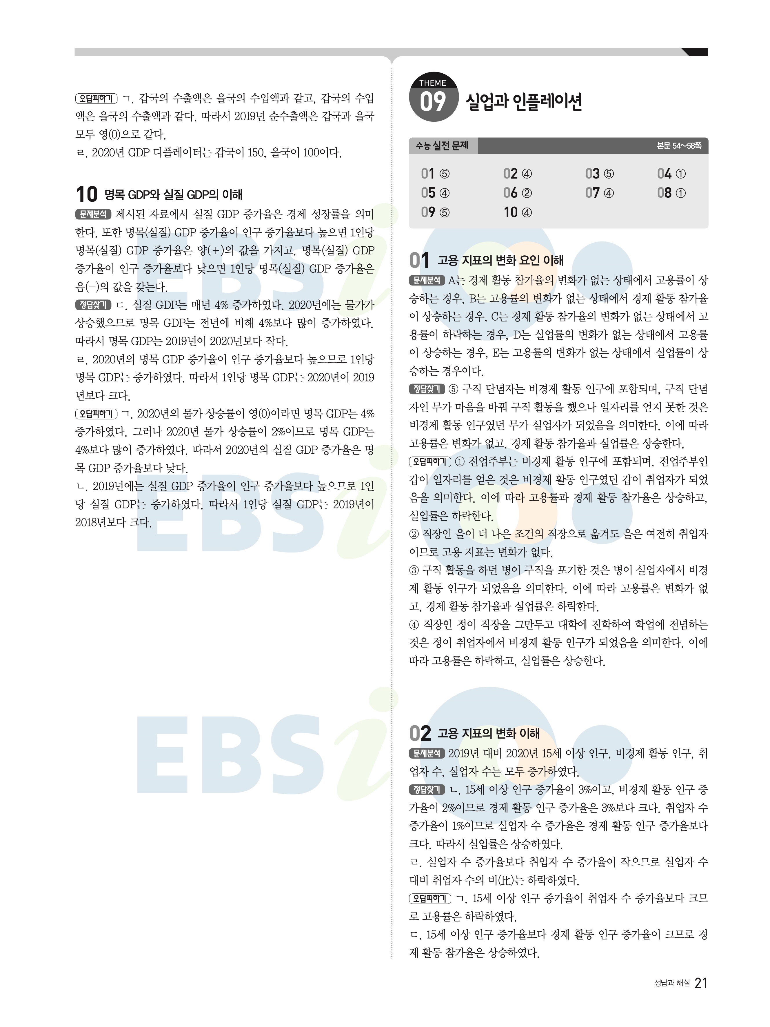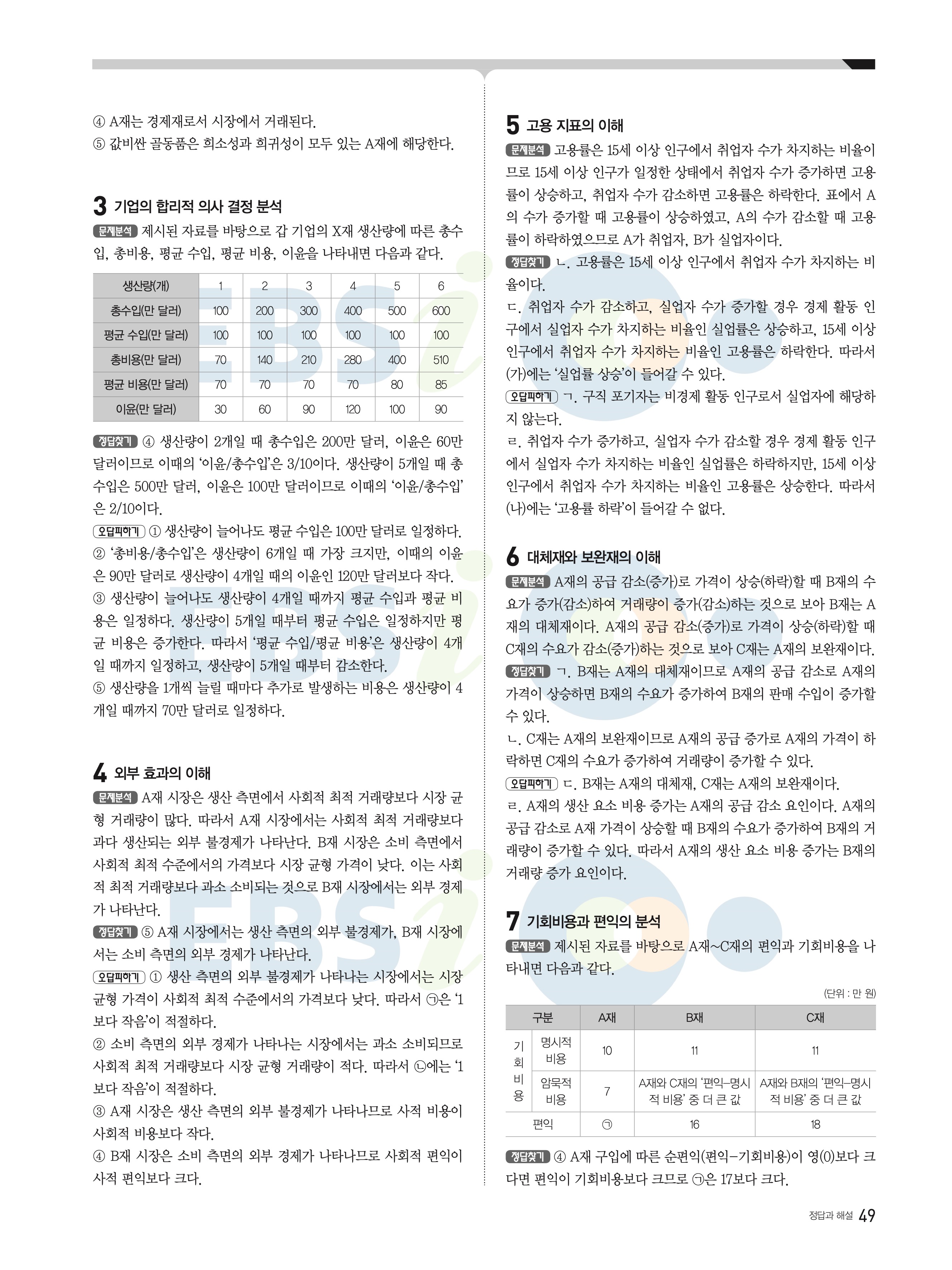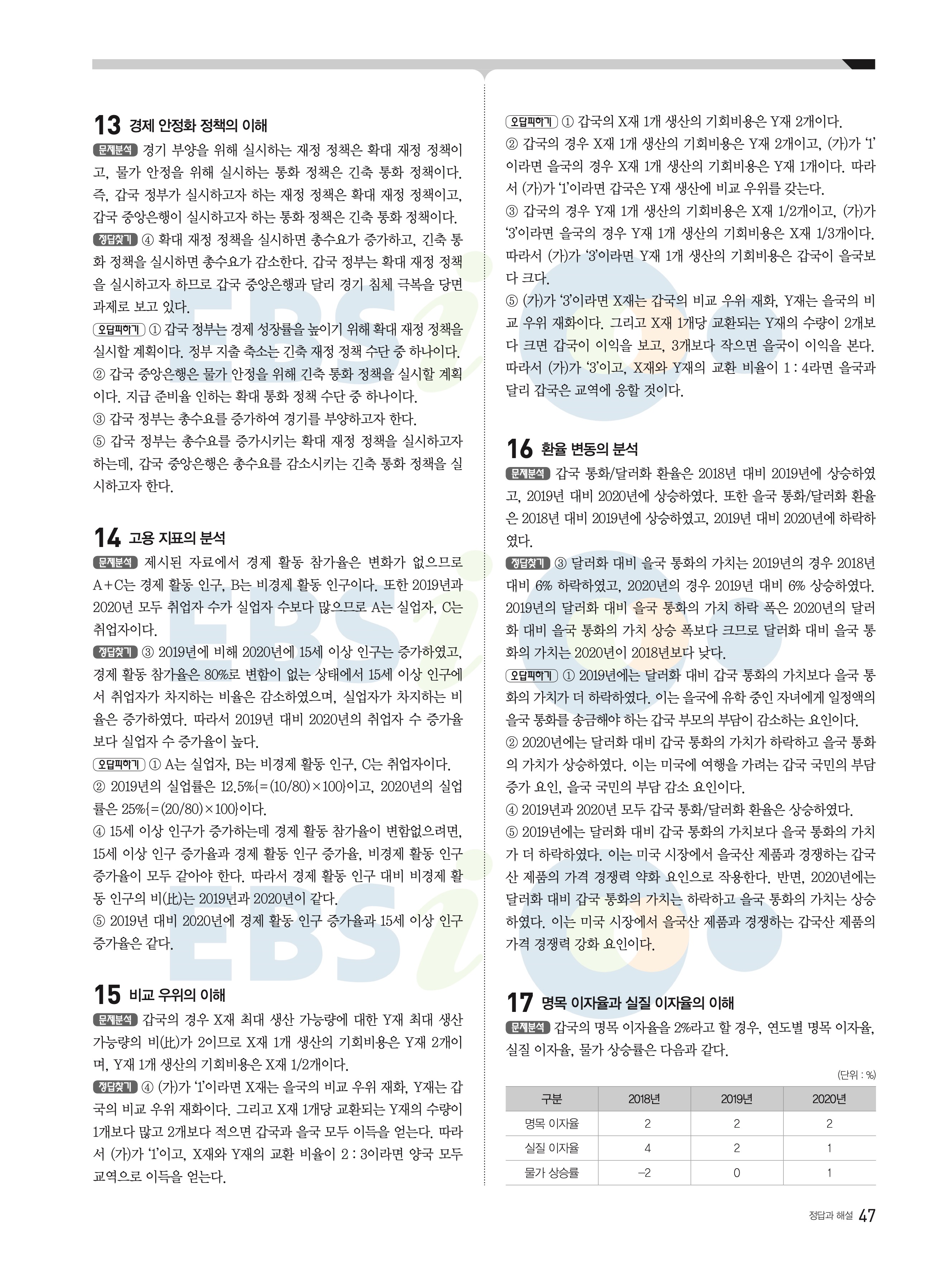 2022 EBS 수능완성 사회탐구영역 경제 답지 해설 바로보는 사진답지 모바일최적화