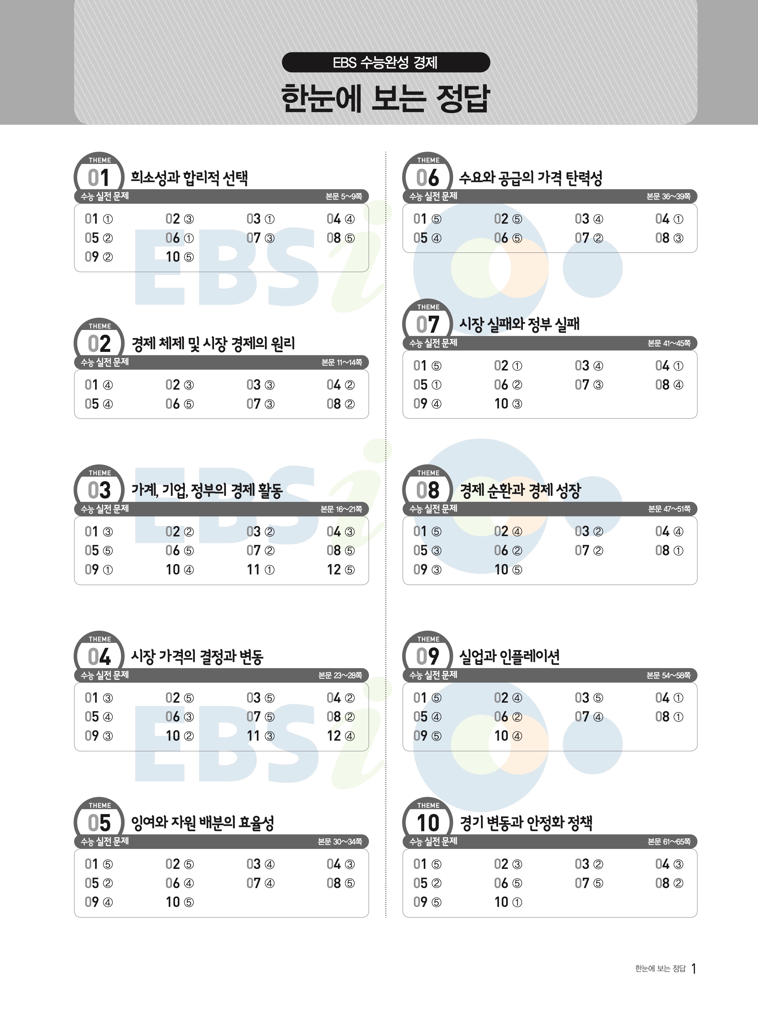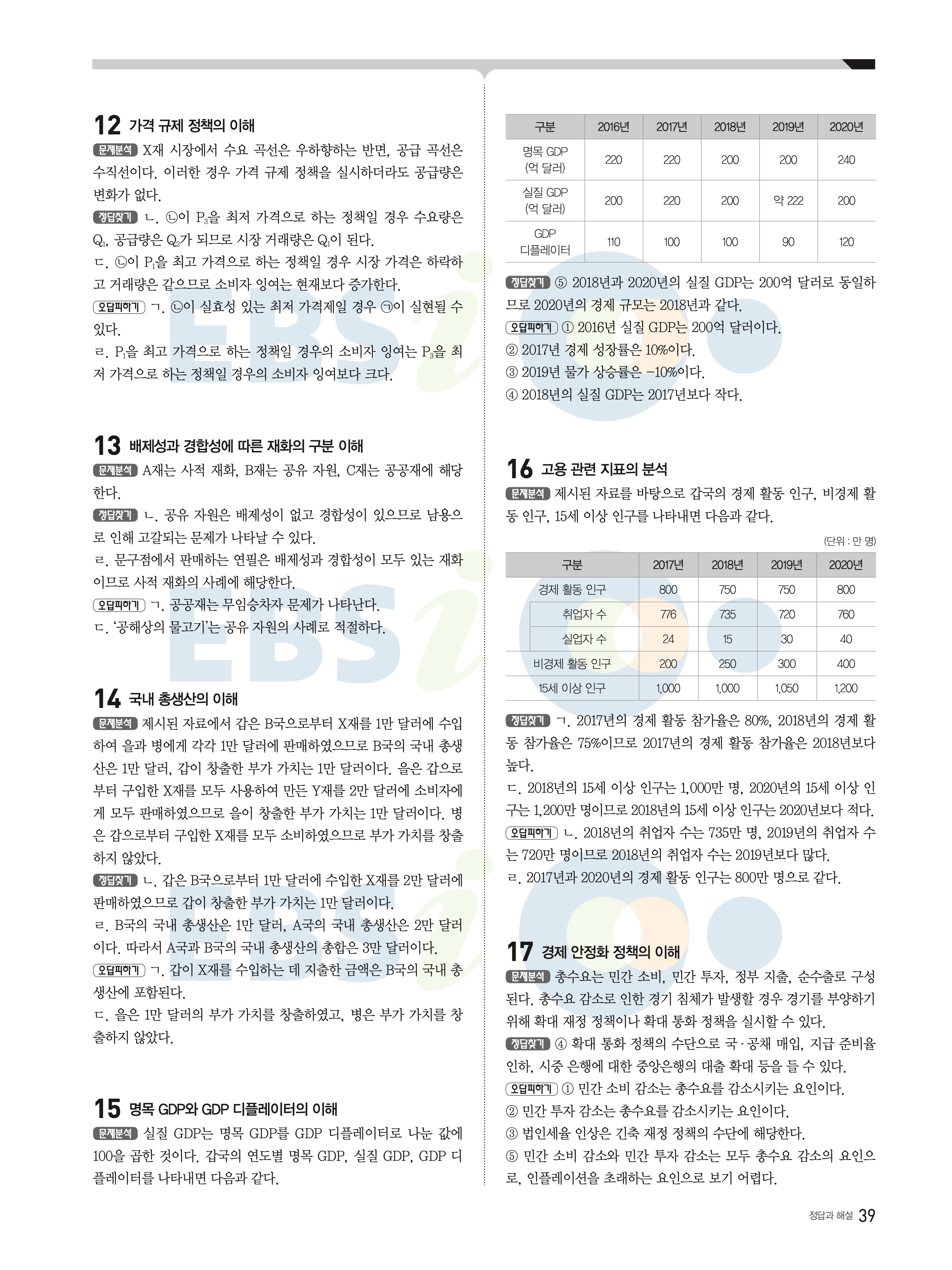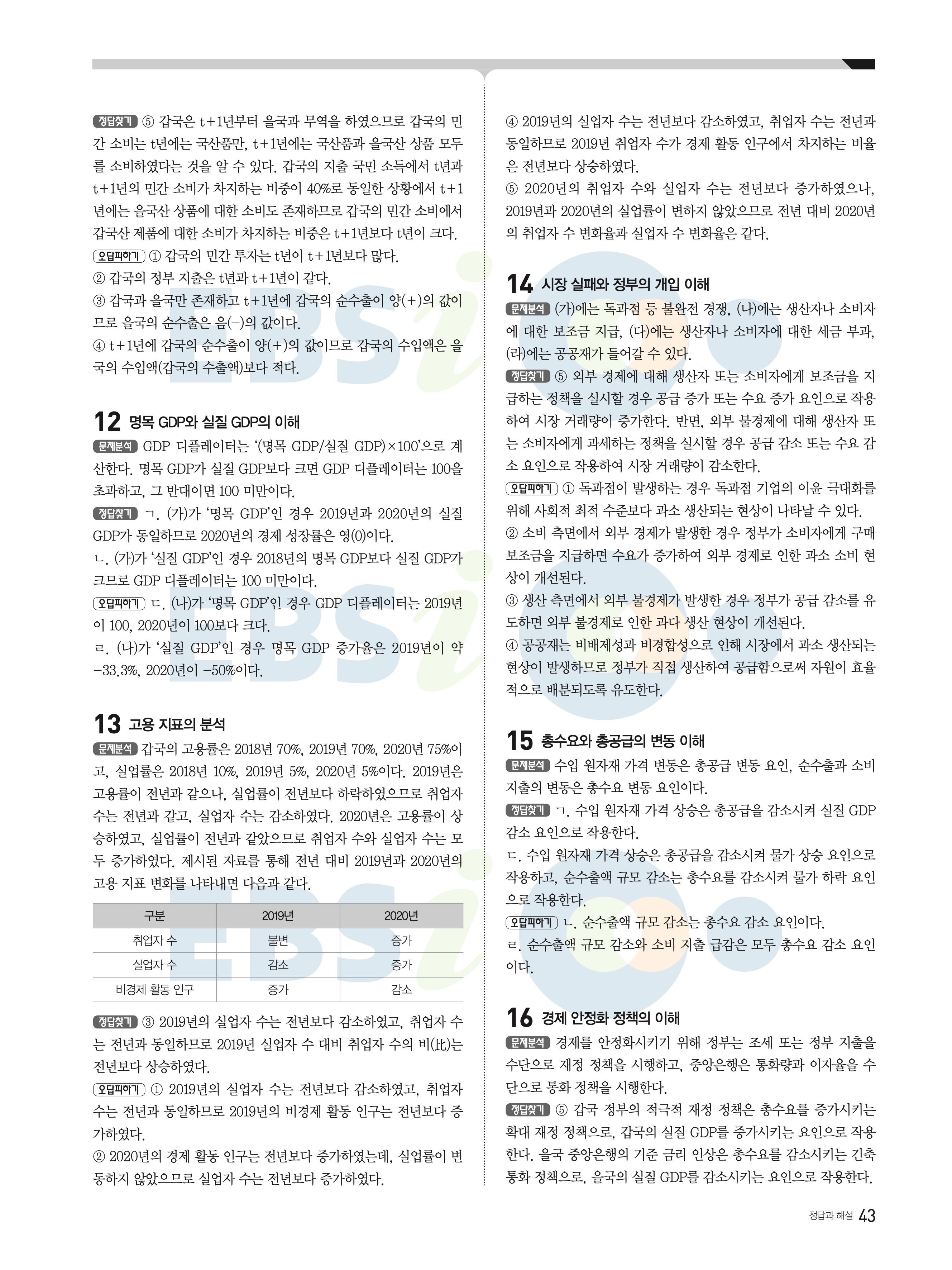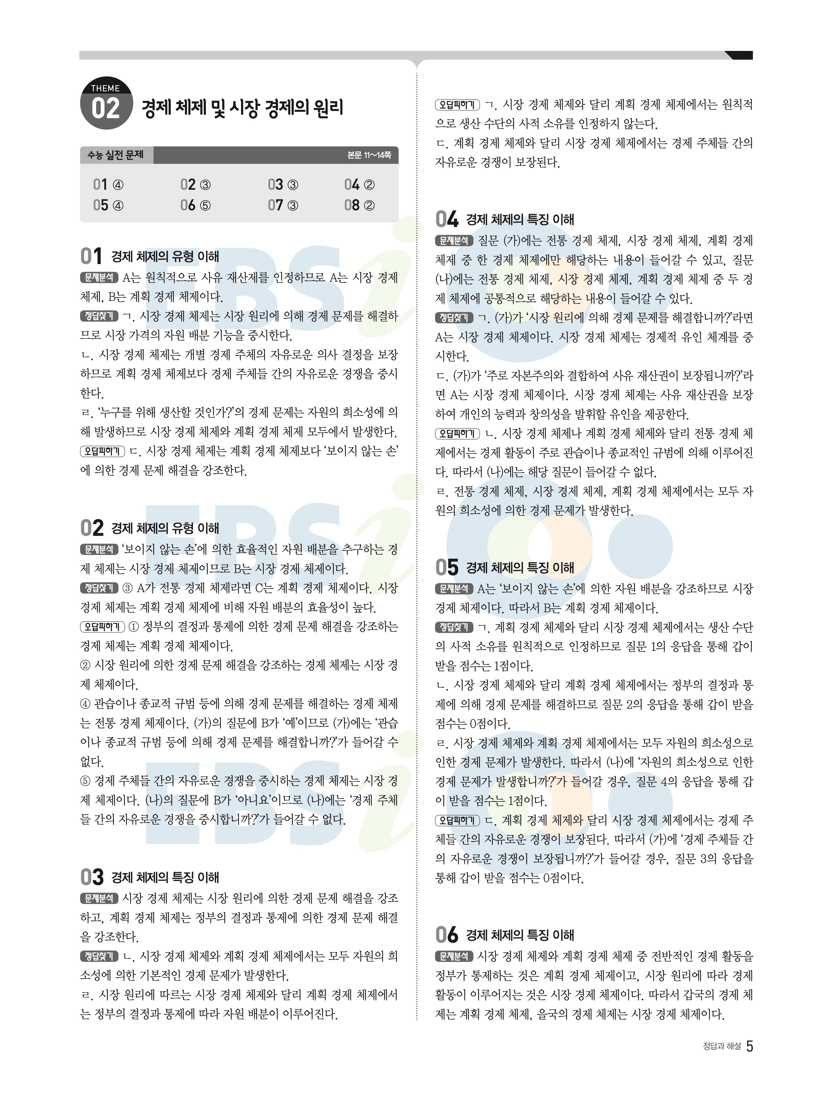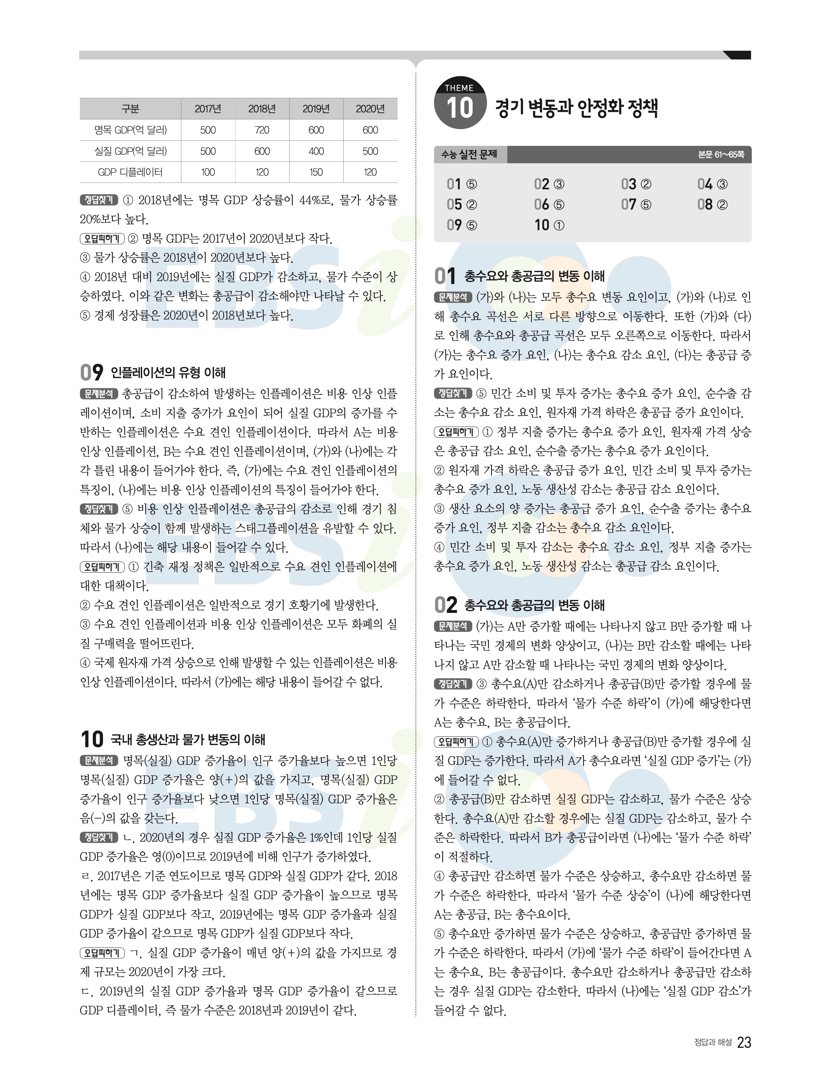2022 EBS 수능완성 사회탐구영역 경제 답지 해설 바로보는 사진답지 모바일최적화