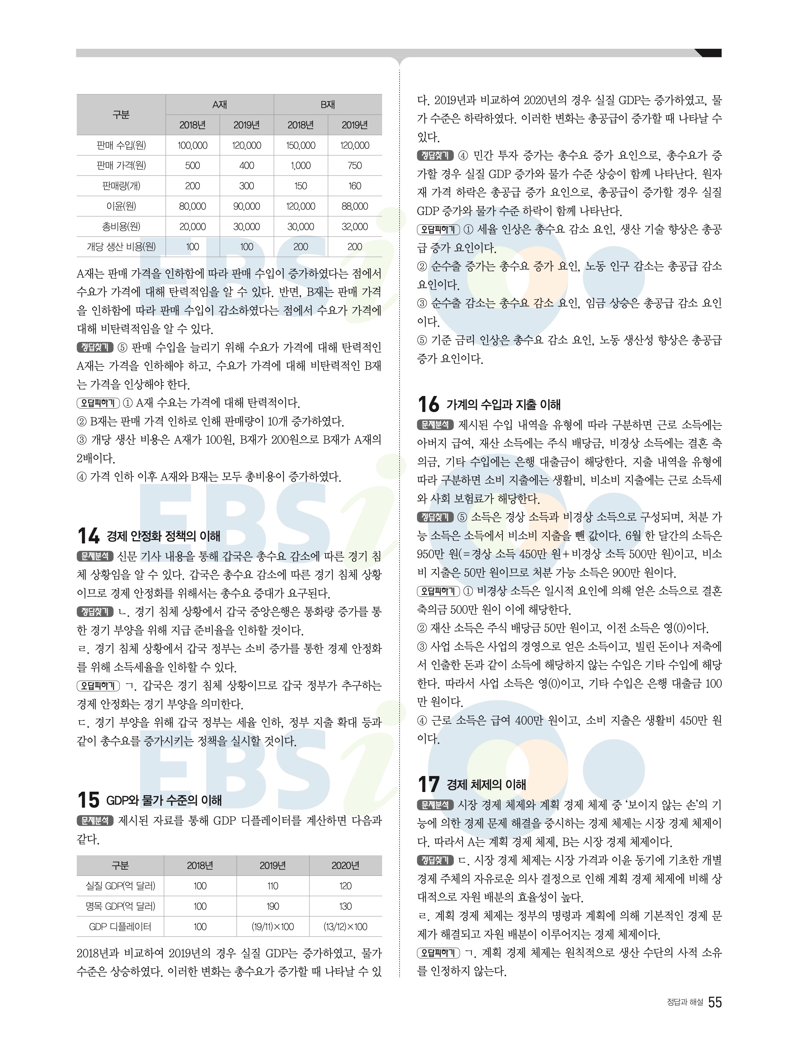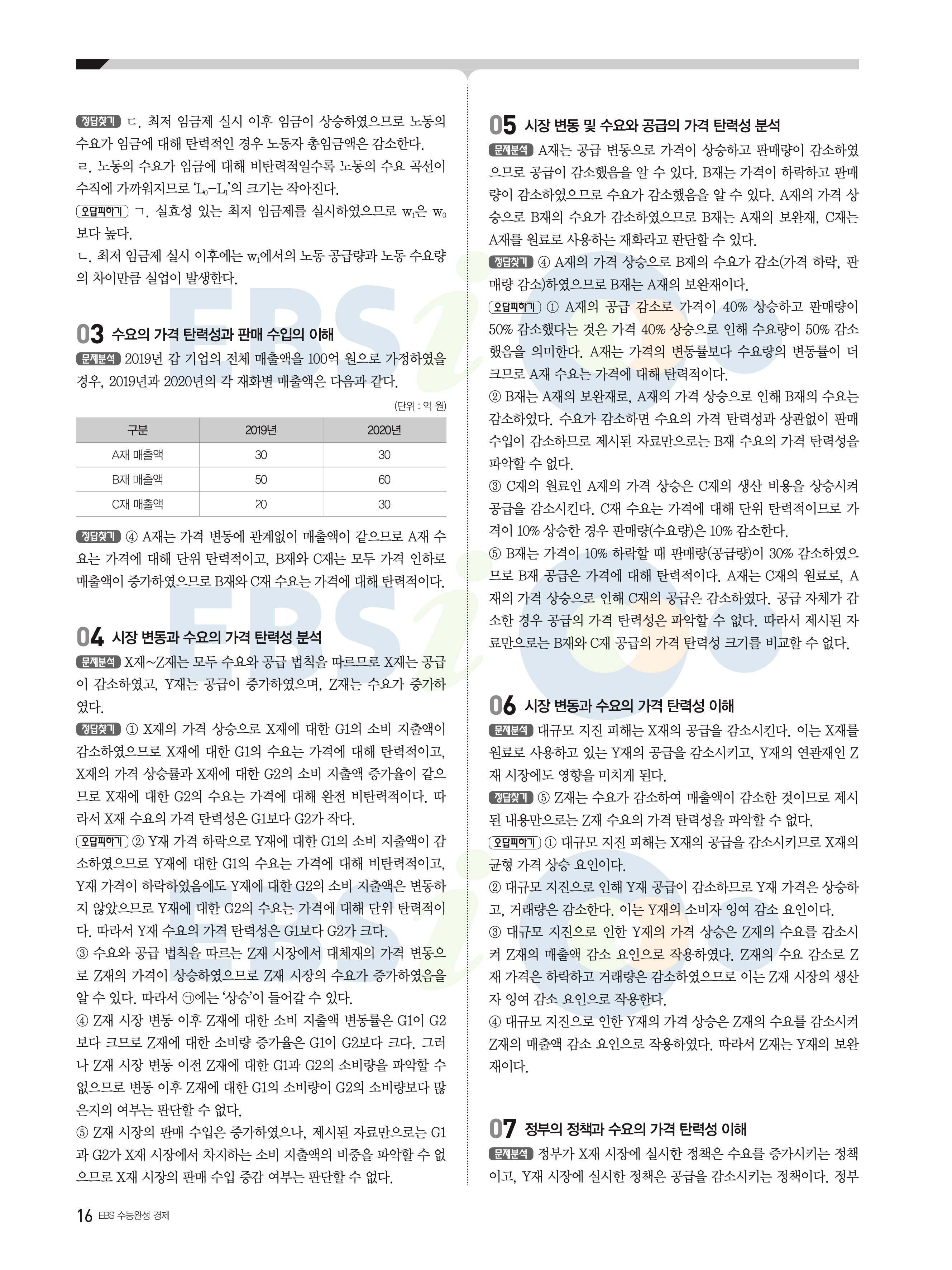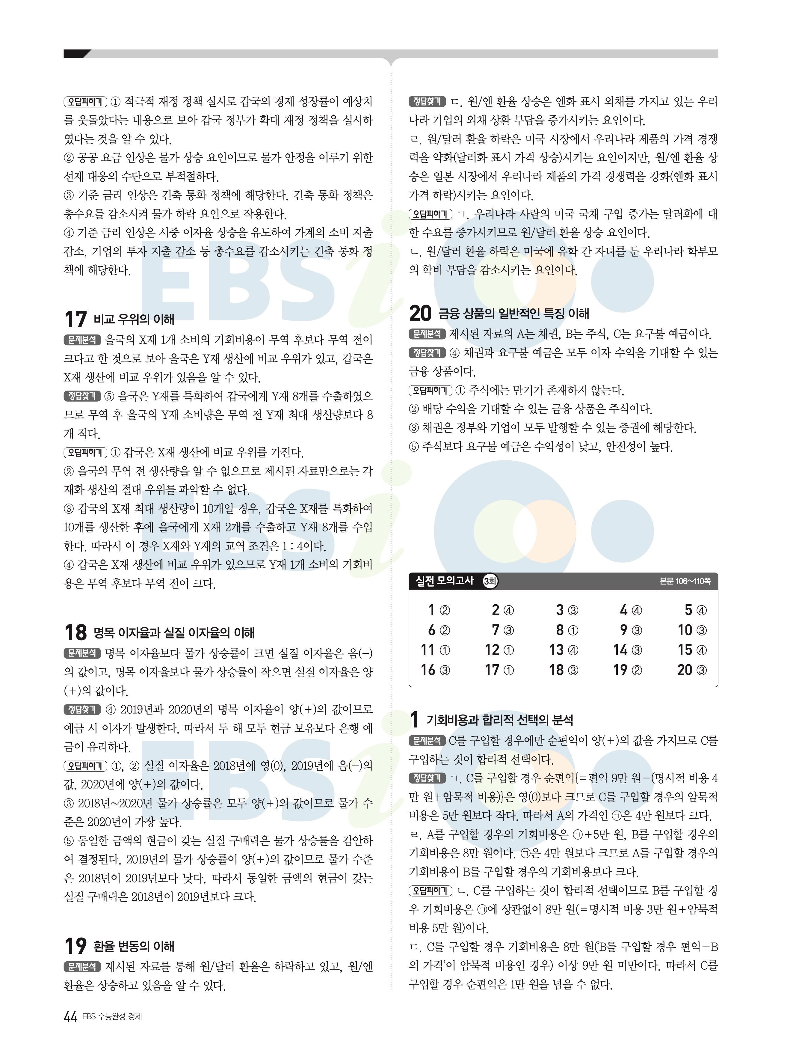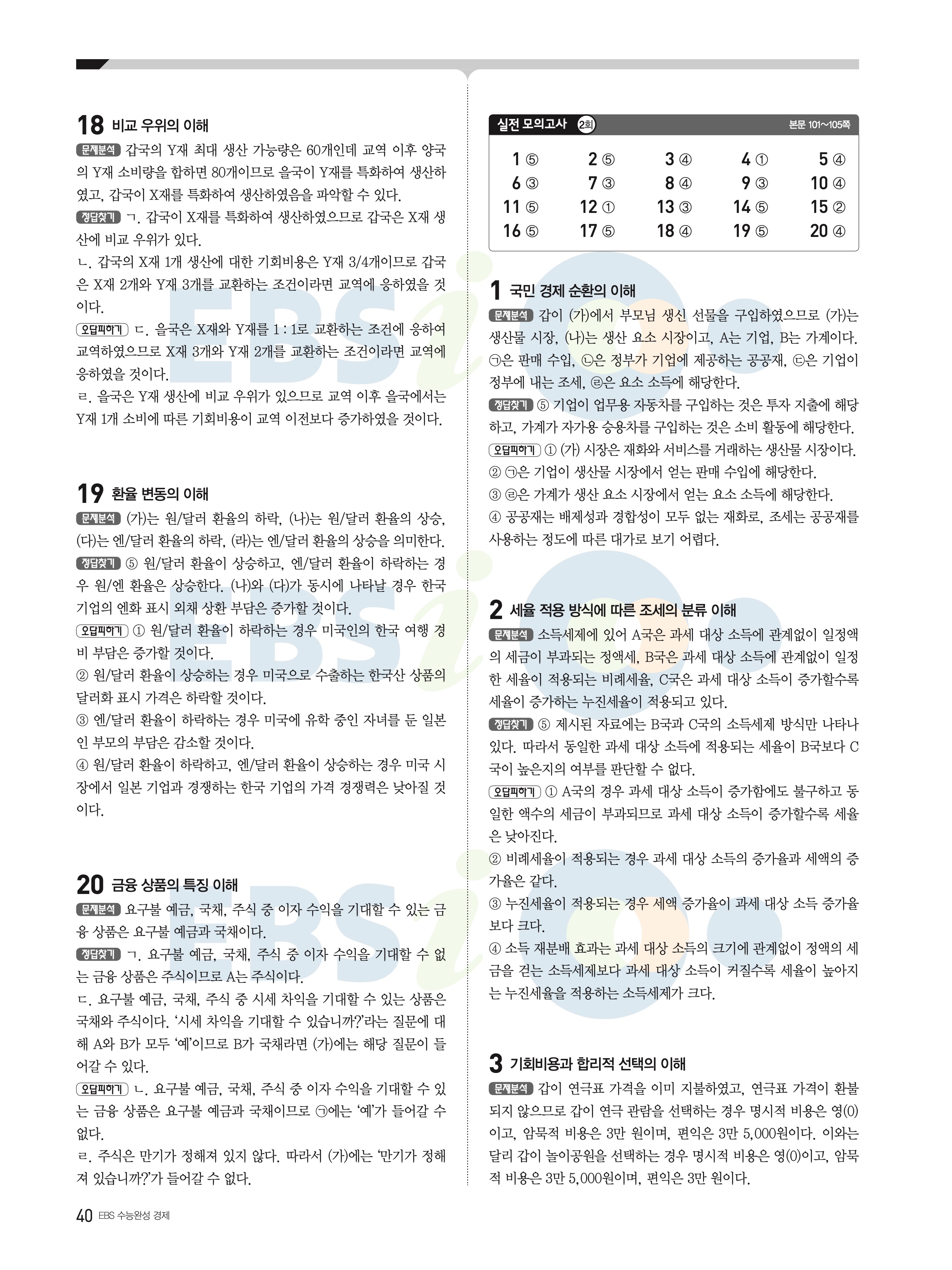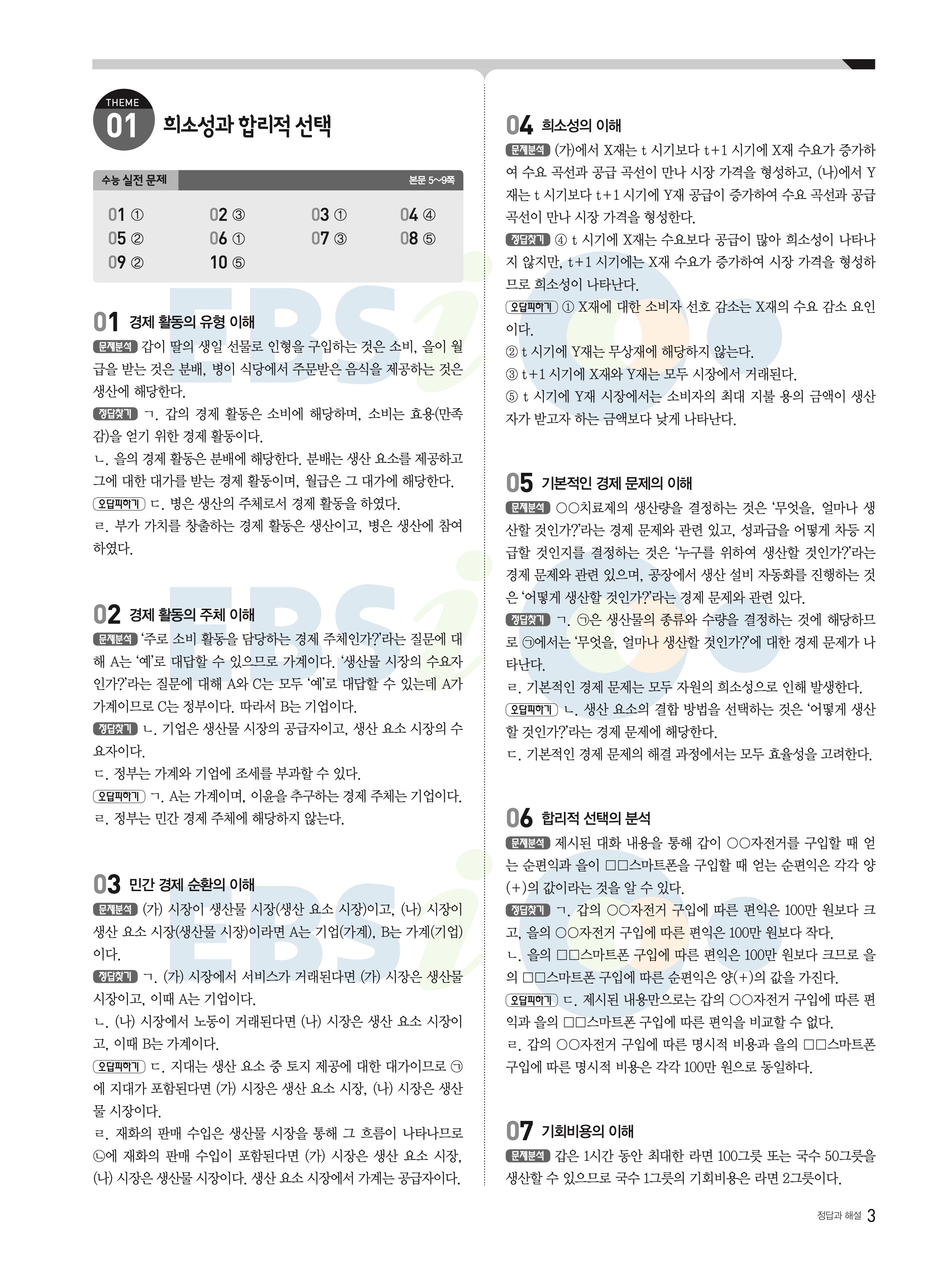 2022 EBS 수능완성 사회탐구영역 경제 답지 해설 바로보는 사진답지 모바일최적화