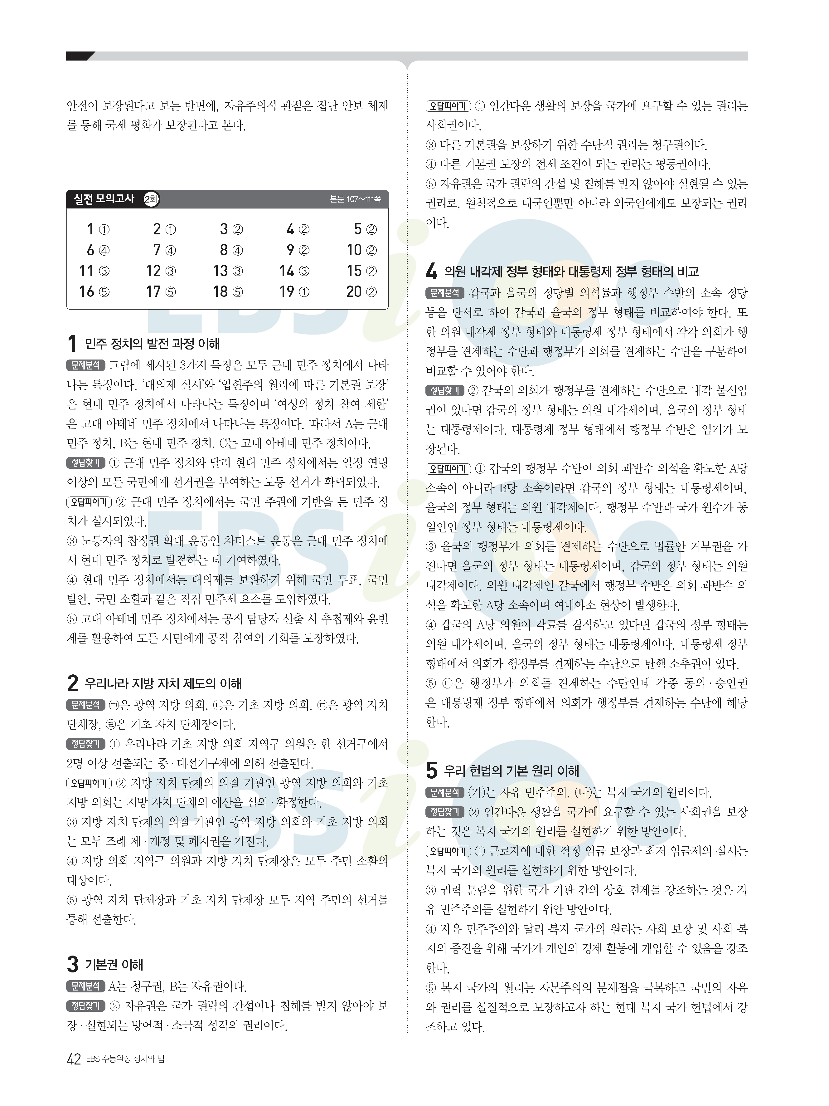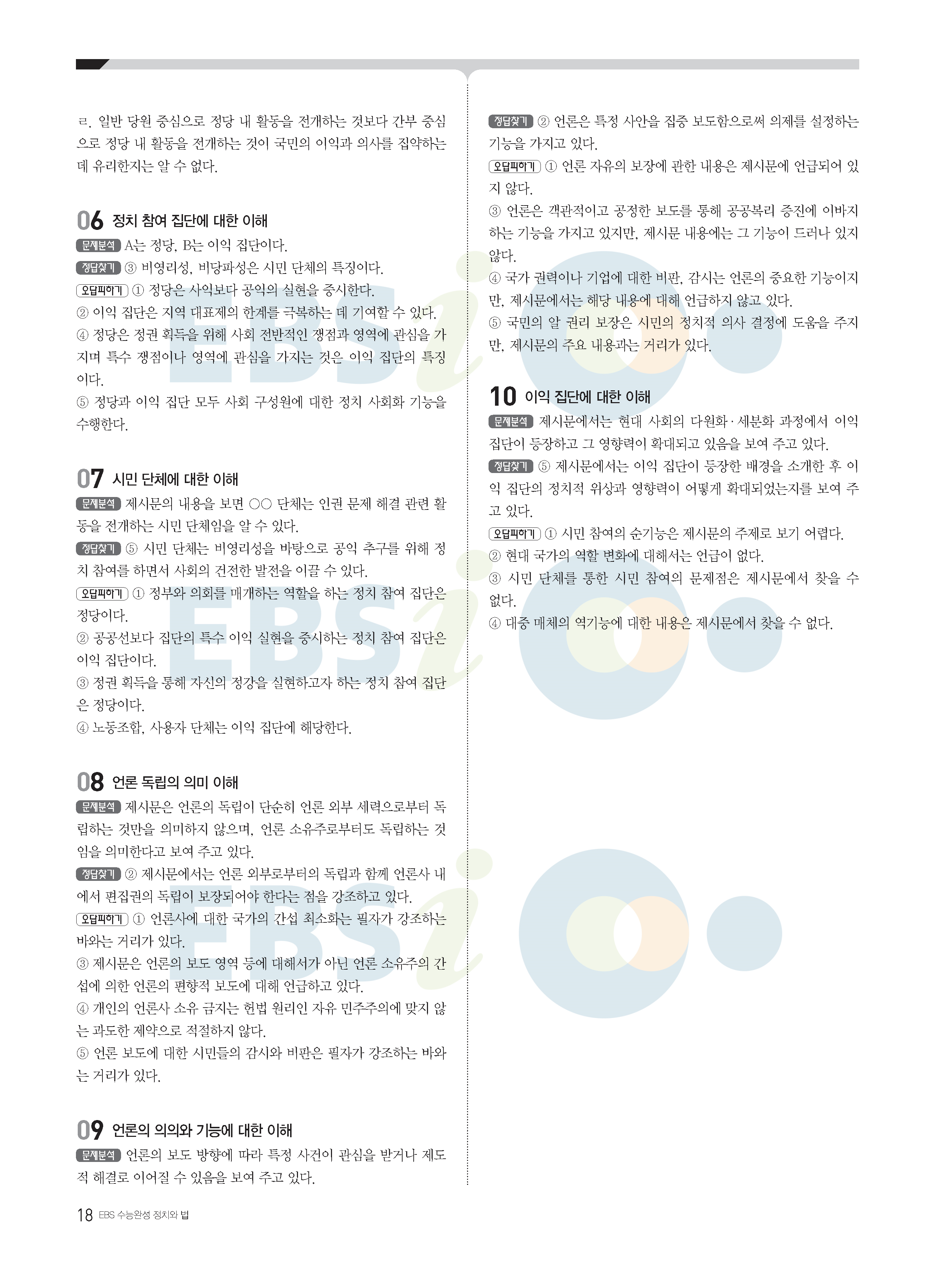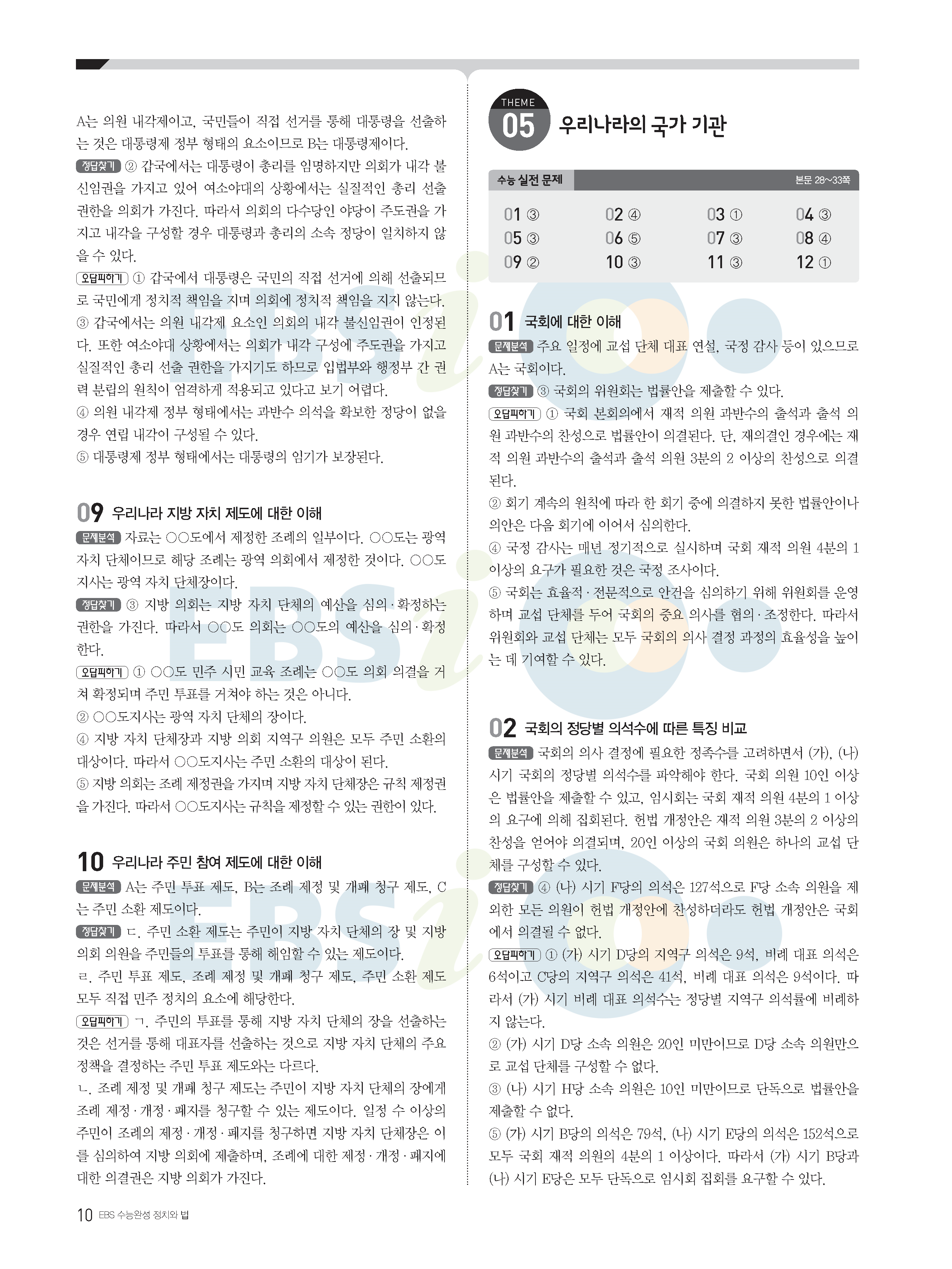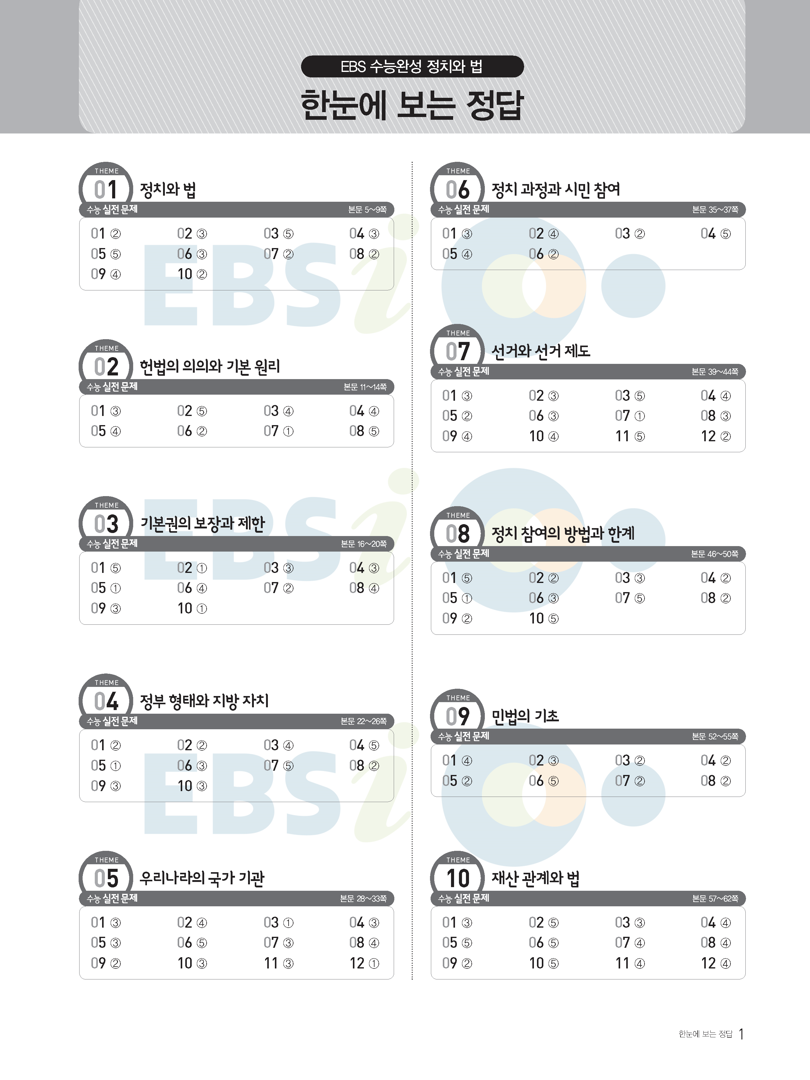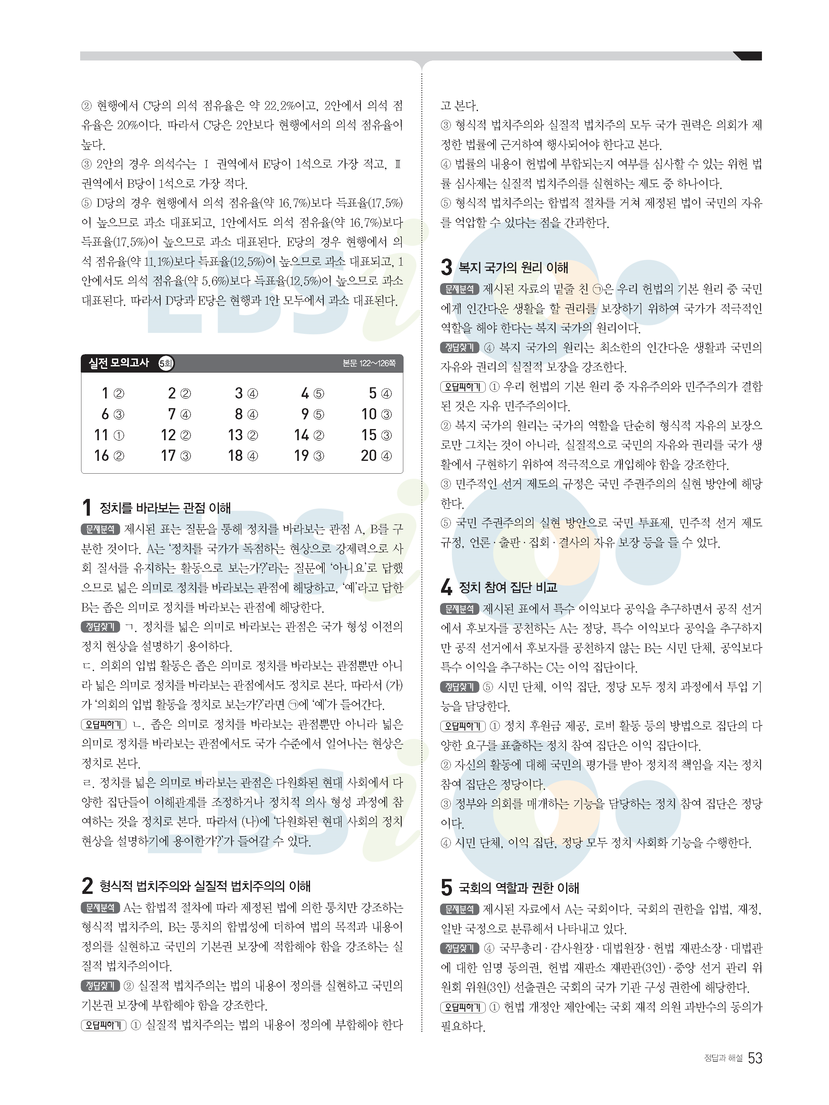2022 EBS 수능완성 사회탐구영역 정치와법 답지 해설 바로보는 사진답지 모바일최적화