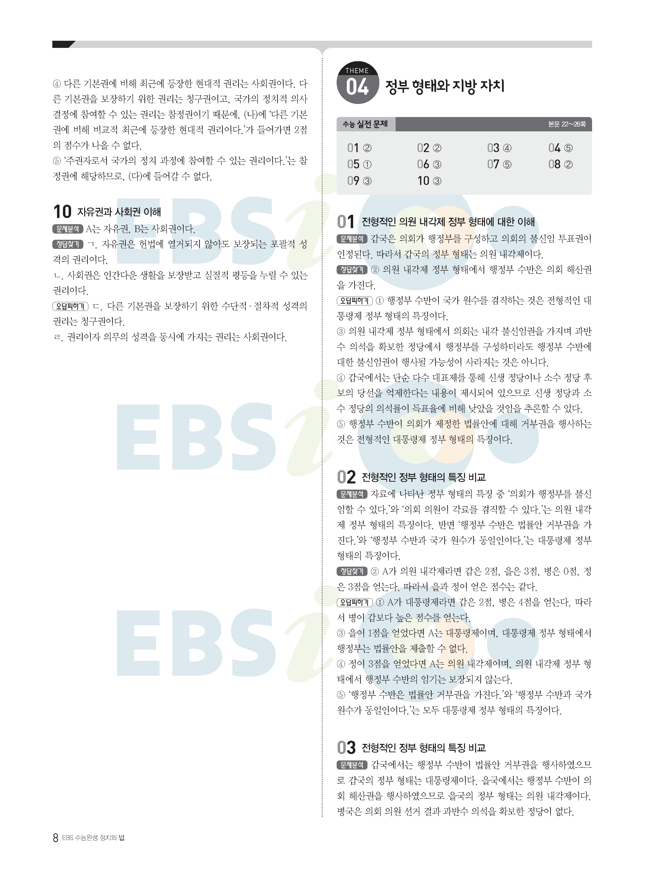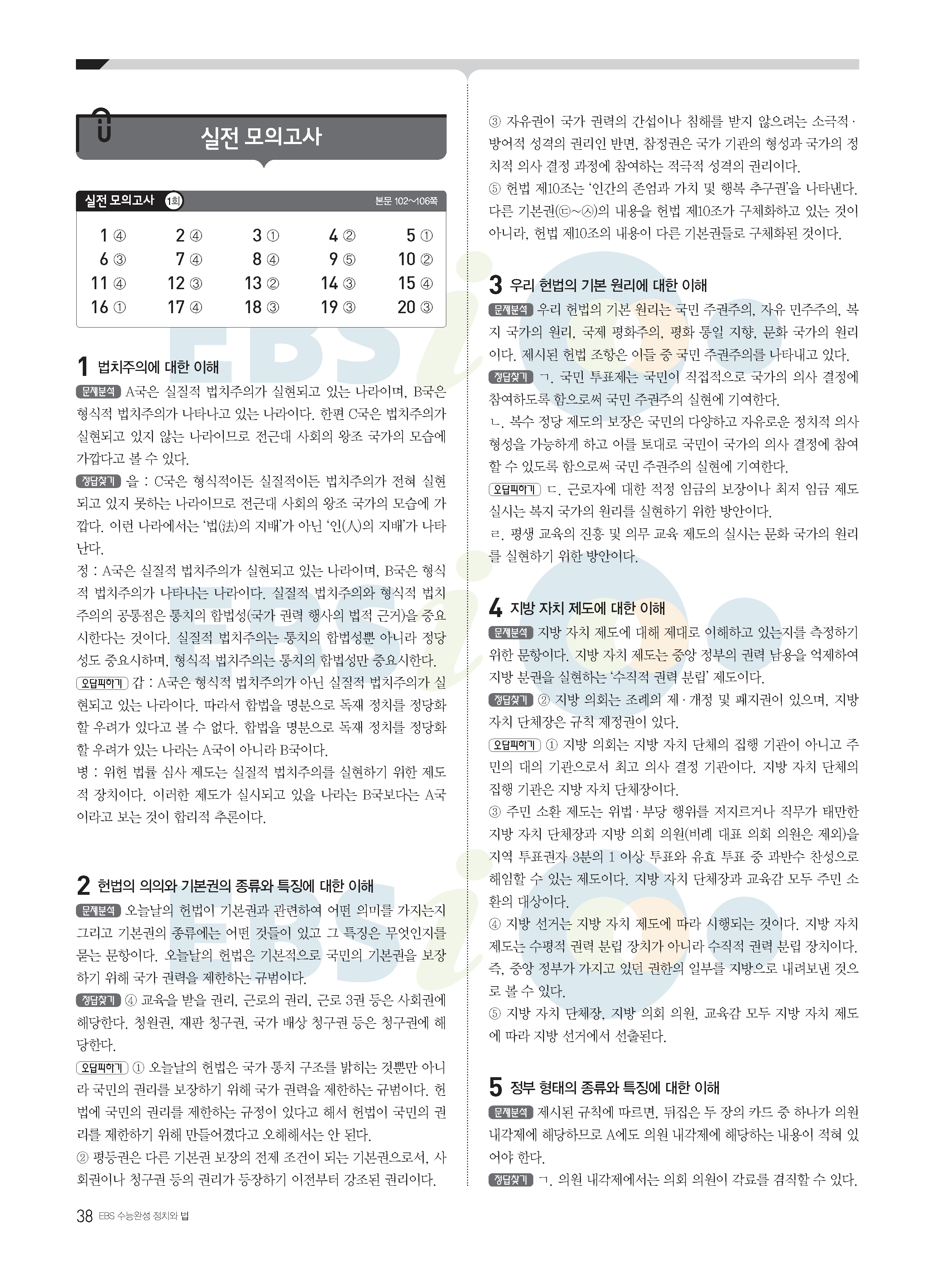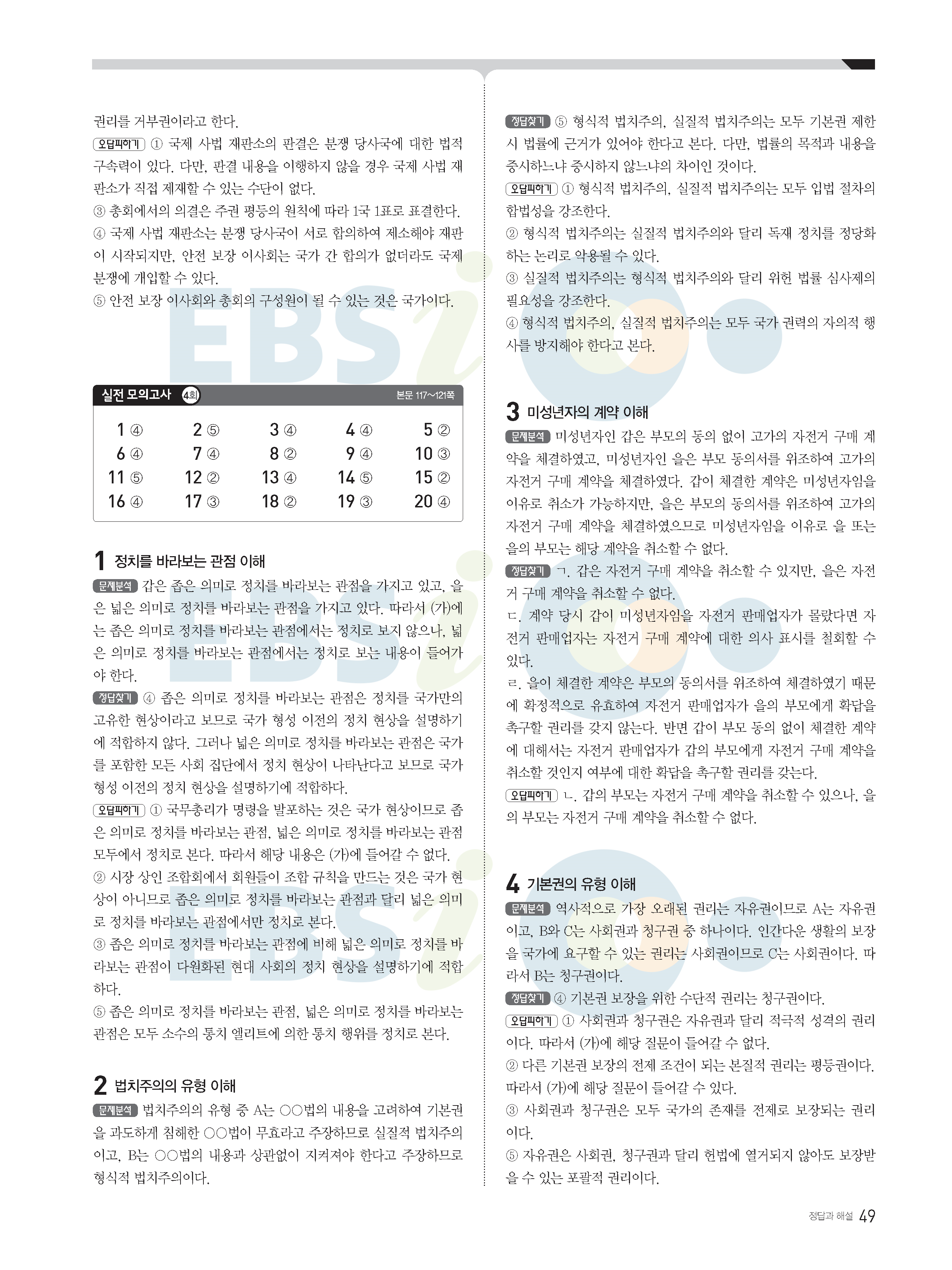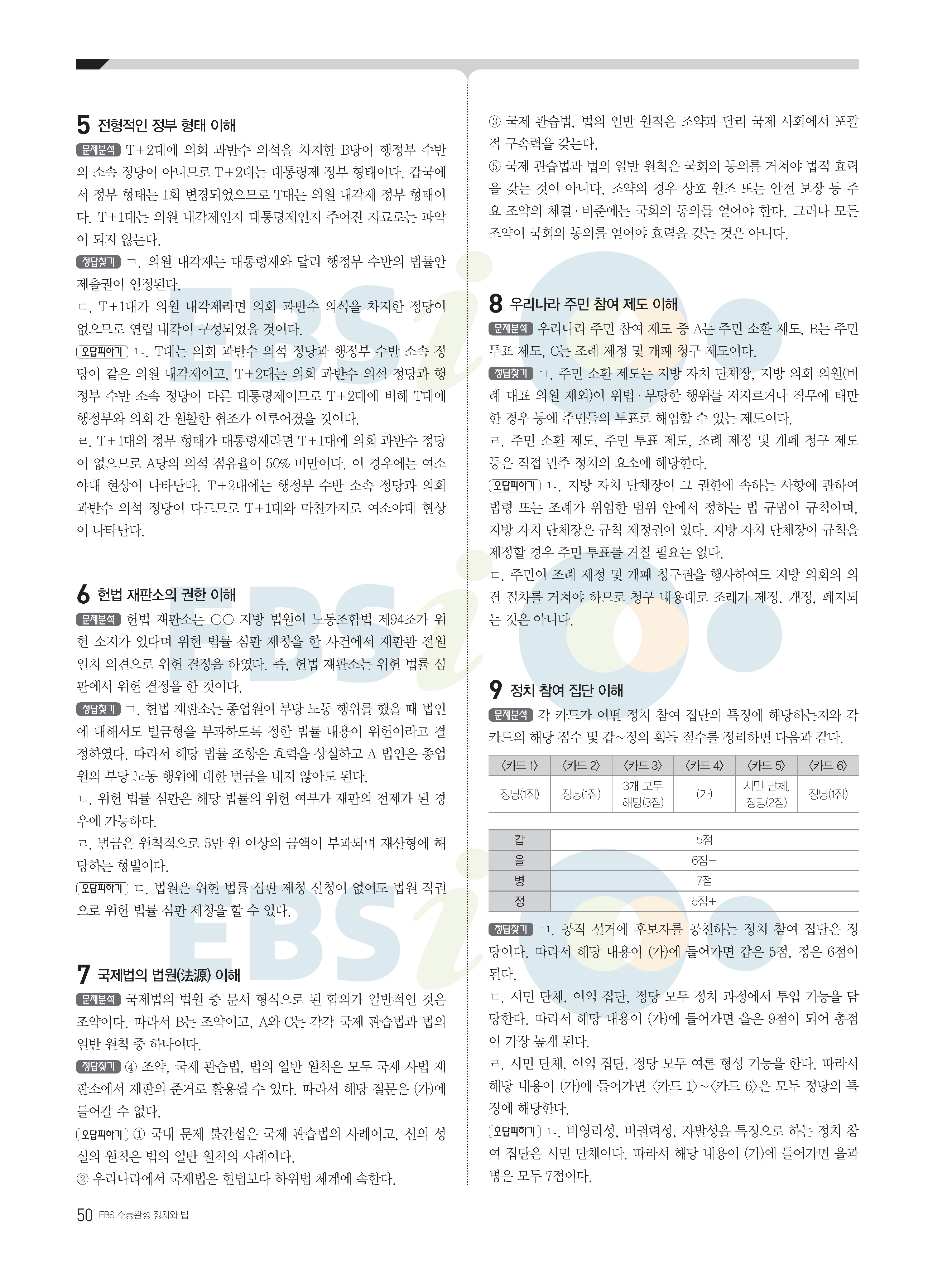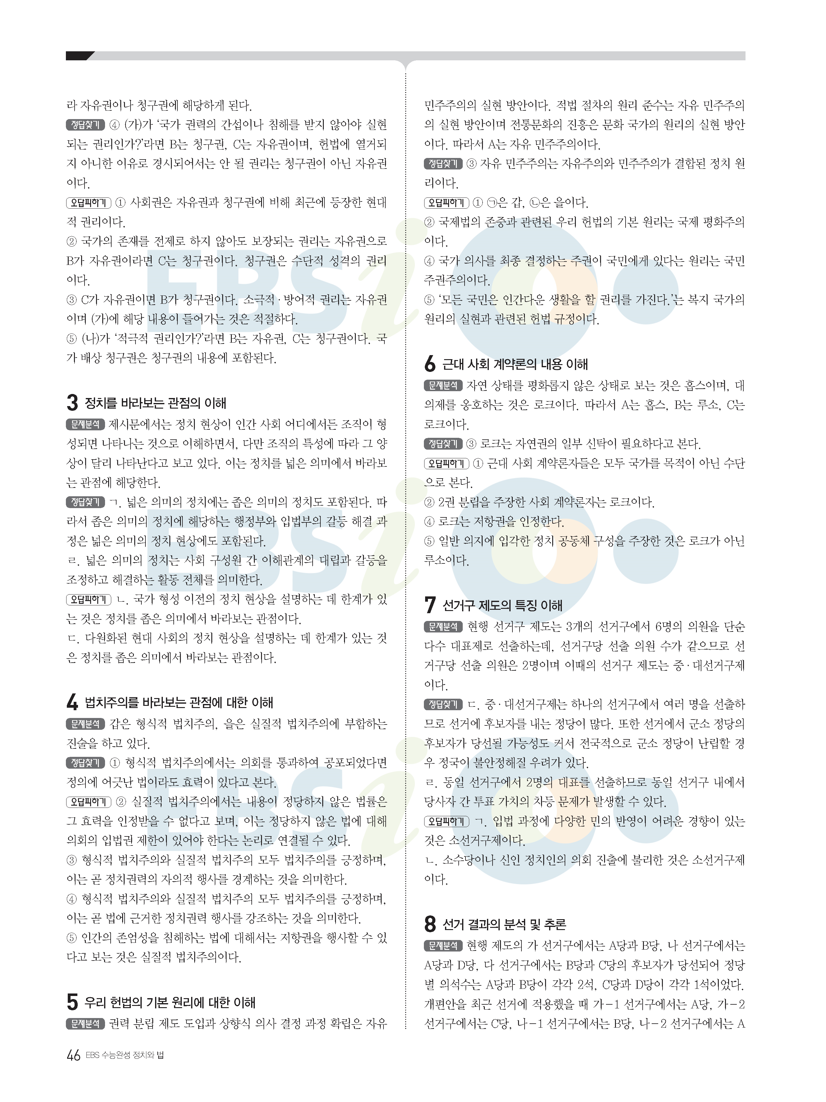 2022 EBS 수능완성 사회탐구영역 정치와법 답지 해설 바로보는 사진답지 모바일최적화