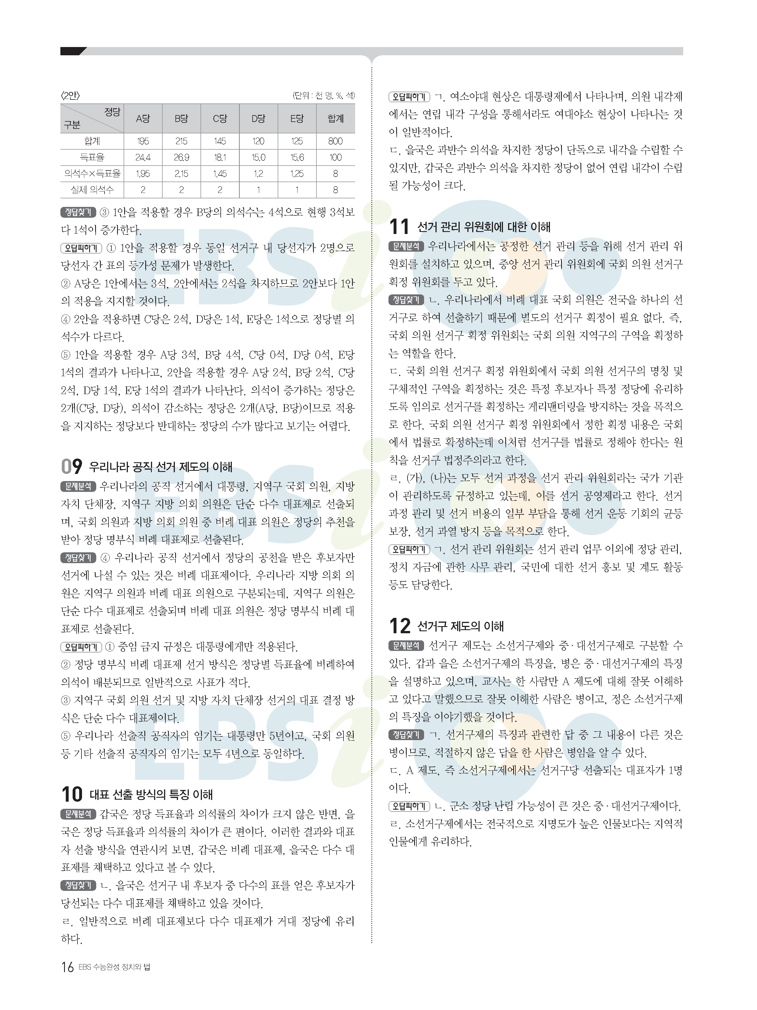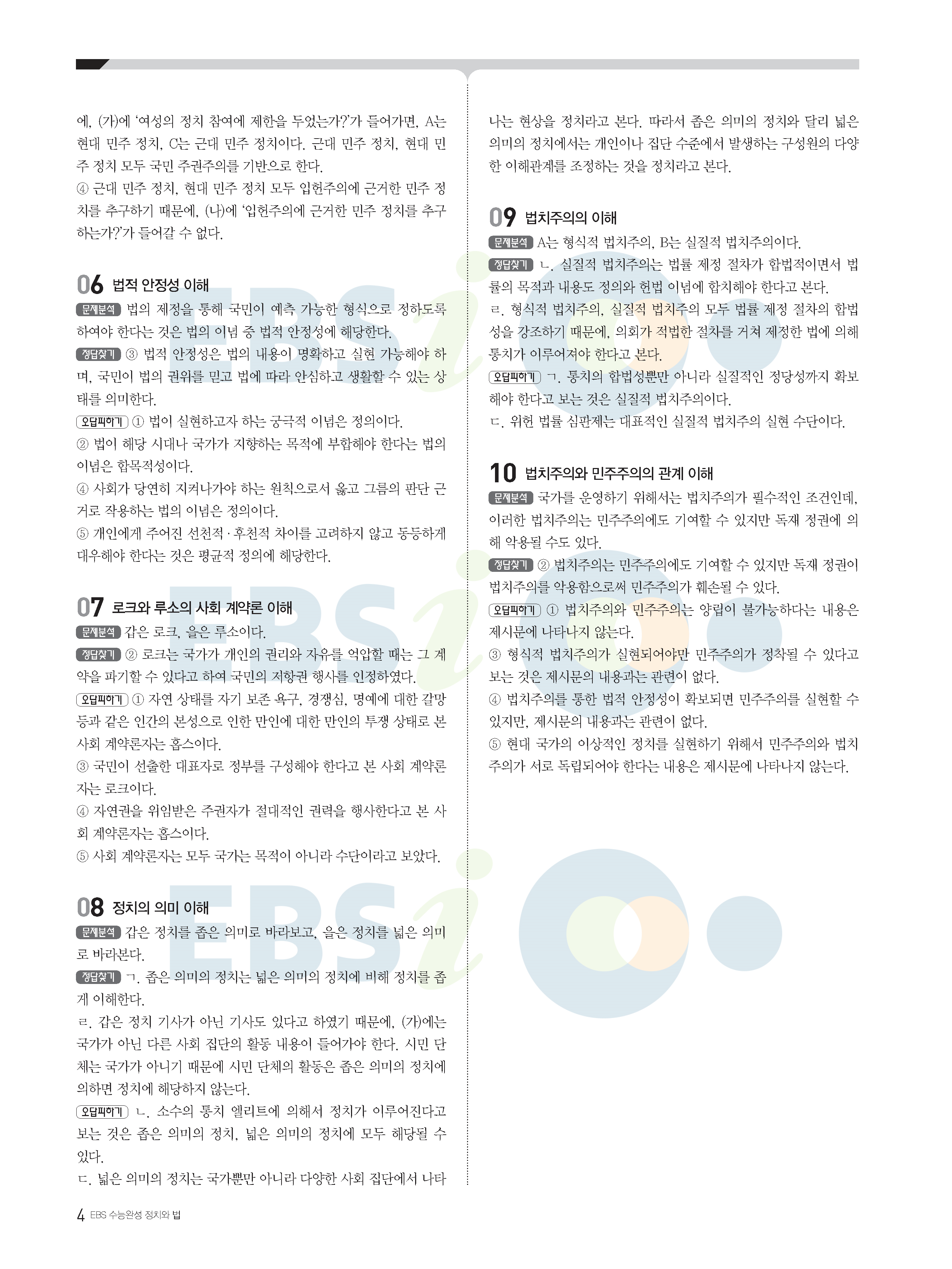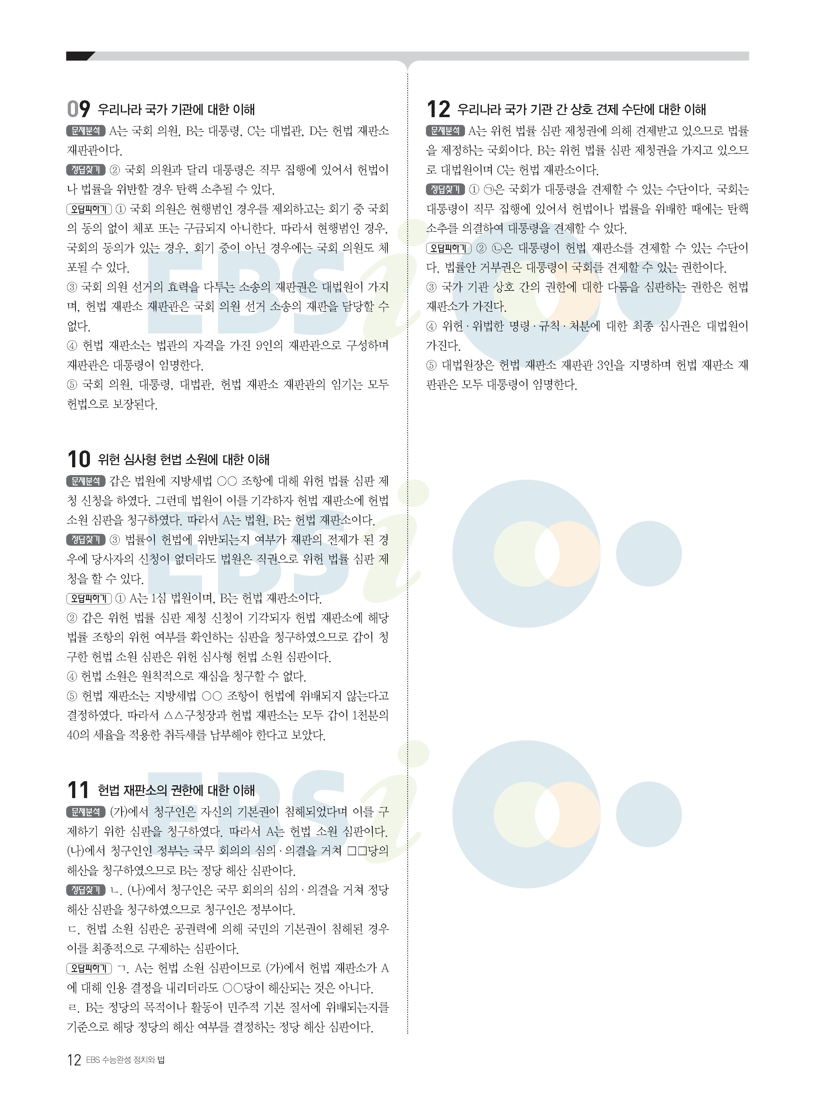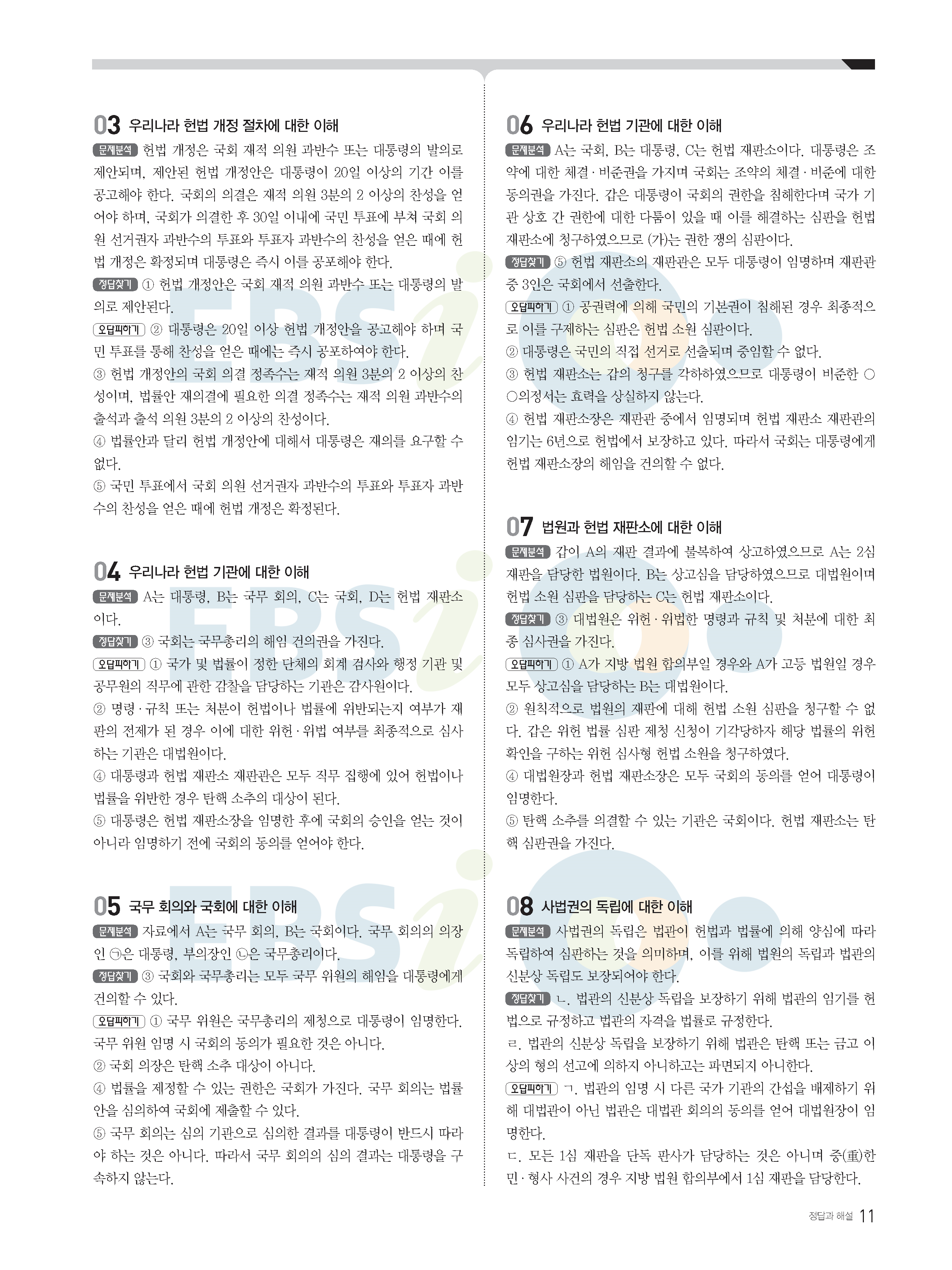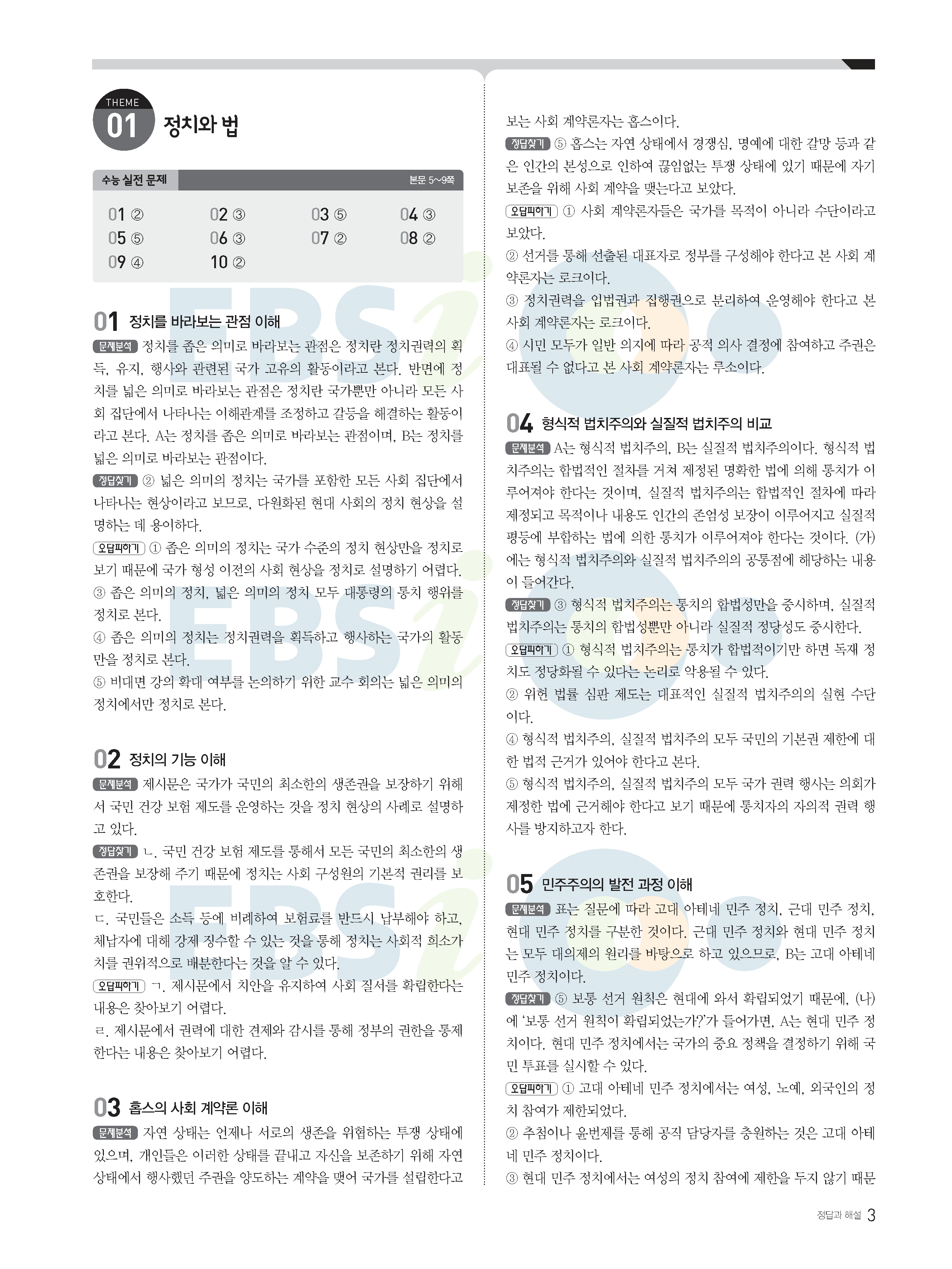 2022 EBS 수능완성 사회탐구영역 정치와법 답지 해설 바로보는 사진답지 모바일최적화