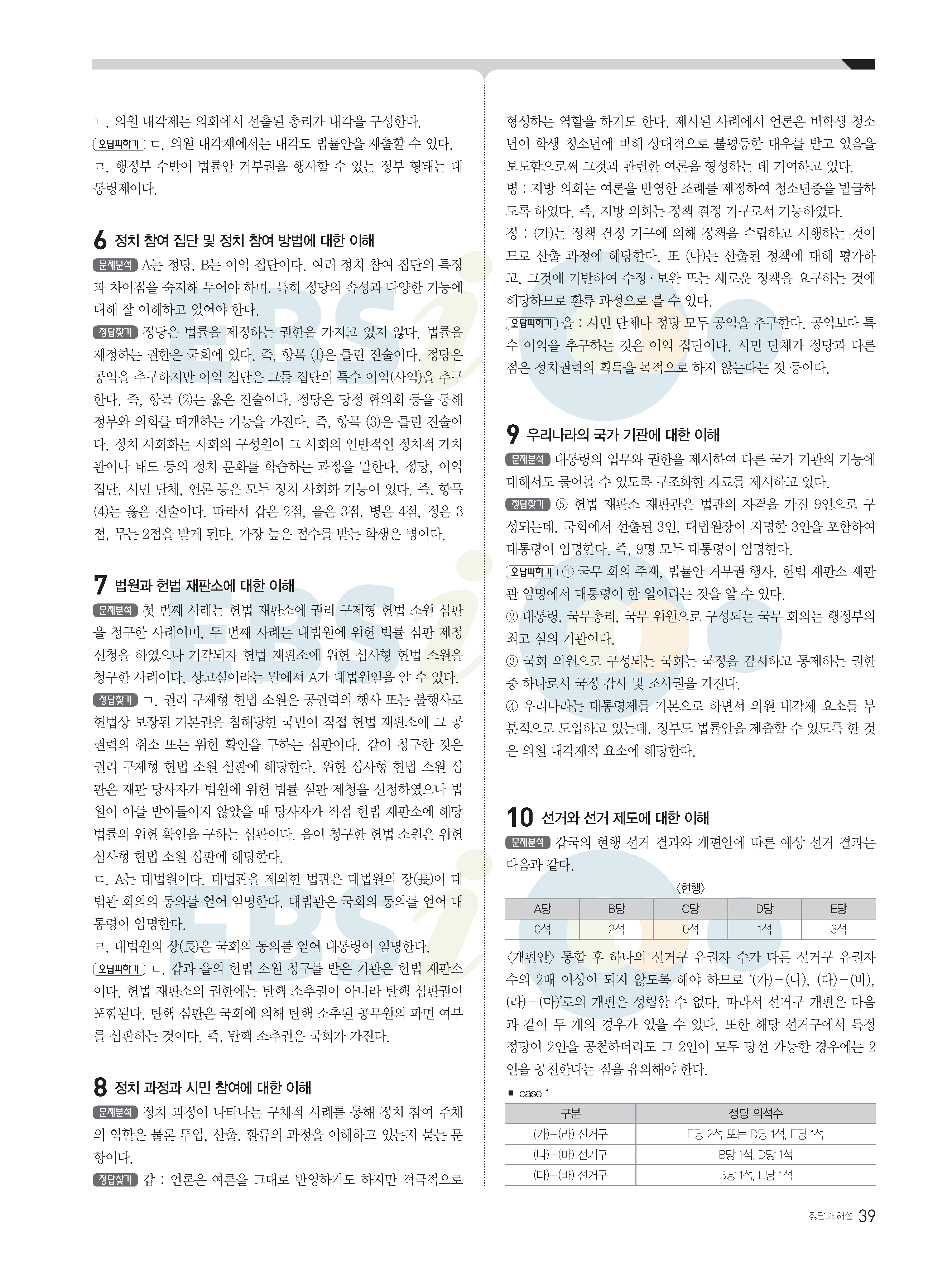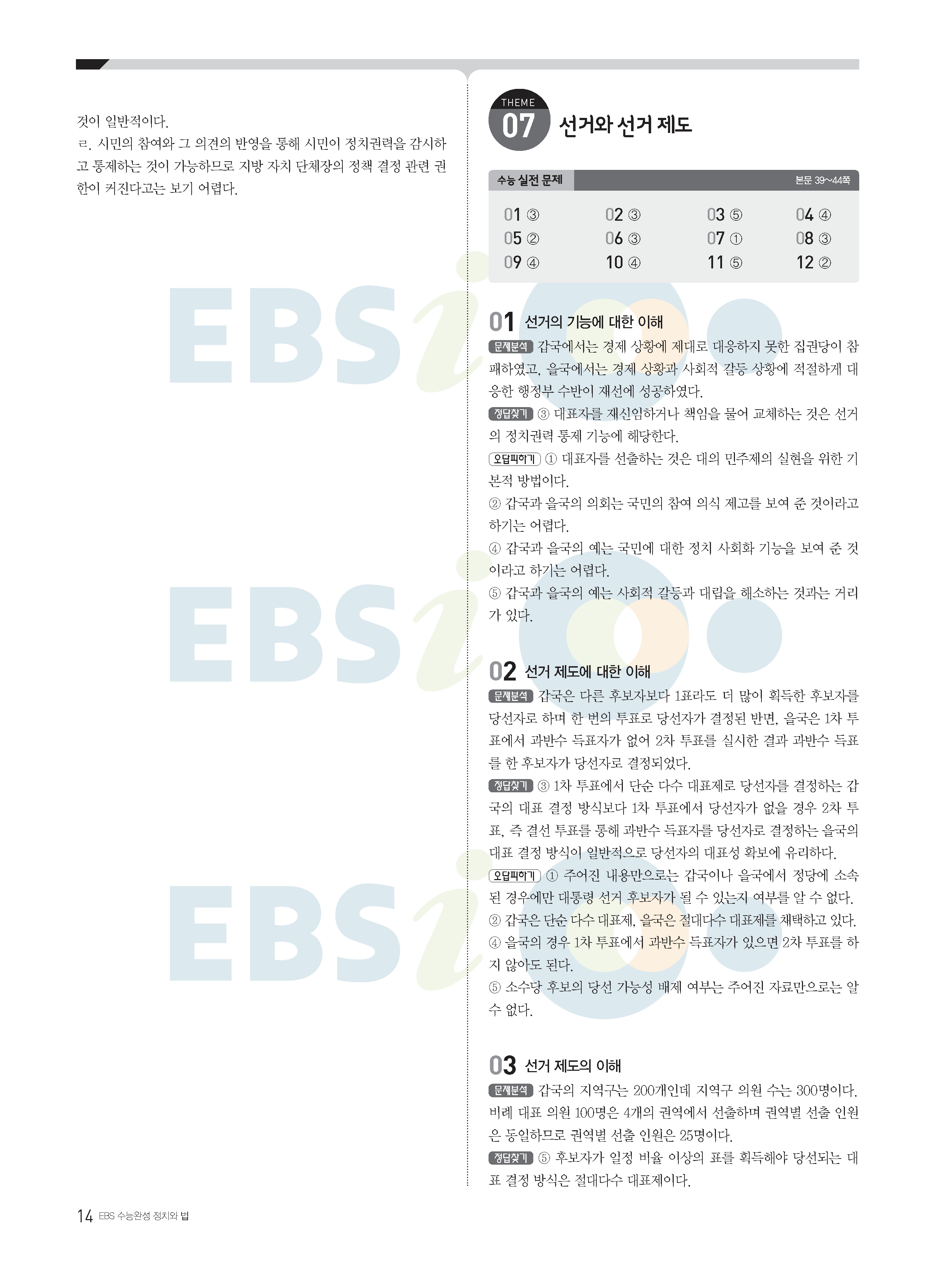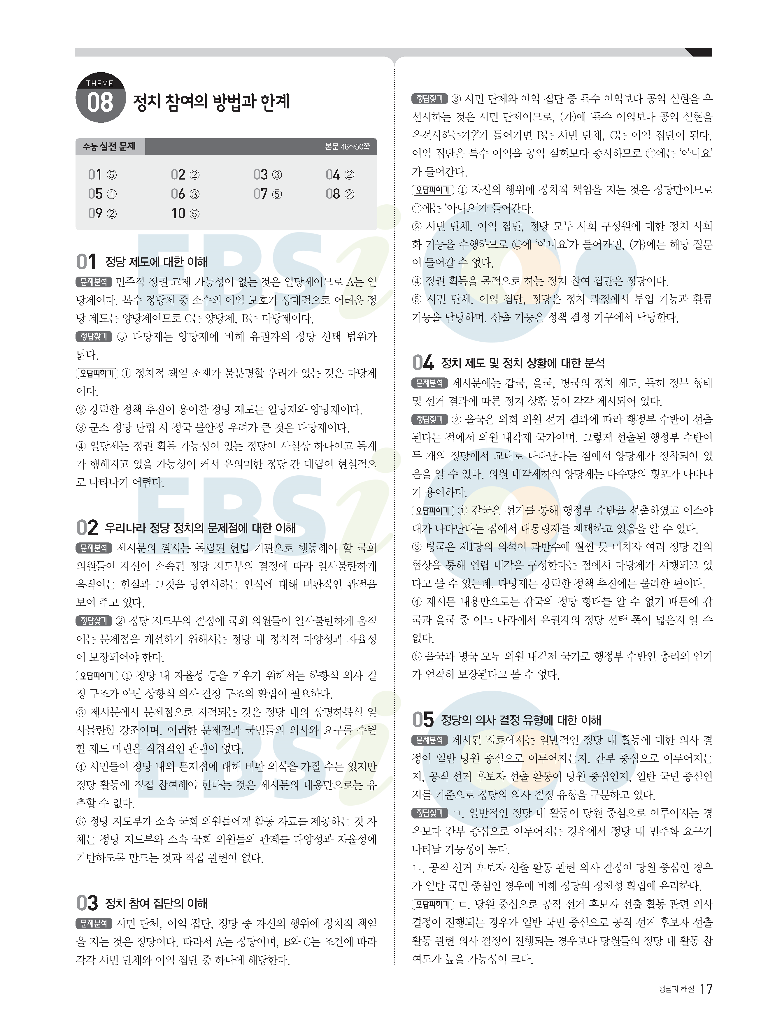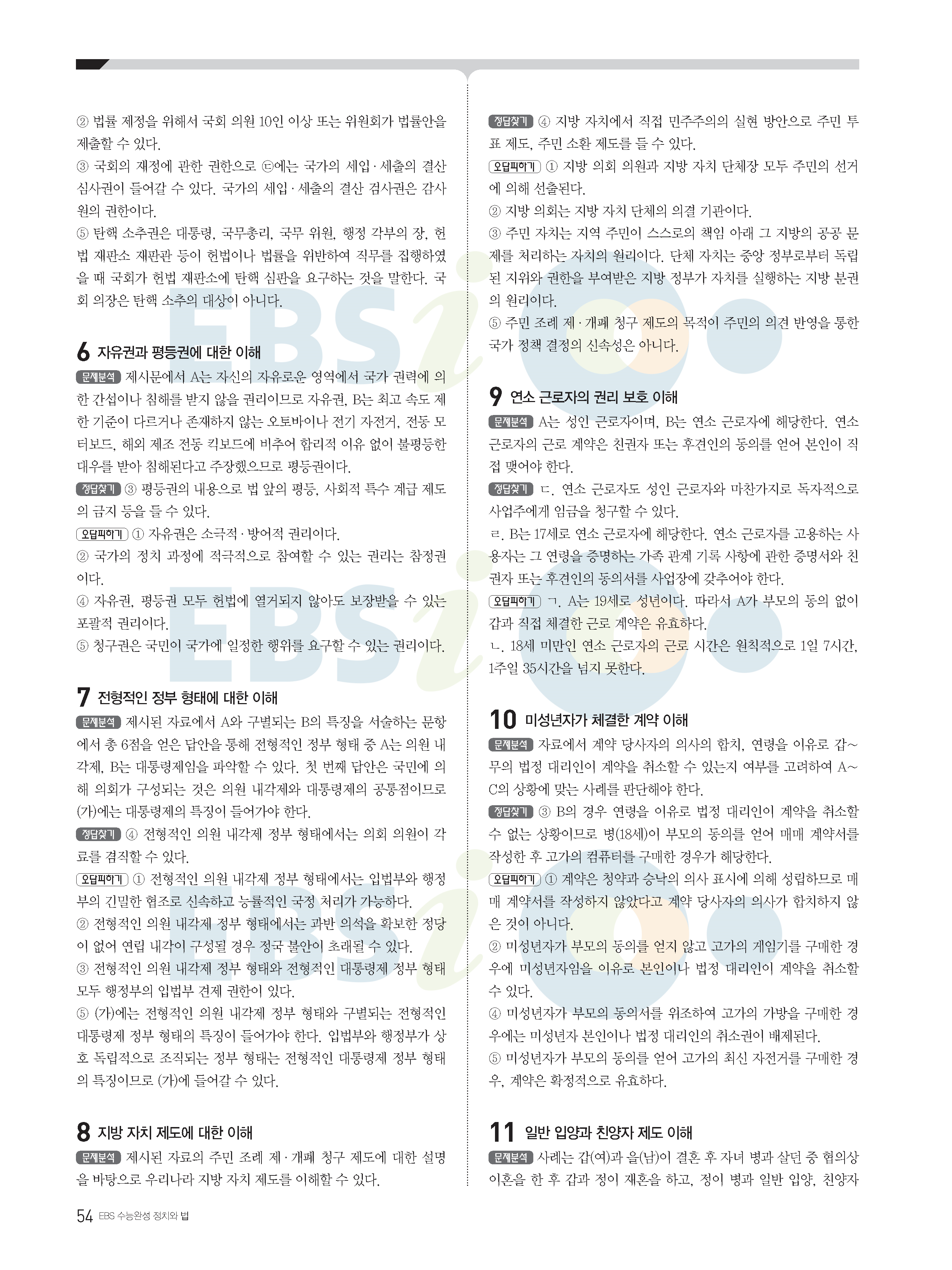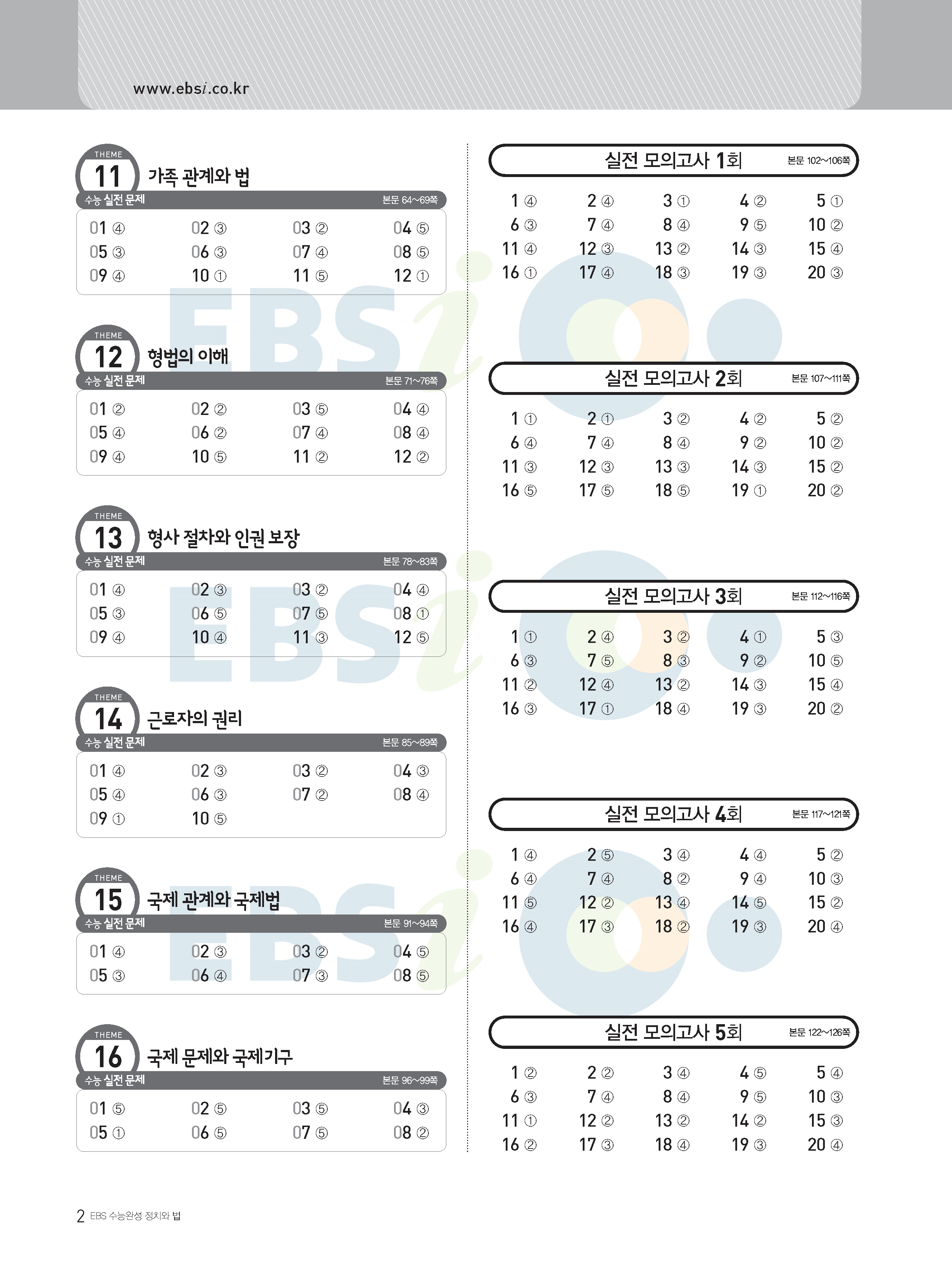 2022 EBS 수능완성 사회탐구영역 정치와법 답지 해설 바로보는 사진답지 모바일최적화