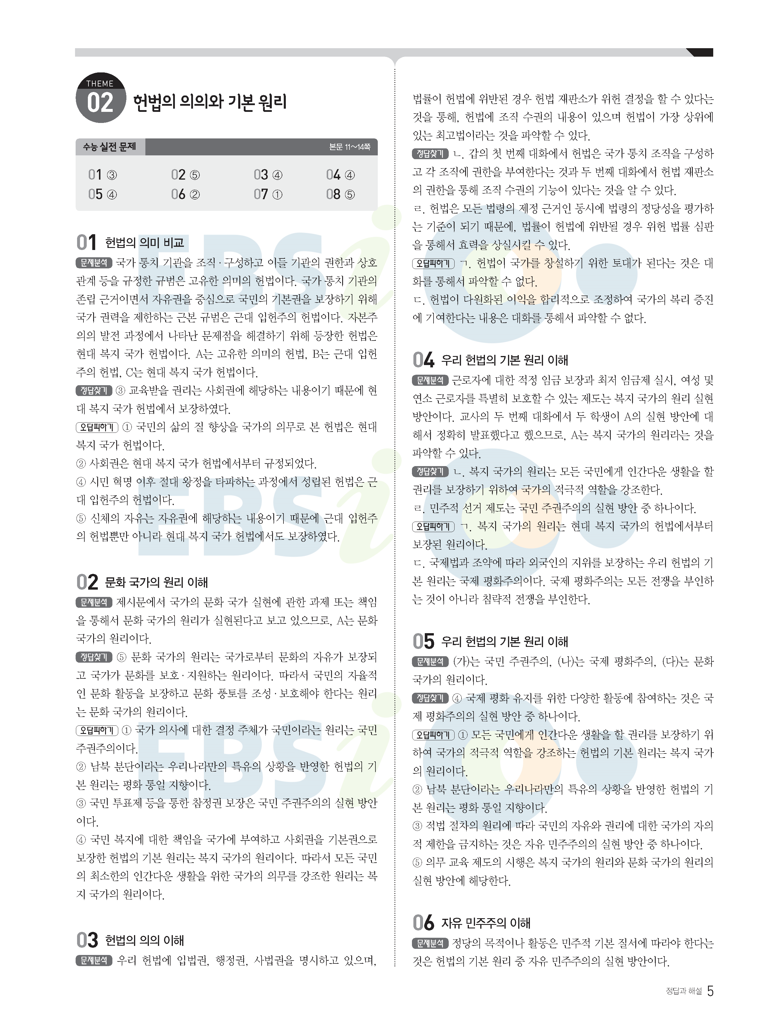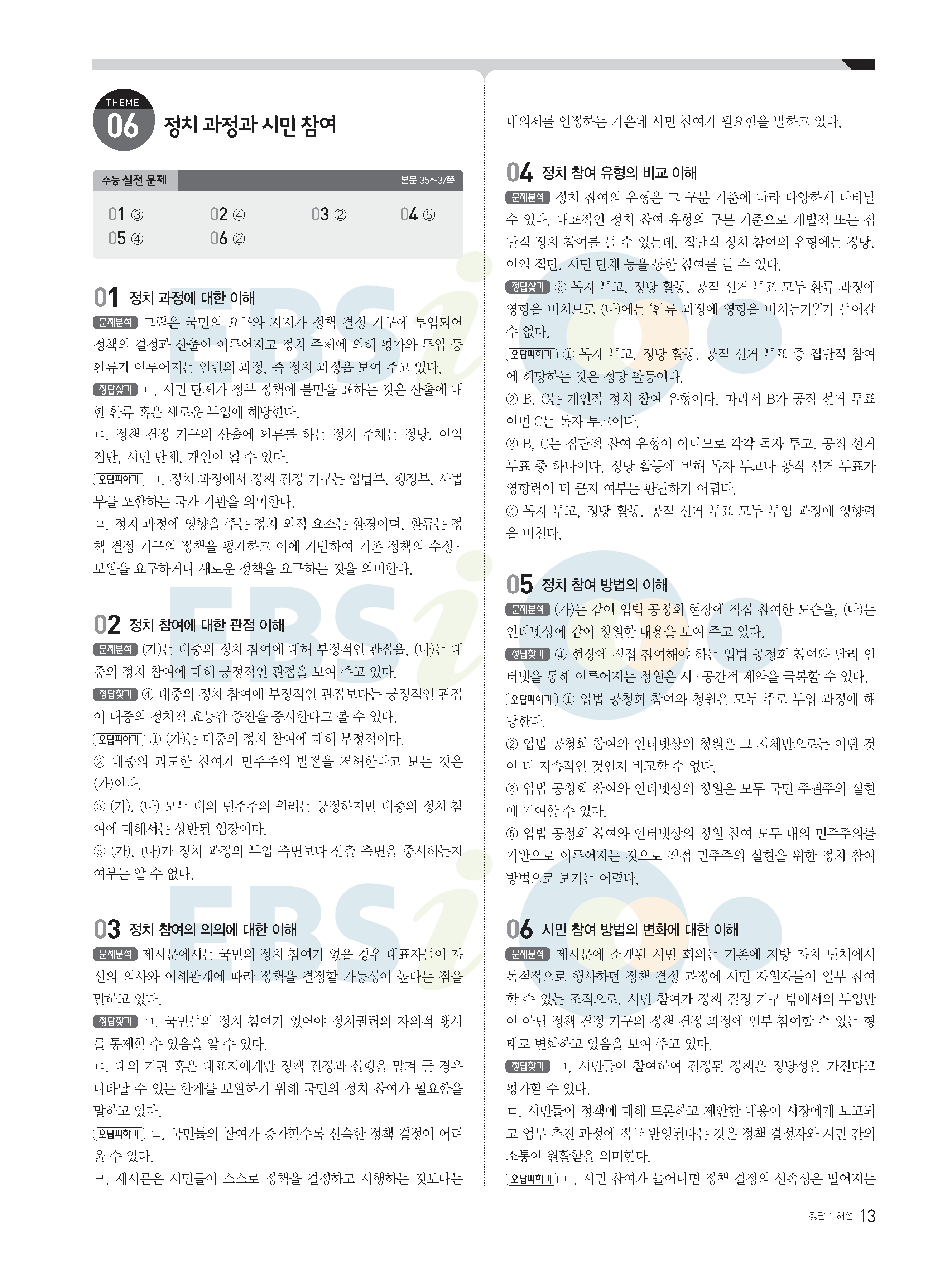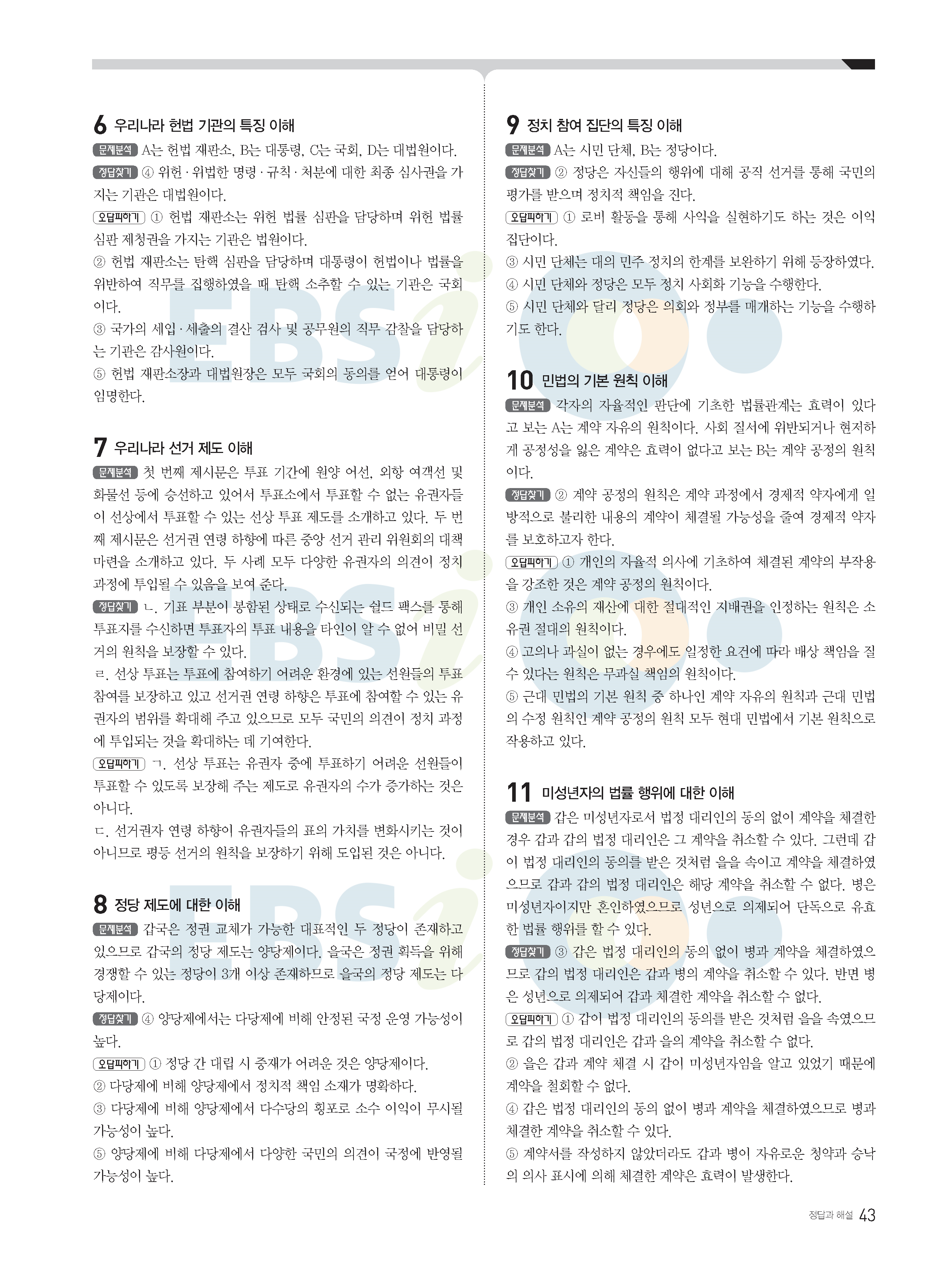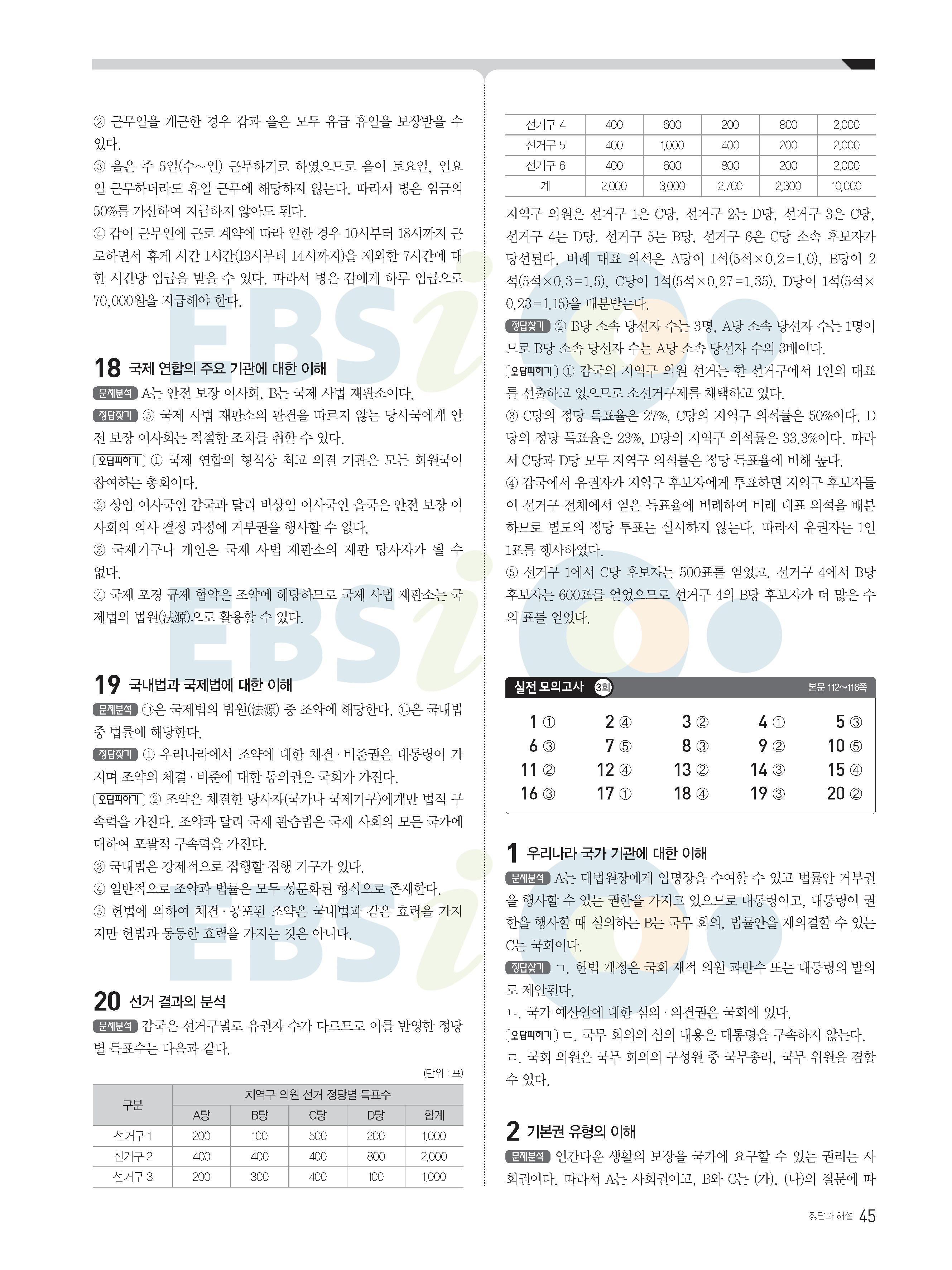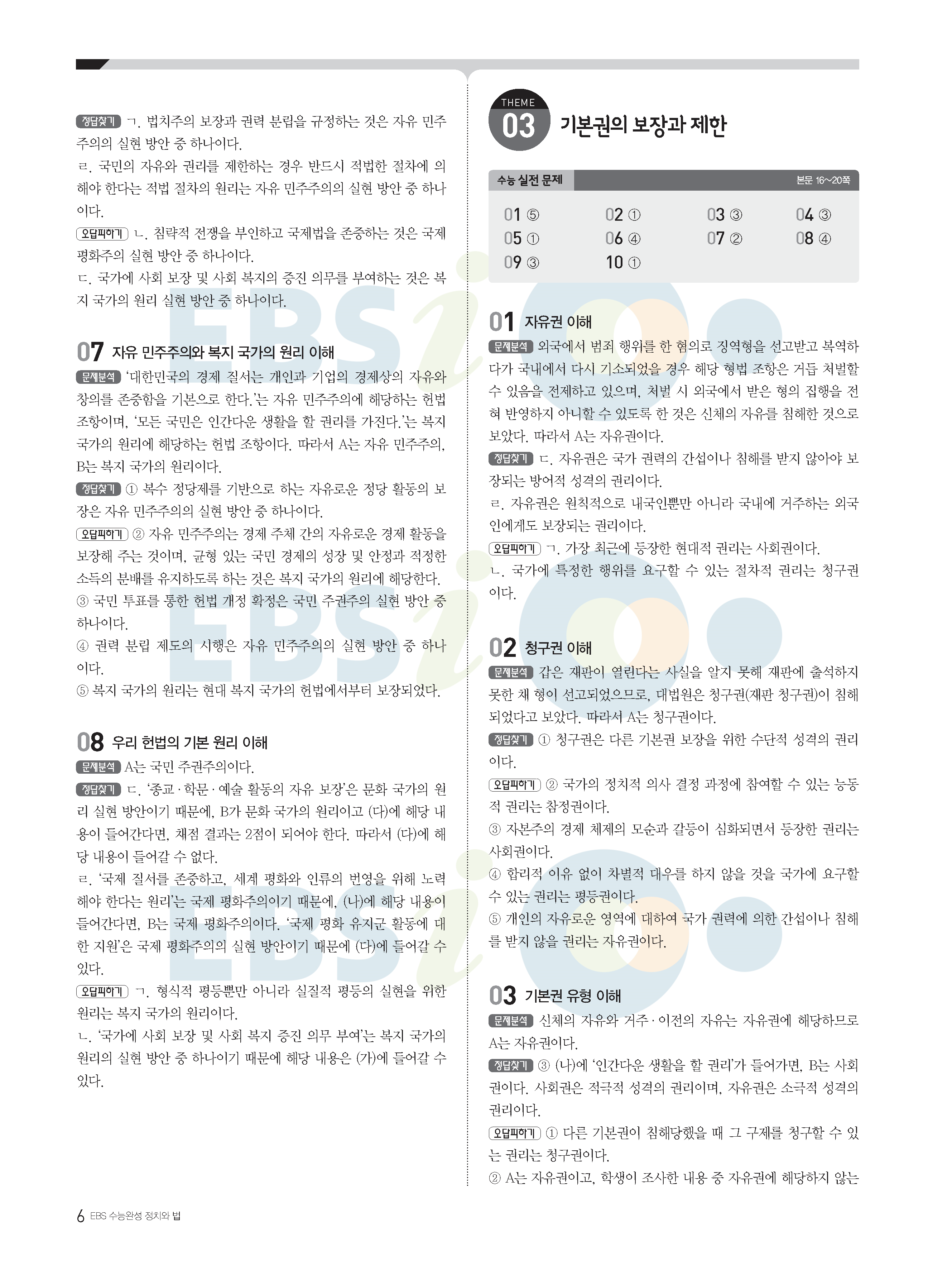 2022 EBS 수능완성 사회탐구영역 정치와법 답지 해설 바로보는 사진답지 모바일최적화
