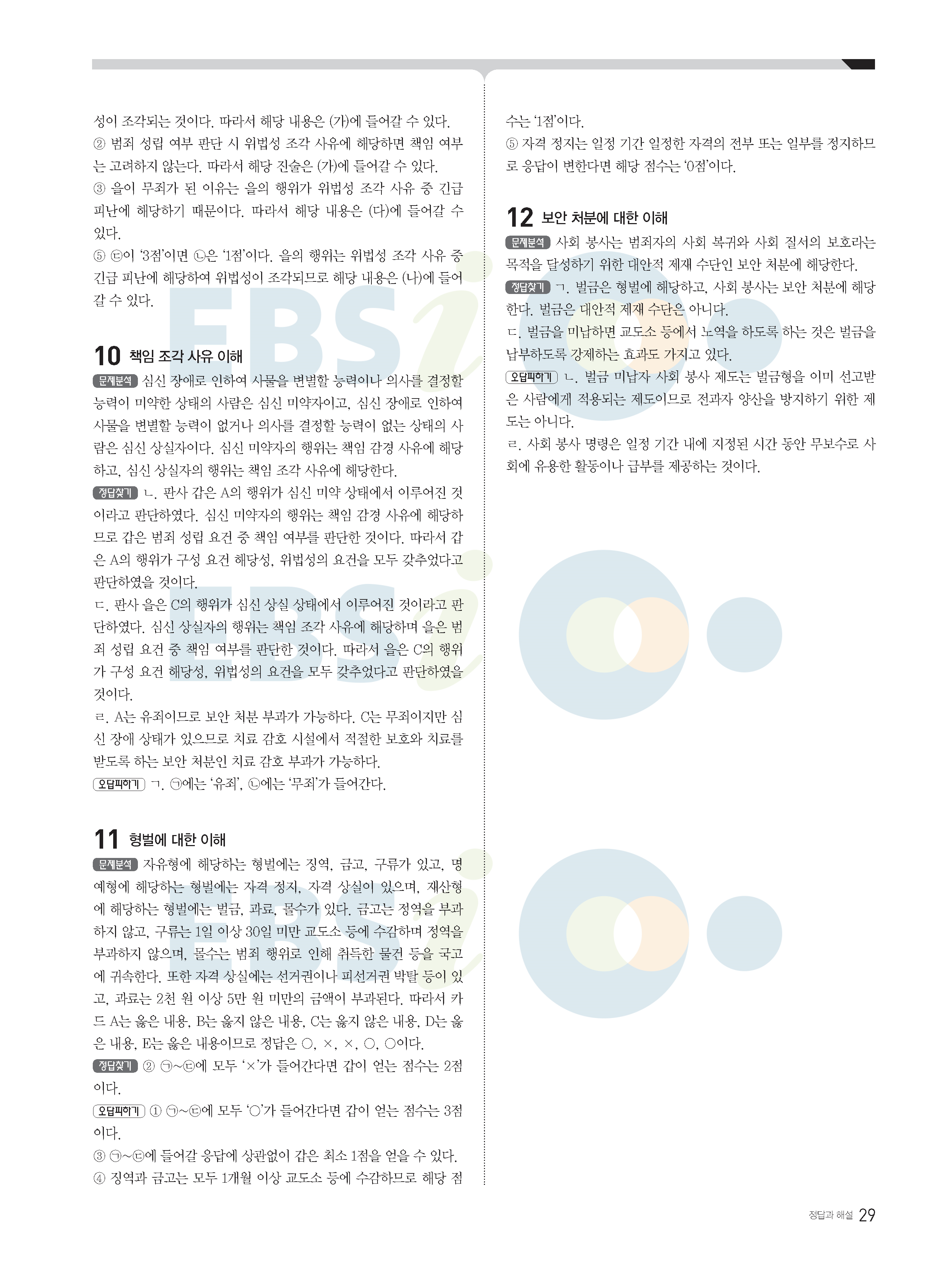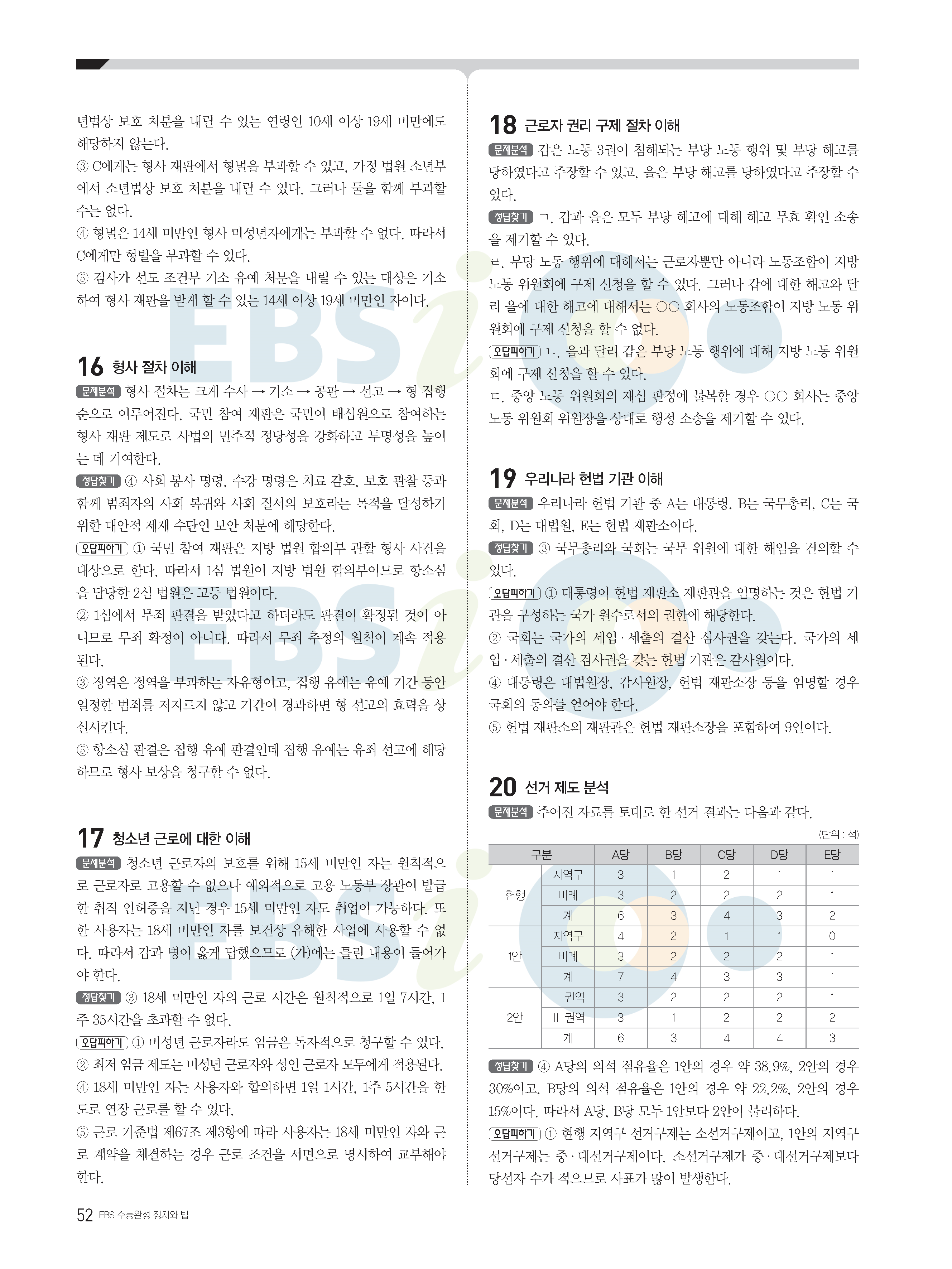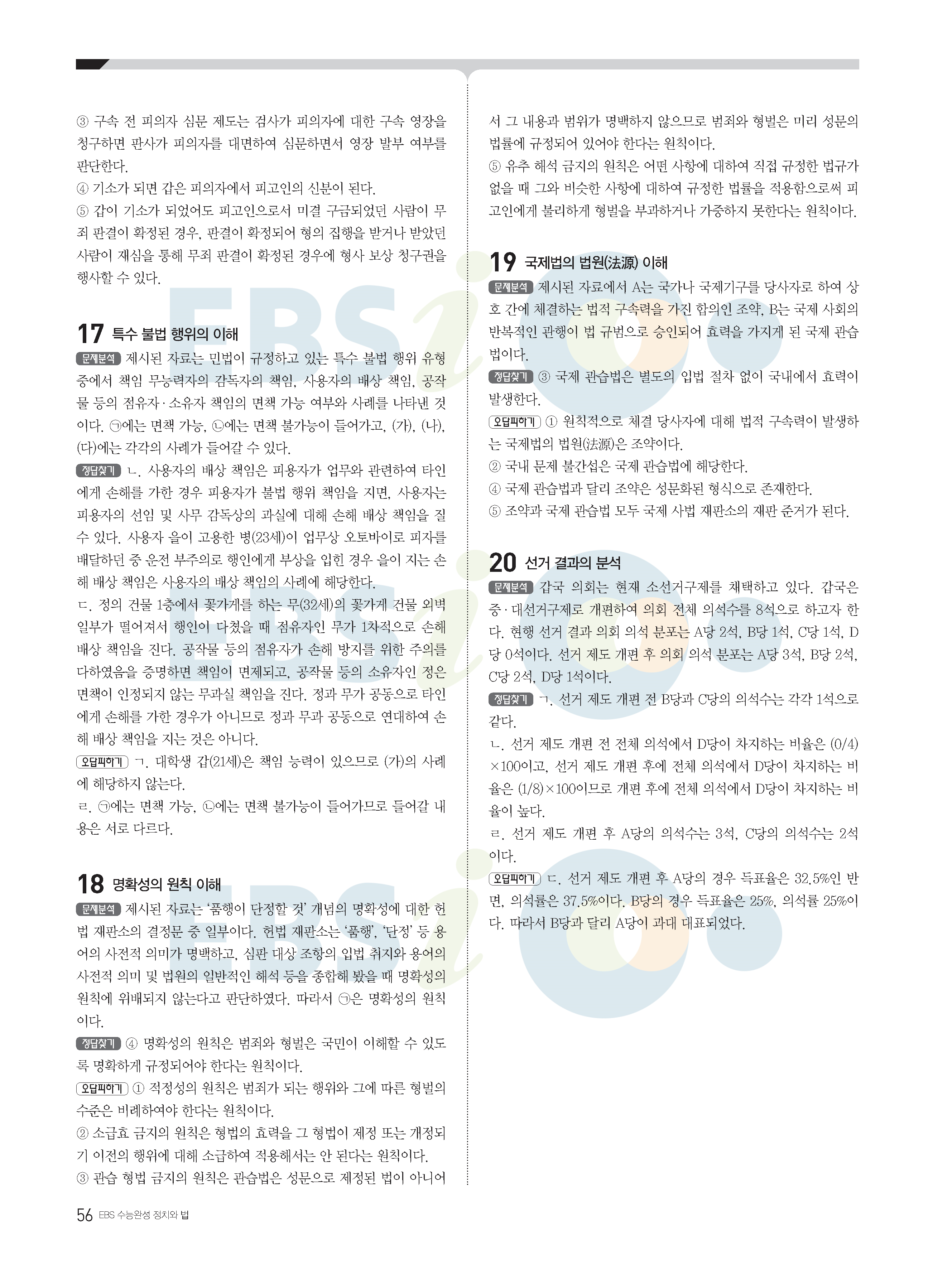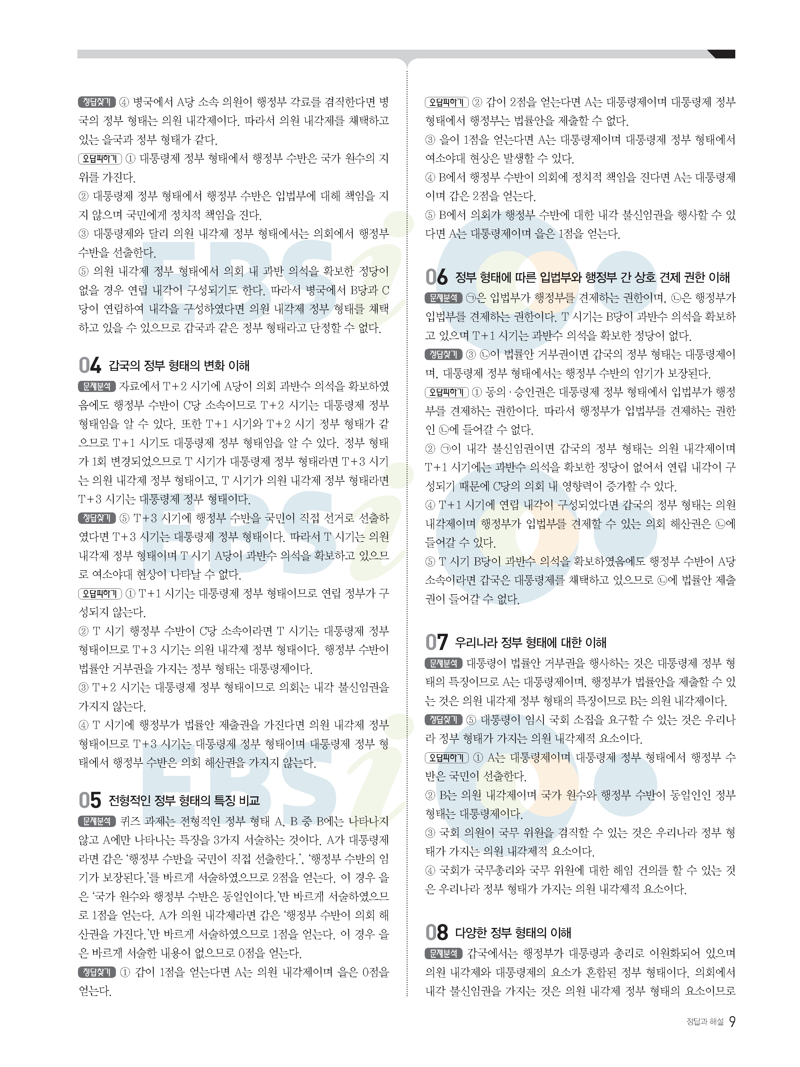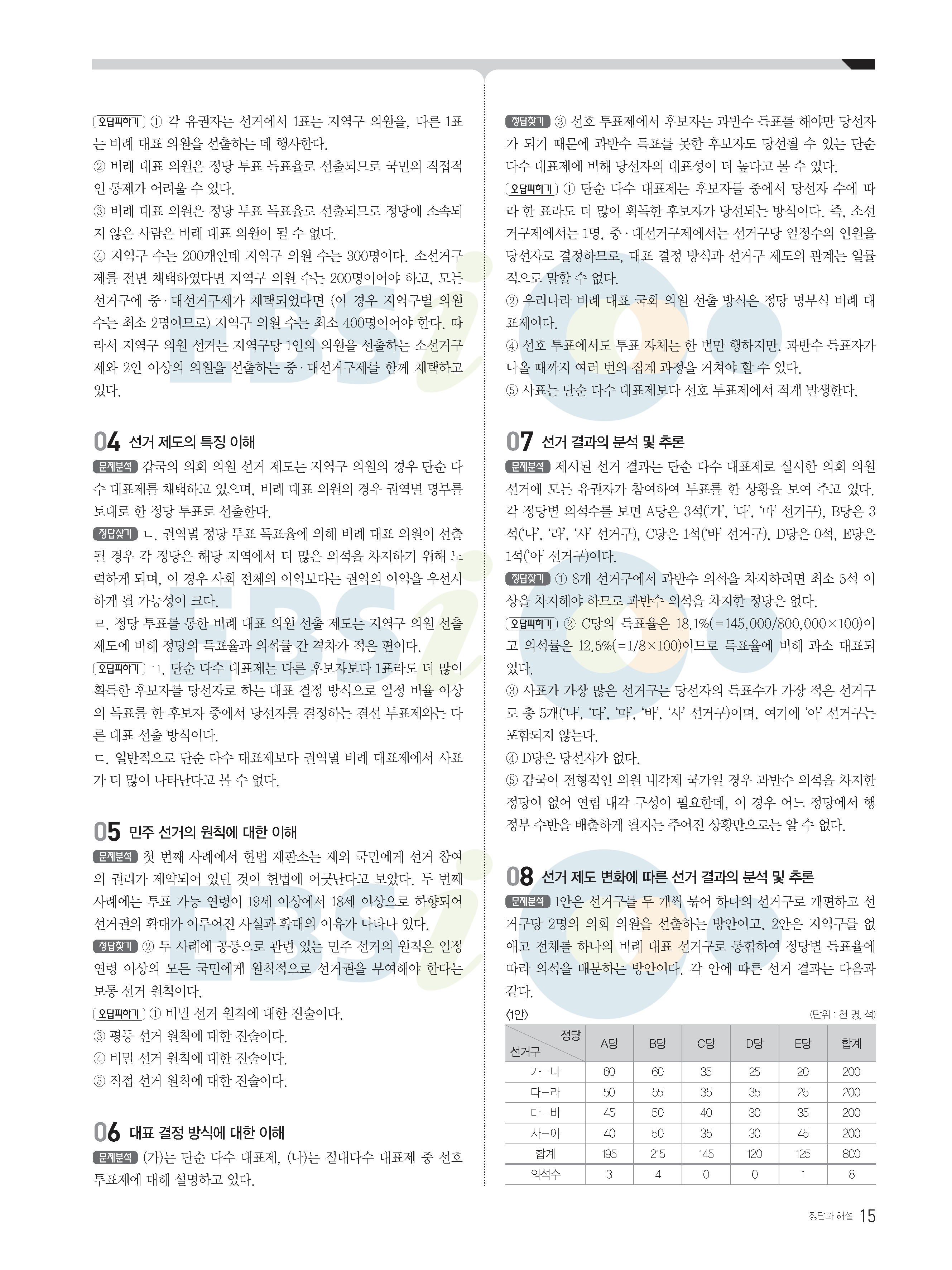2022 EBS 수능완성 사회탐구영역 정치와법 답지 해설 바로보는 사진답지 모바일최적화