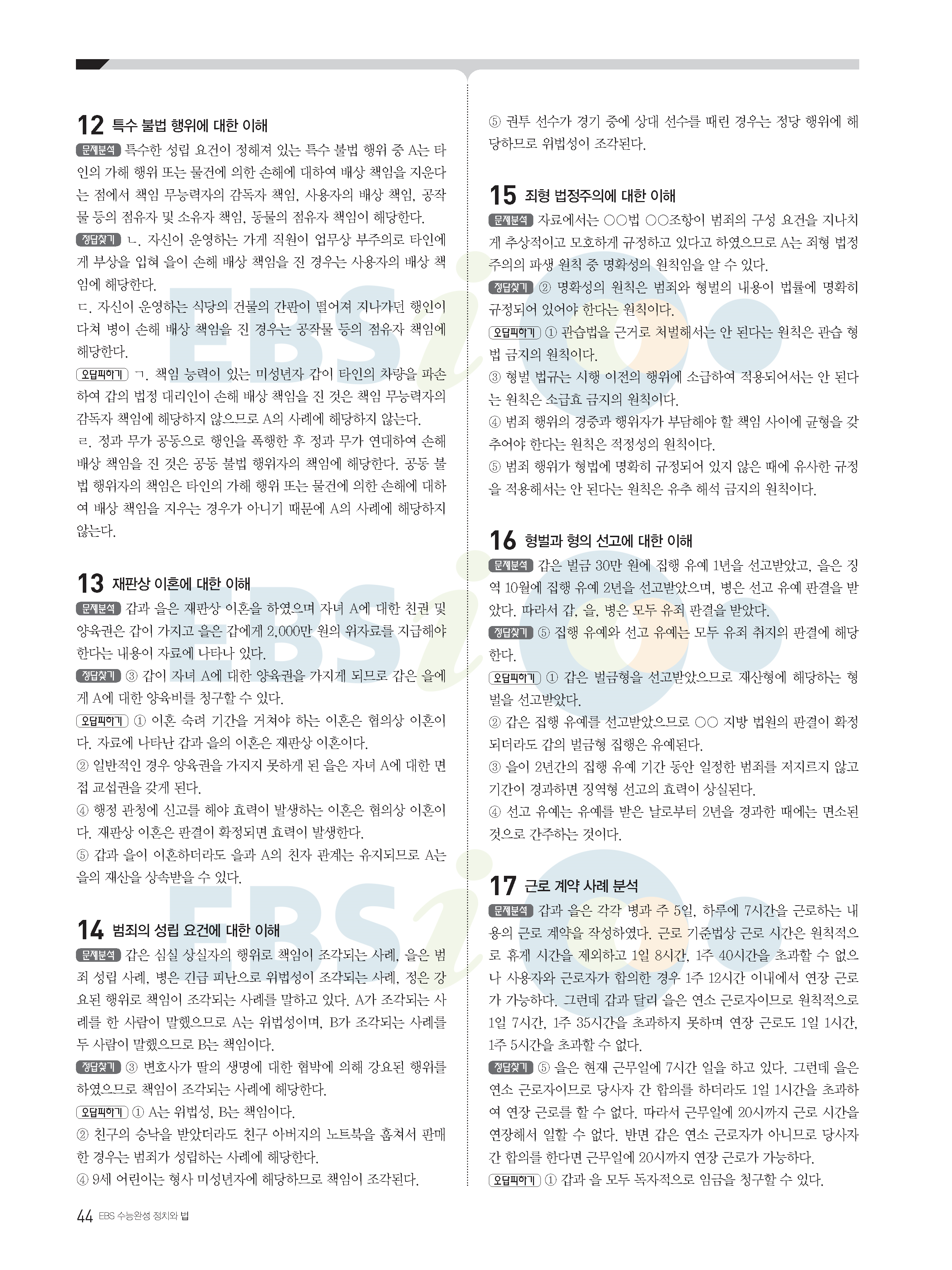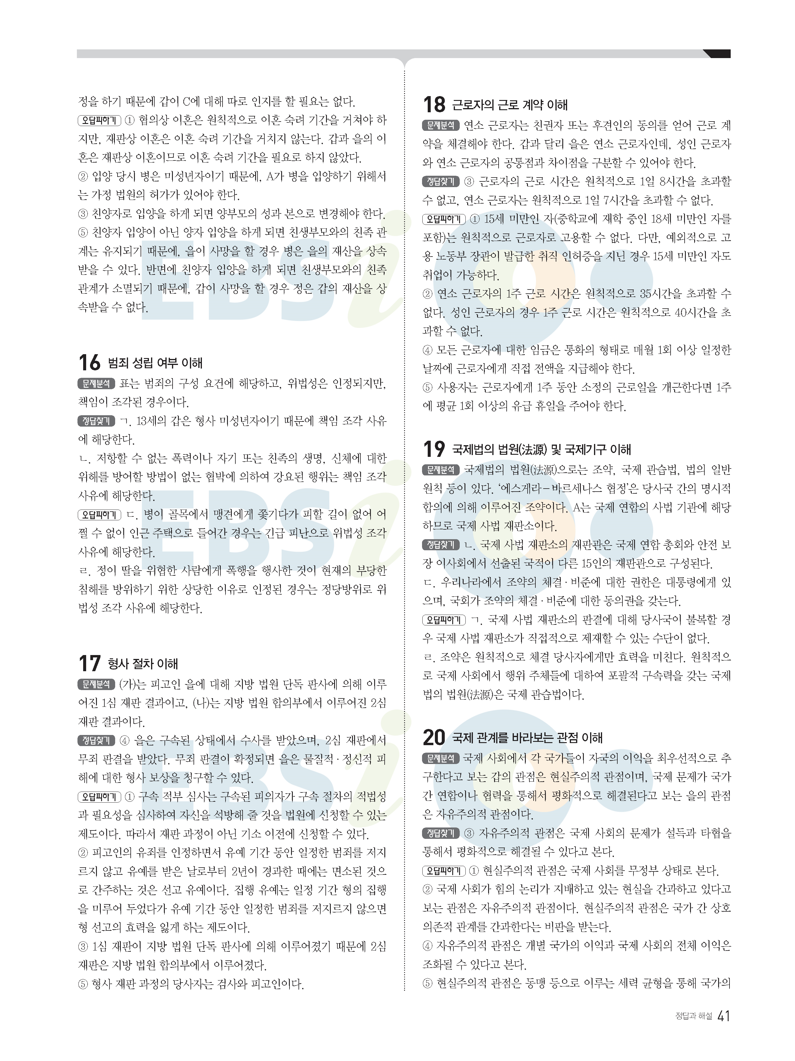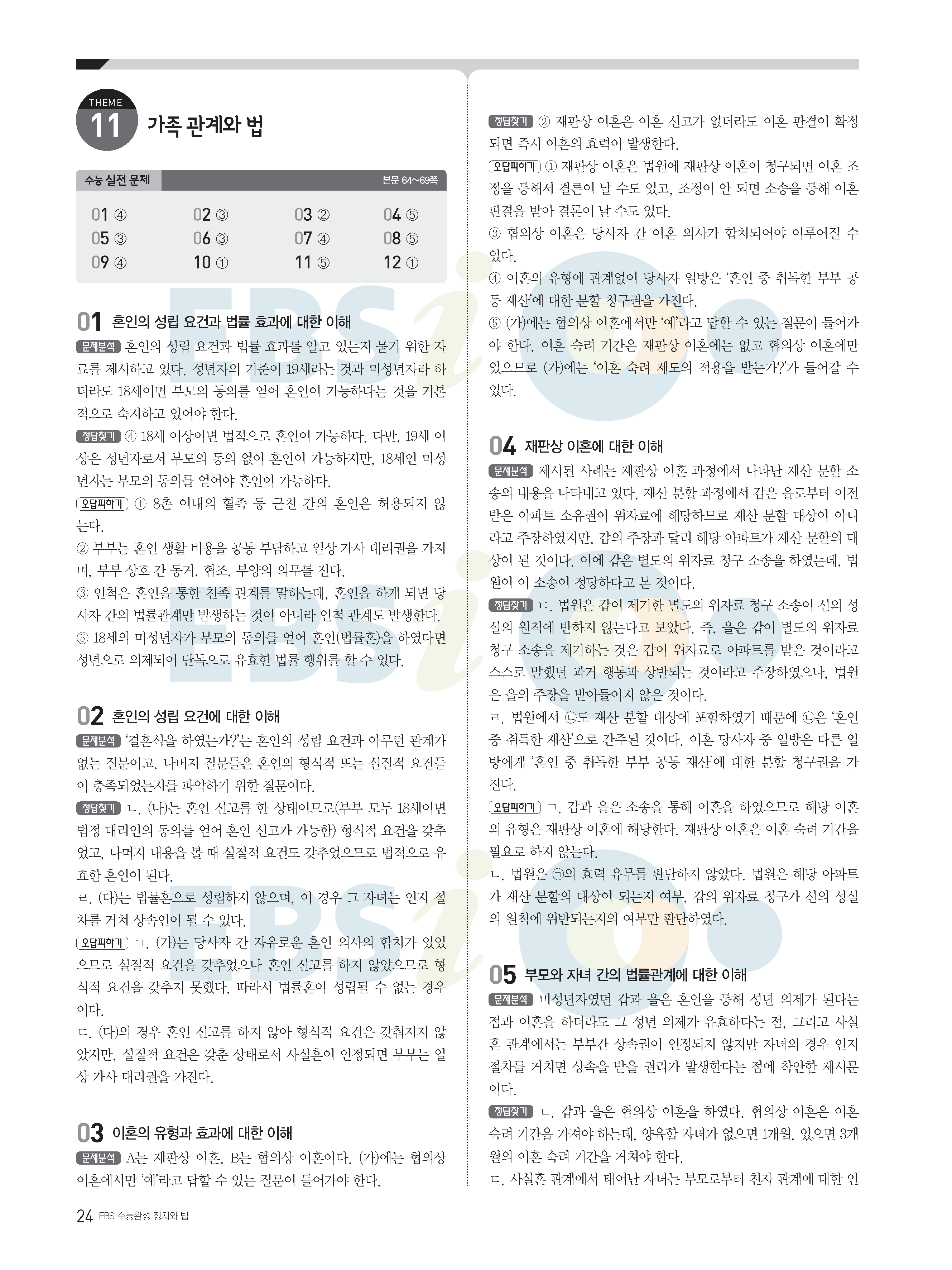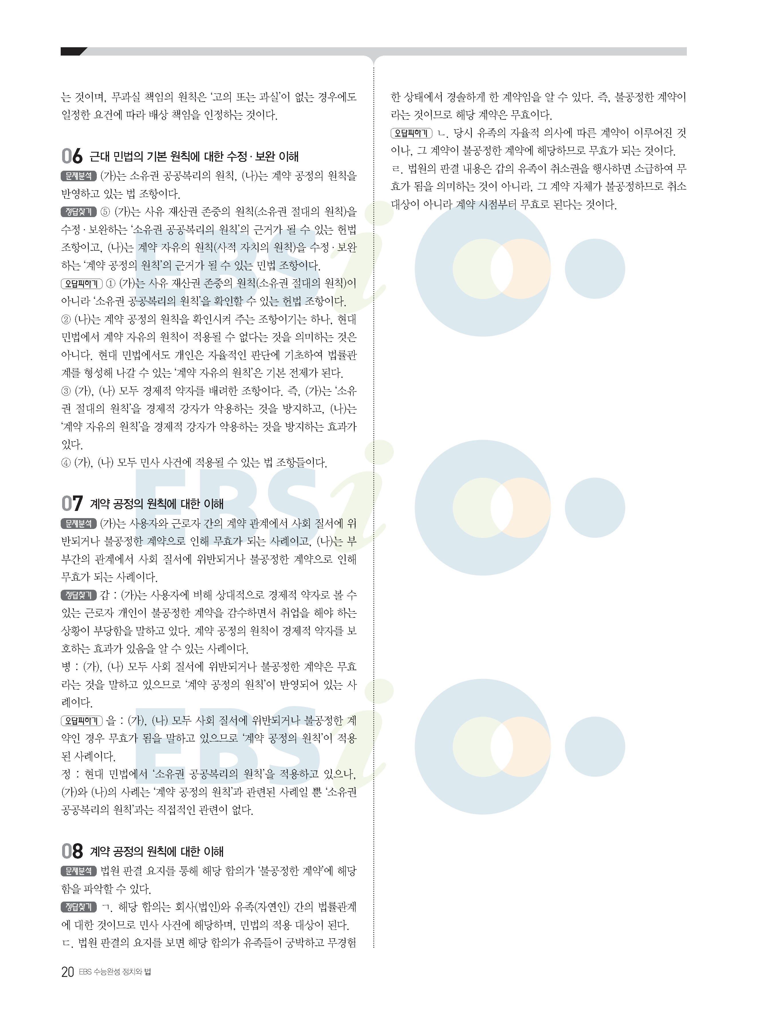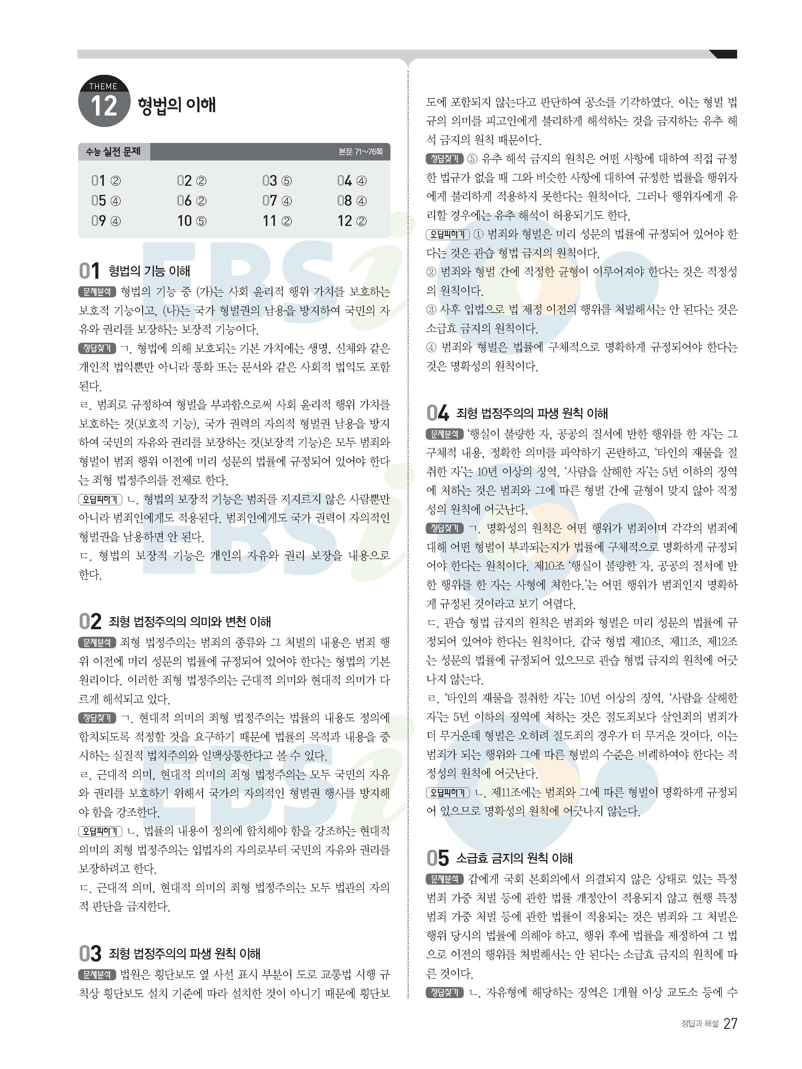 2022 EBS 수능완성 사회탐구영역 정치와법 답지 해설 바로보는 사진답지 모바일최적화